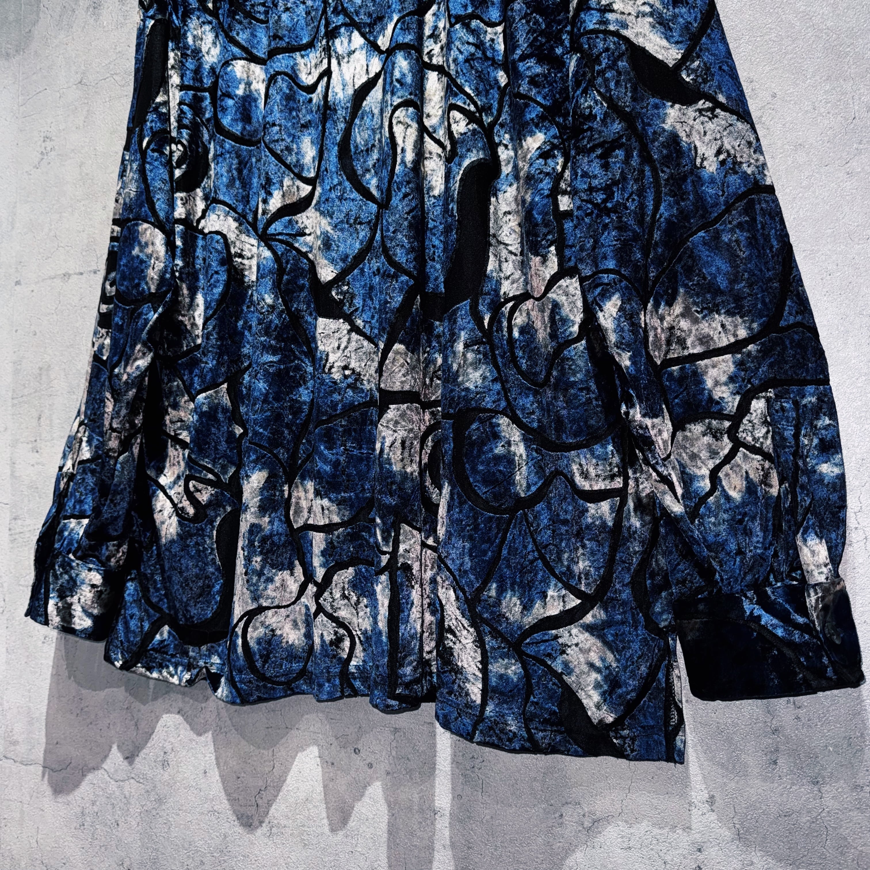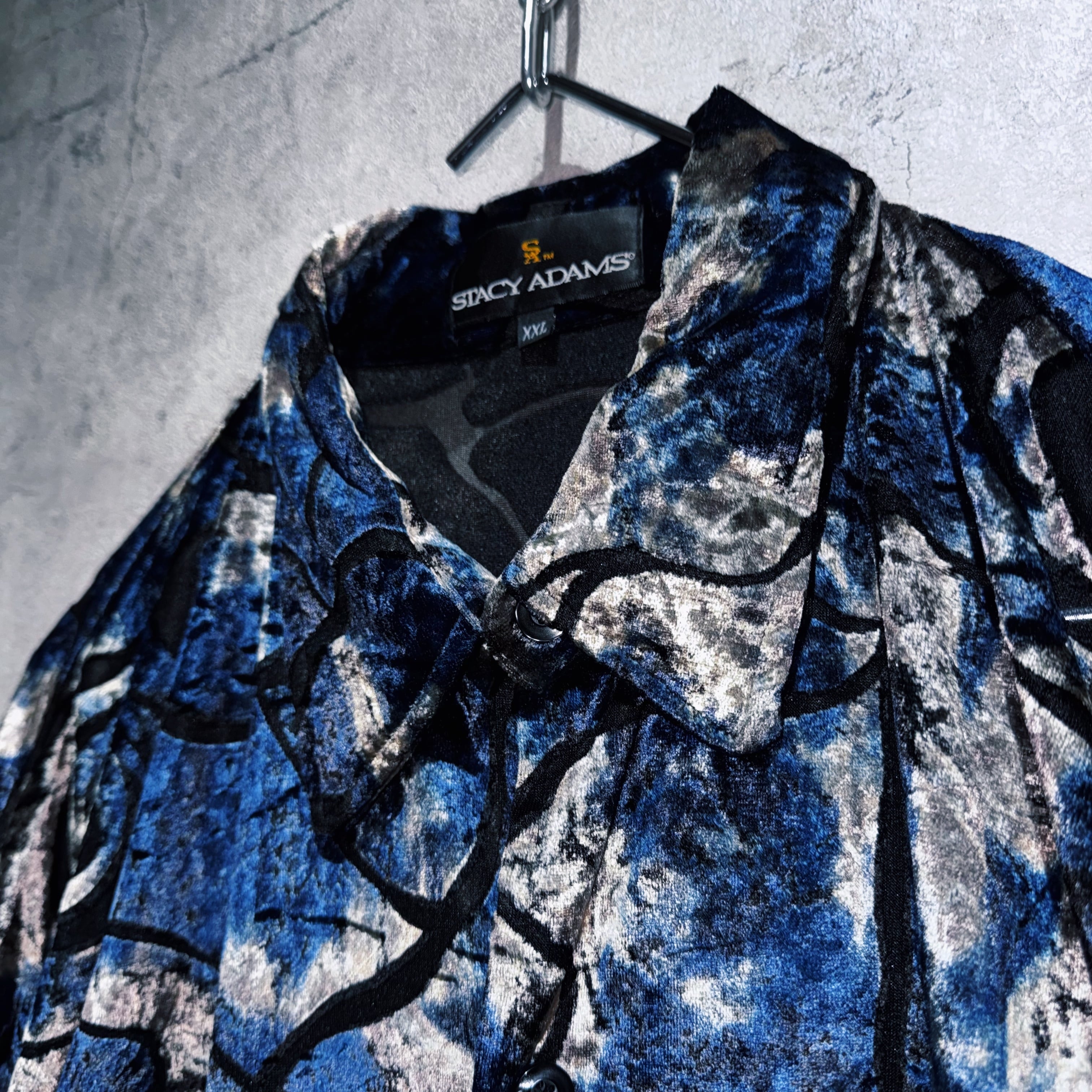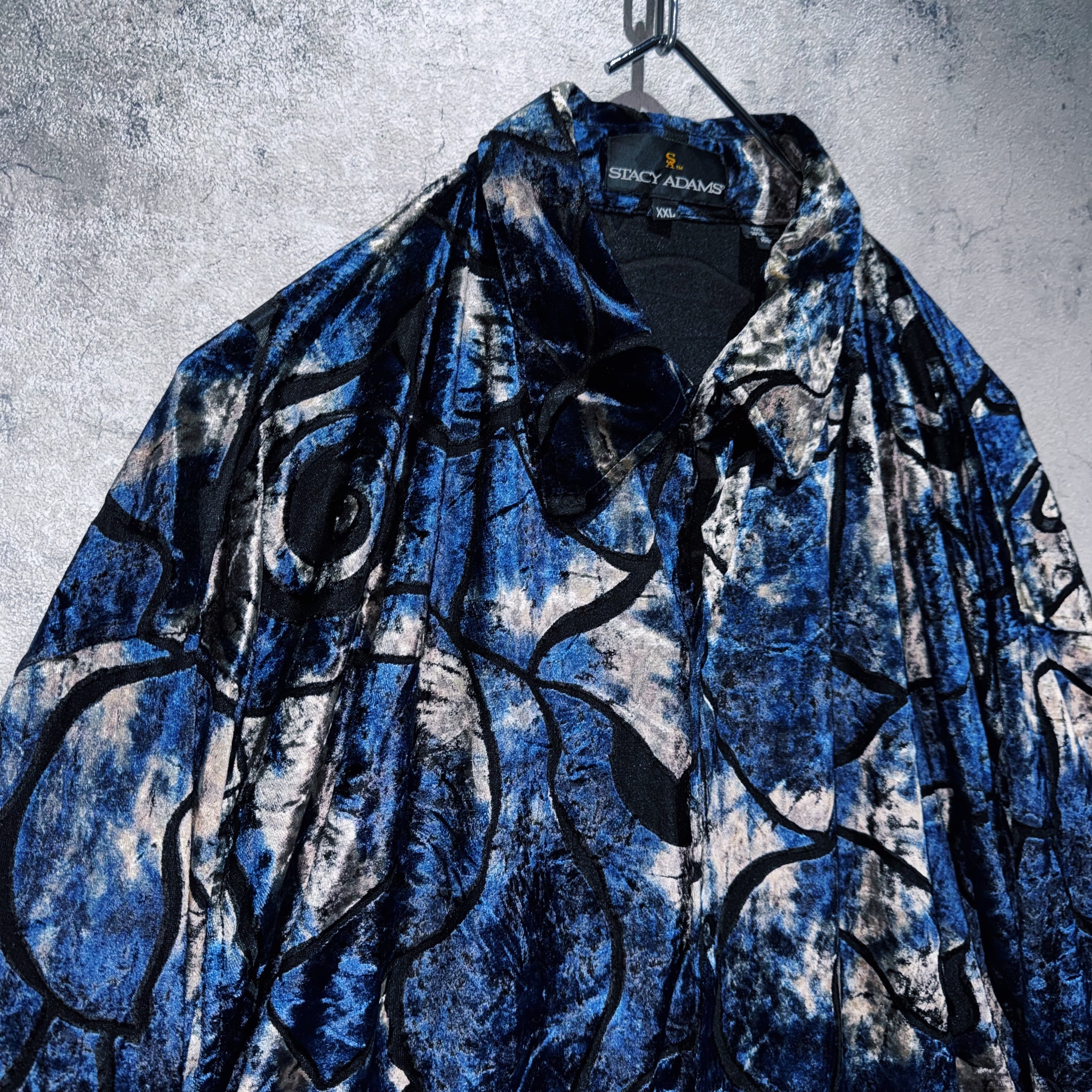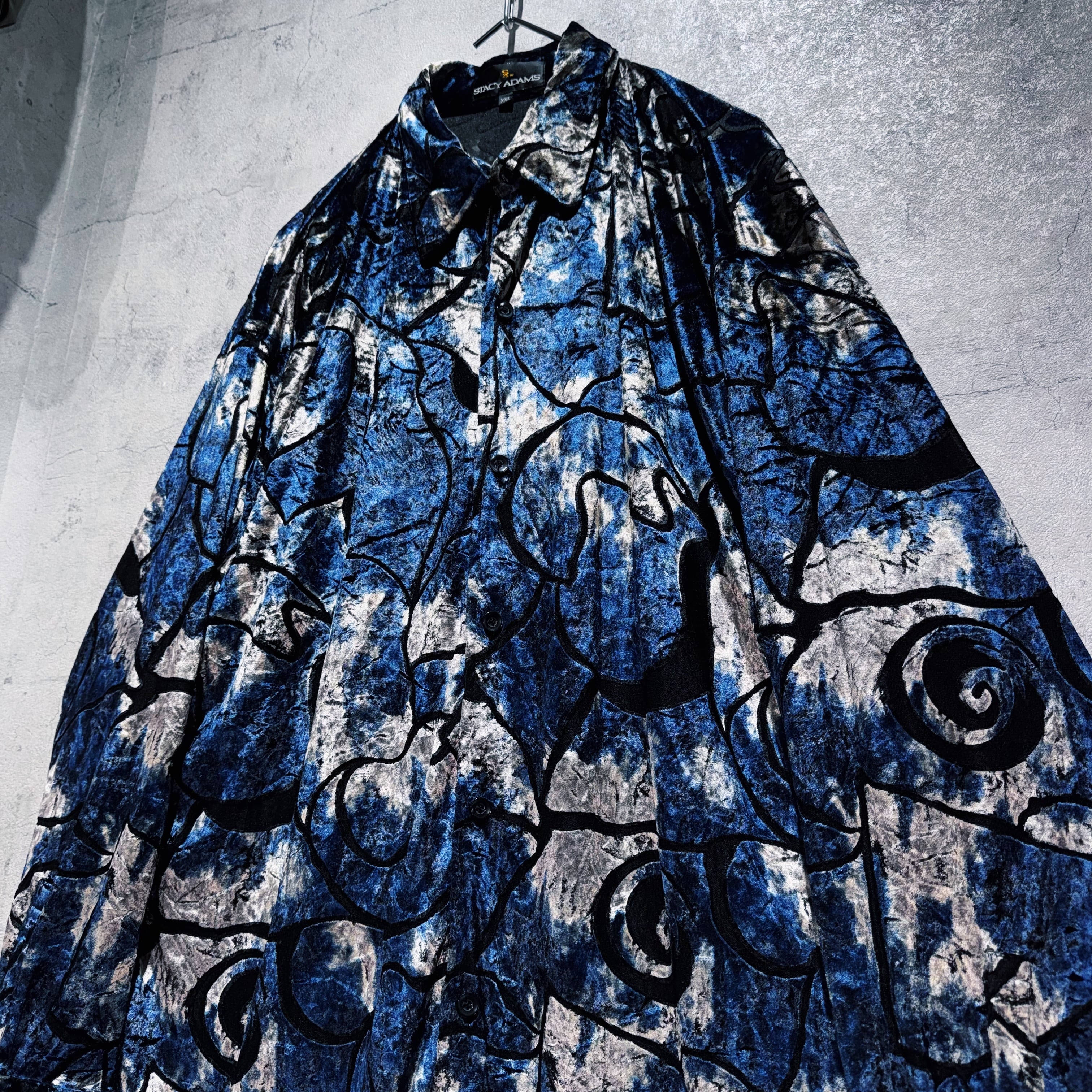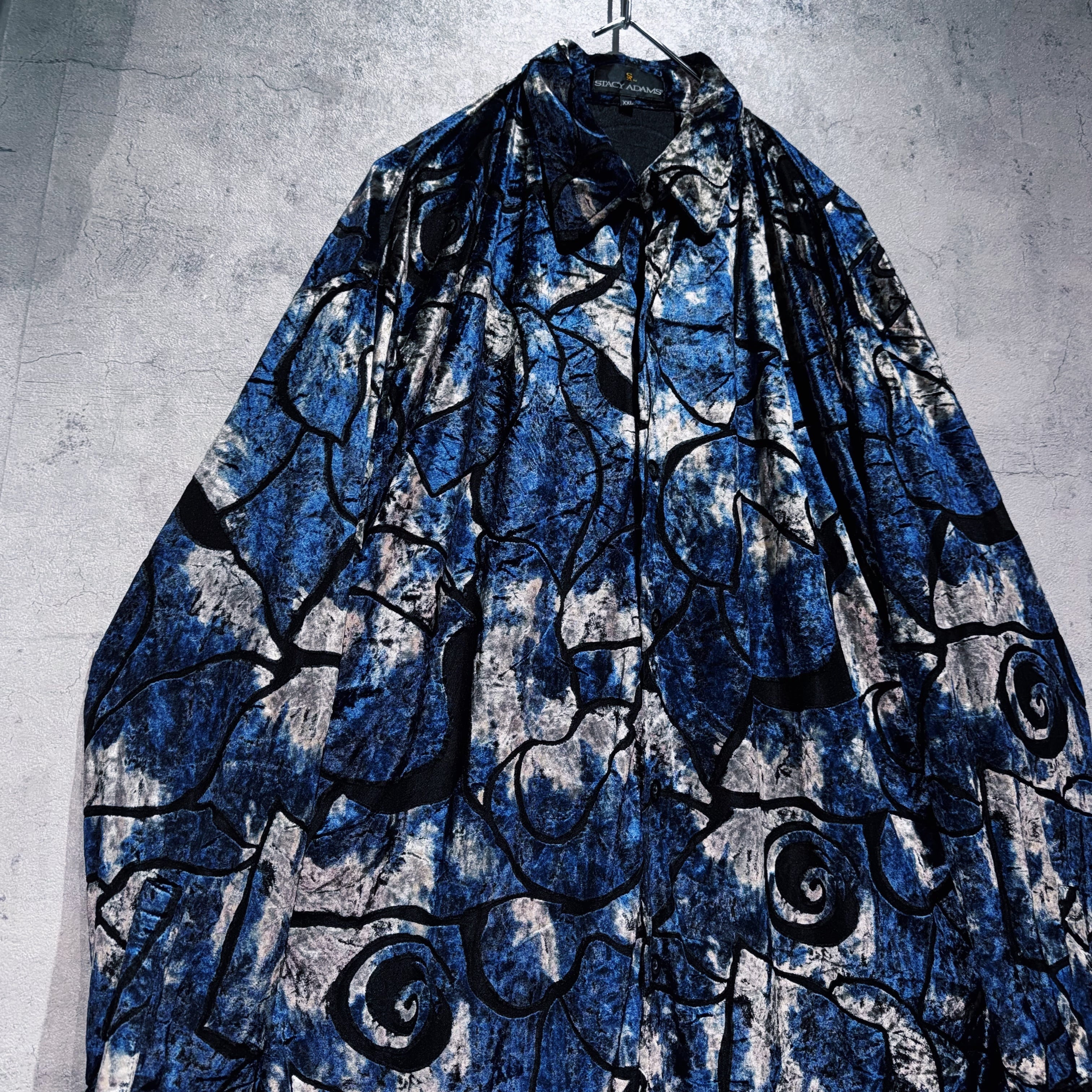 異素材の中でも人気が高く高級感を演出してくれるベロア素材を採用したデザインシャツ。その素材でアート柄を表現し、特有の光沢も相まってラグジュアリーな仕上がりに。