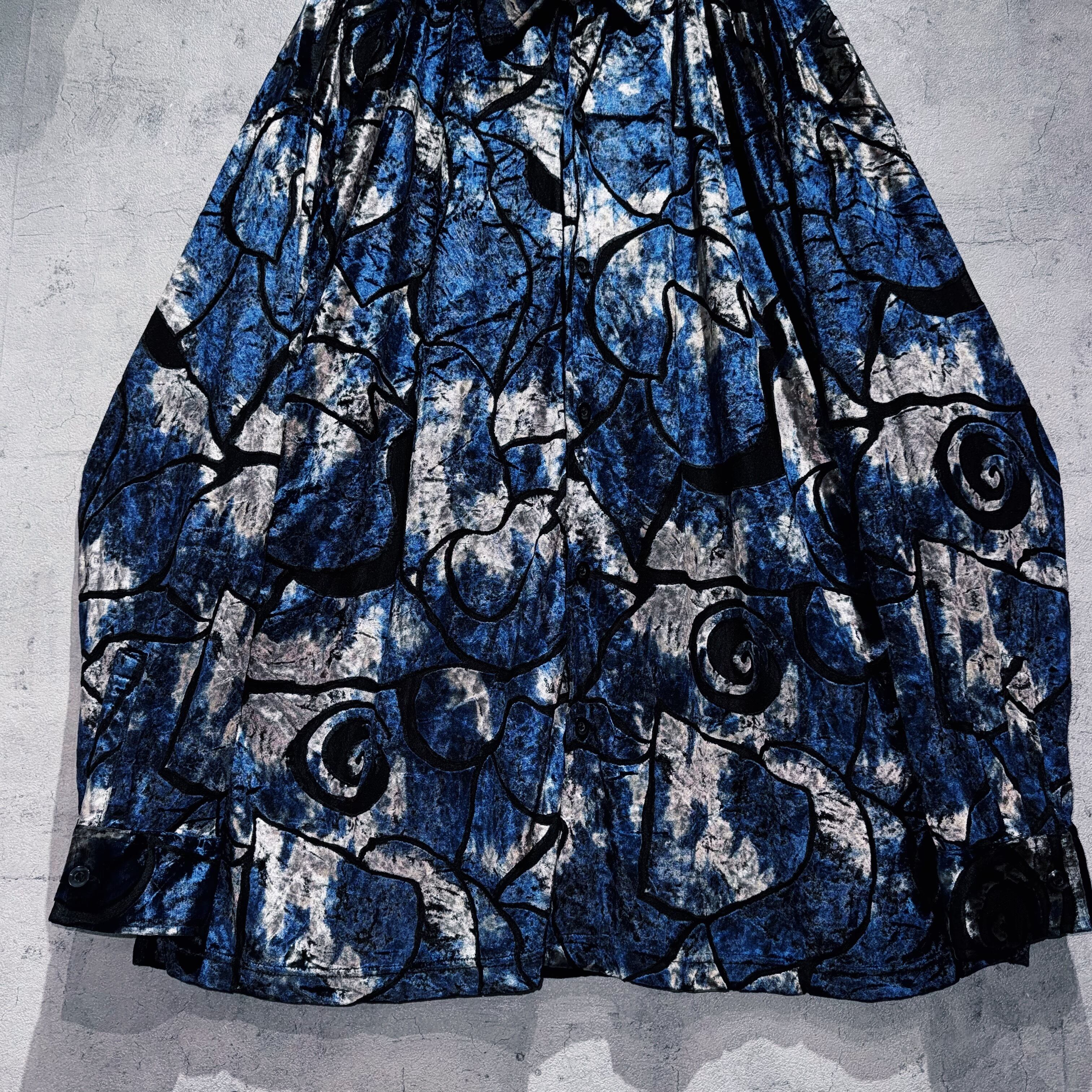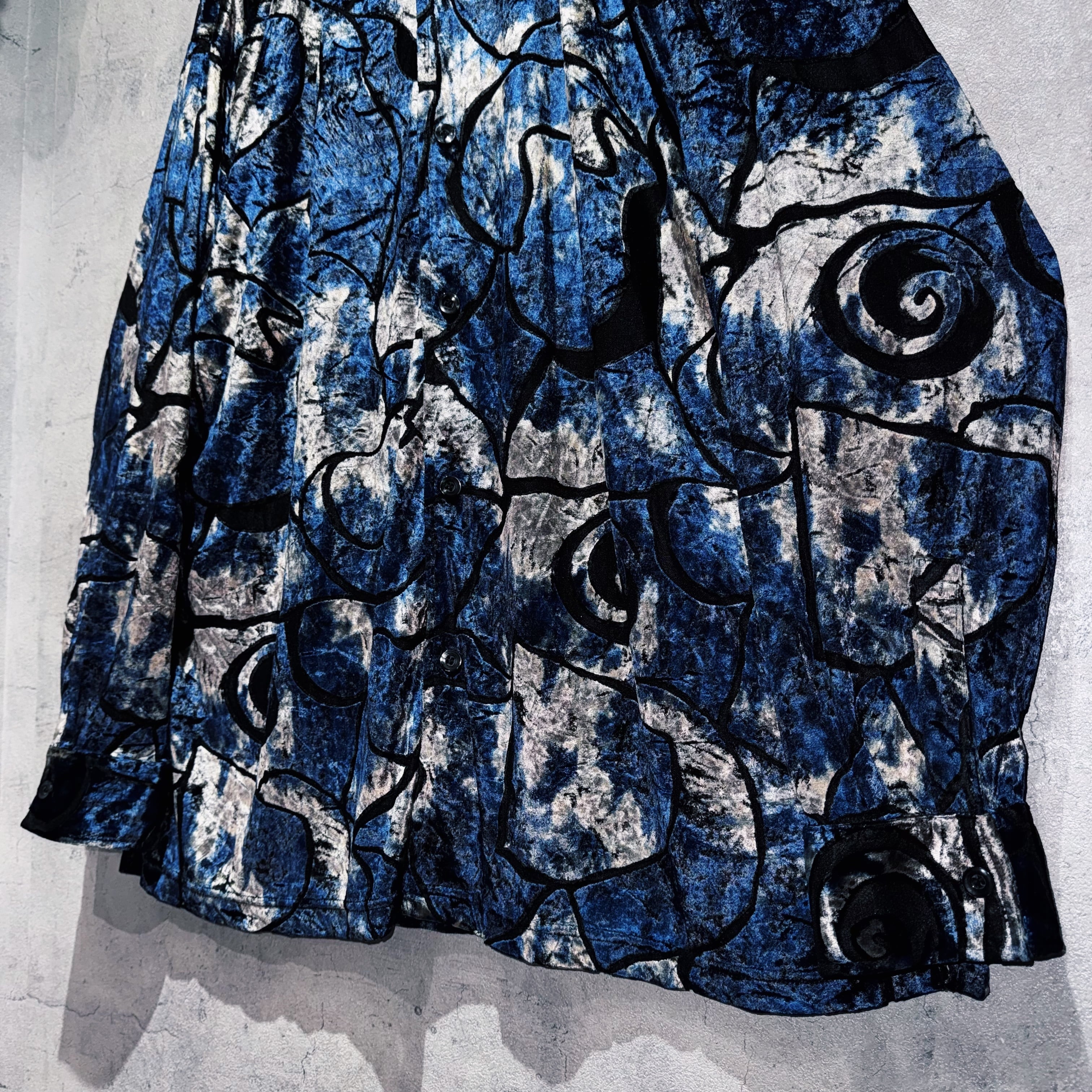 vintage Art graphic pattern design velvet sheer shirt