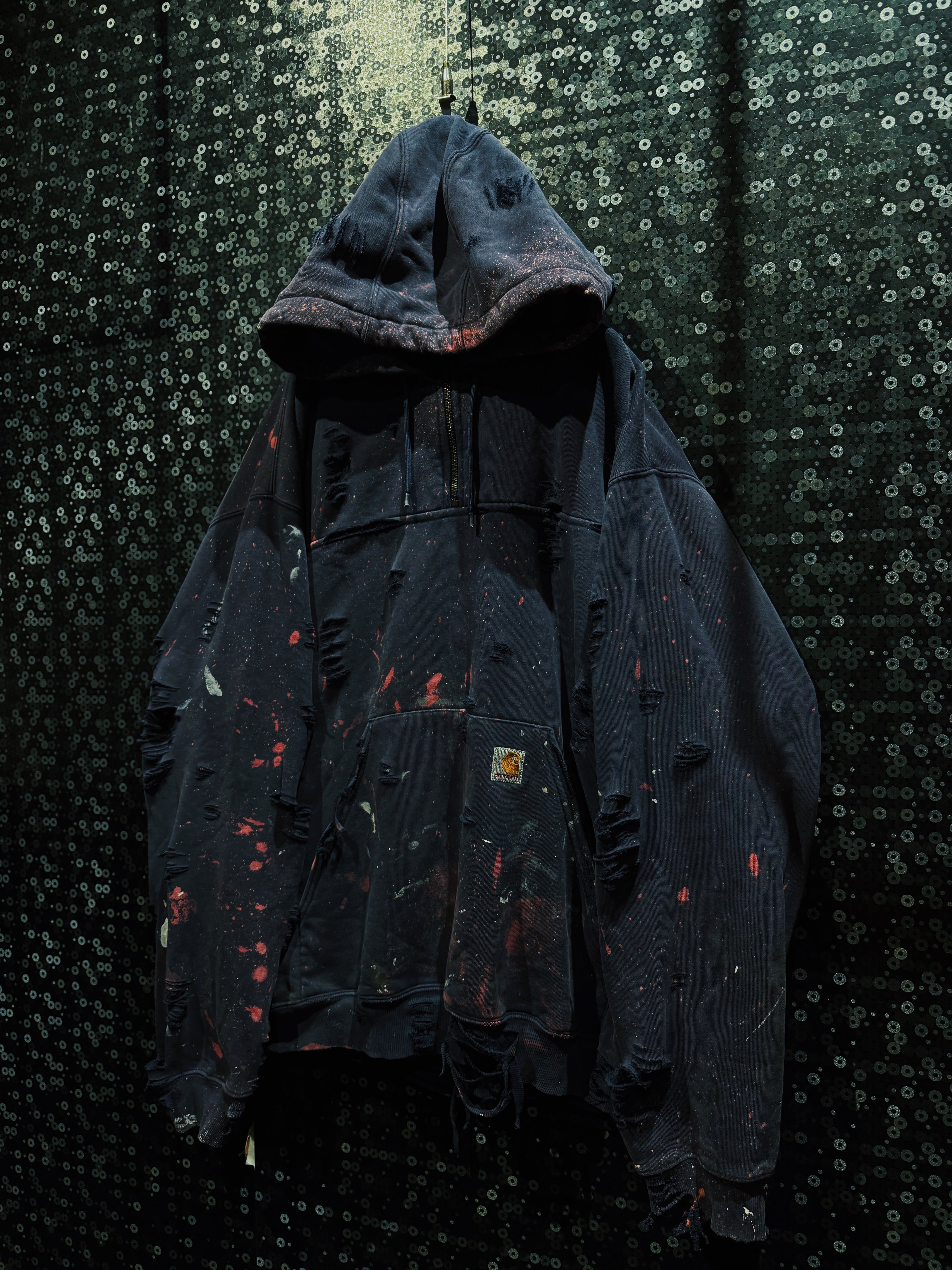 【ÆIEM】original “boro” re:make Carhartt Destroyed Paint Zip Hoodie