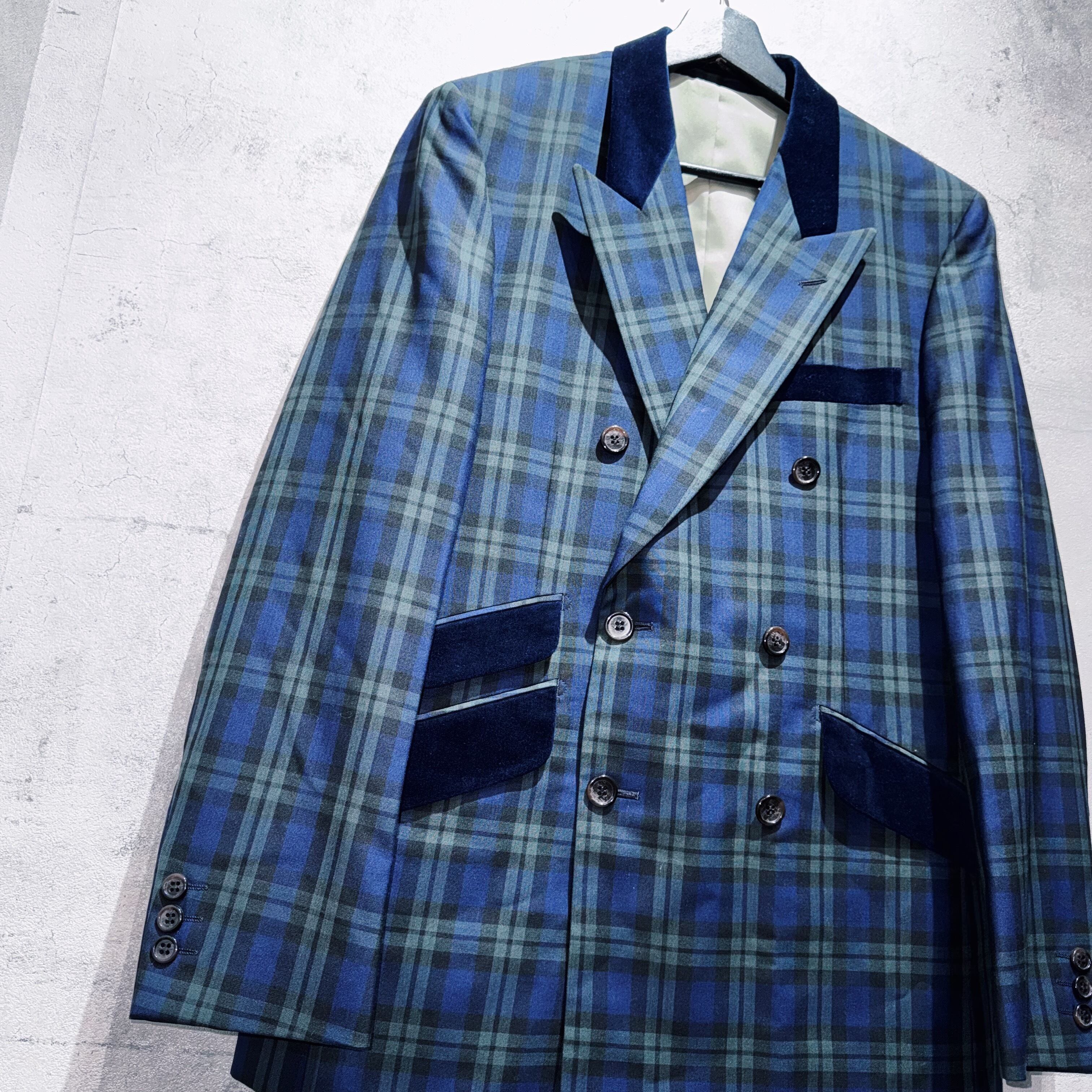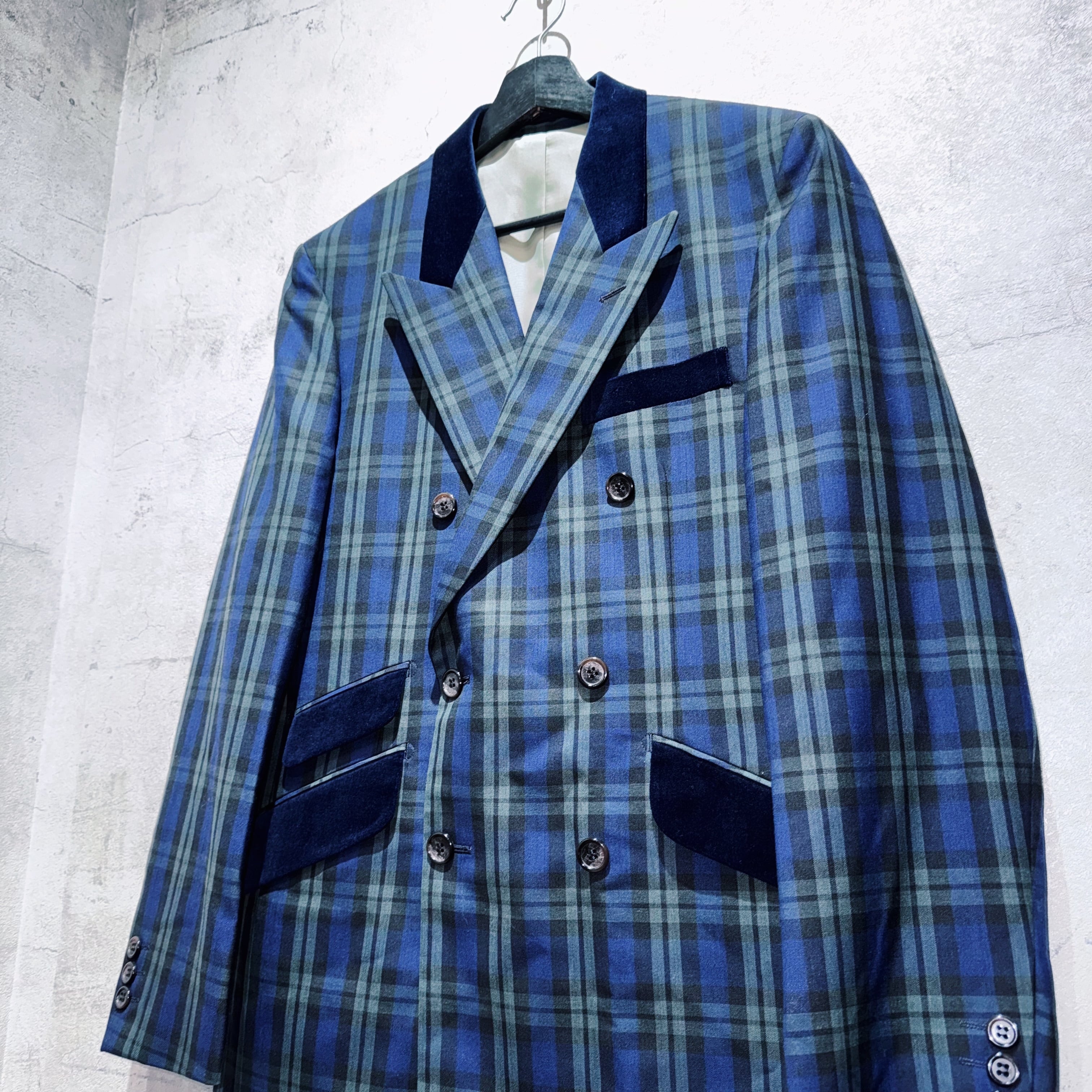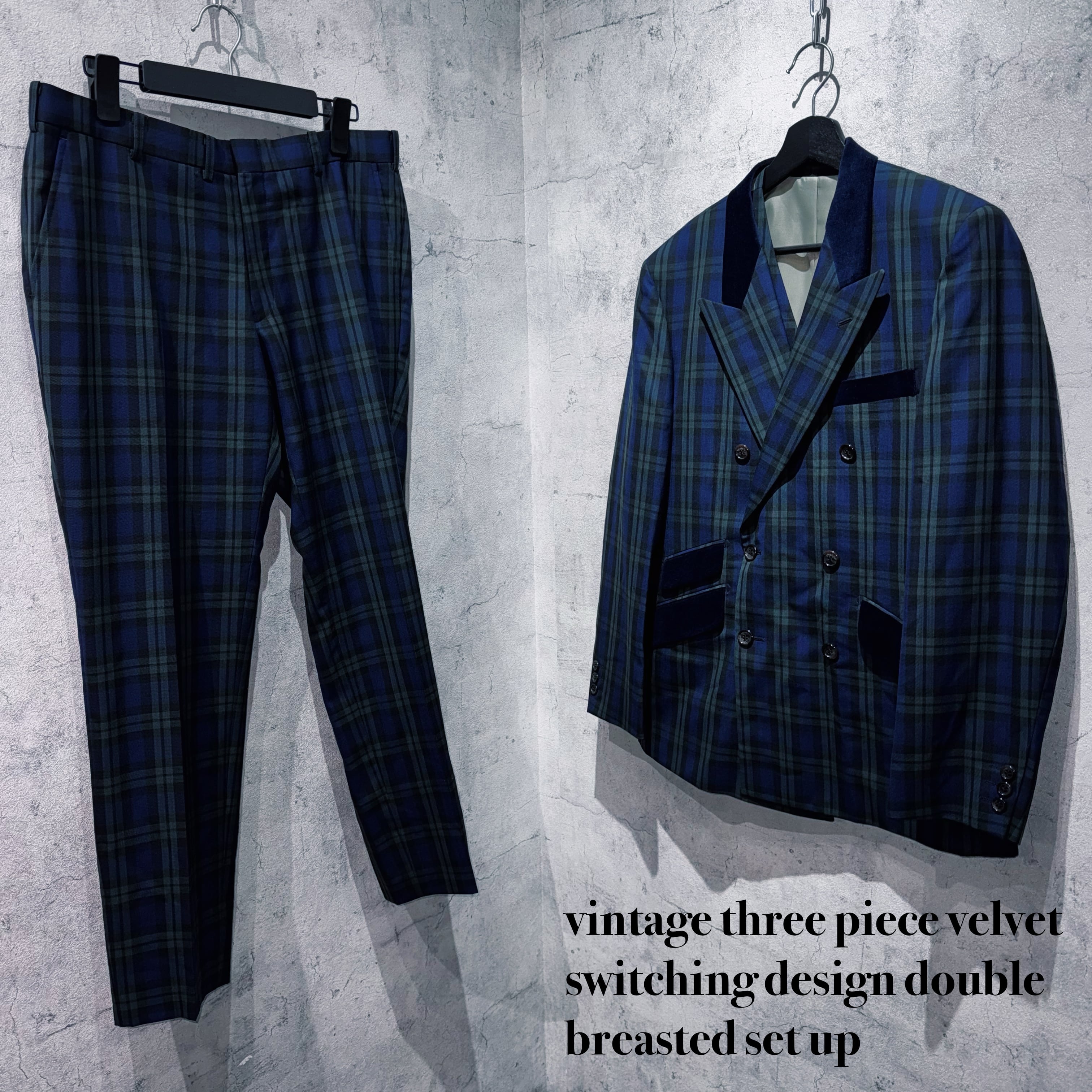 ヴィンテージスリーピースベルベットスイッチングデザインダブルブレストセットアップ