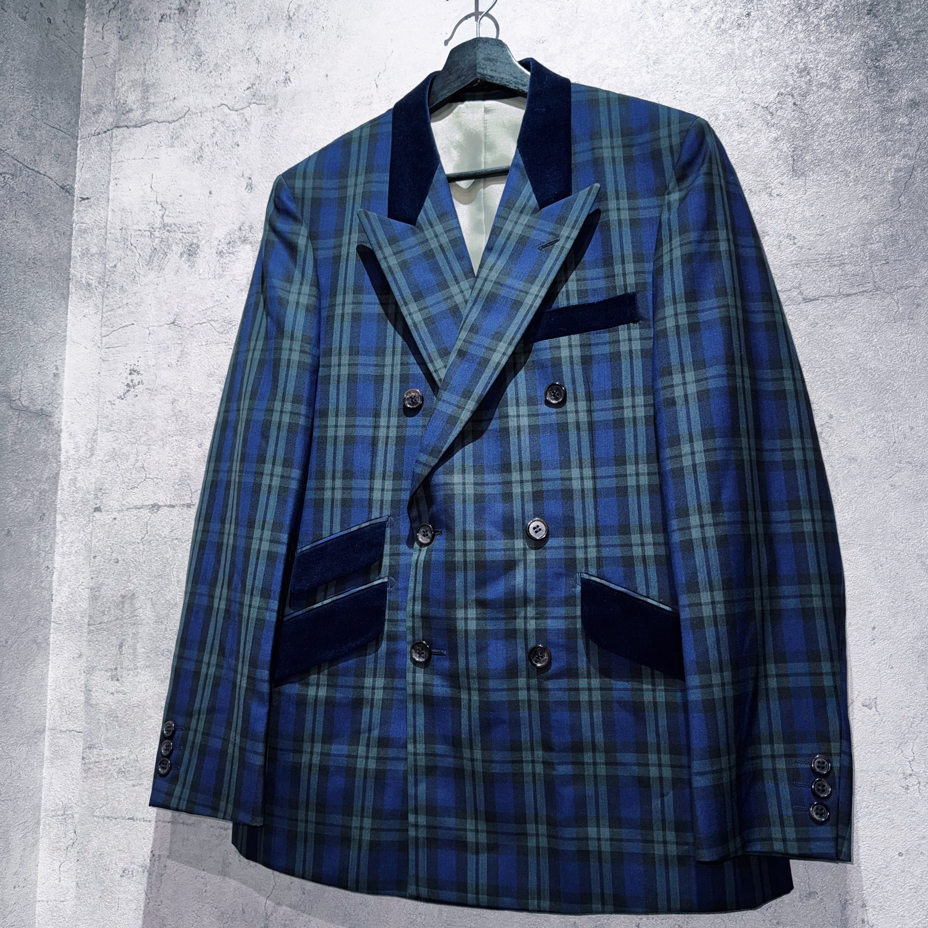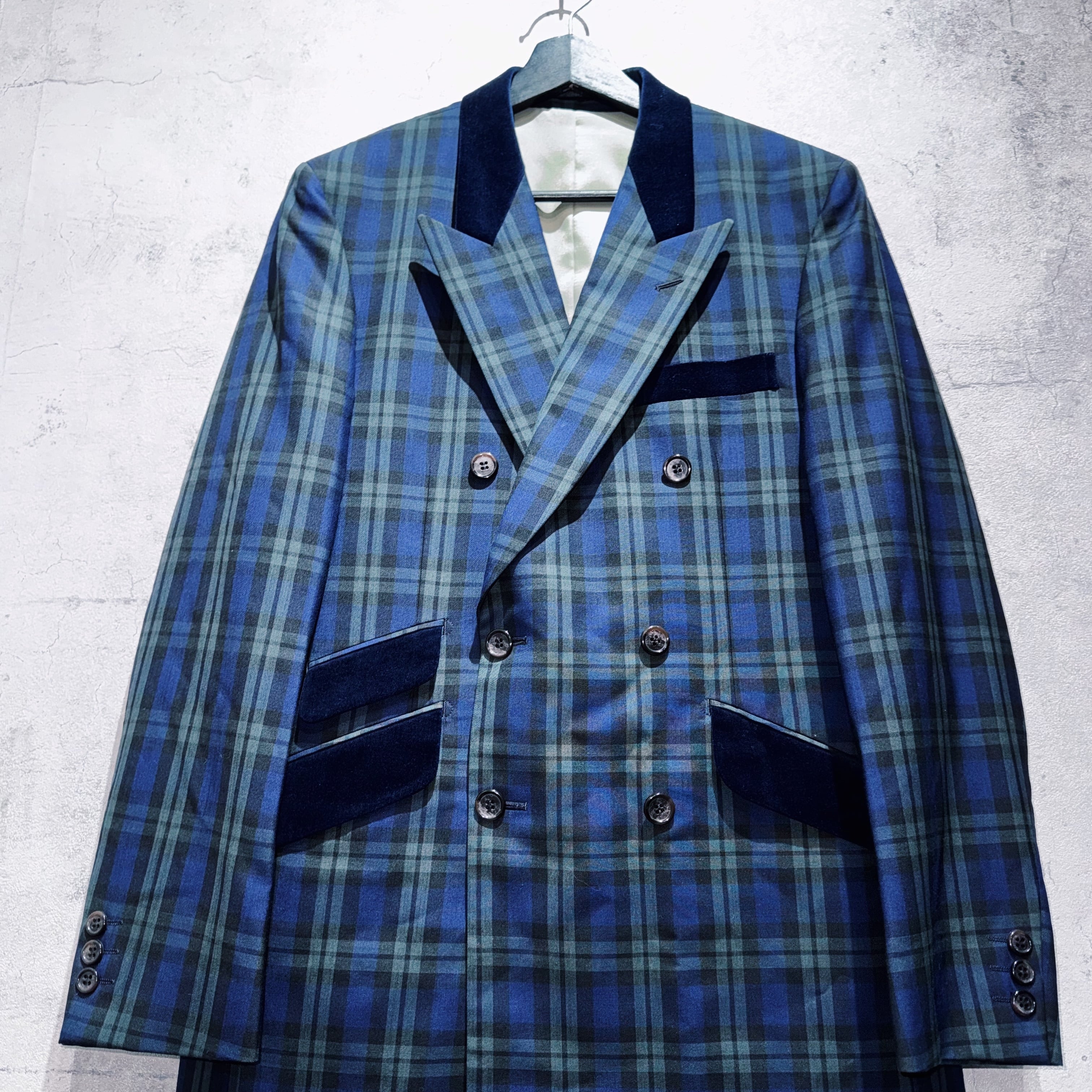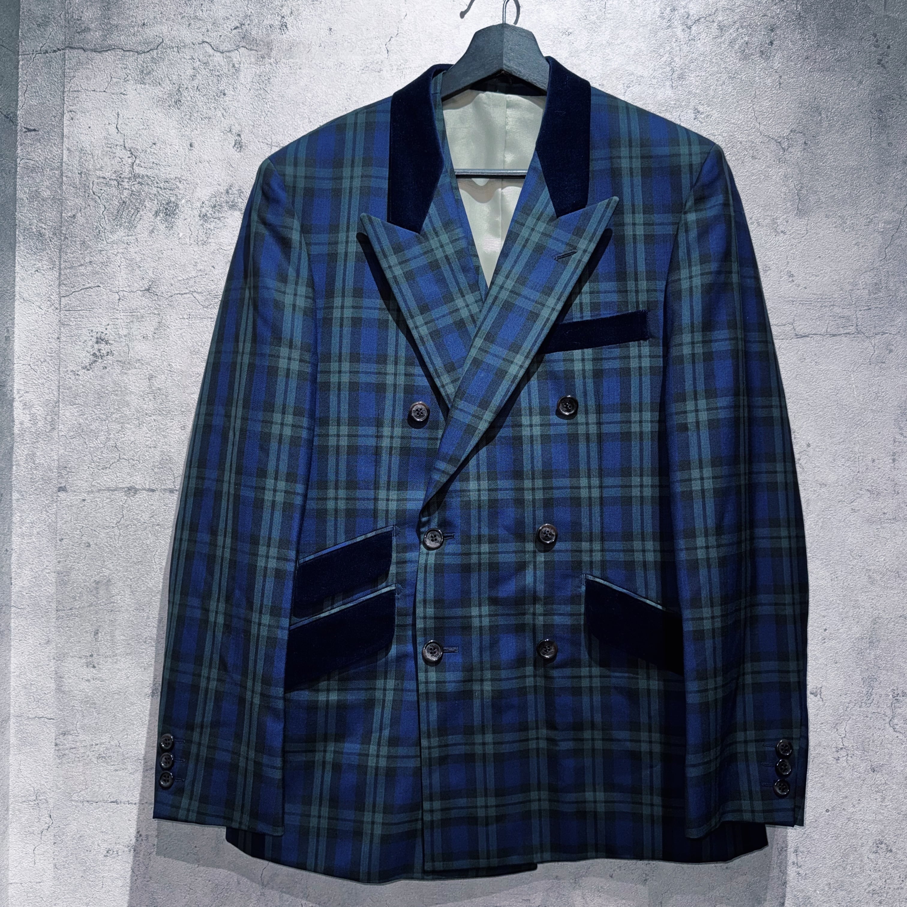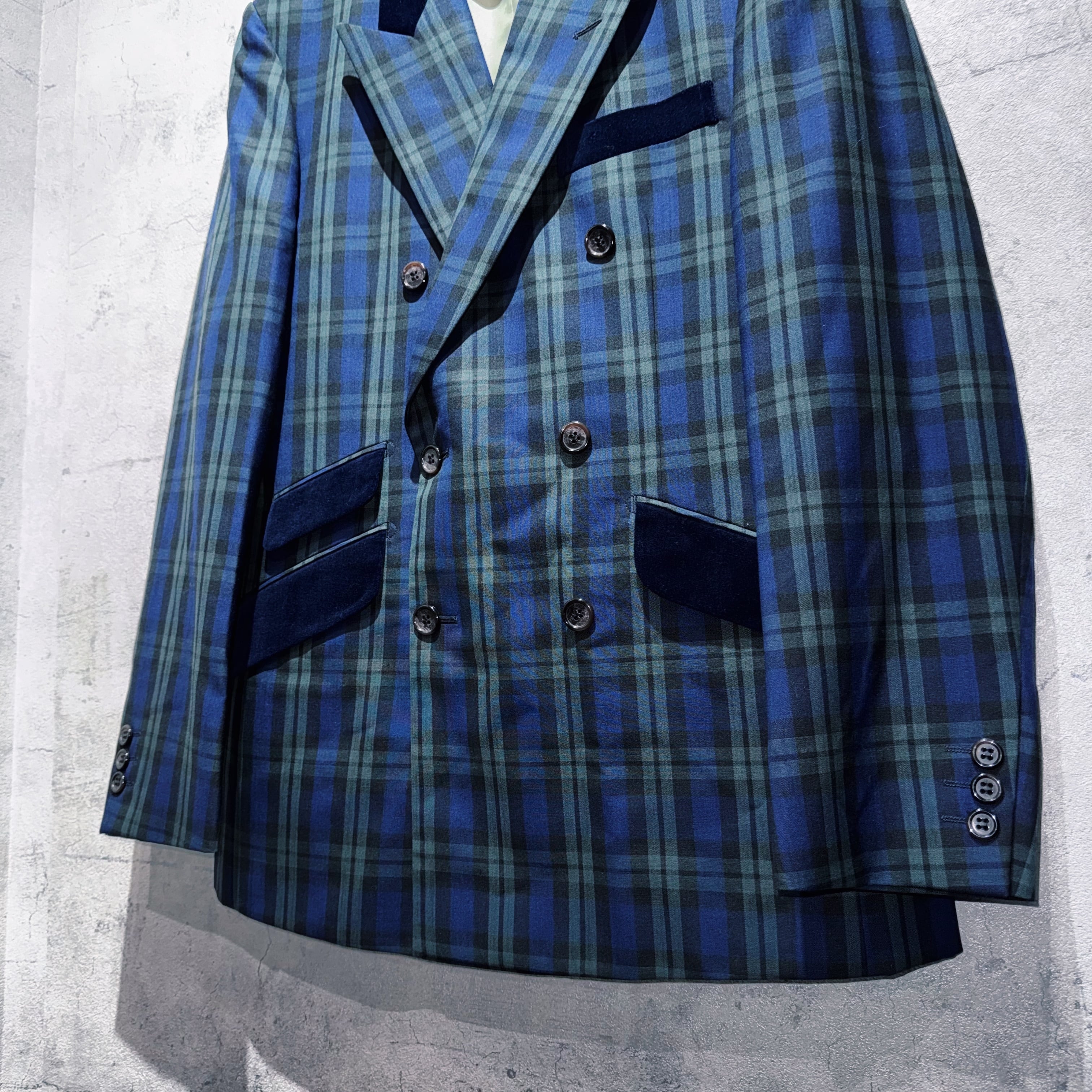 ヴィンテージスリーピースベルベットスイッチングデザインダブルブレストセットアップ