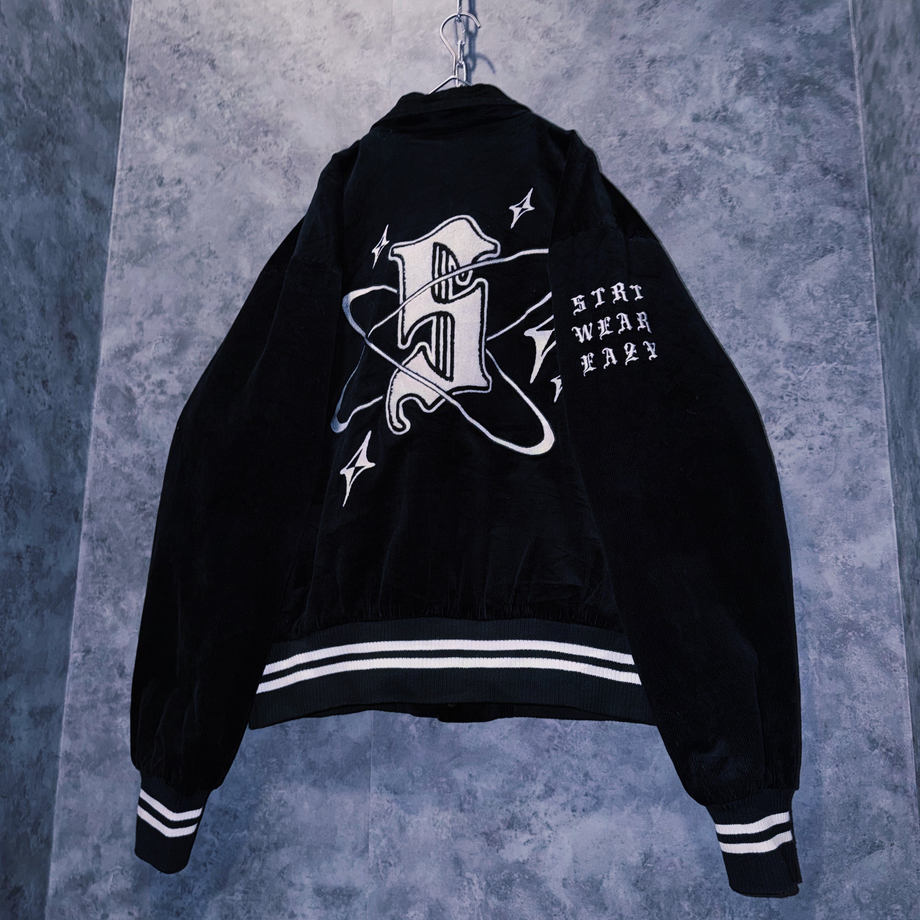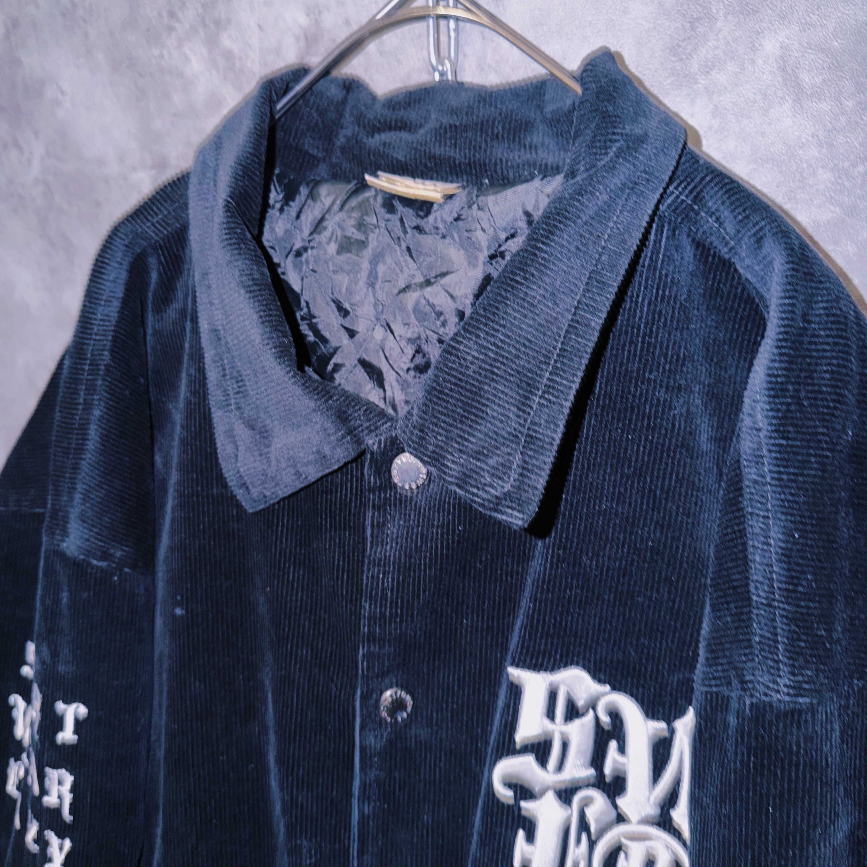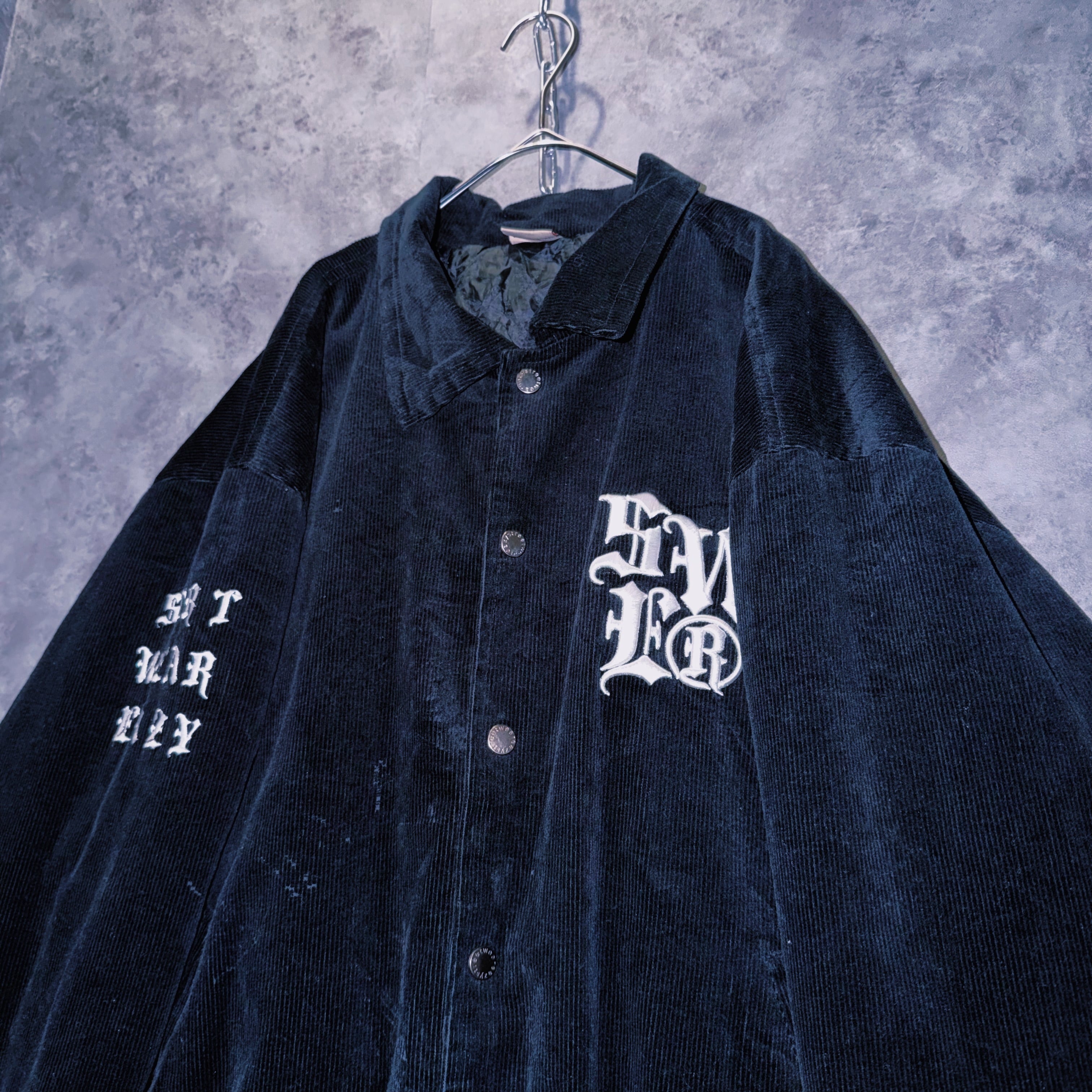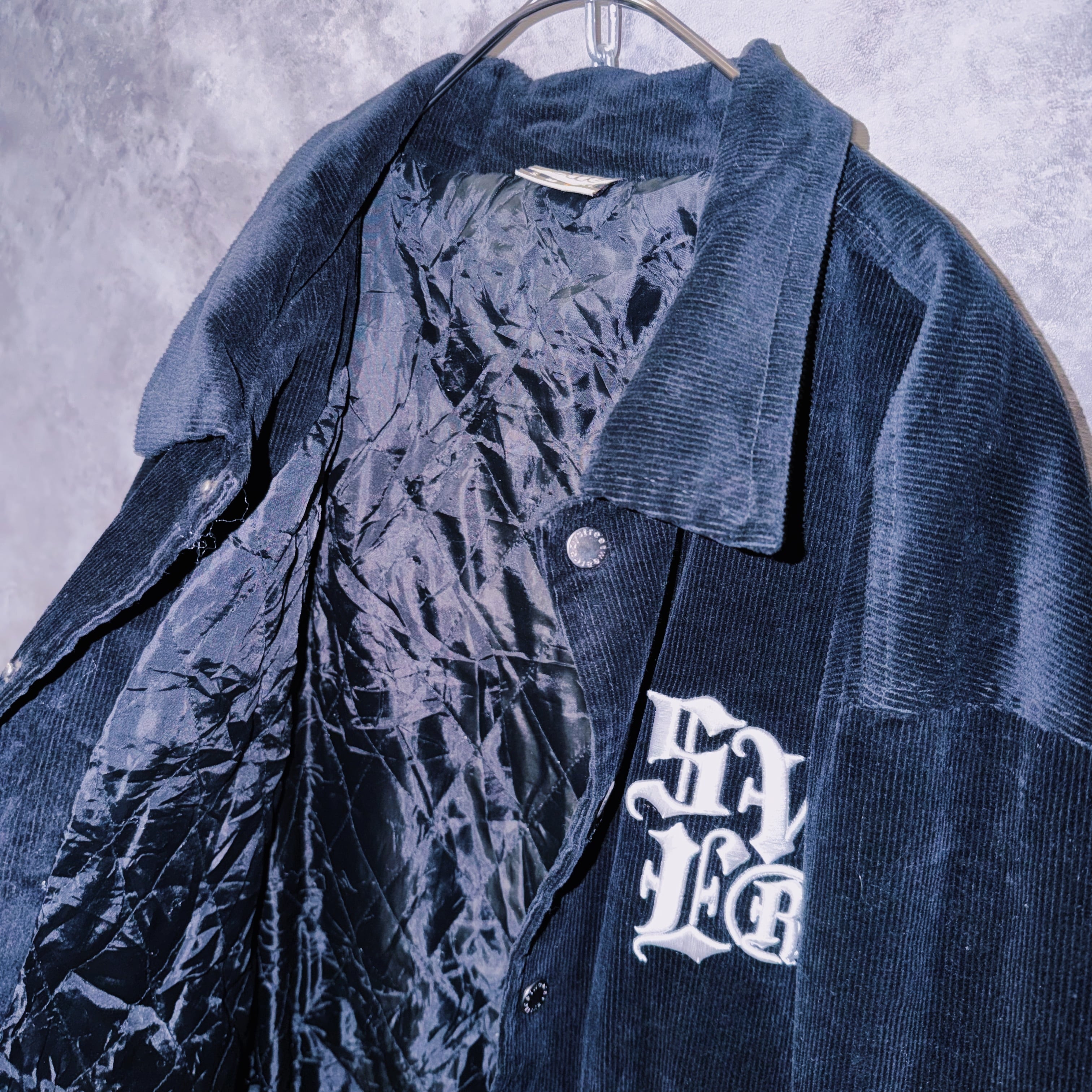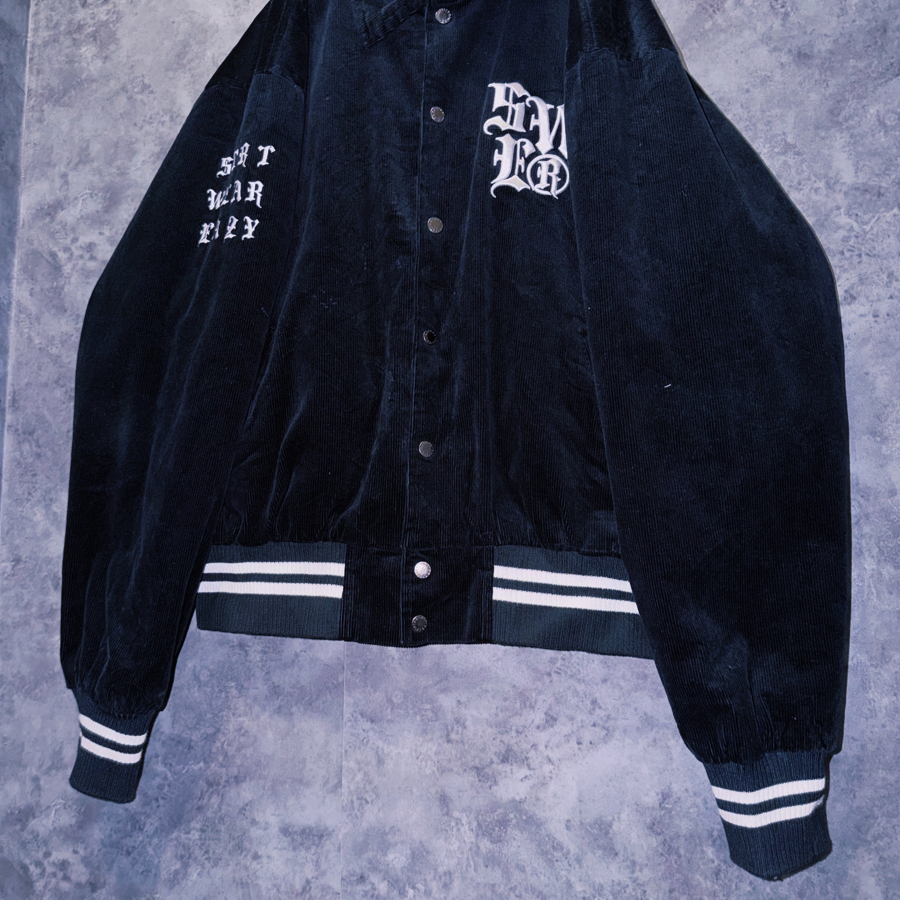 ヴィンテージブラックレターデザインコーデュロイマテリアルスタジアムジャケット
