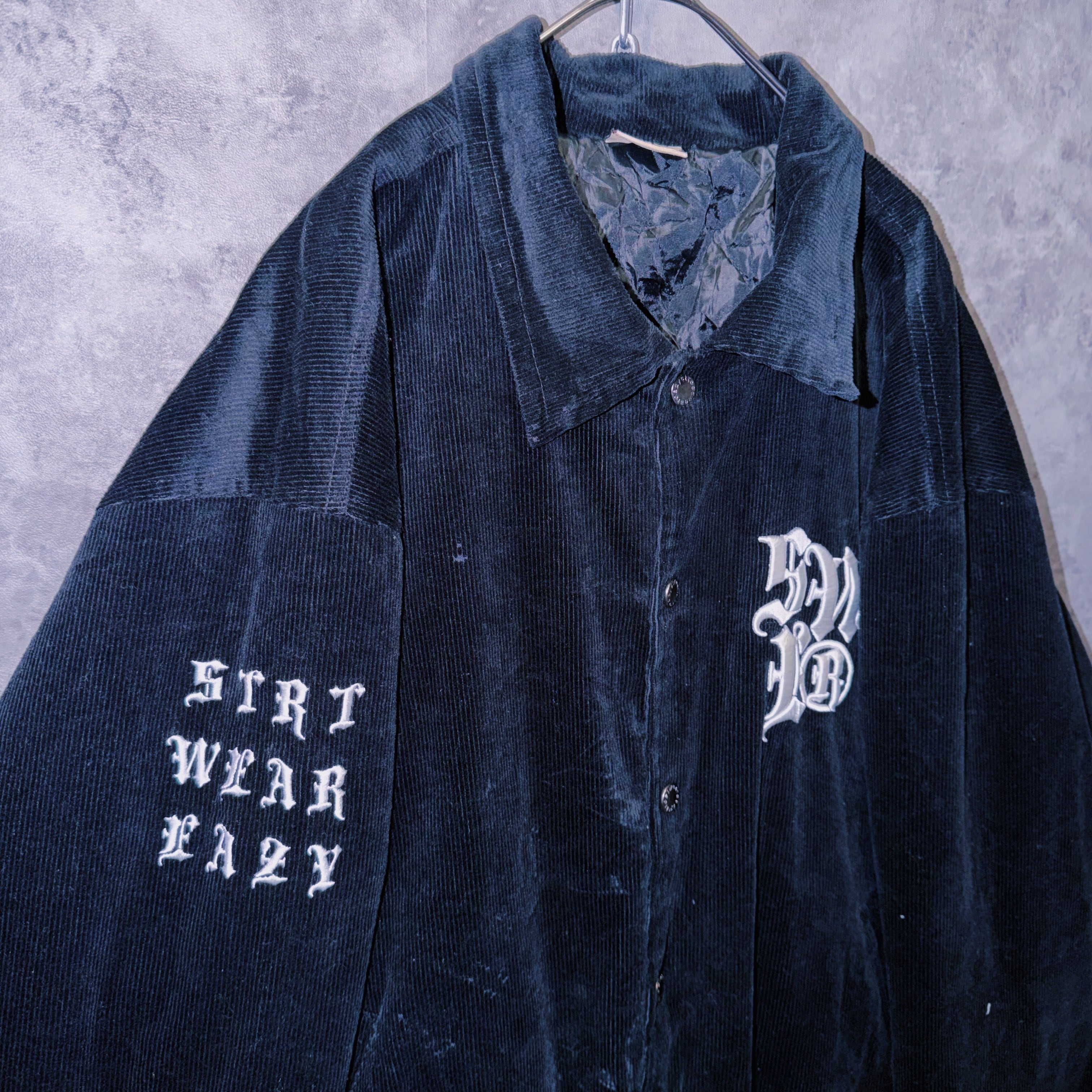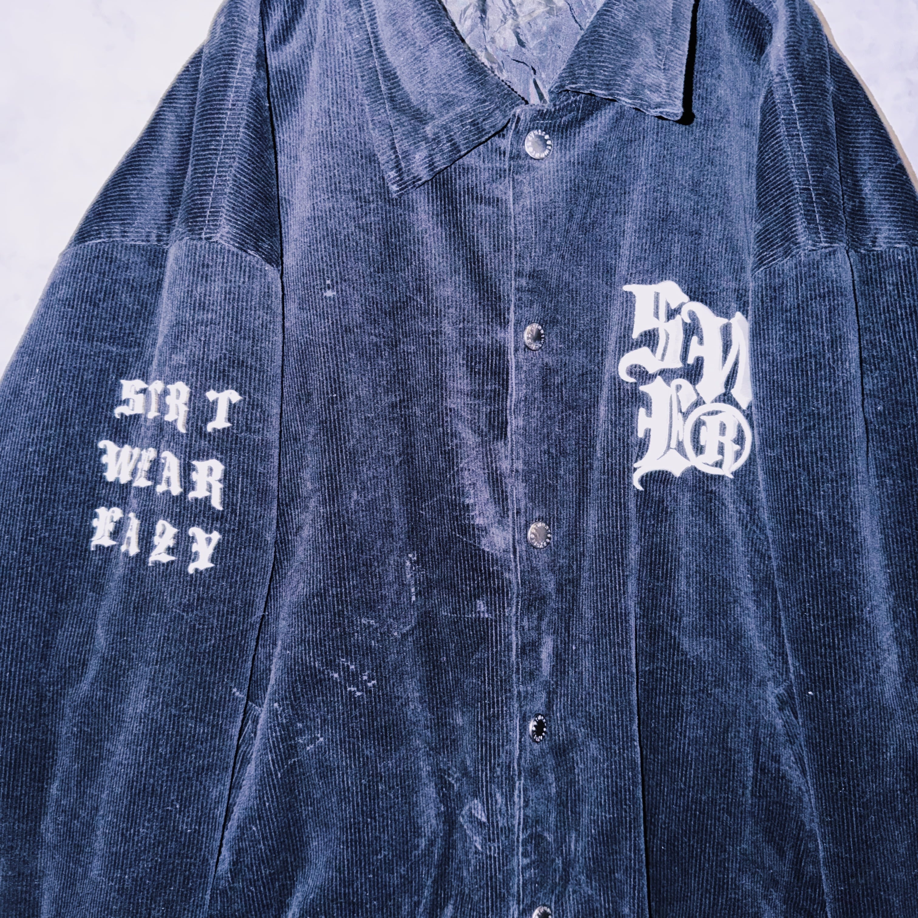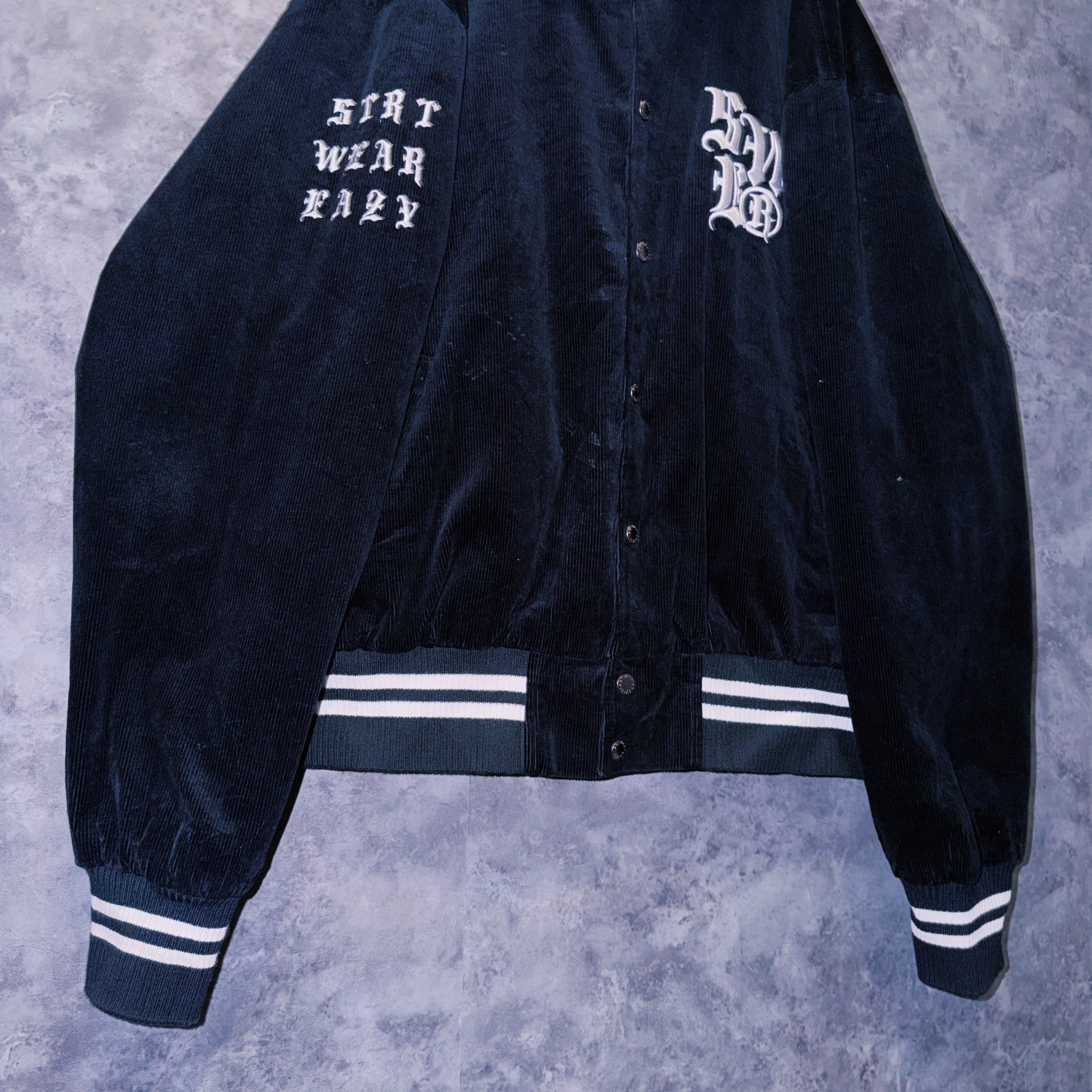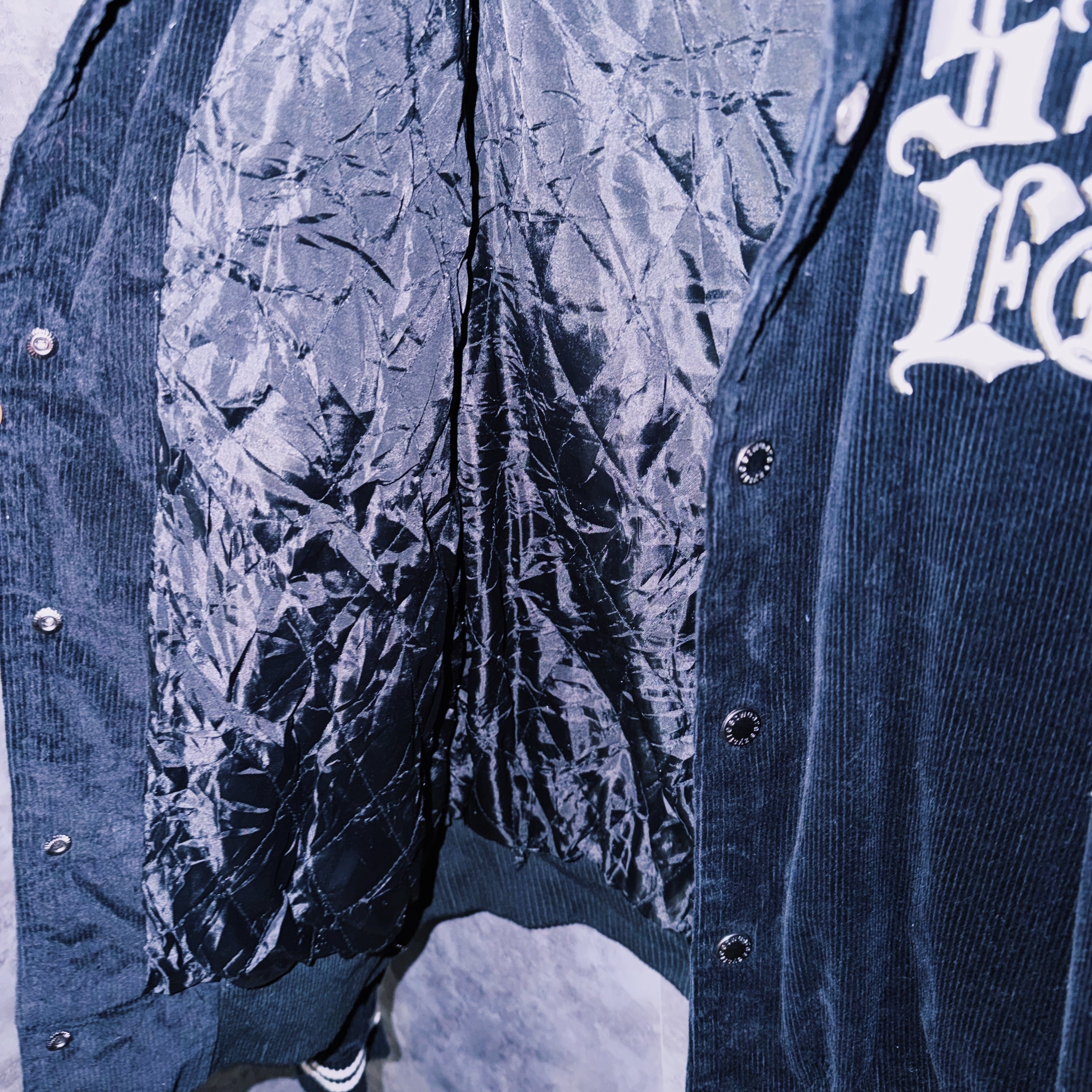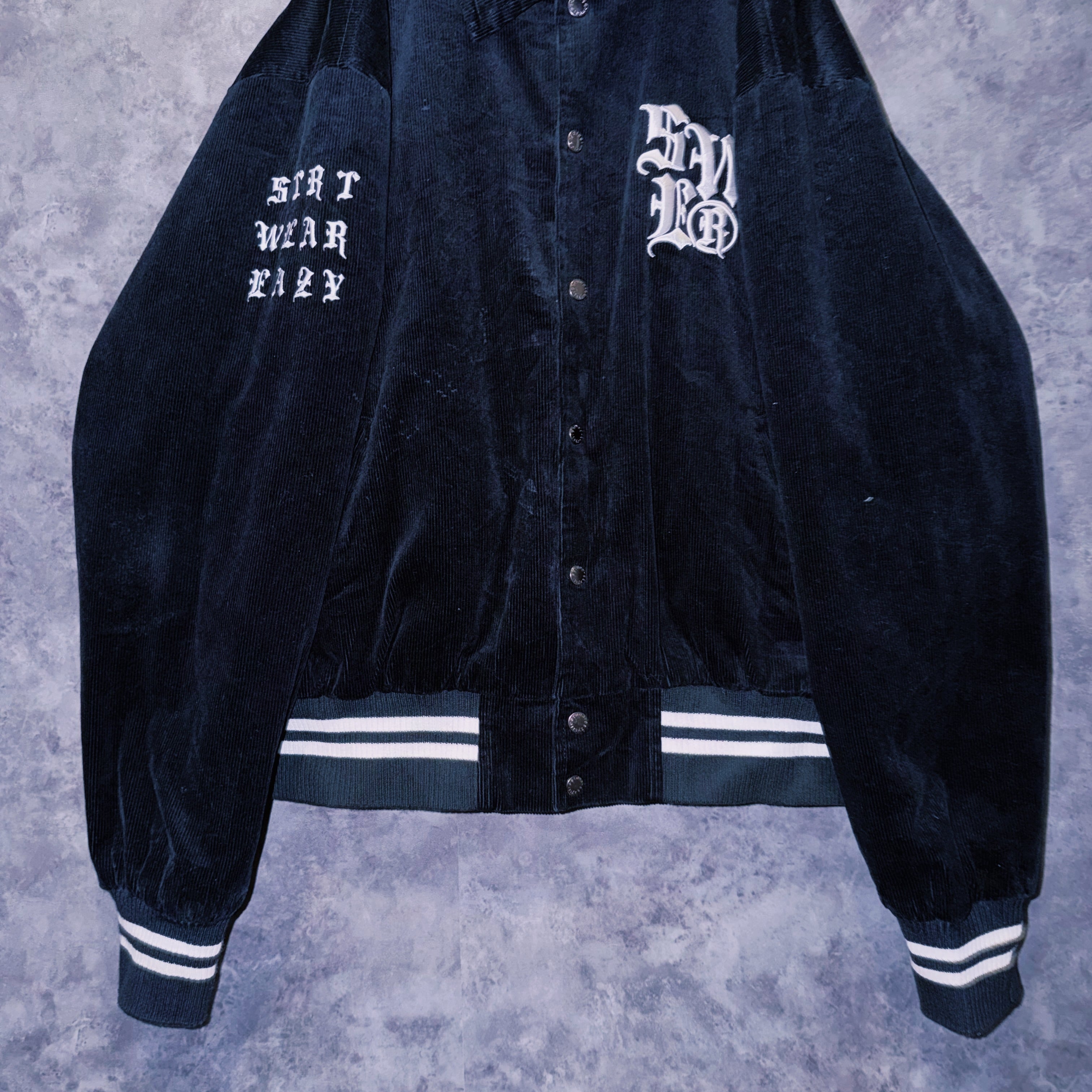 ヴィンテージブラックレターデザインコーデュロイマテリアルスタジアムジャケット