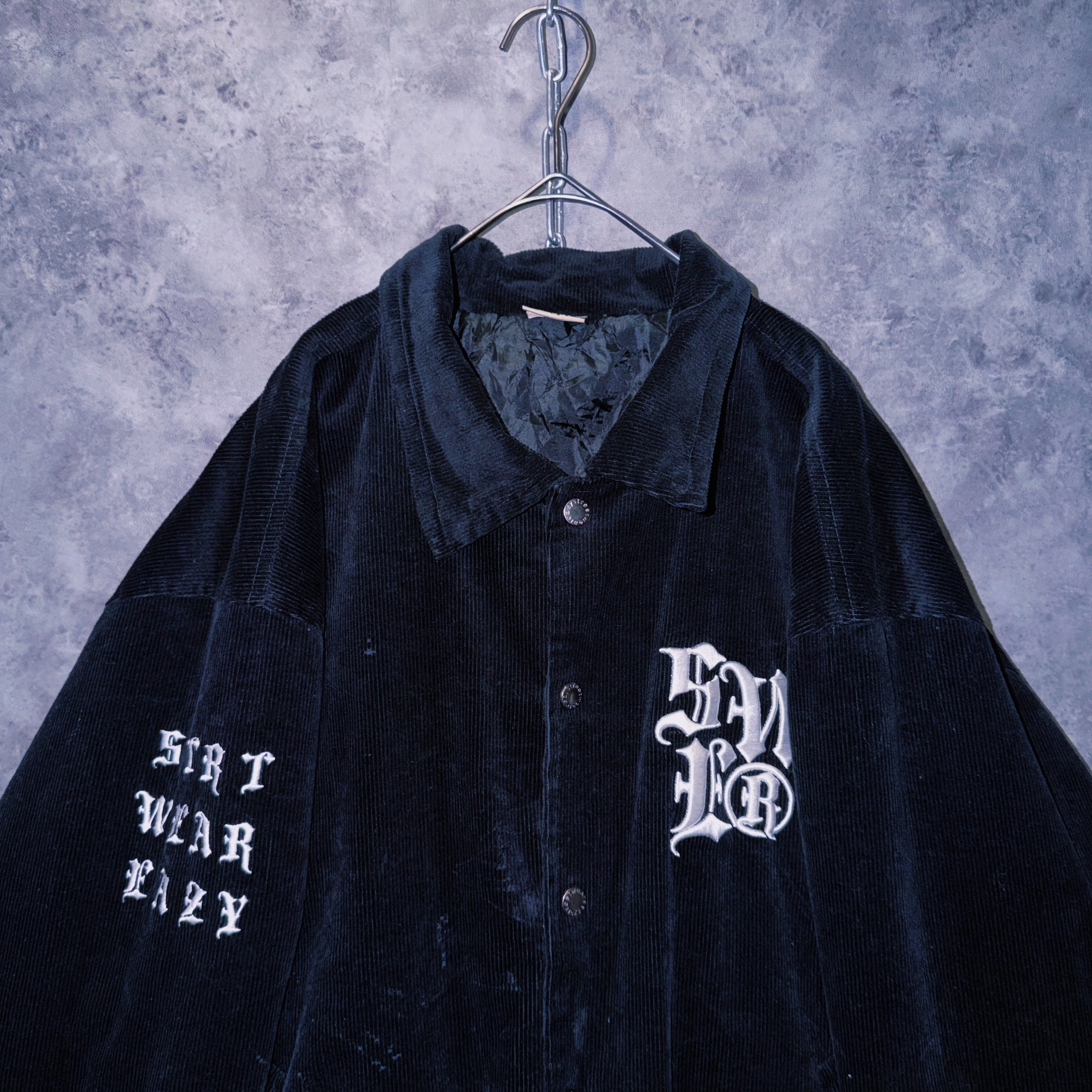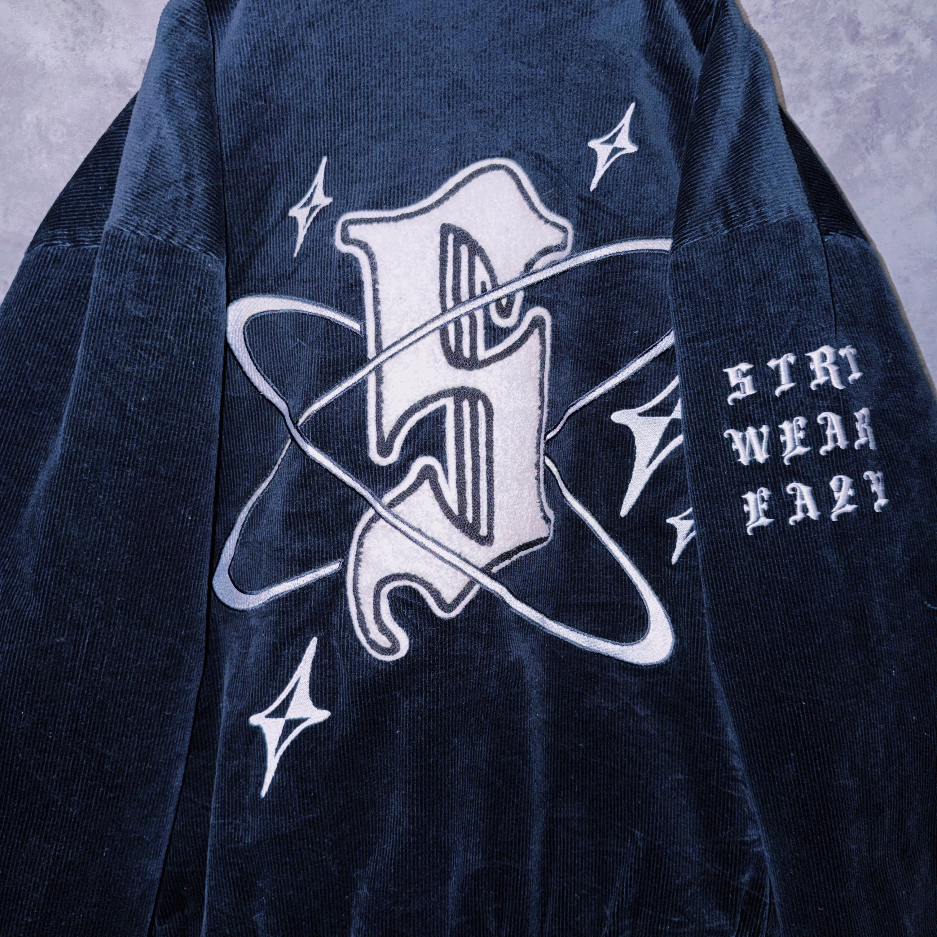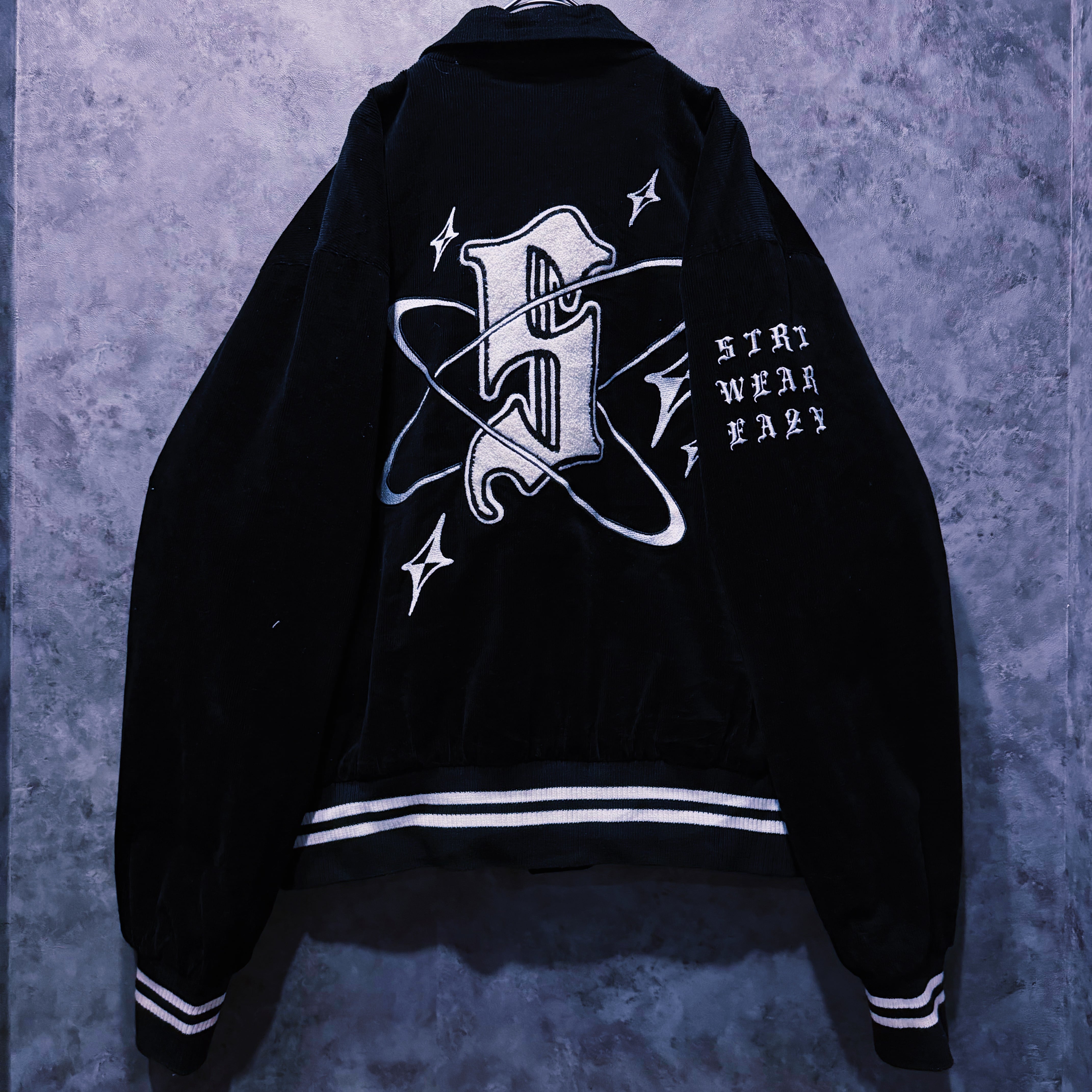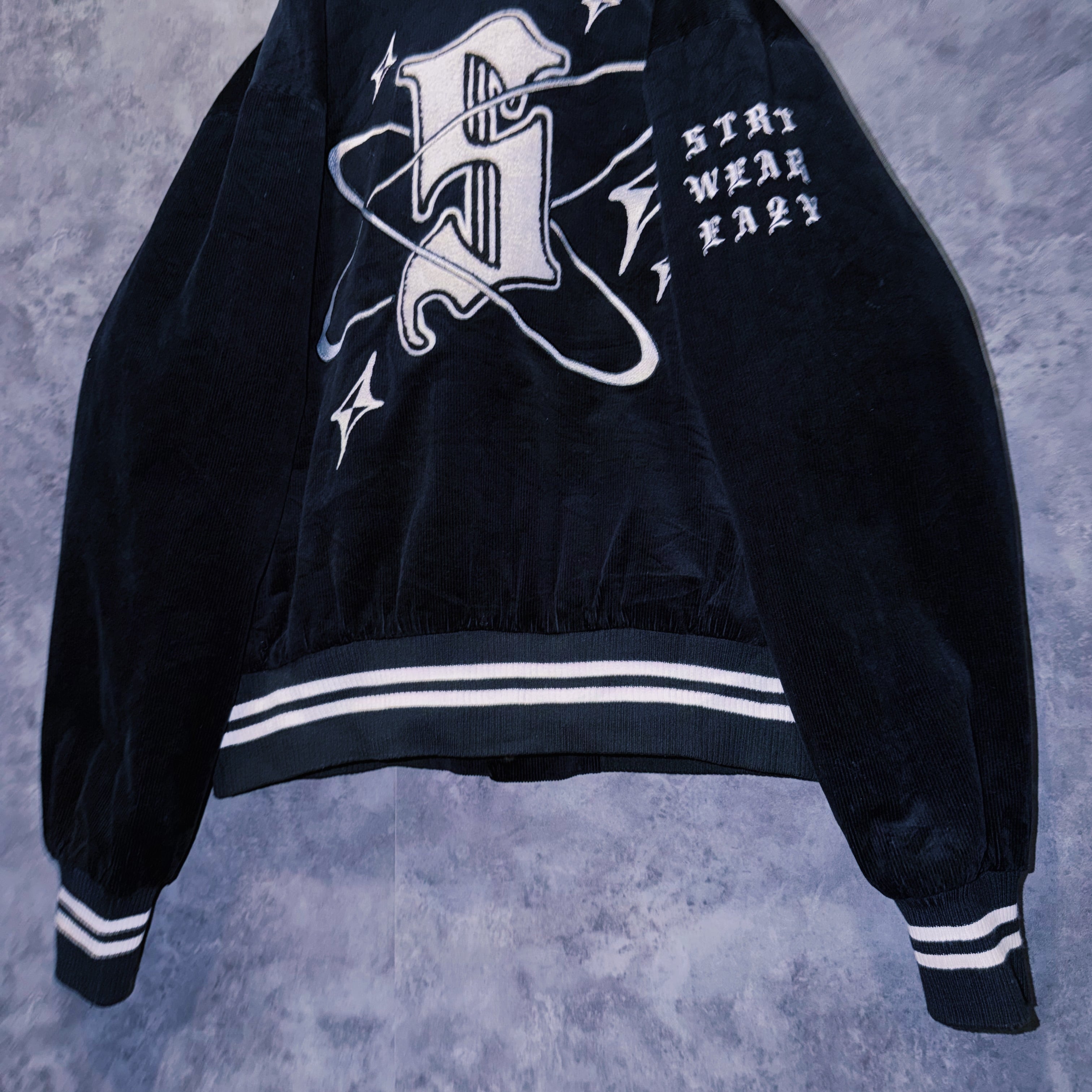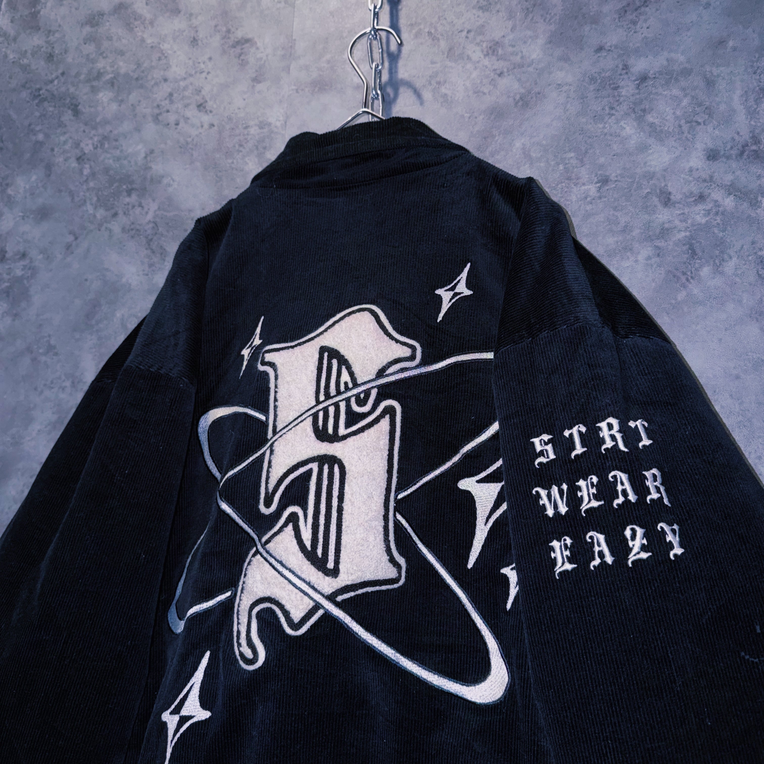 ヴィンテージブラックレターデザインコーデュロイマテリアルスタジアムジャケット