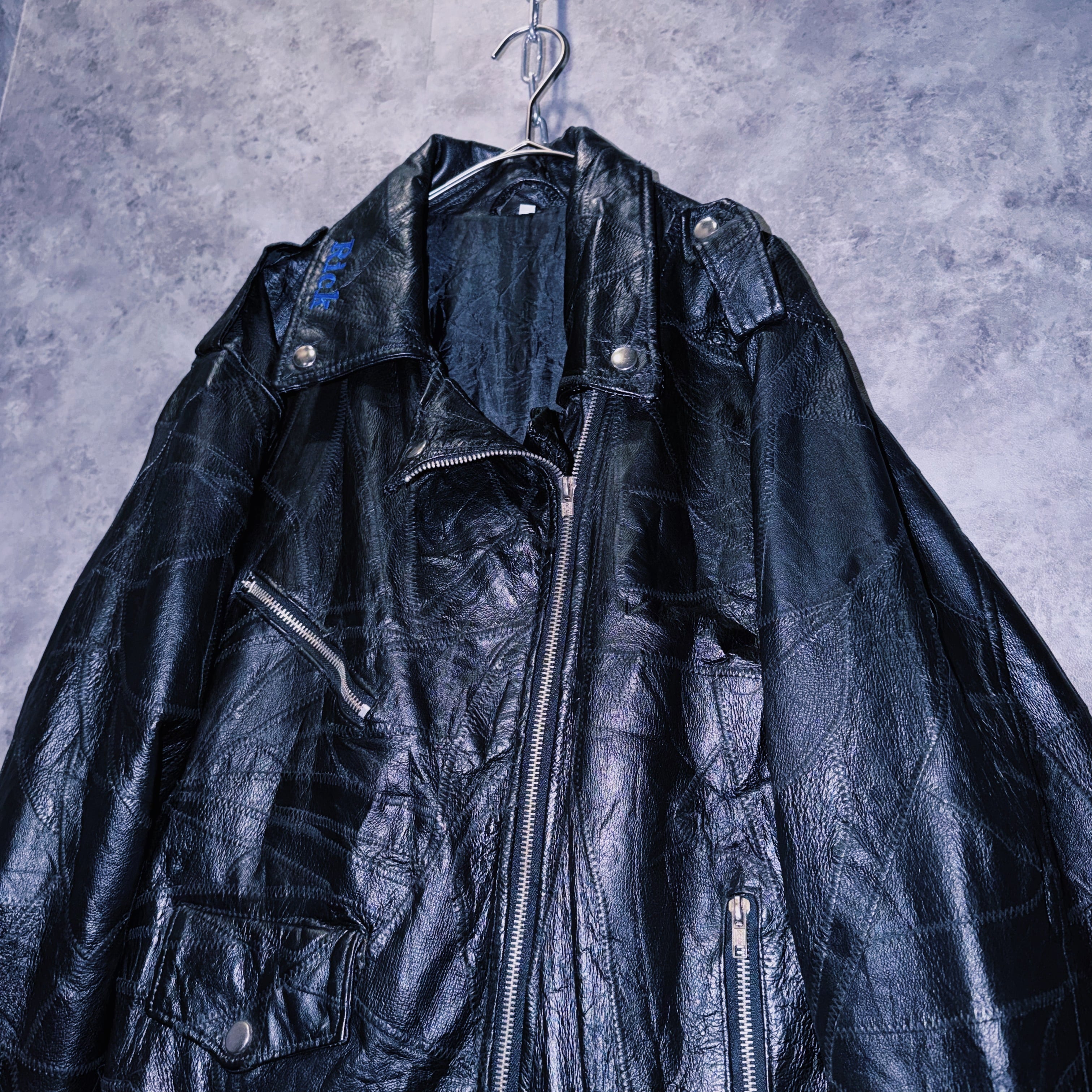 90'sヴィンテージブラックレザーダブルブレストライダースジャケット