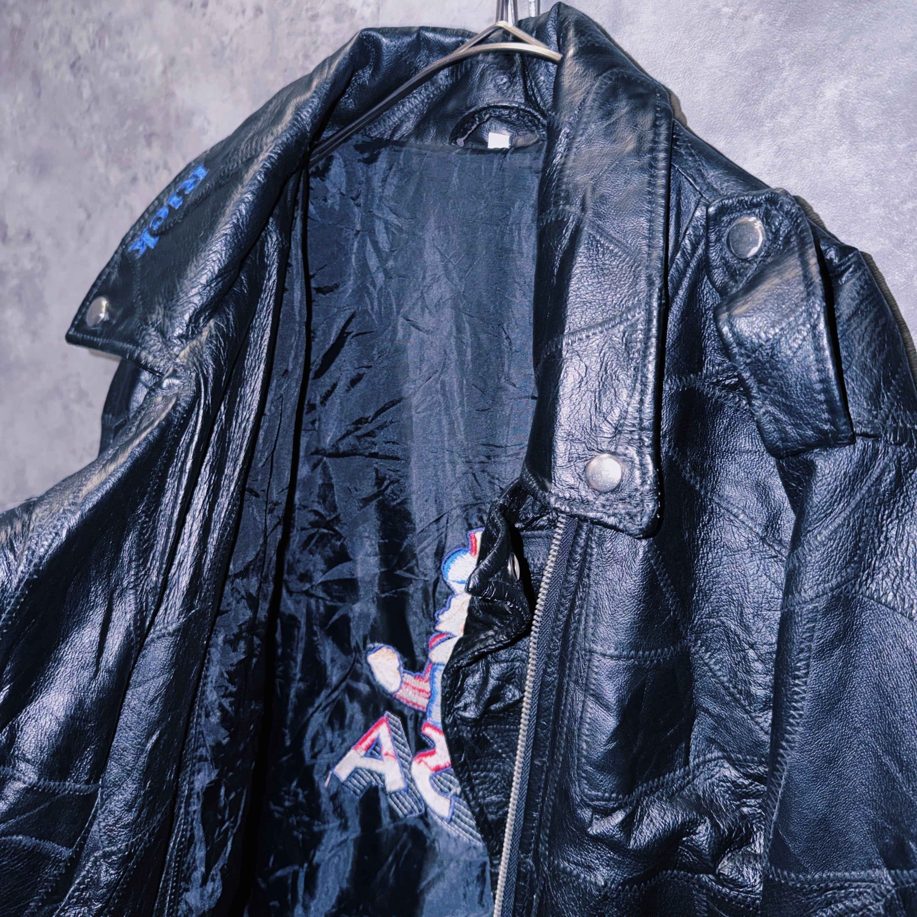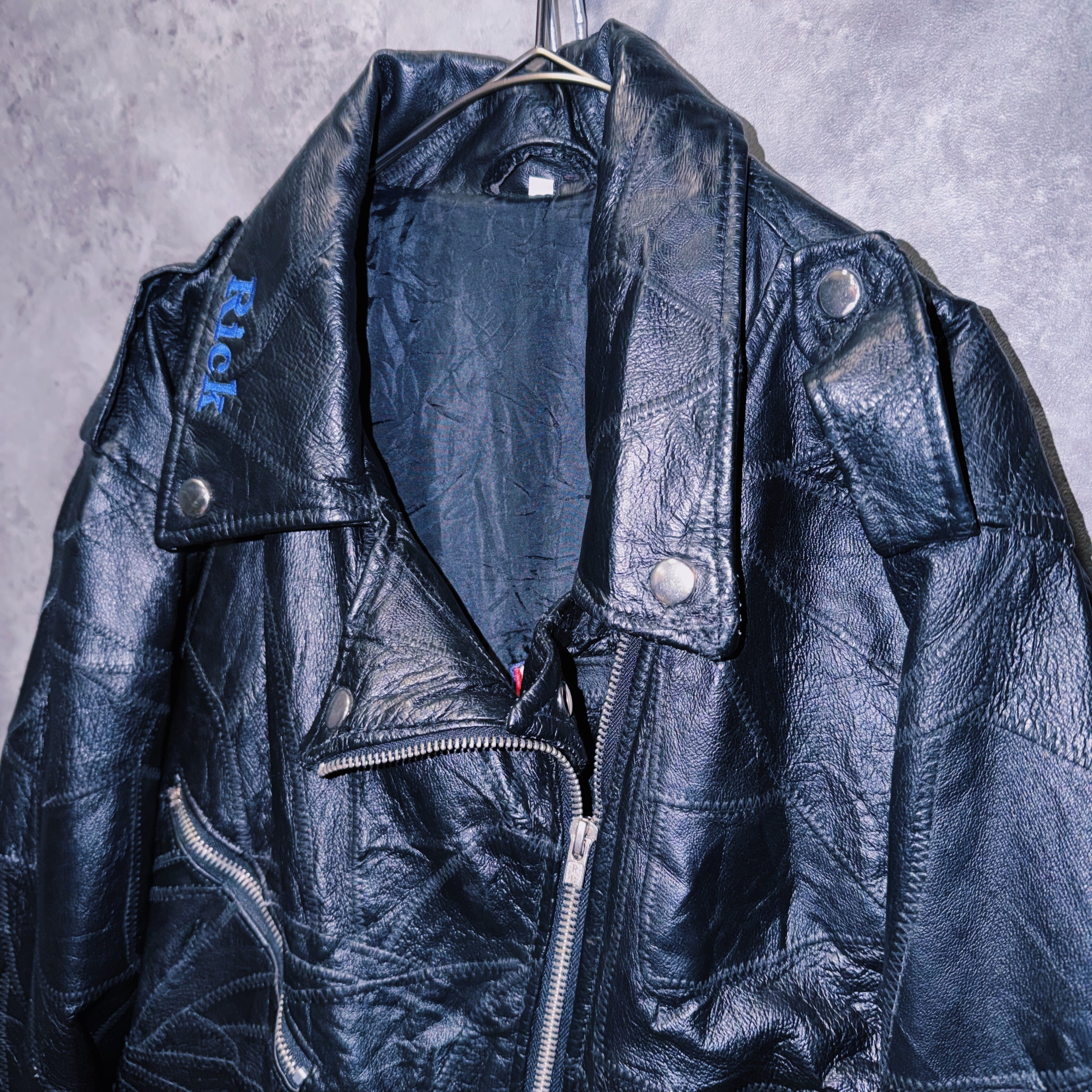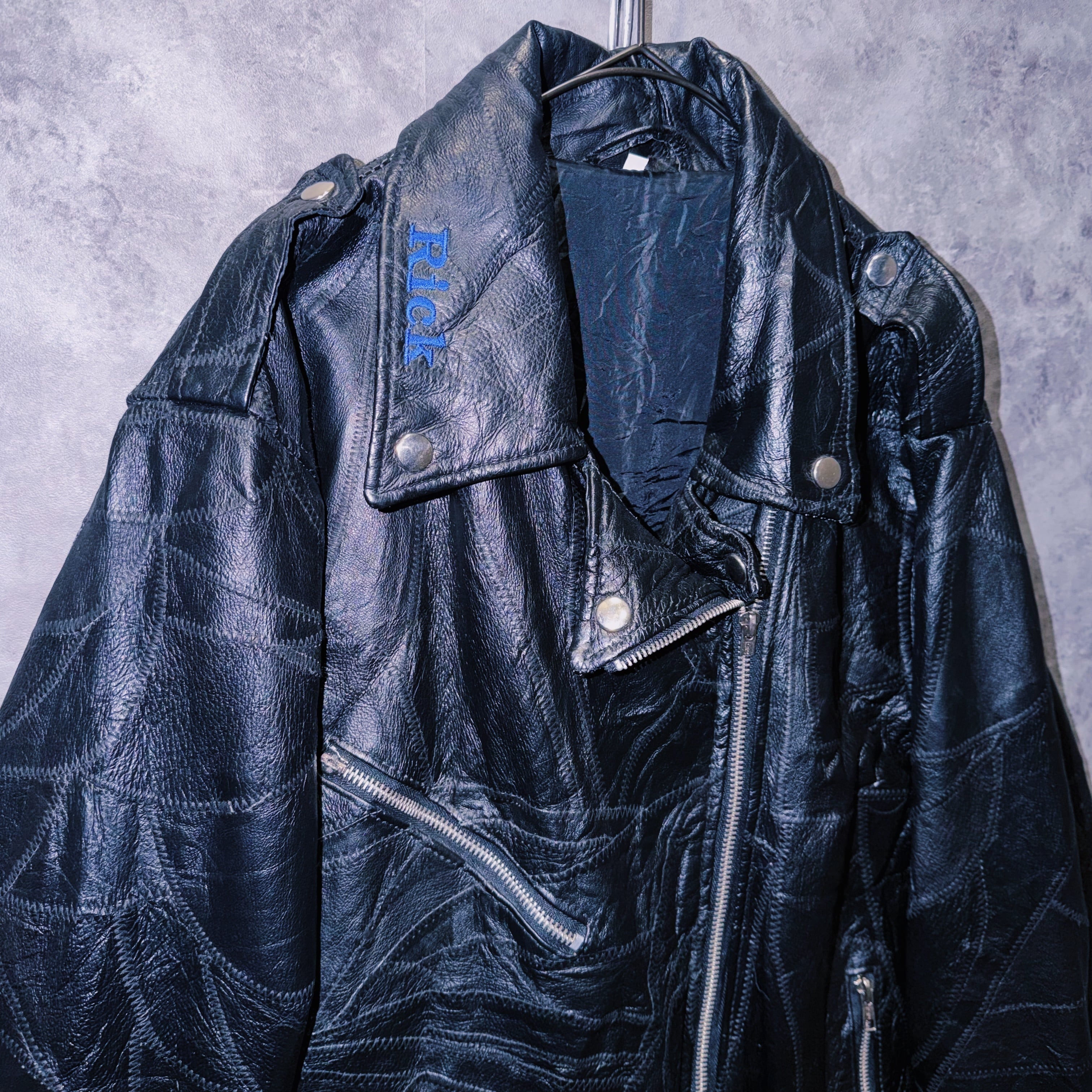【doppio】90's vintage black leather embroidery design double breasted Riders jacket