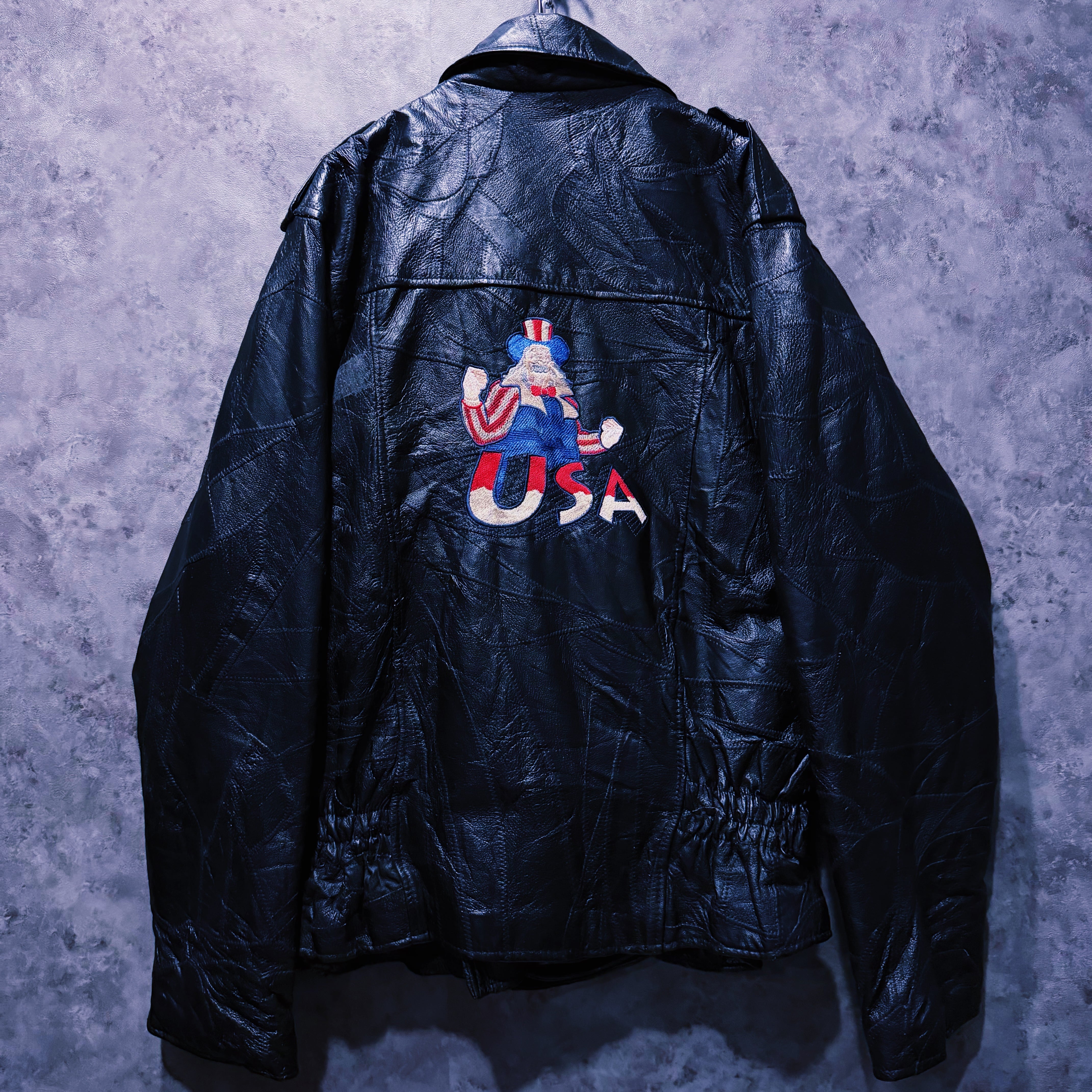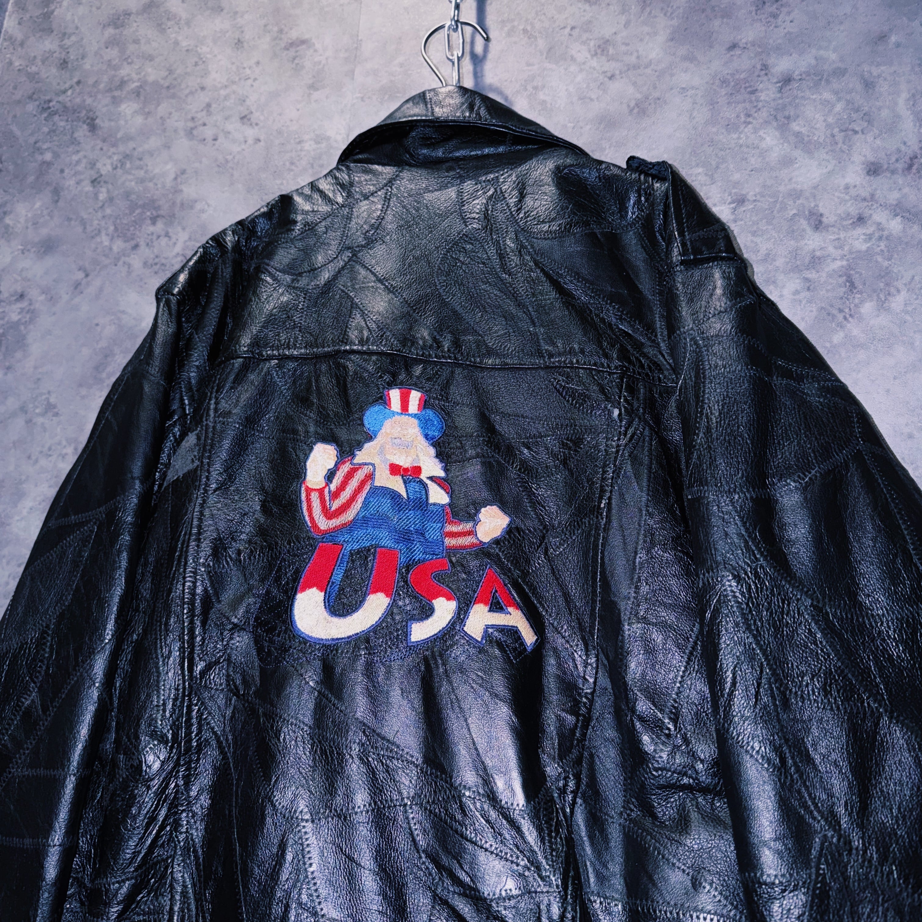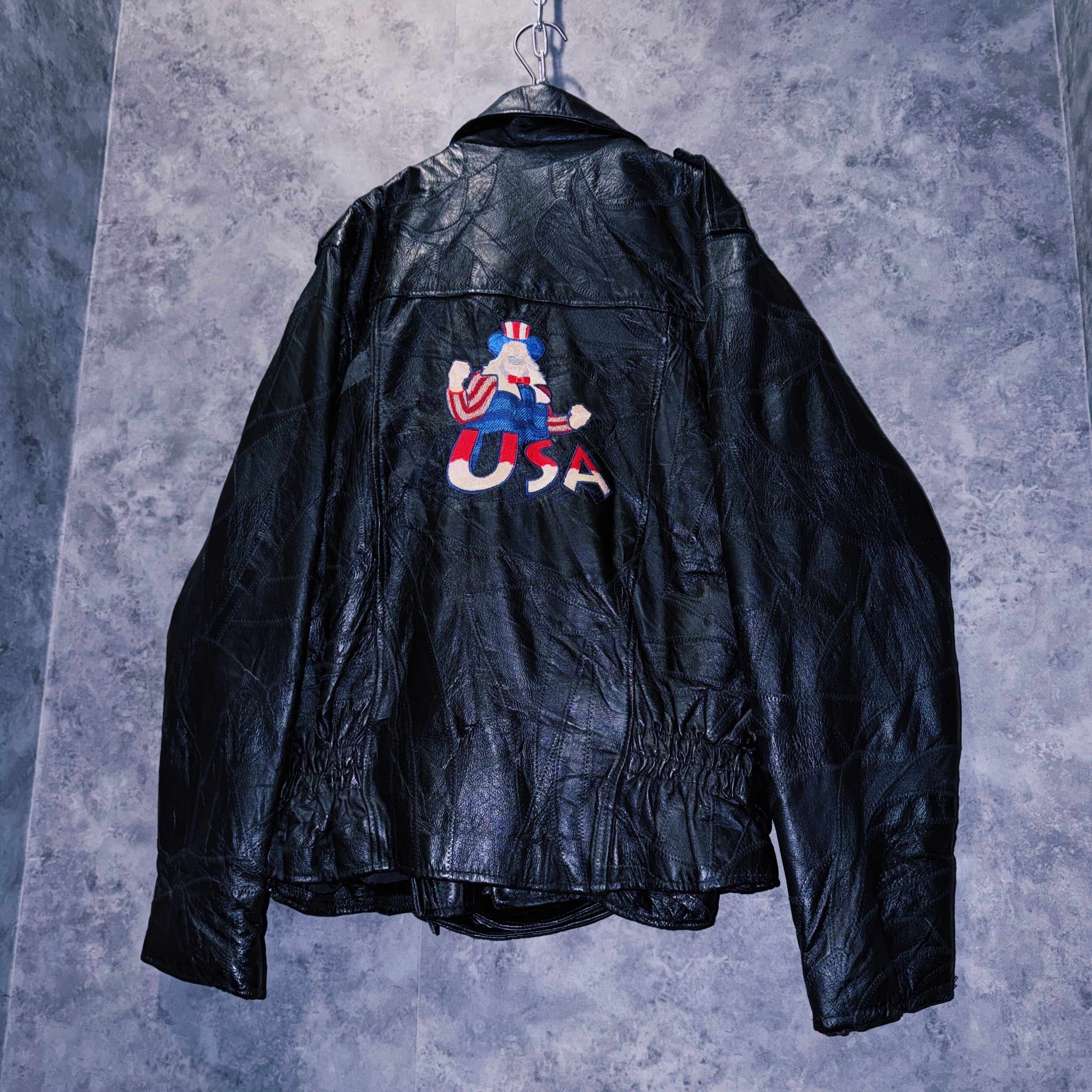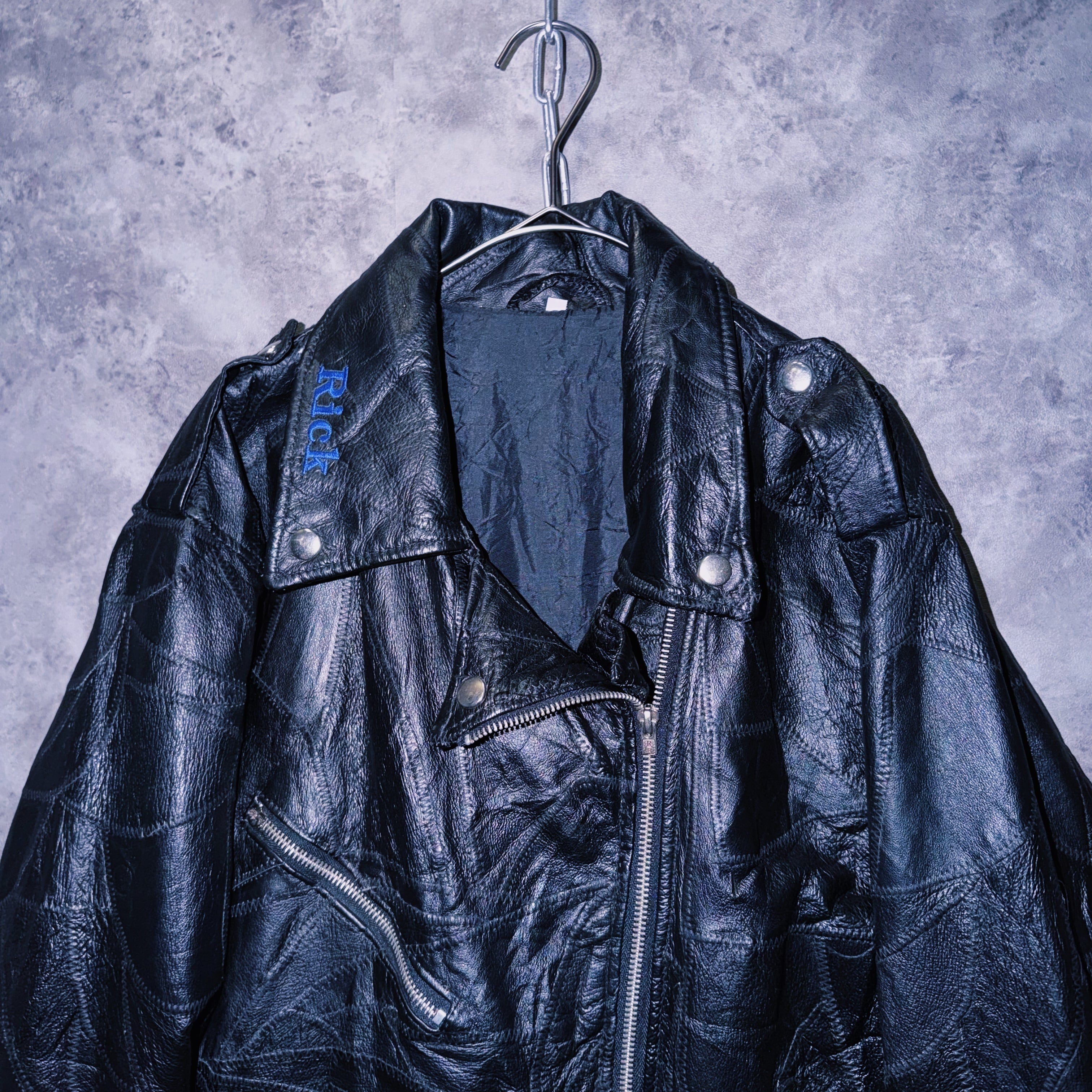 【doppio】90's vintage black leather embroidery design double breasted Riders jacket