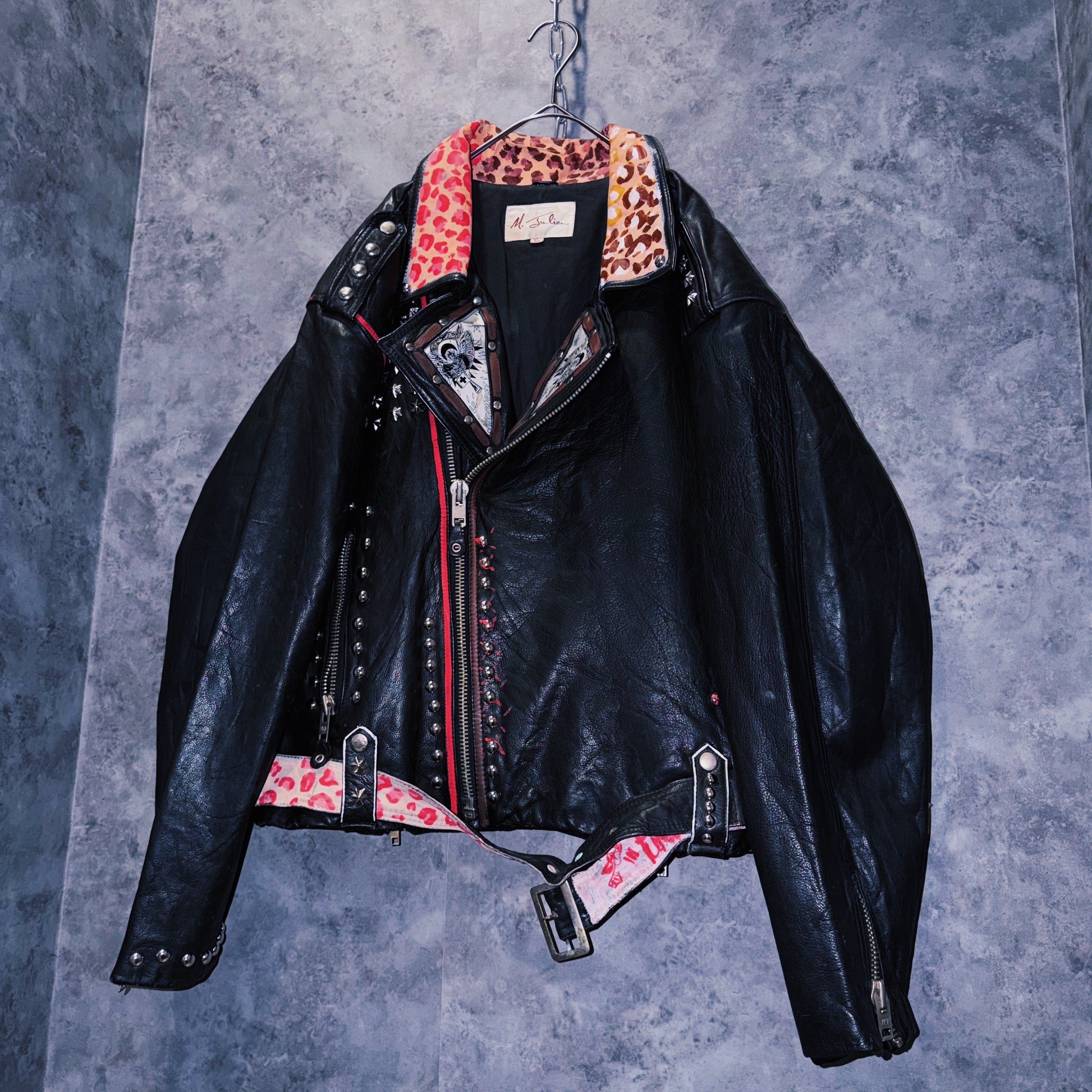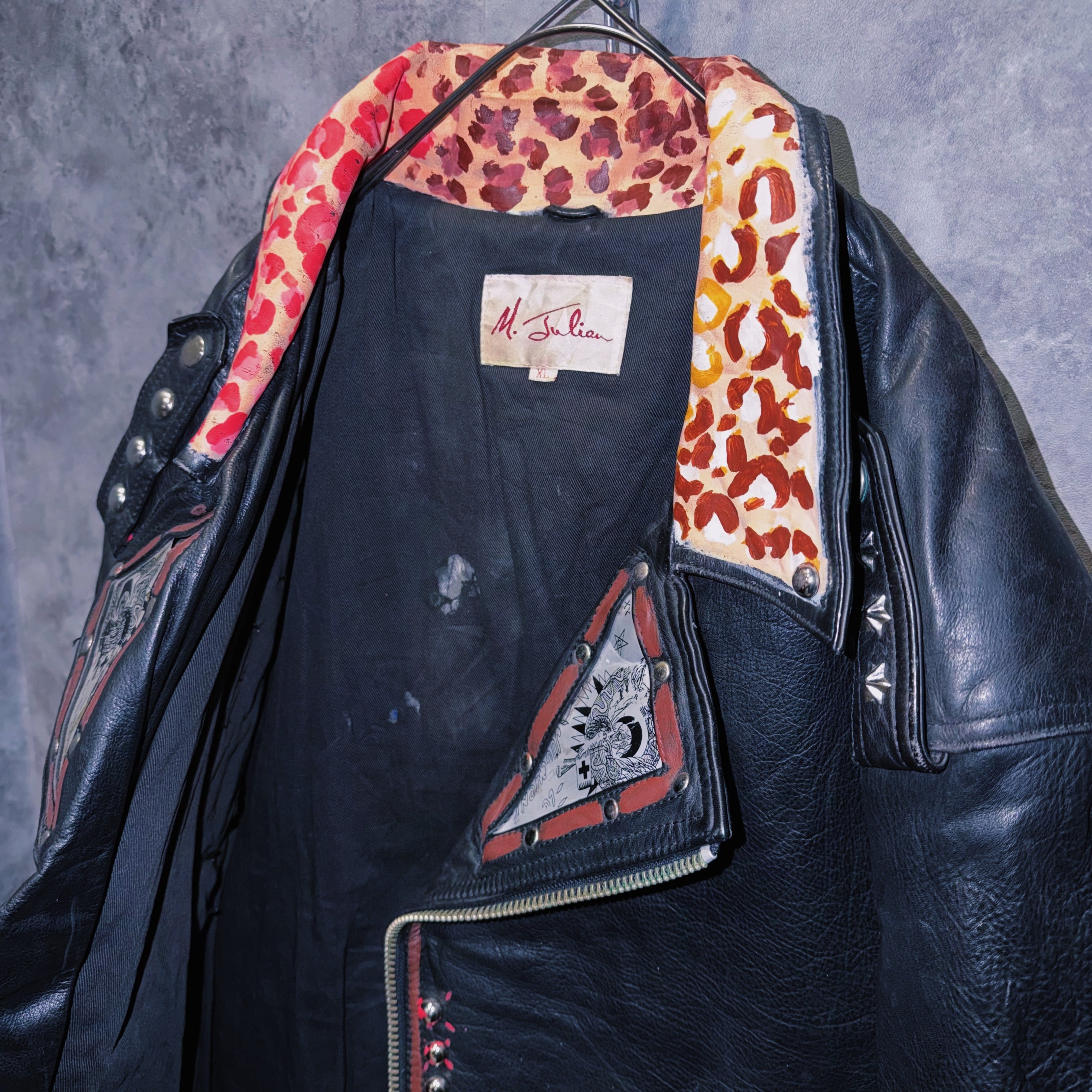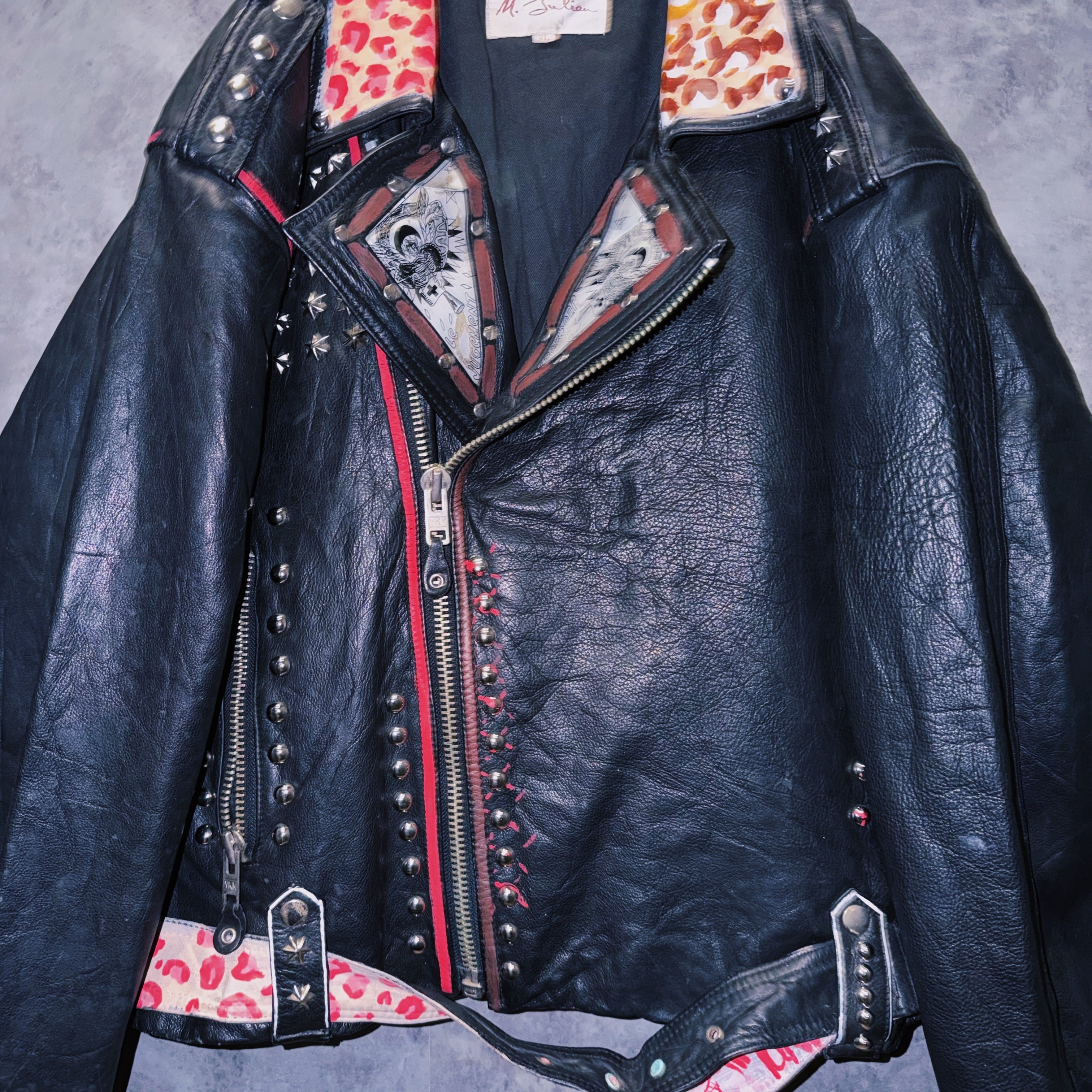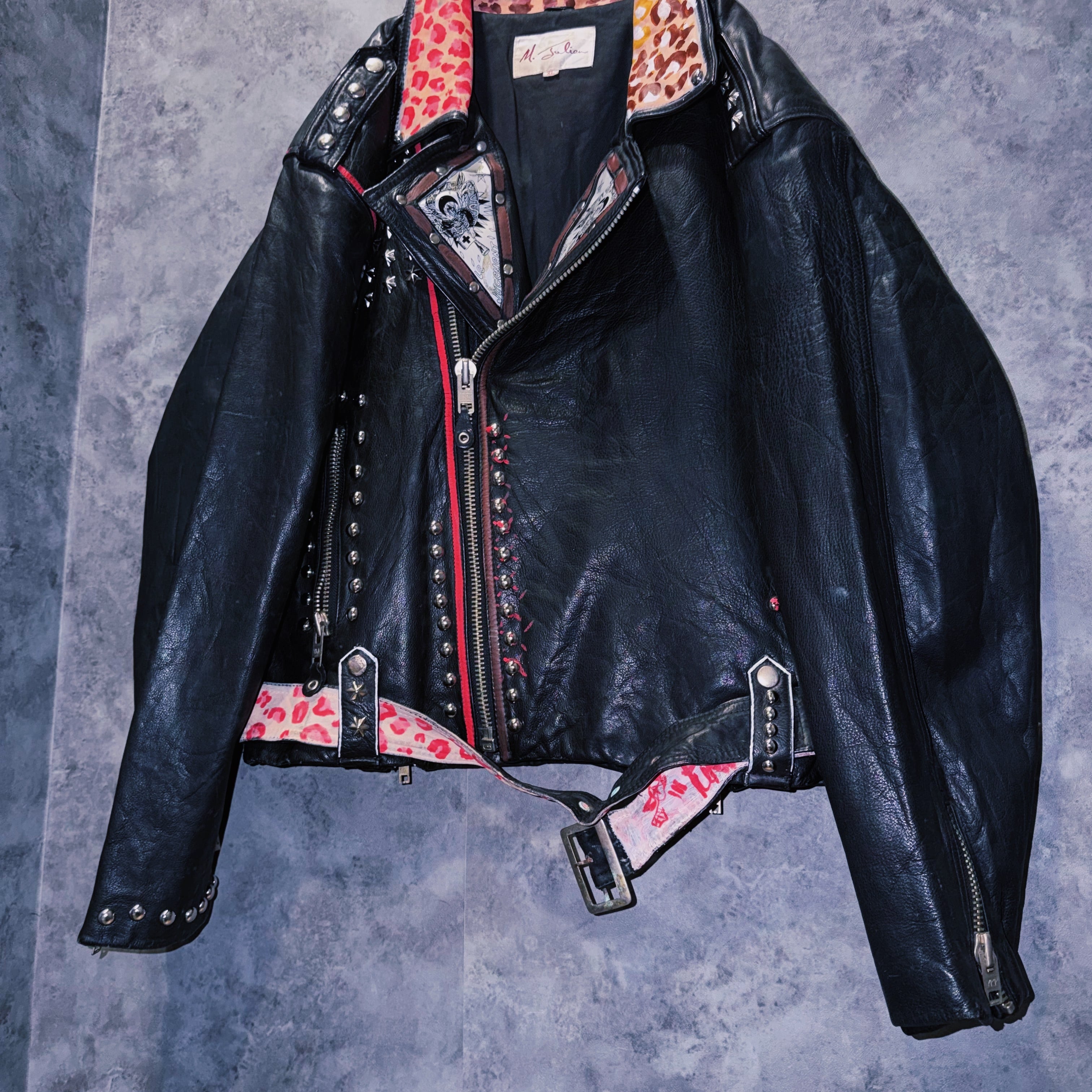 80’s vintage “M.Julian” studs and paint design double breasted riders leather jacket