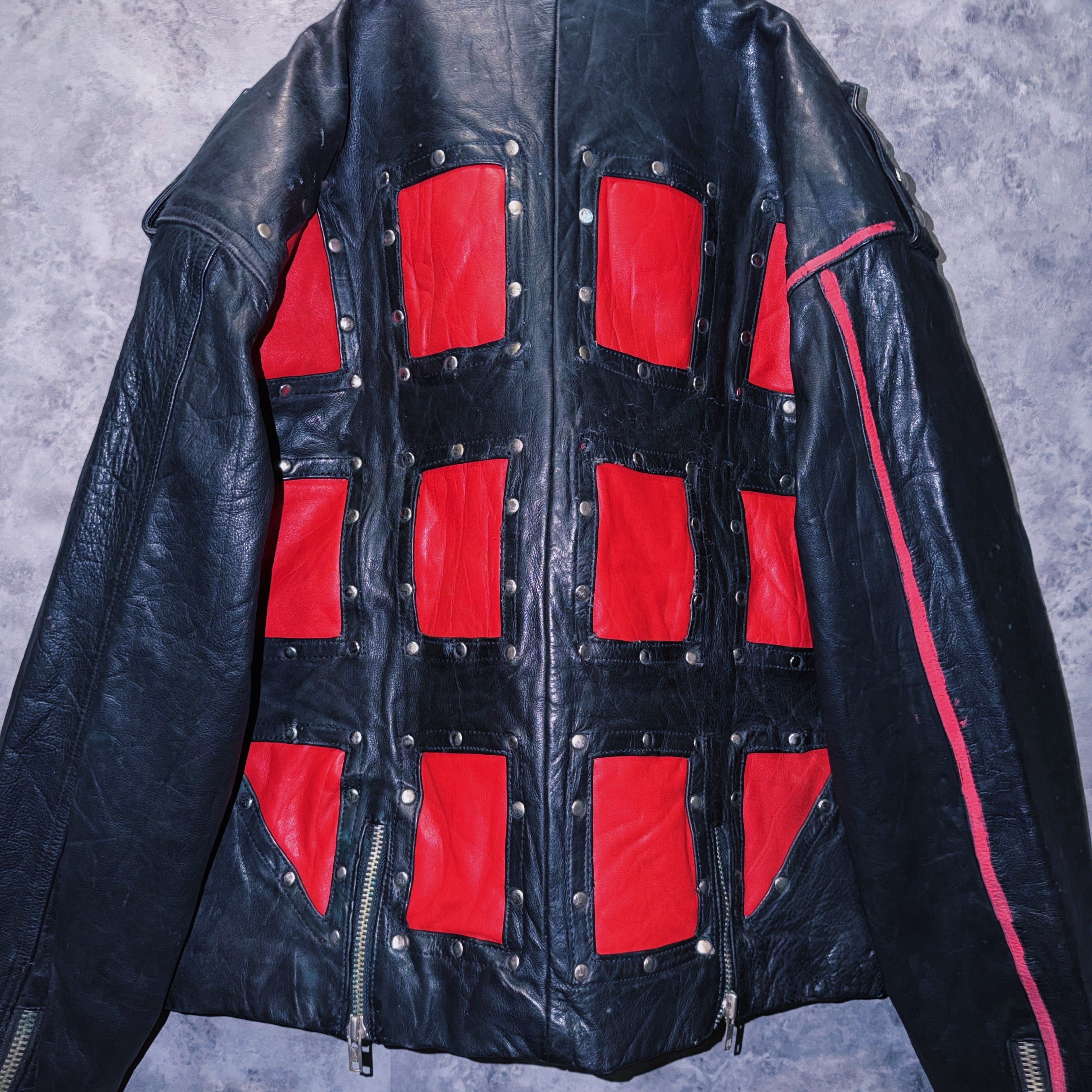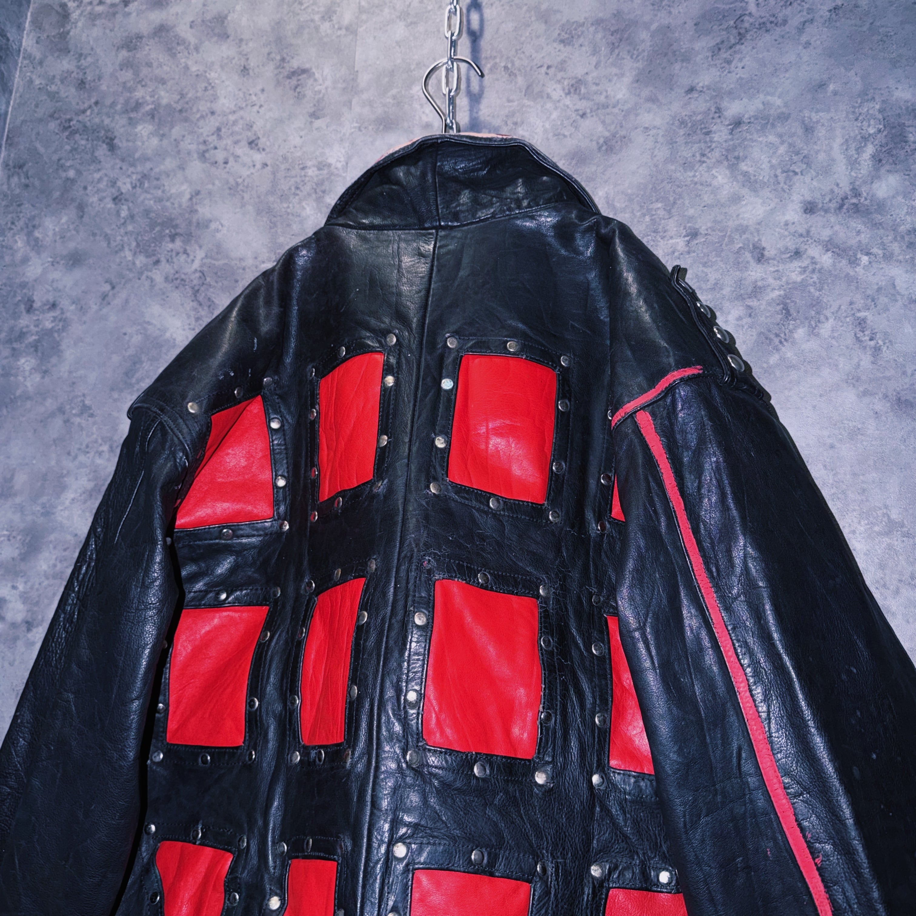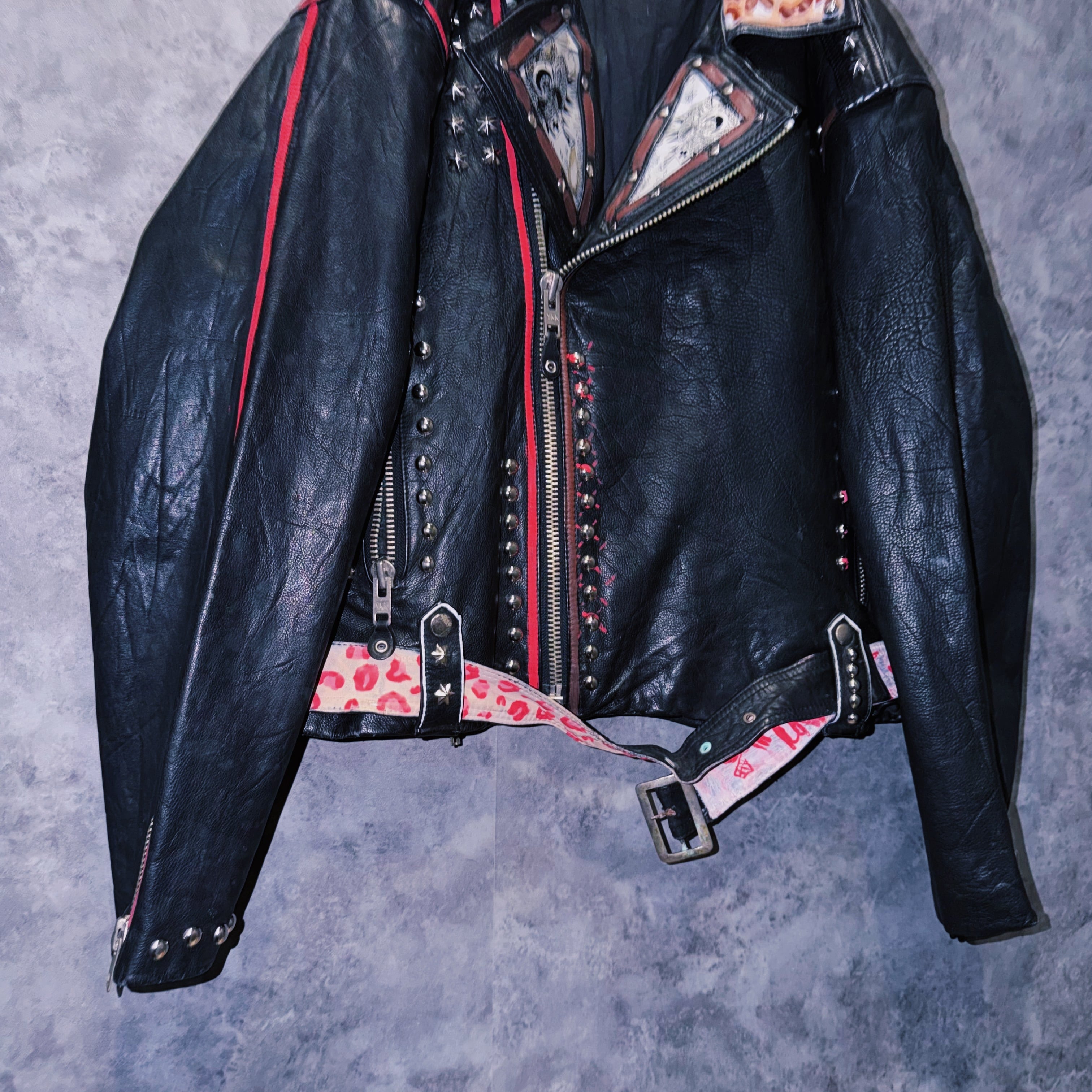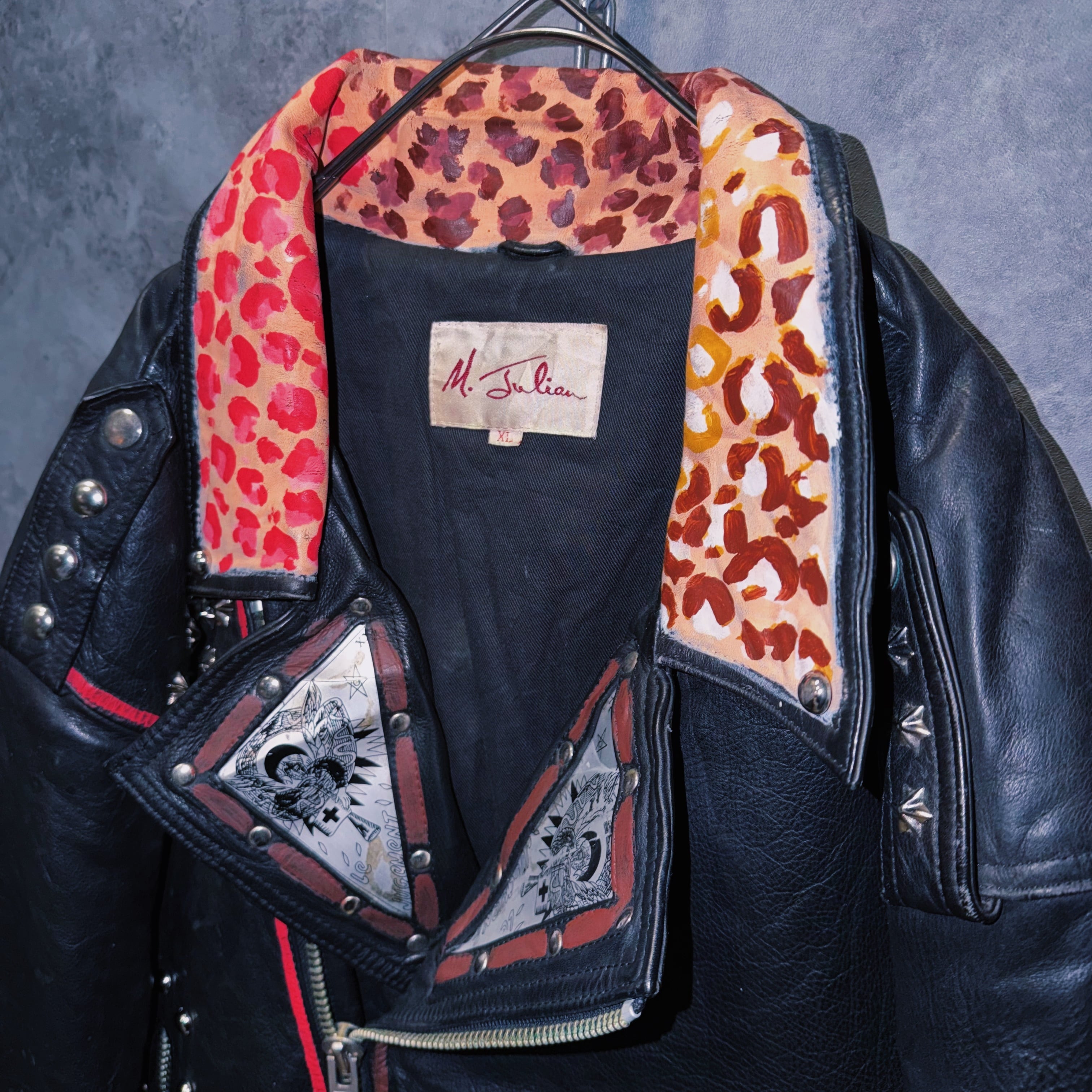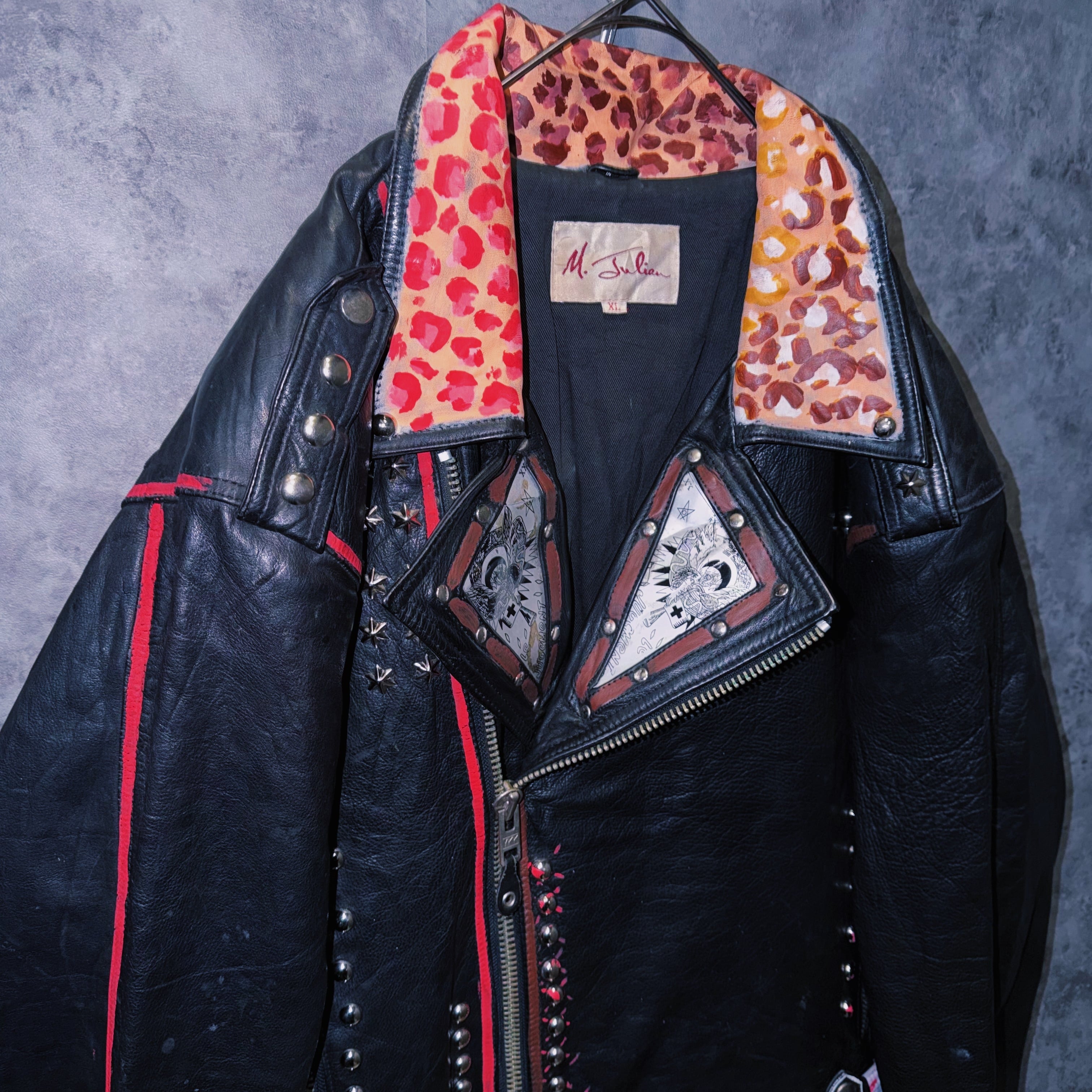 80’s vintage “M.Julian” studs and paint design double breasted riders leather jacket