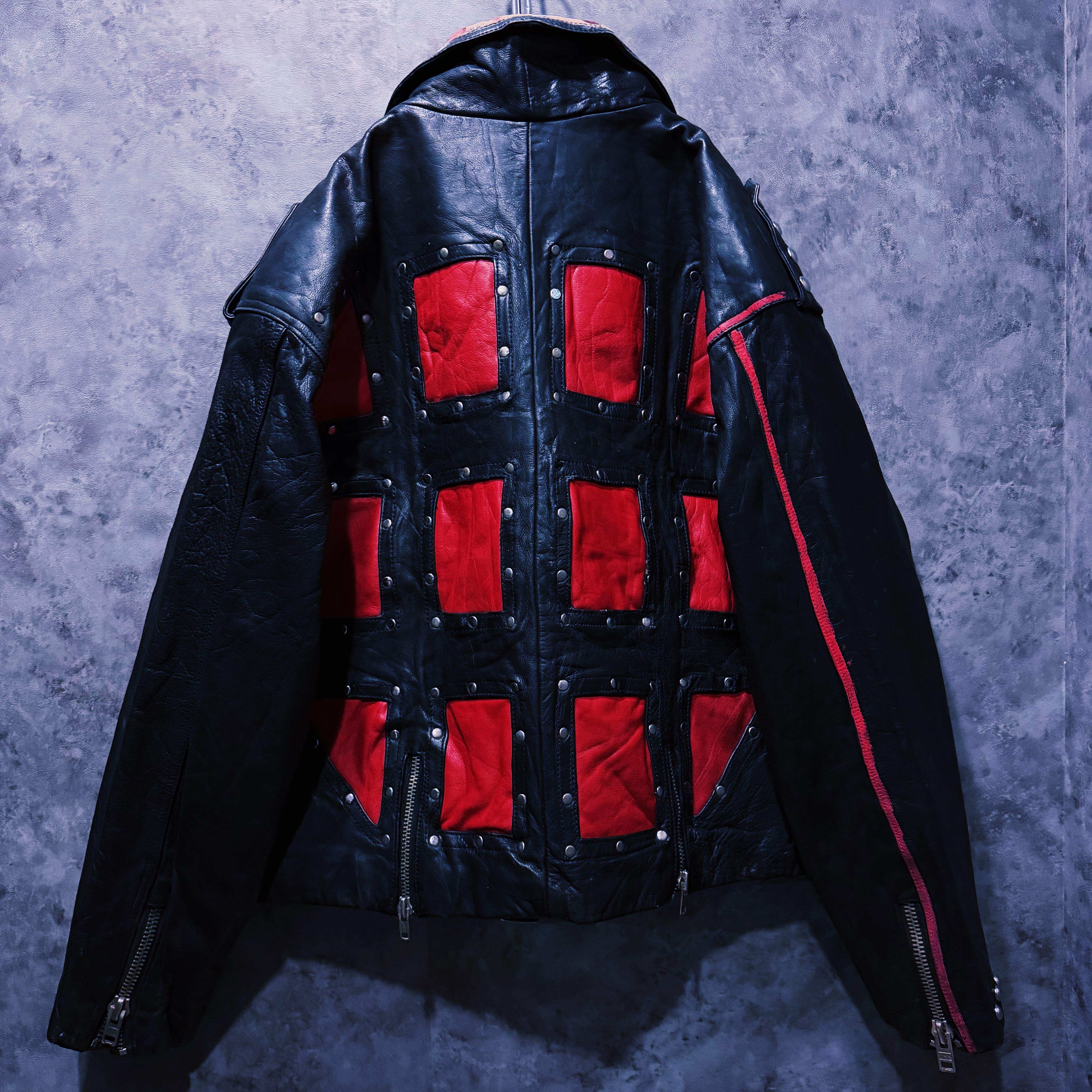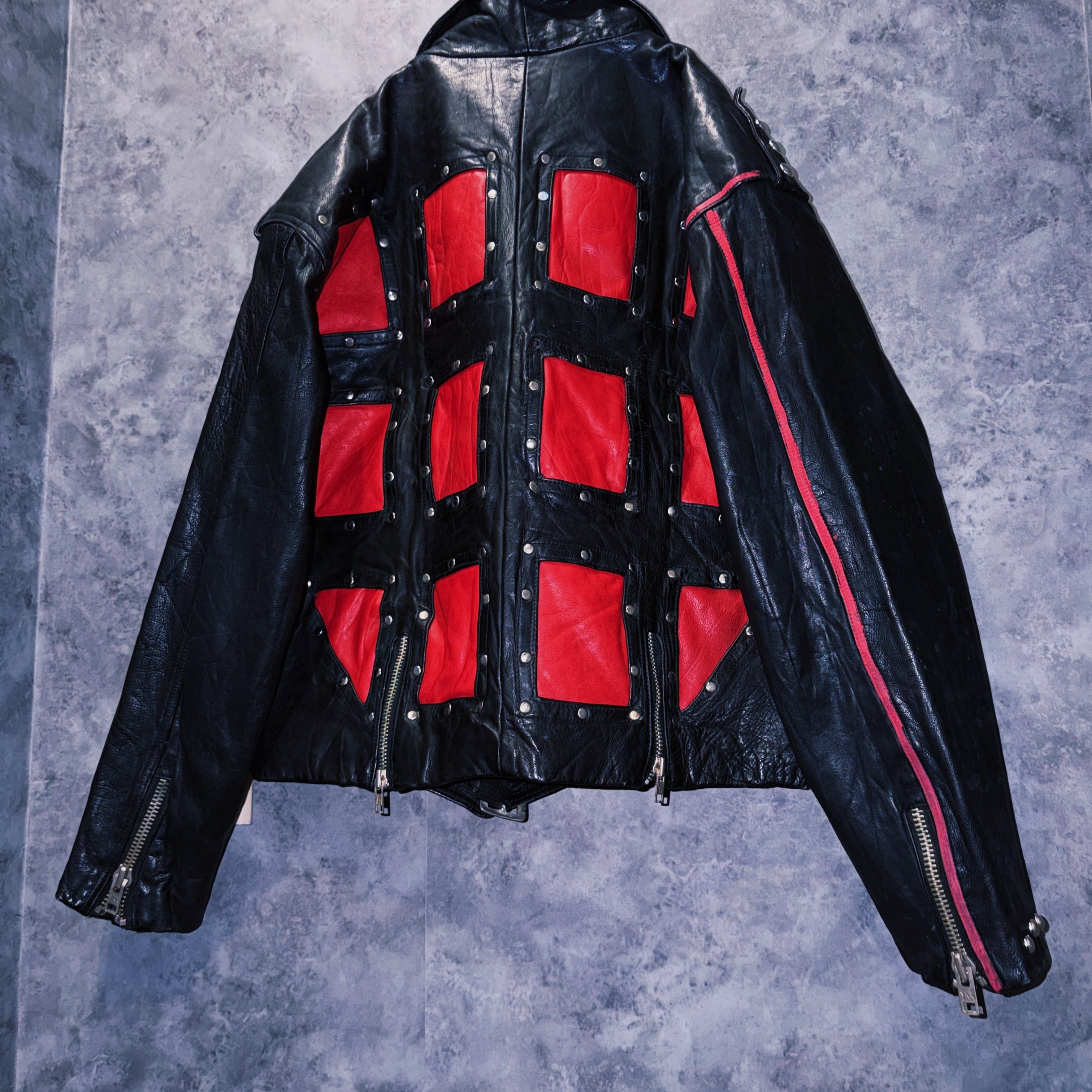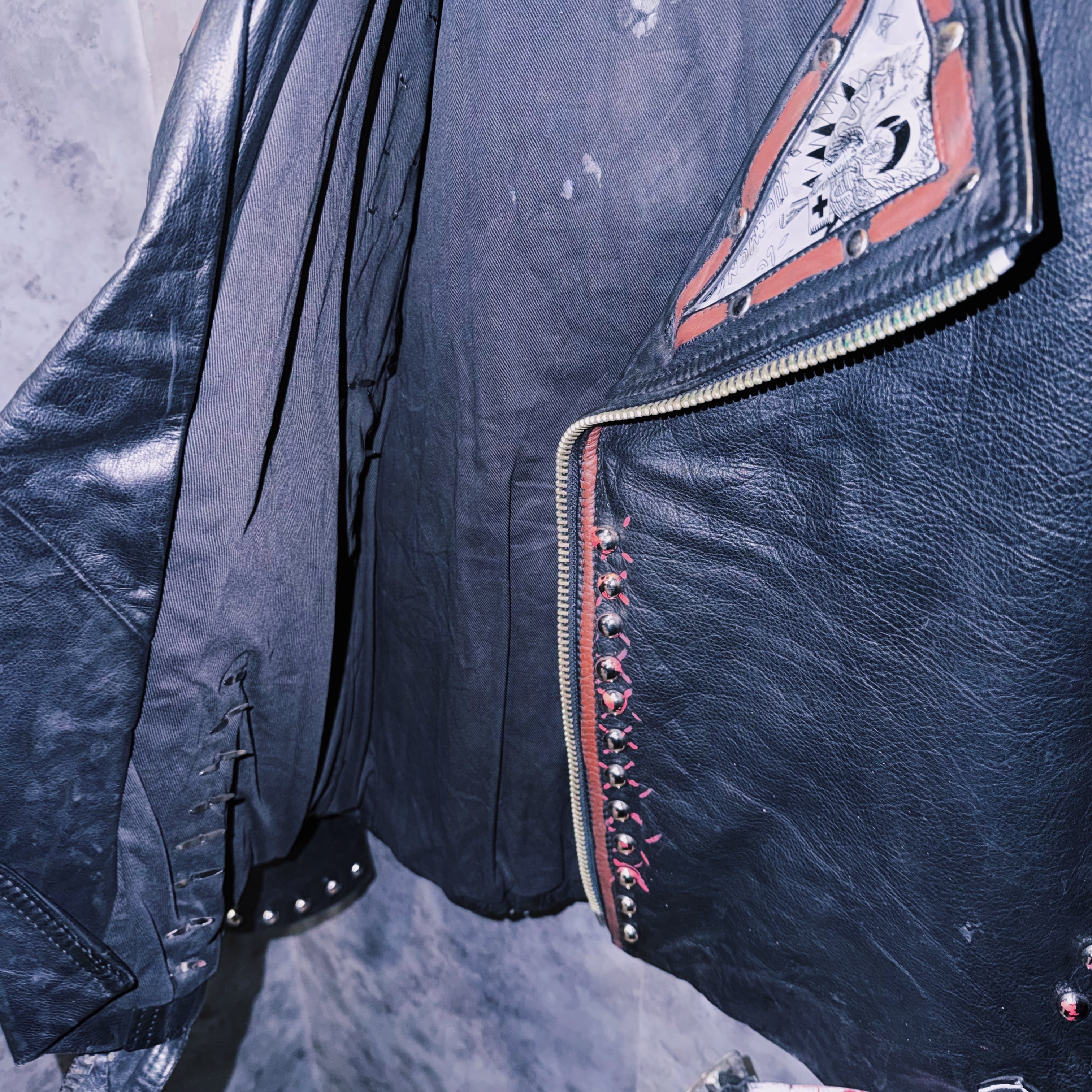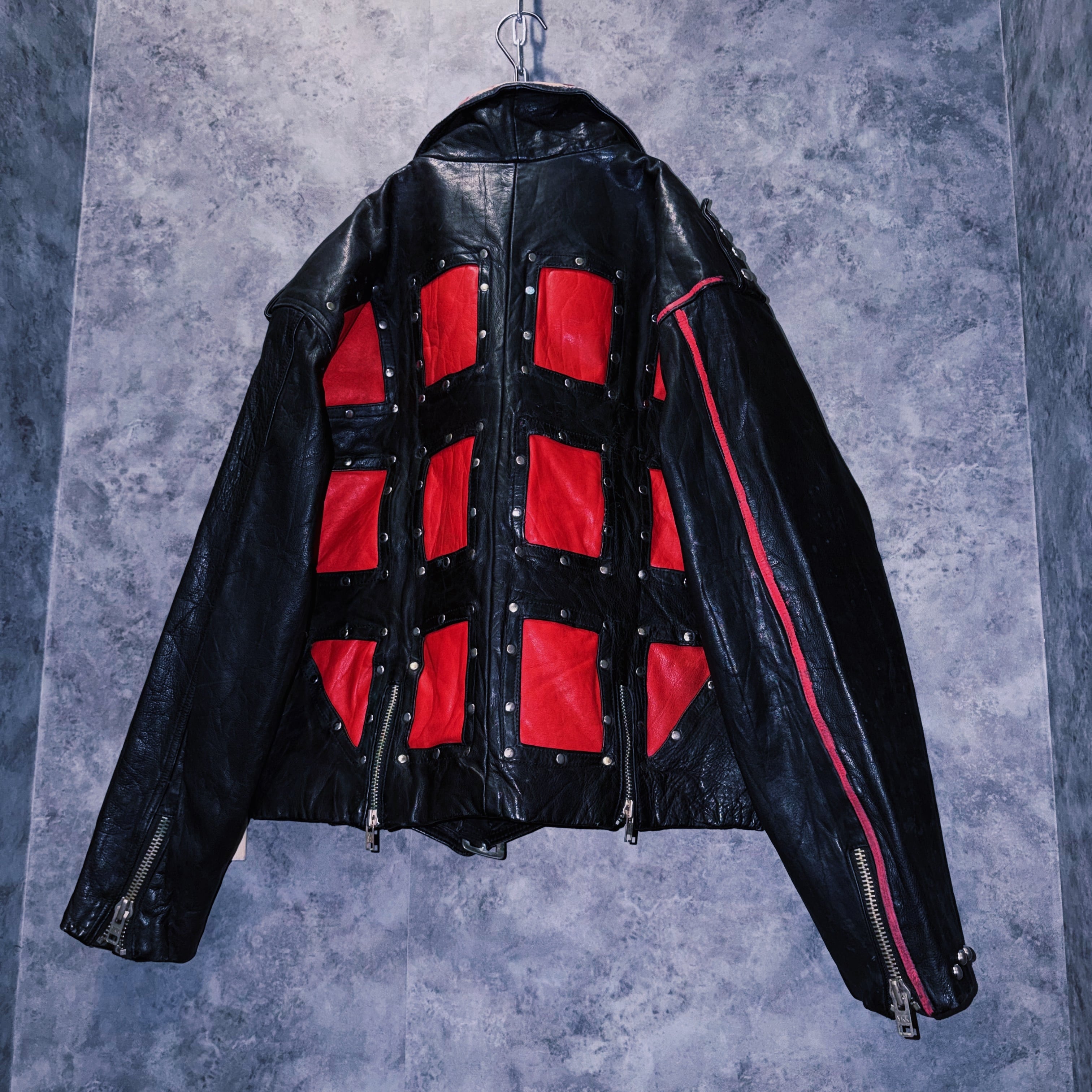 80’s vintage “M.Julian” studs and paint design double breasted riders leather jacket