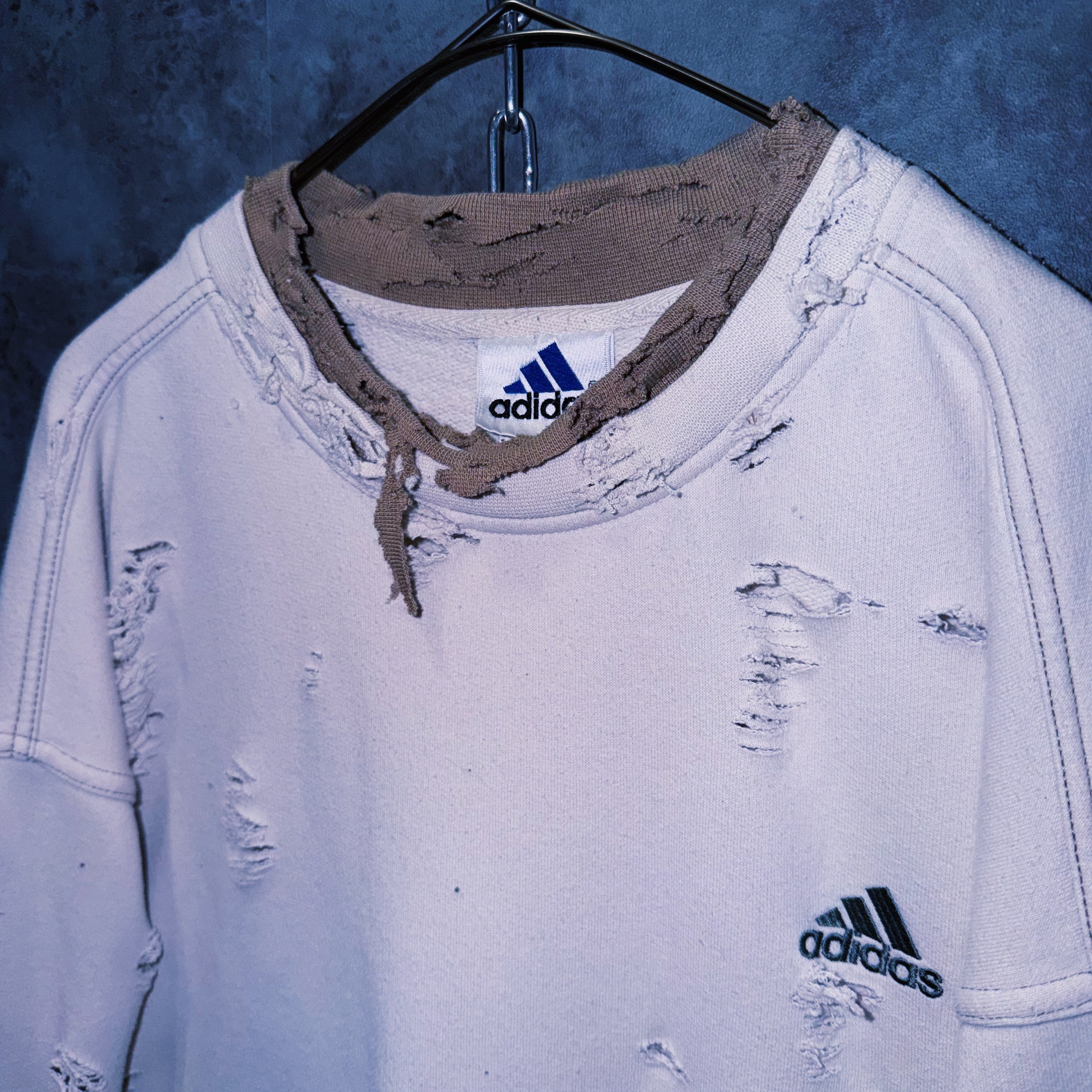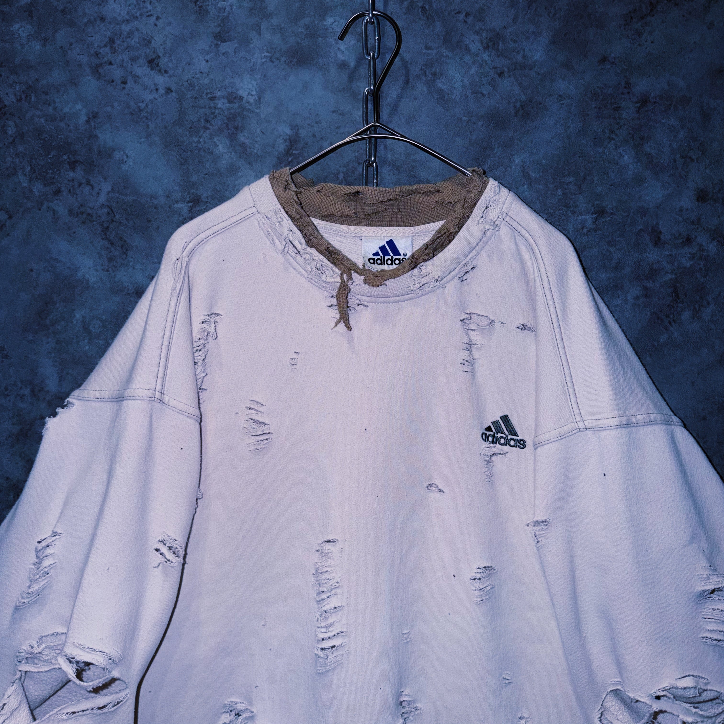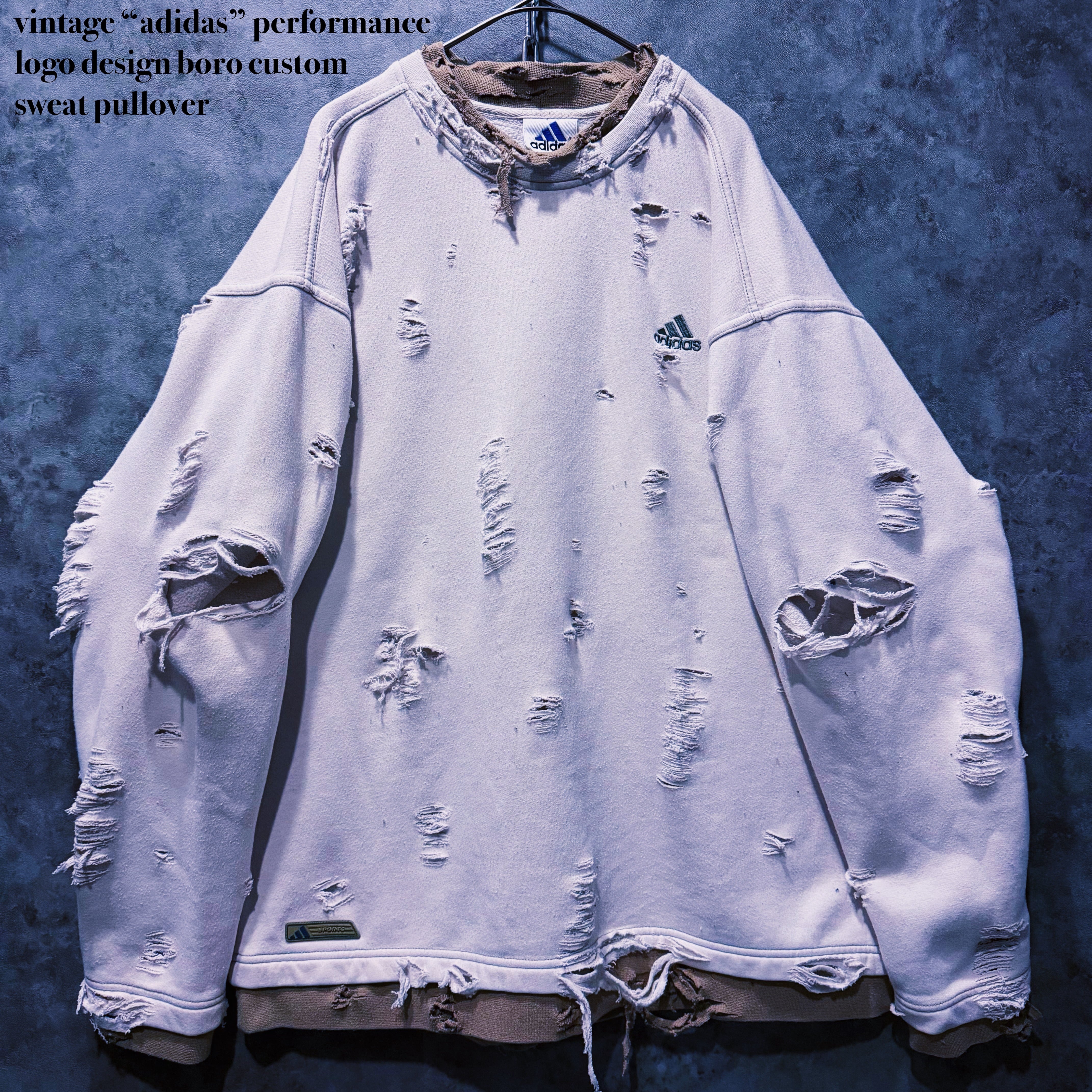 ヴィンテージ“adidas”パフォーマンスロゴデザインボロカスタムスウェットプルオーバー