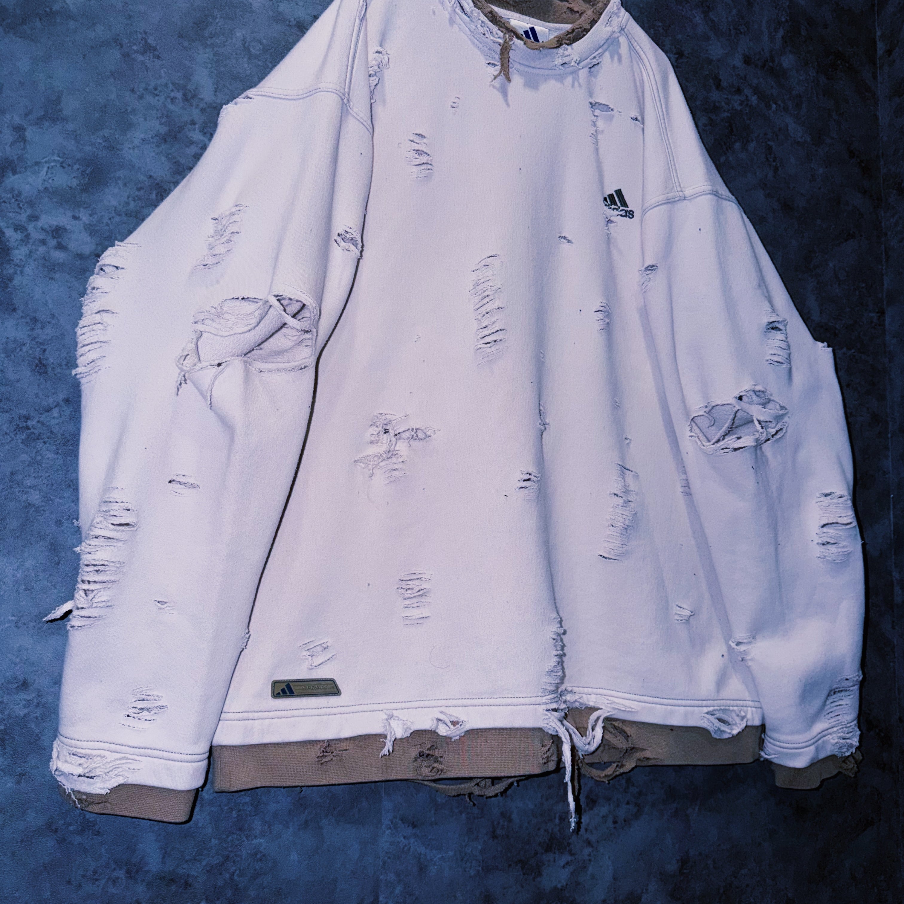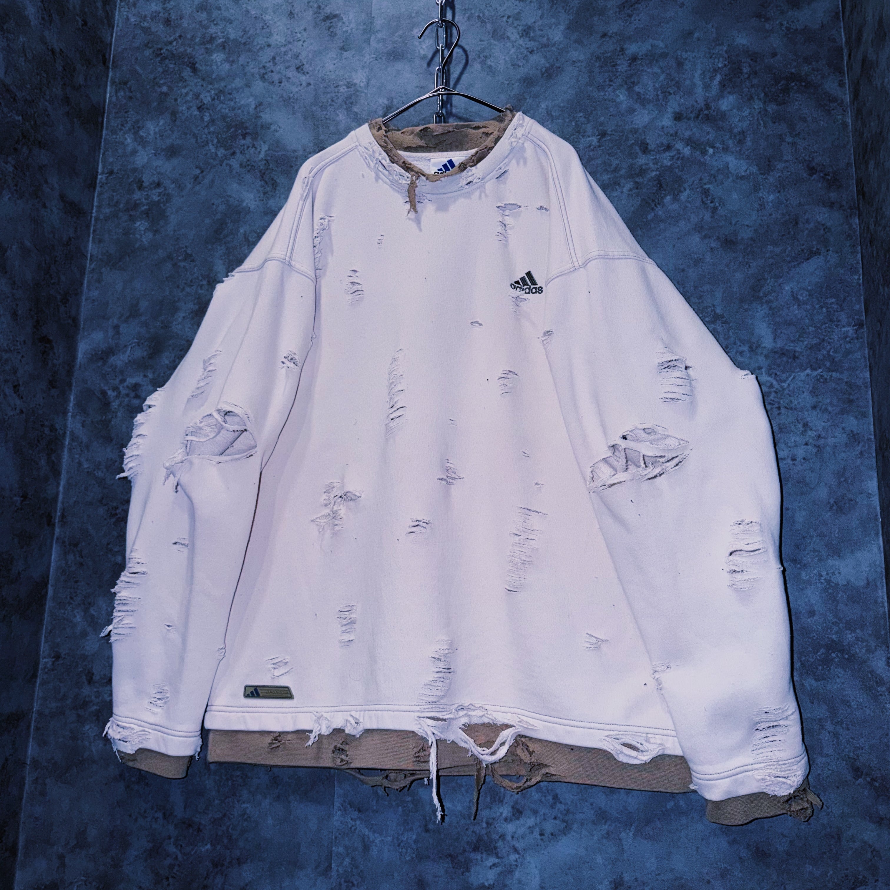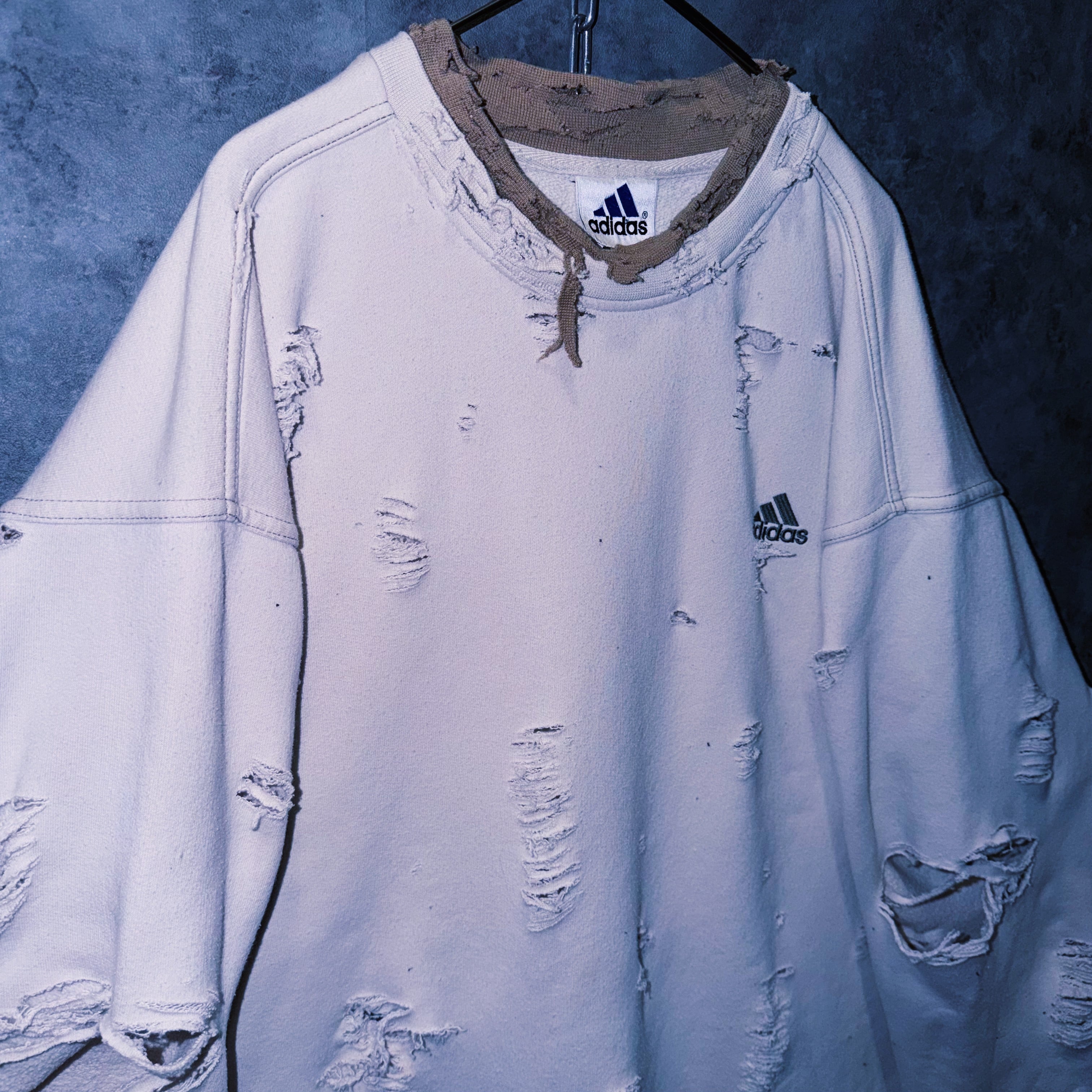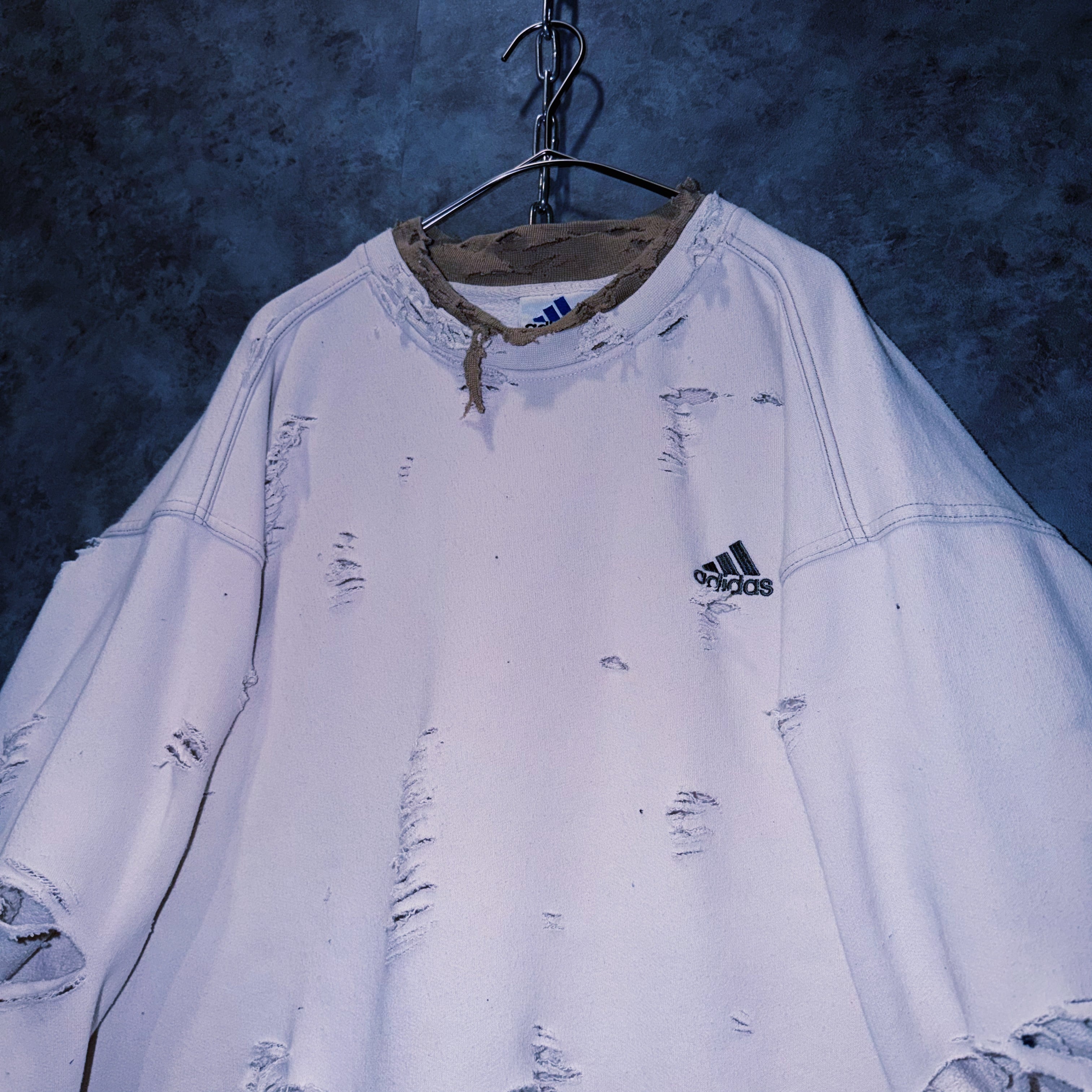 ヴィンテージ“adidas”パフォーマンスロゴデザインボロカスタムスウェットプルオーバー