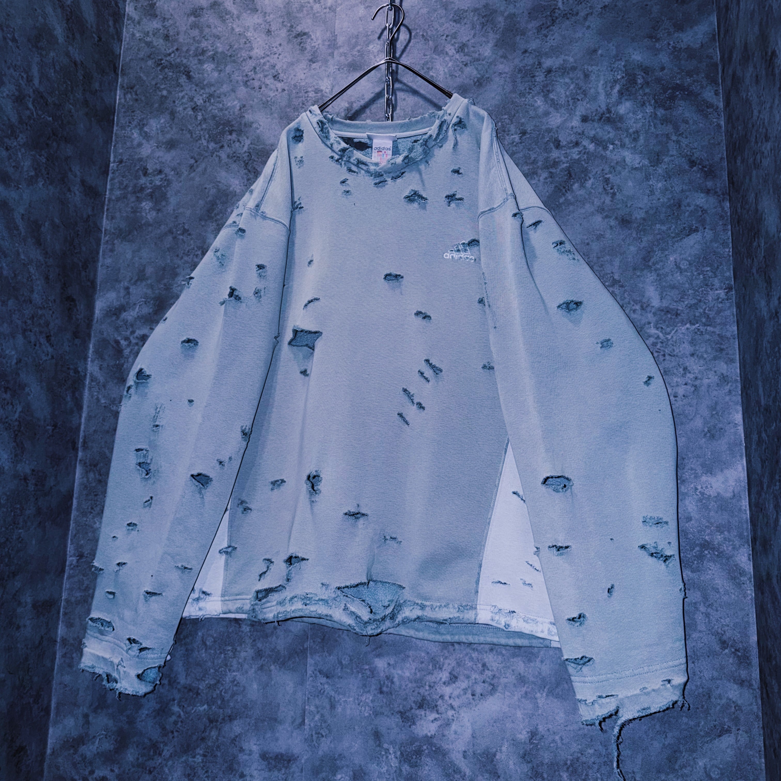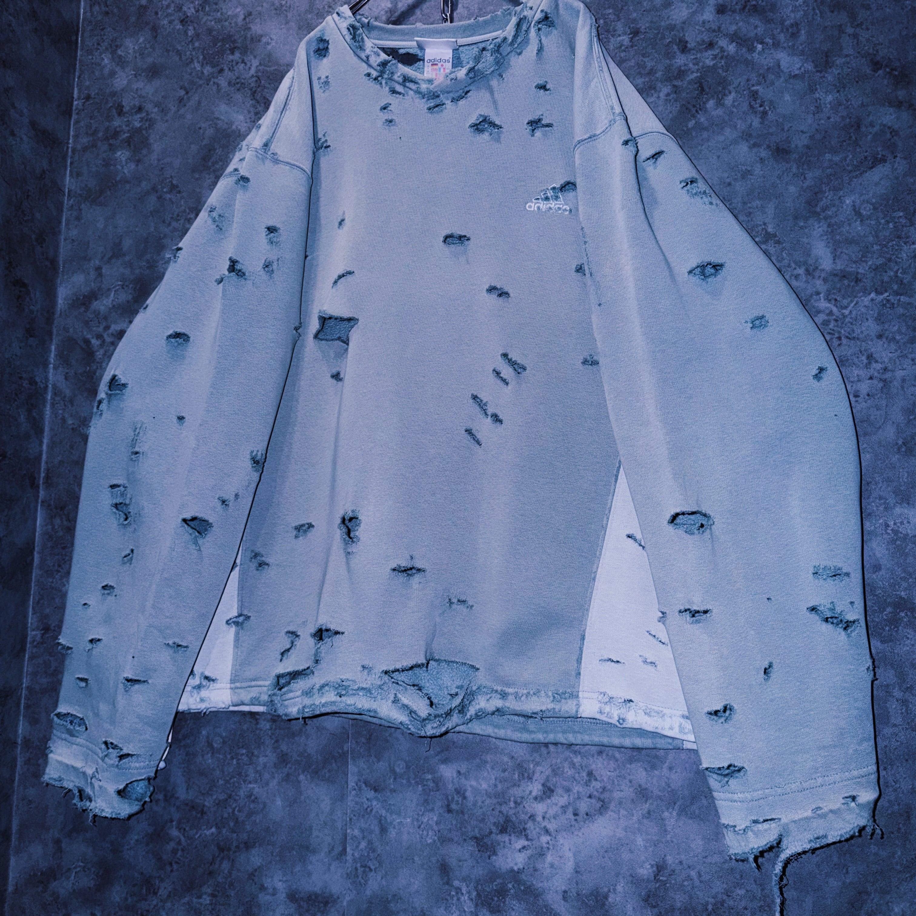 【doppio】90’s vintage “adidas” switching color design boro custom sweat pullover
