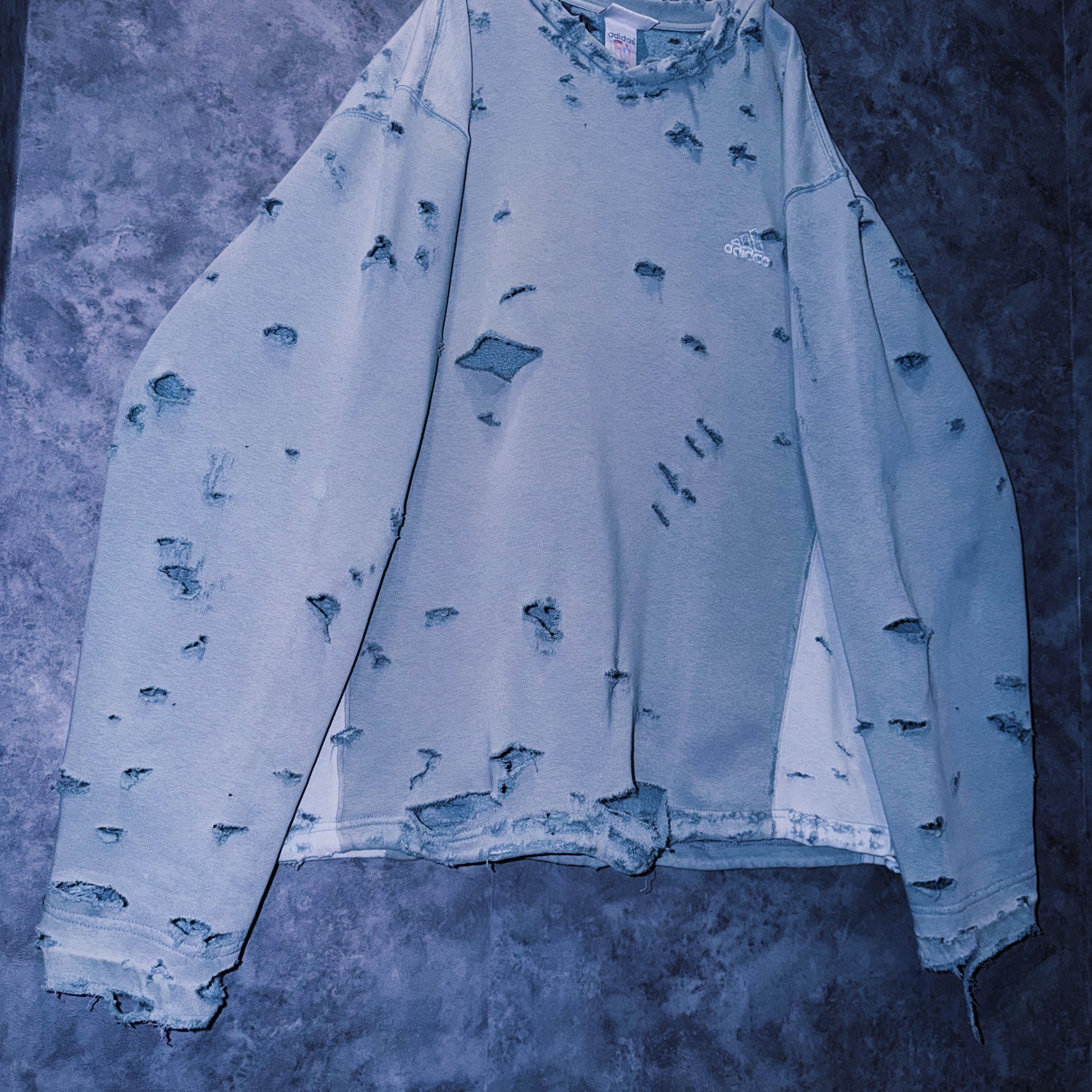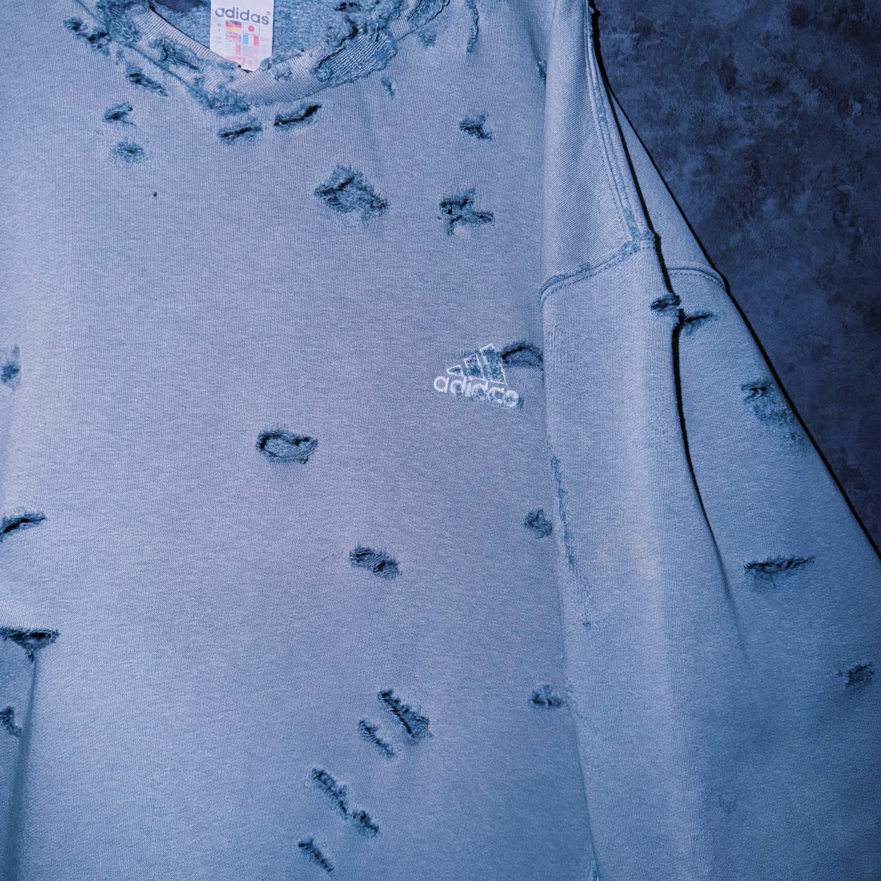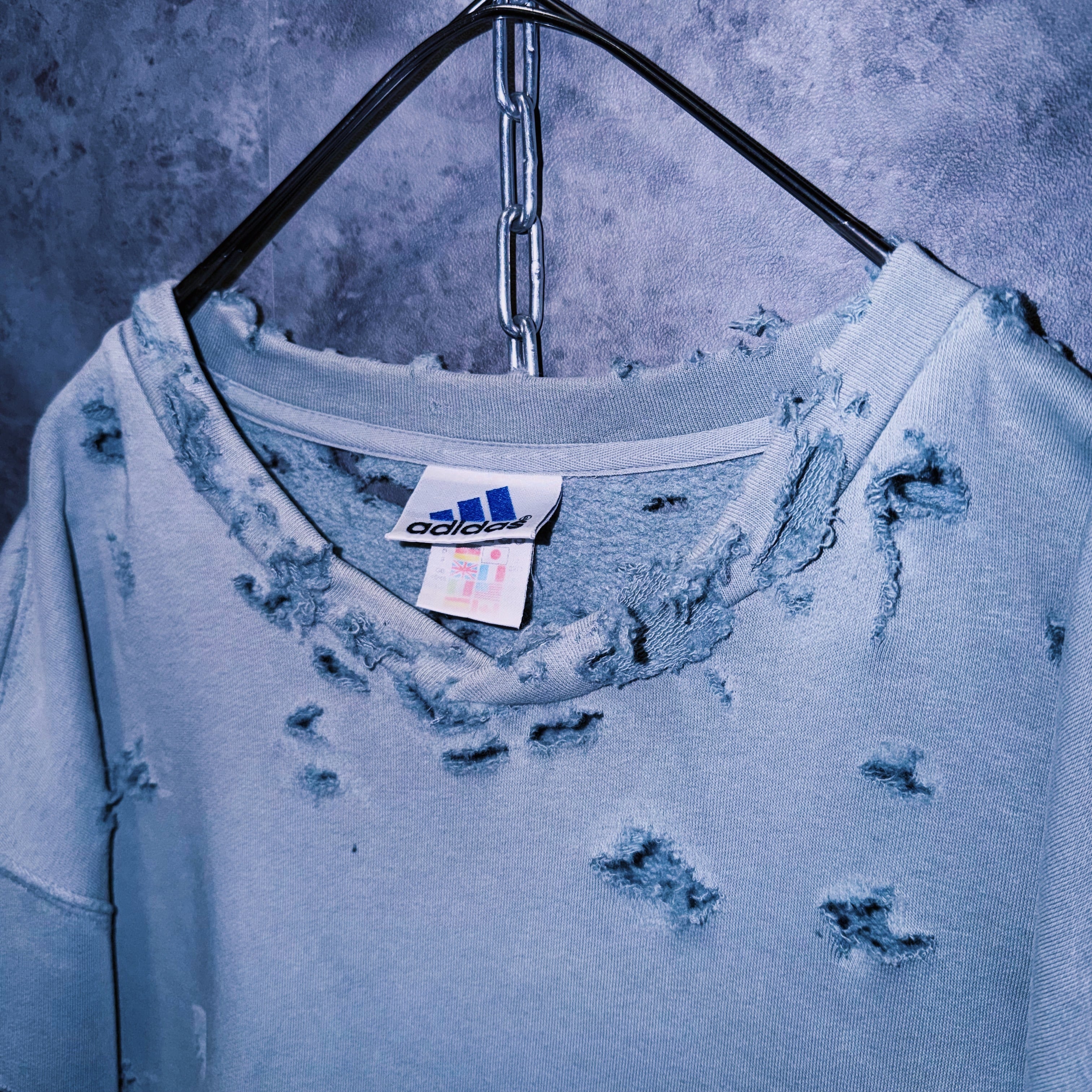 90’s vintage “adidas” switching color design boro custom sweat pullover