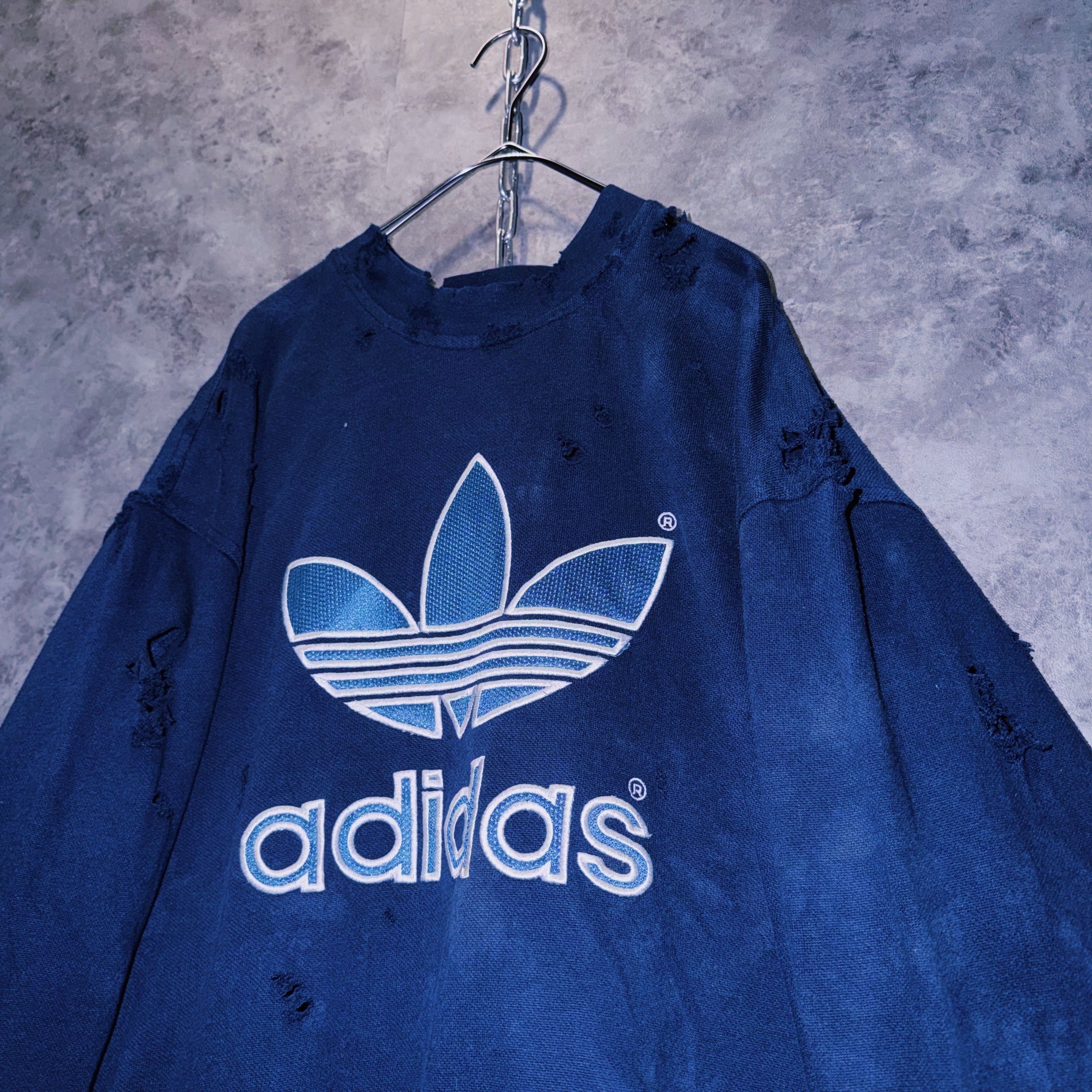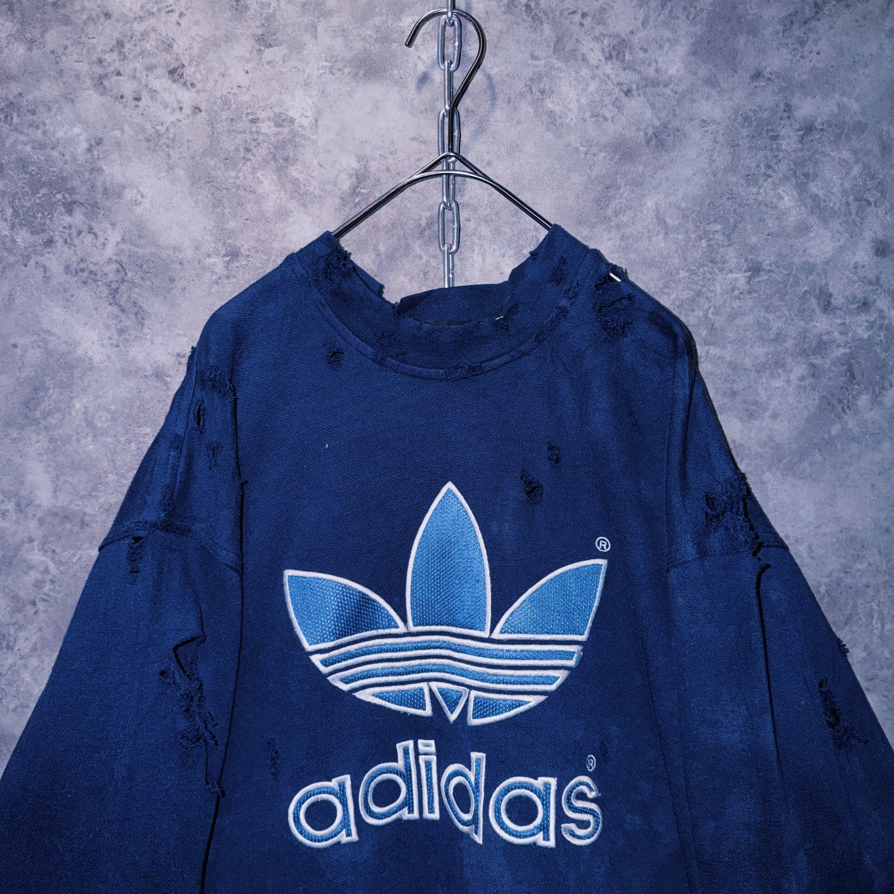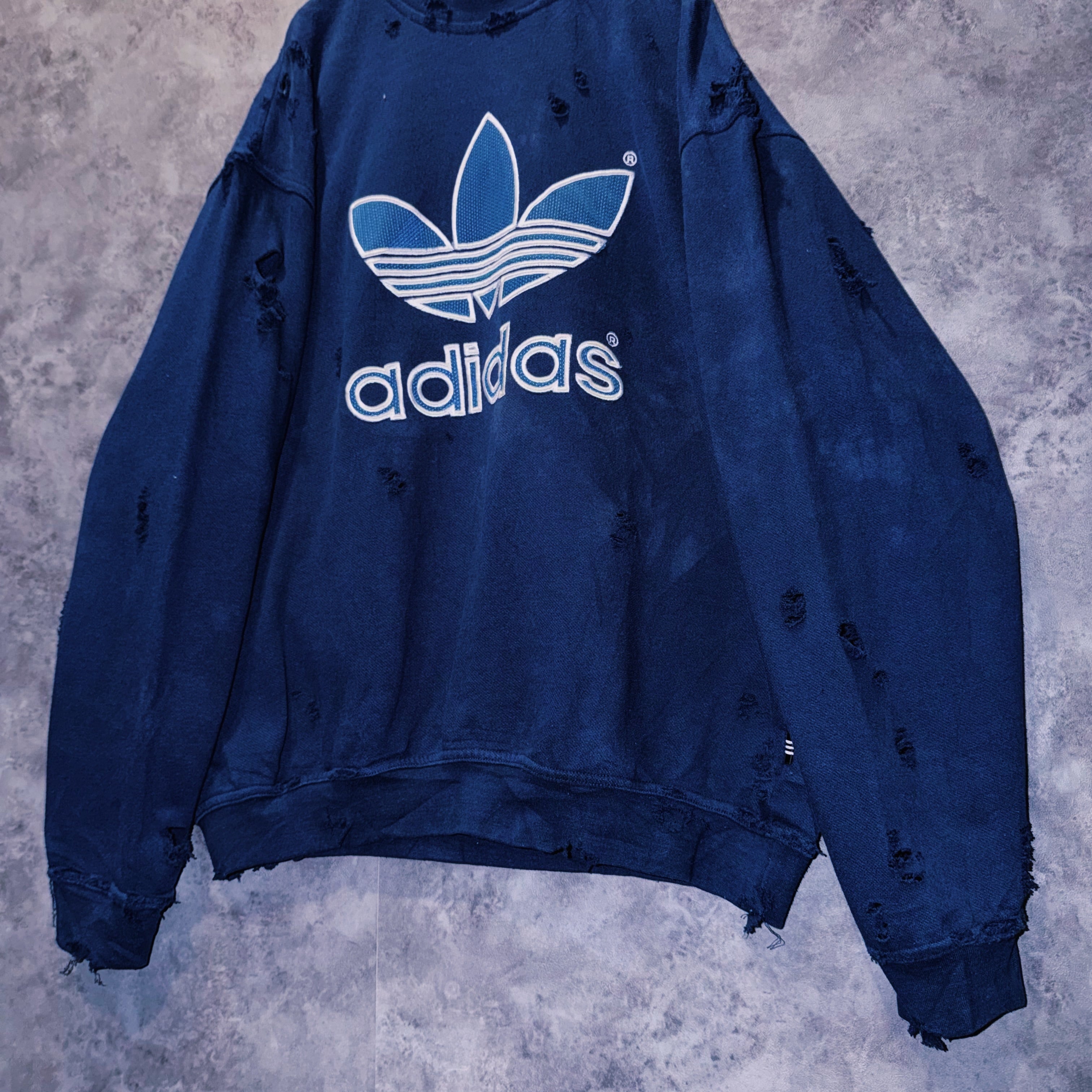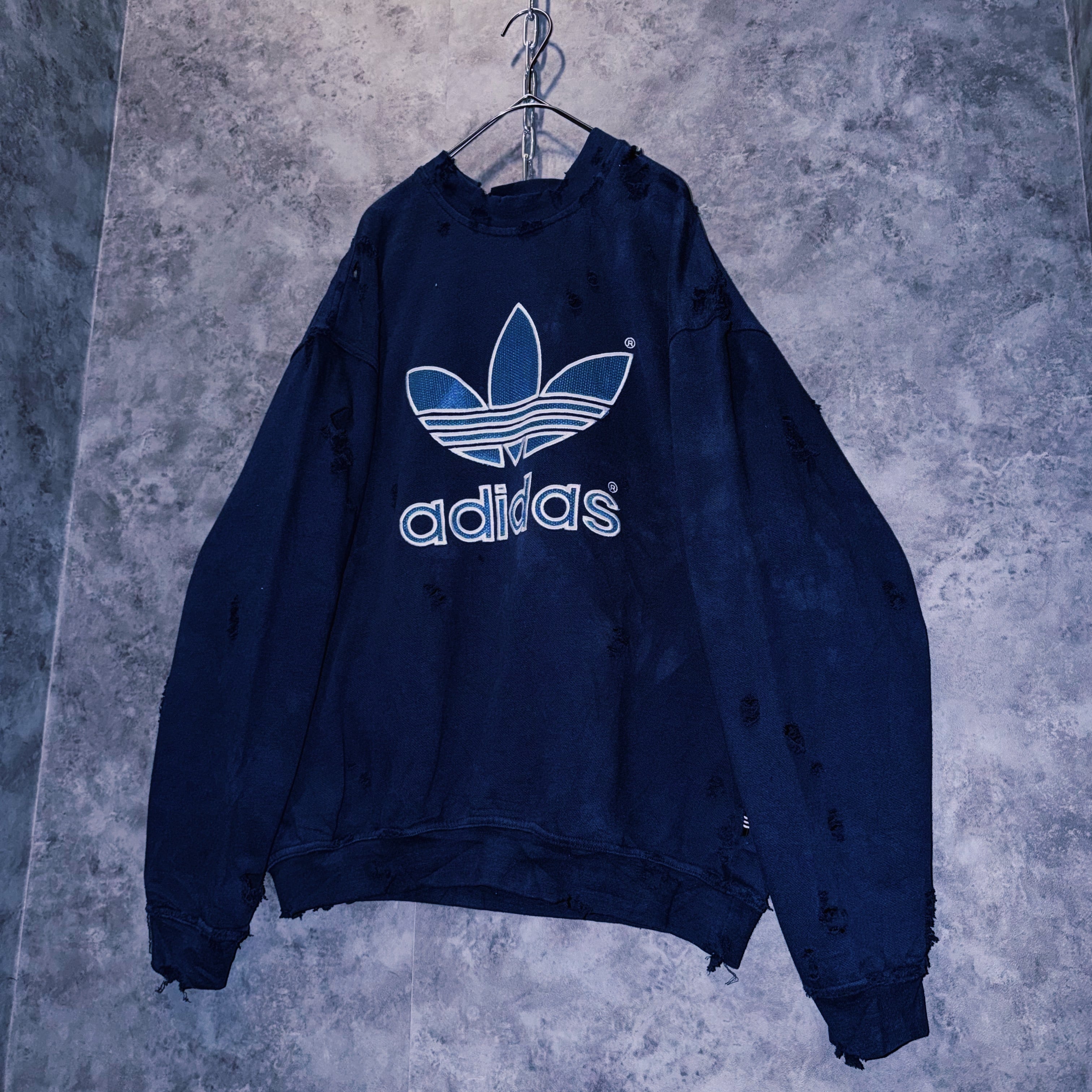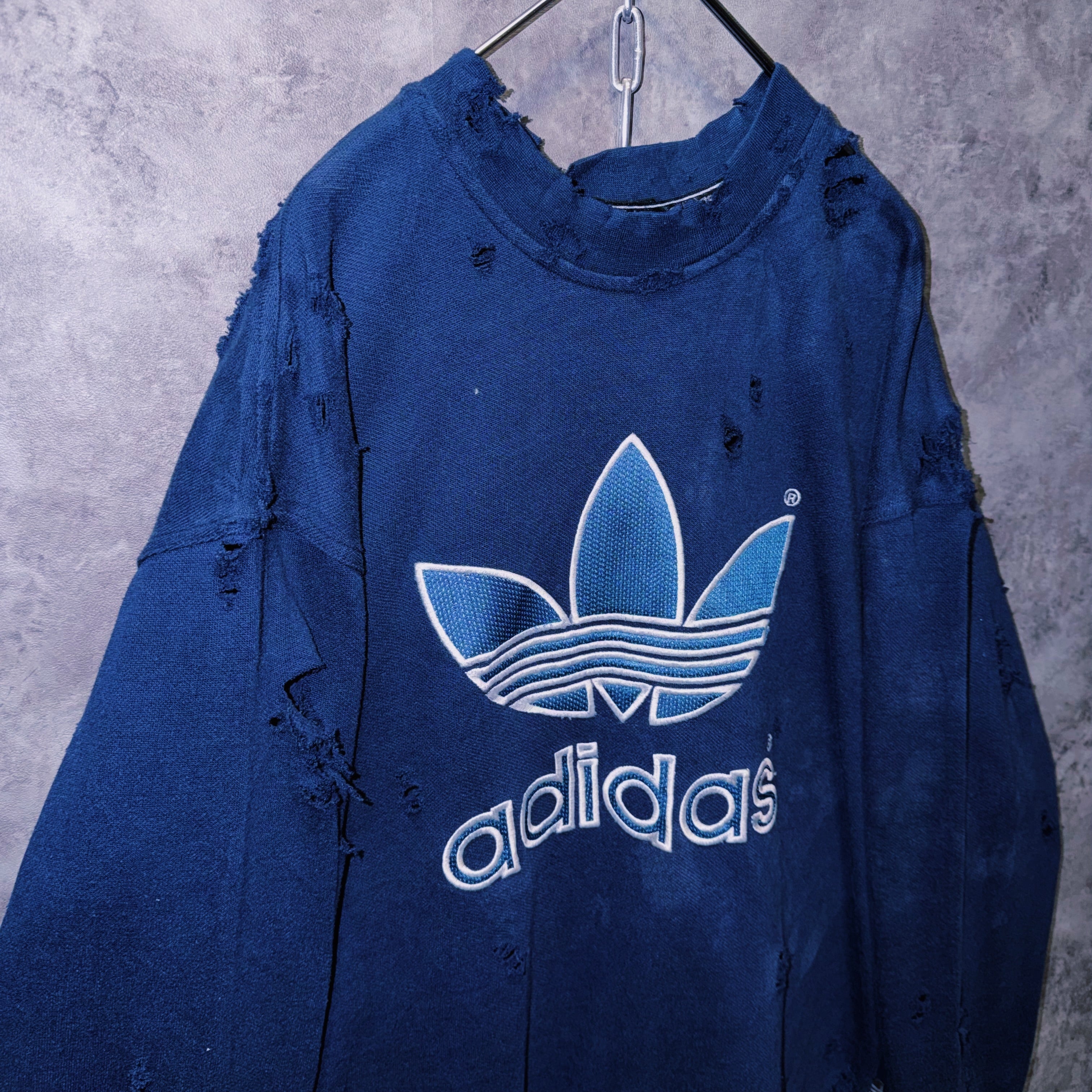 ヴィンテージ“adidas”トレフォイルロゴデザインボロカスタムスウェットプルオーバー
