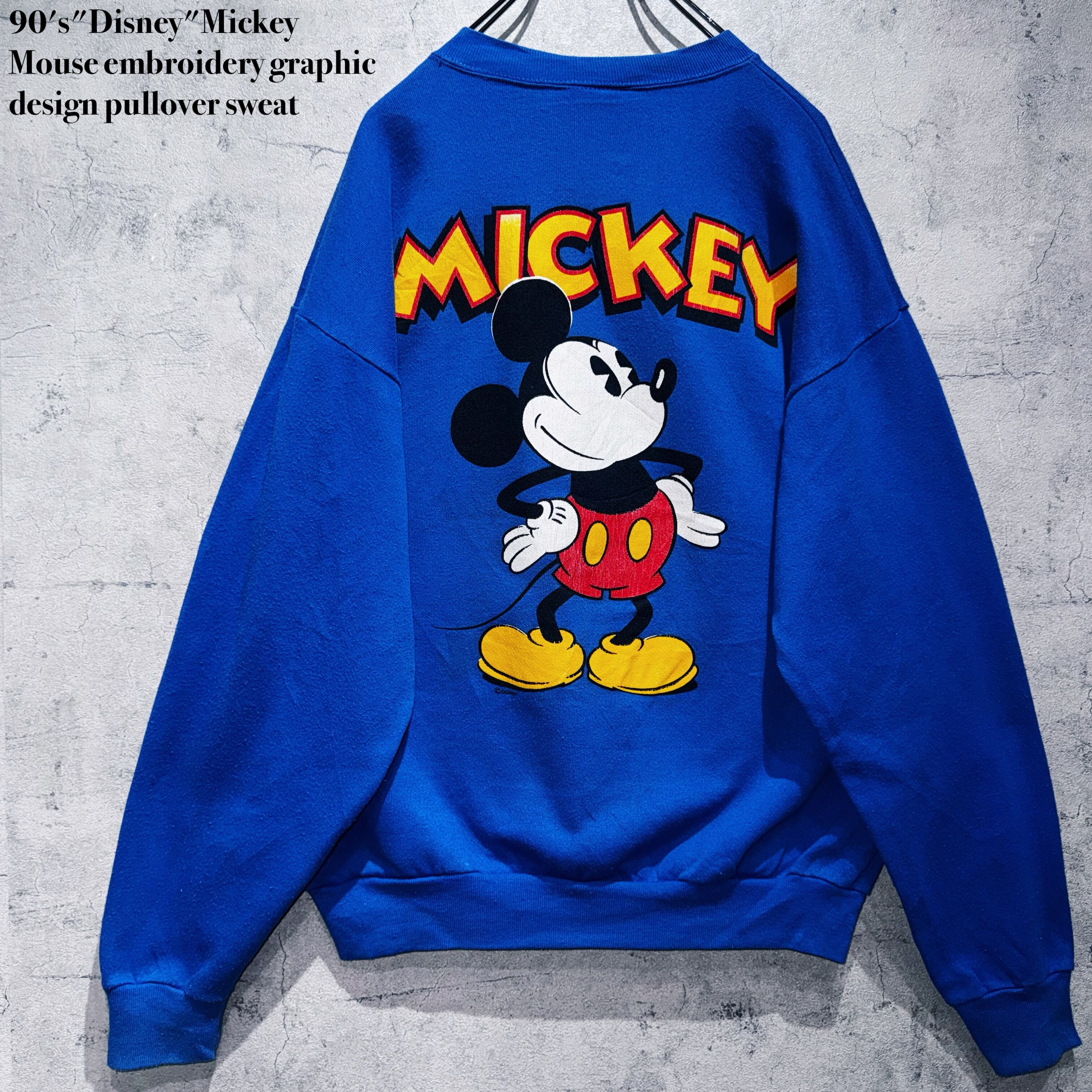 90年代"ディズニー"ミッキーマウスエンブロイダリーグラフィックデザインプルオーバースウェット