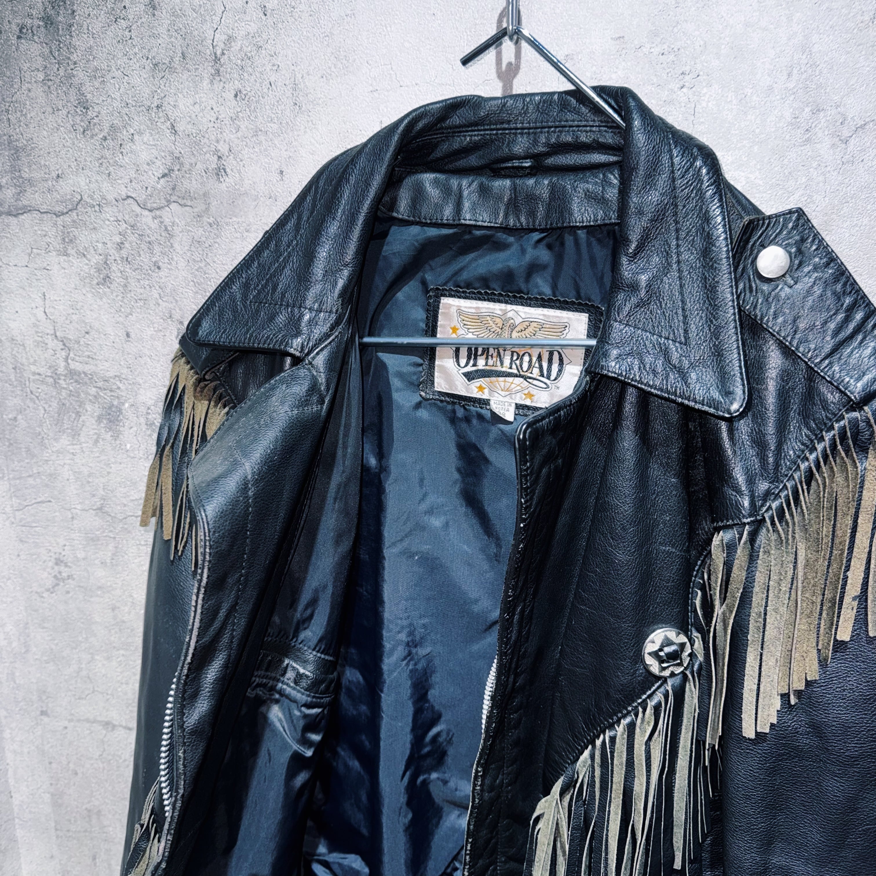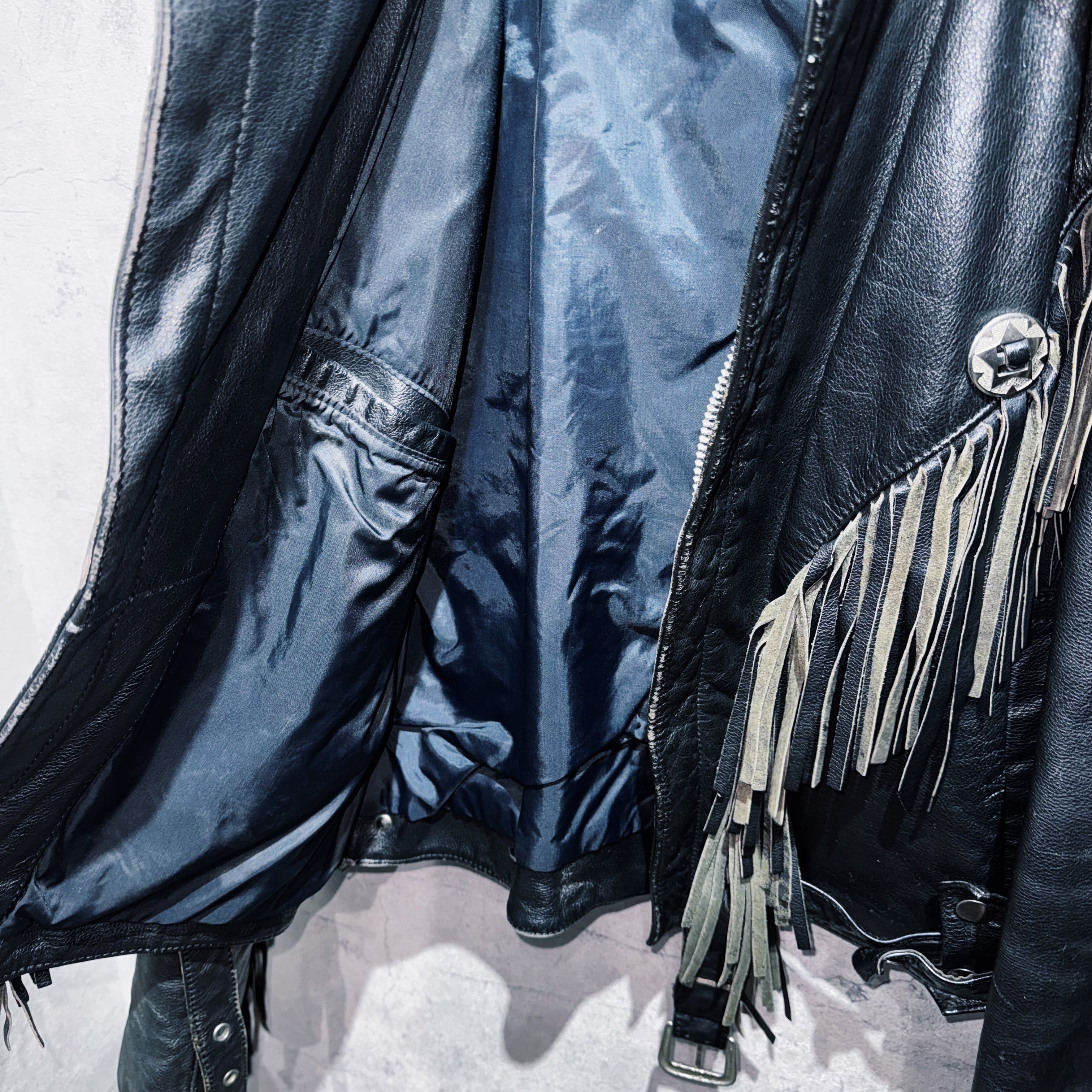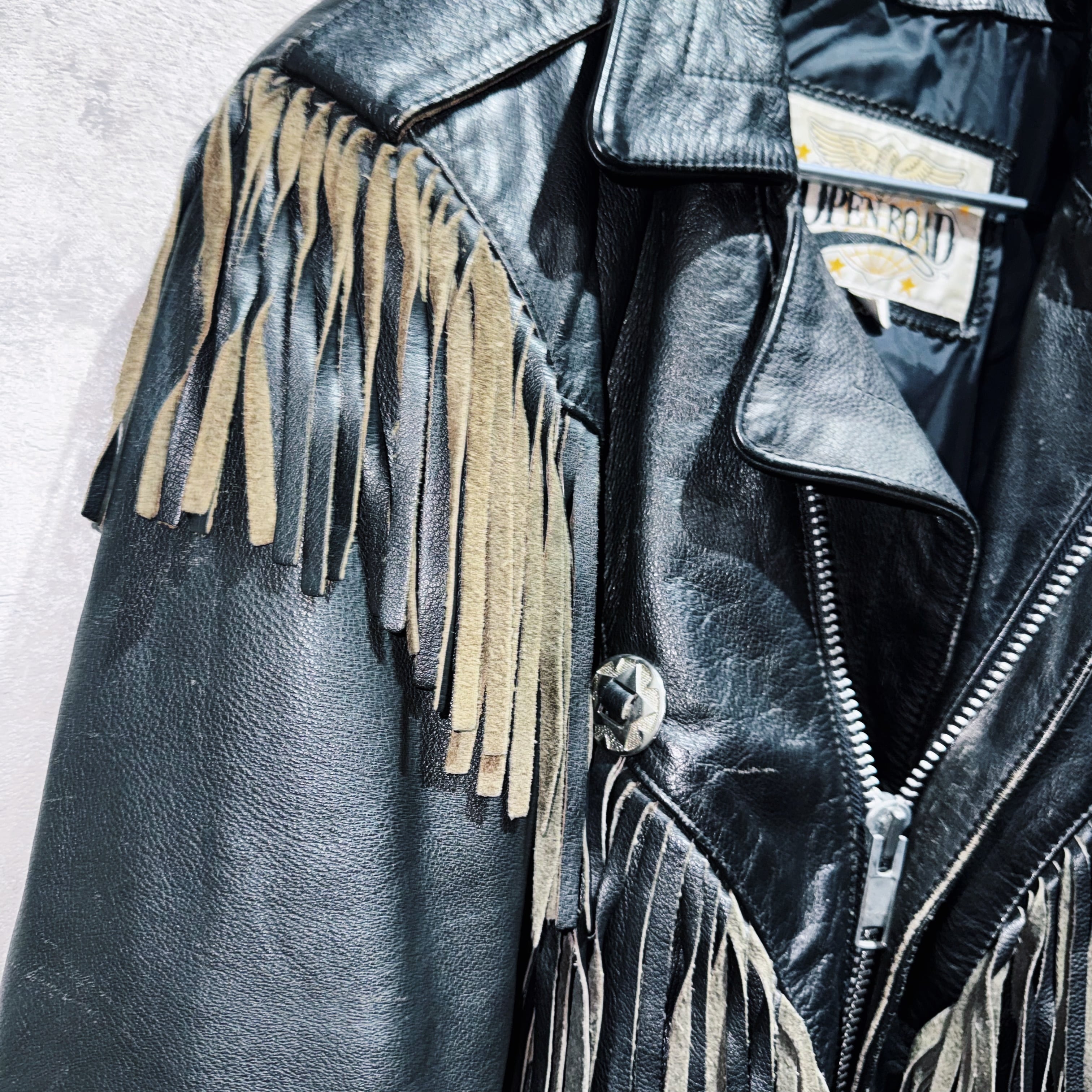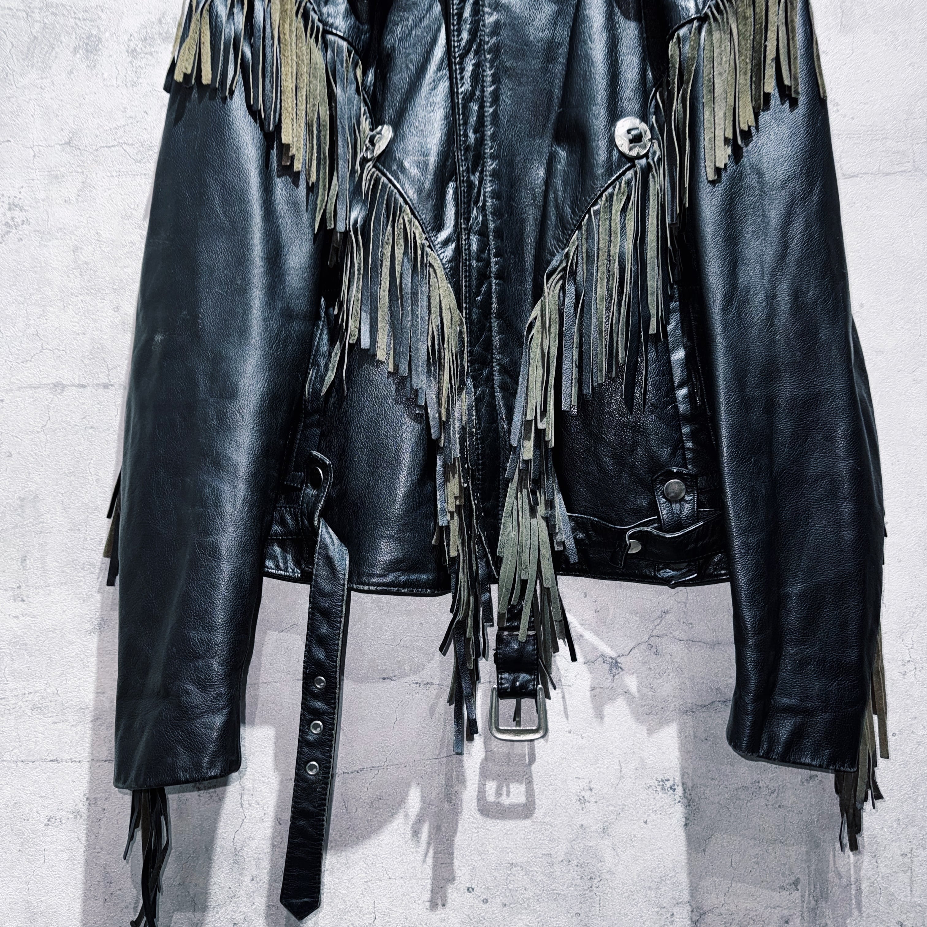 フリンジデザインウエスタンレザーショートジャケット