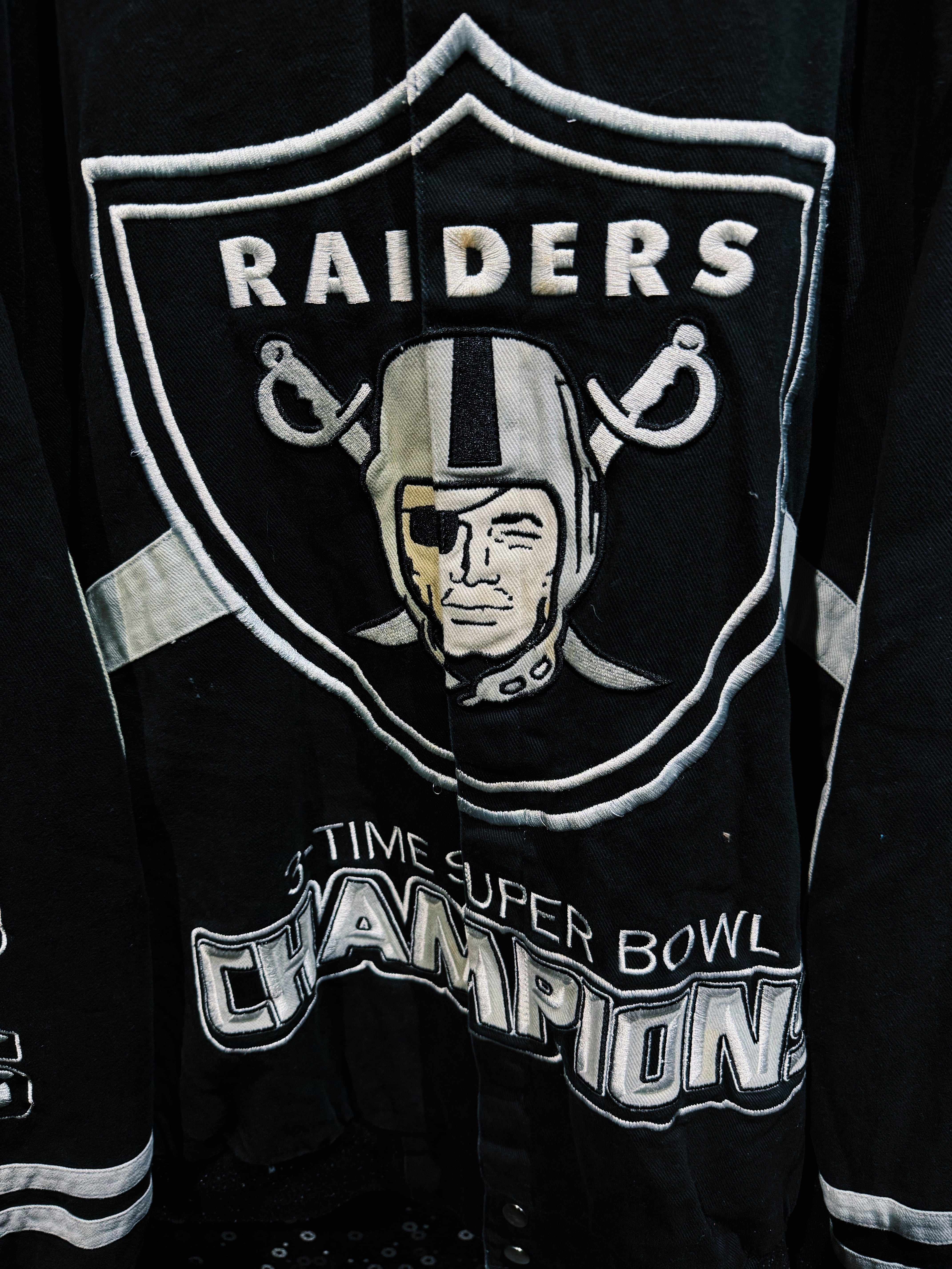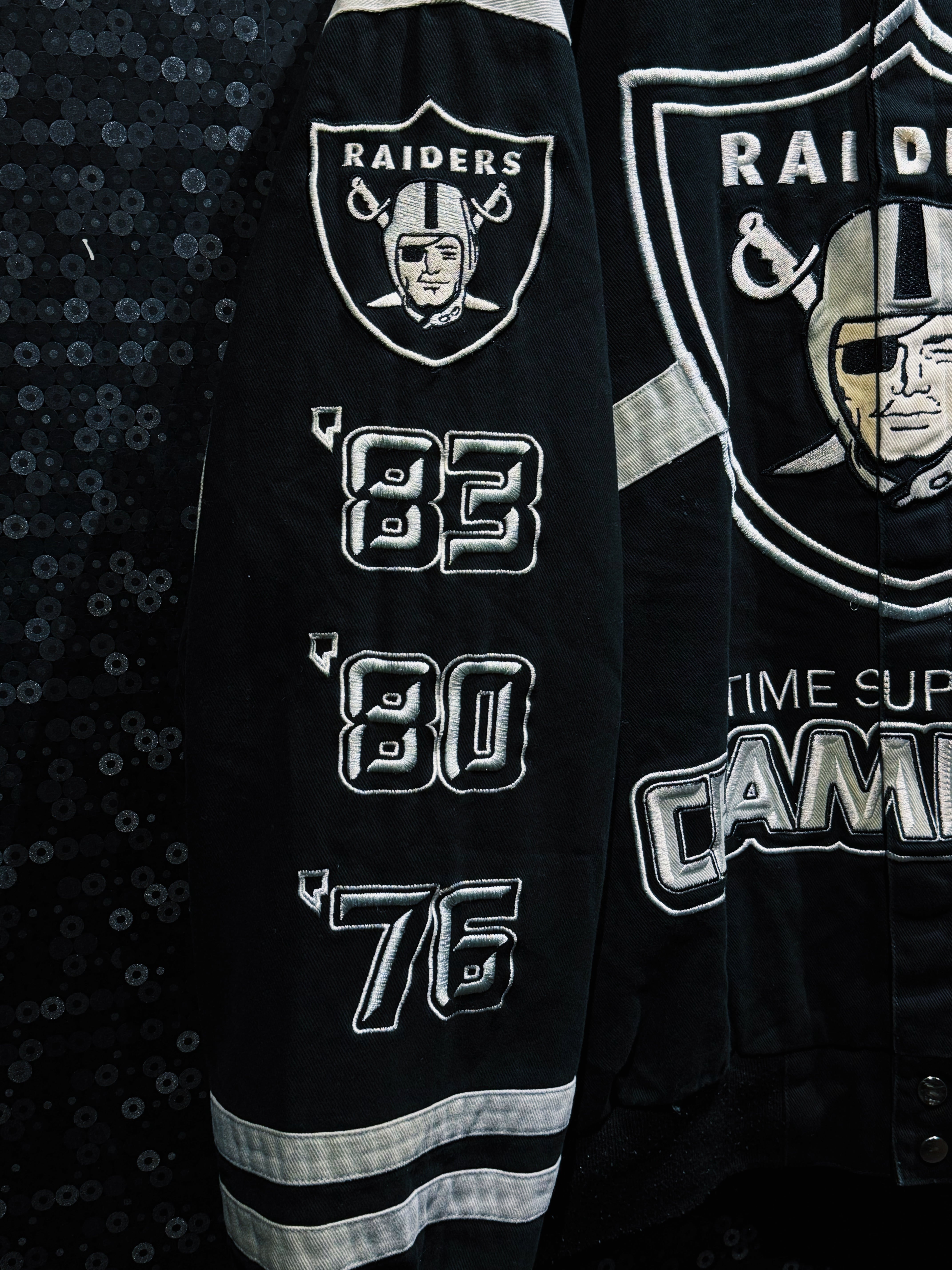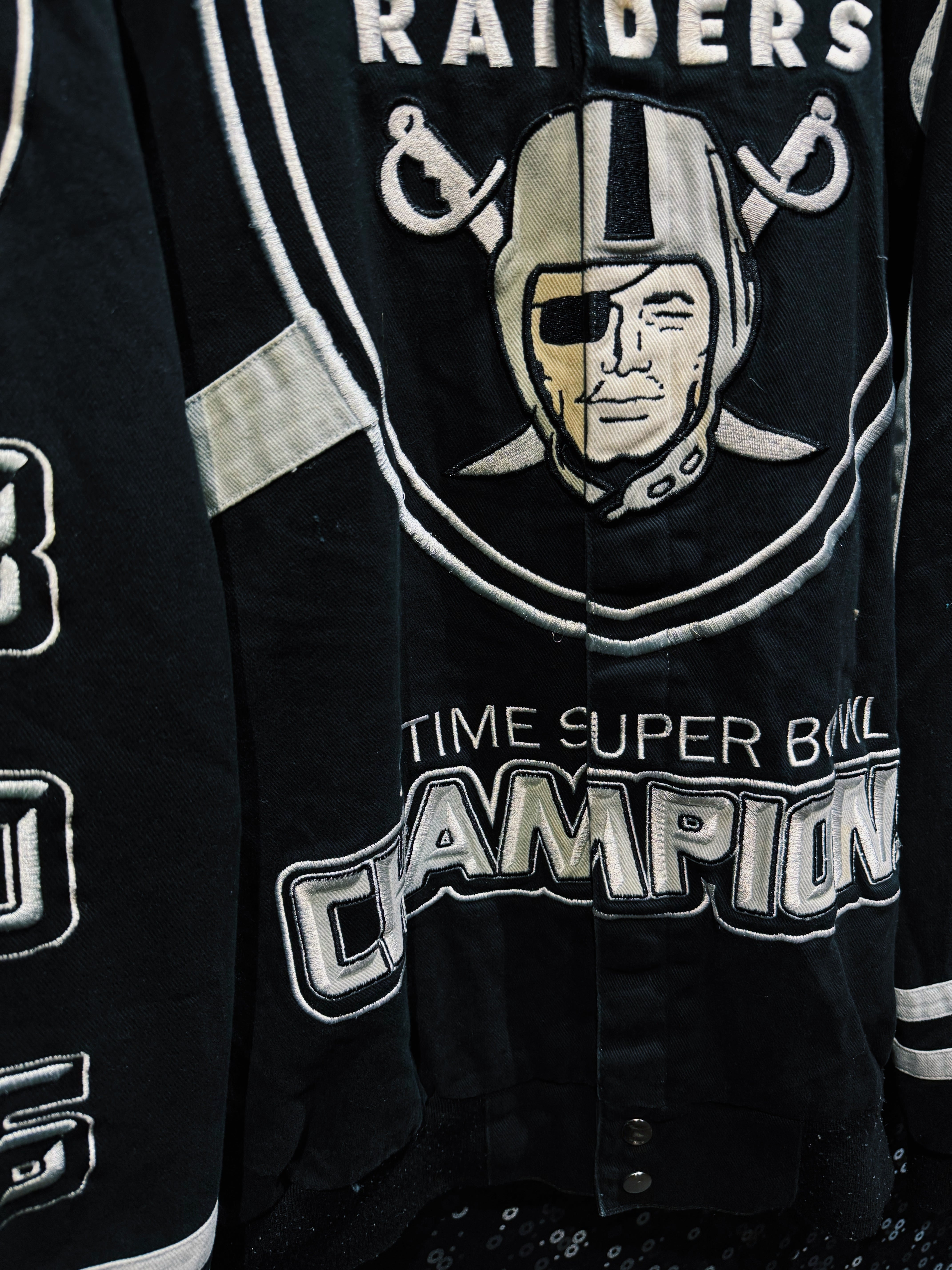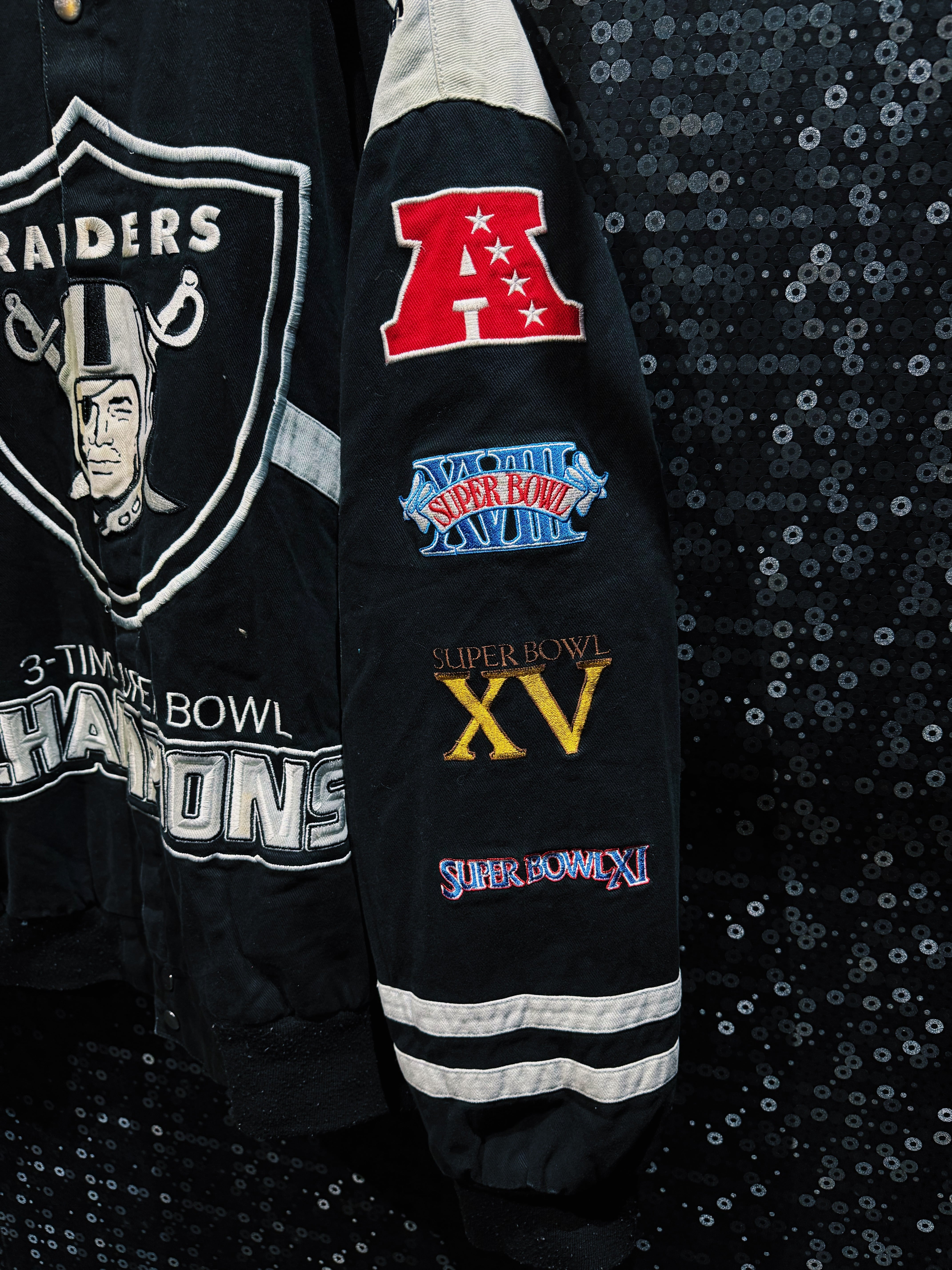 アメリカンフットボールカルチャーを背景に持つNFLアイテムの中でも、圧倒的なロゴインパクトを持つSAINTSデザイン。スポーツウェアとストリートファッションの境界を象徴する、存在感のあるヴィンテージスタジアムジャケット。