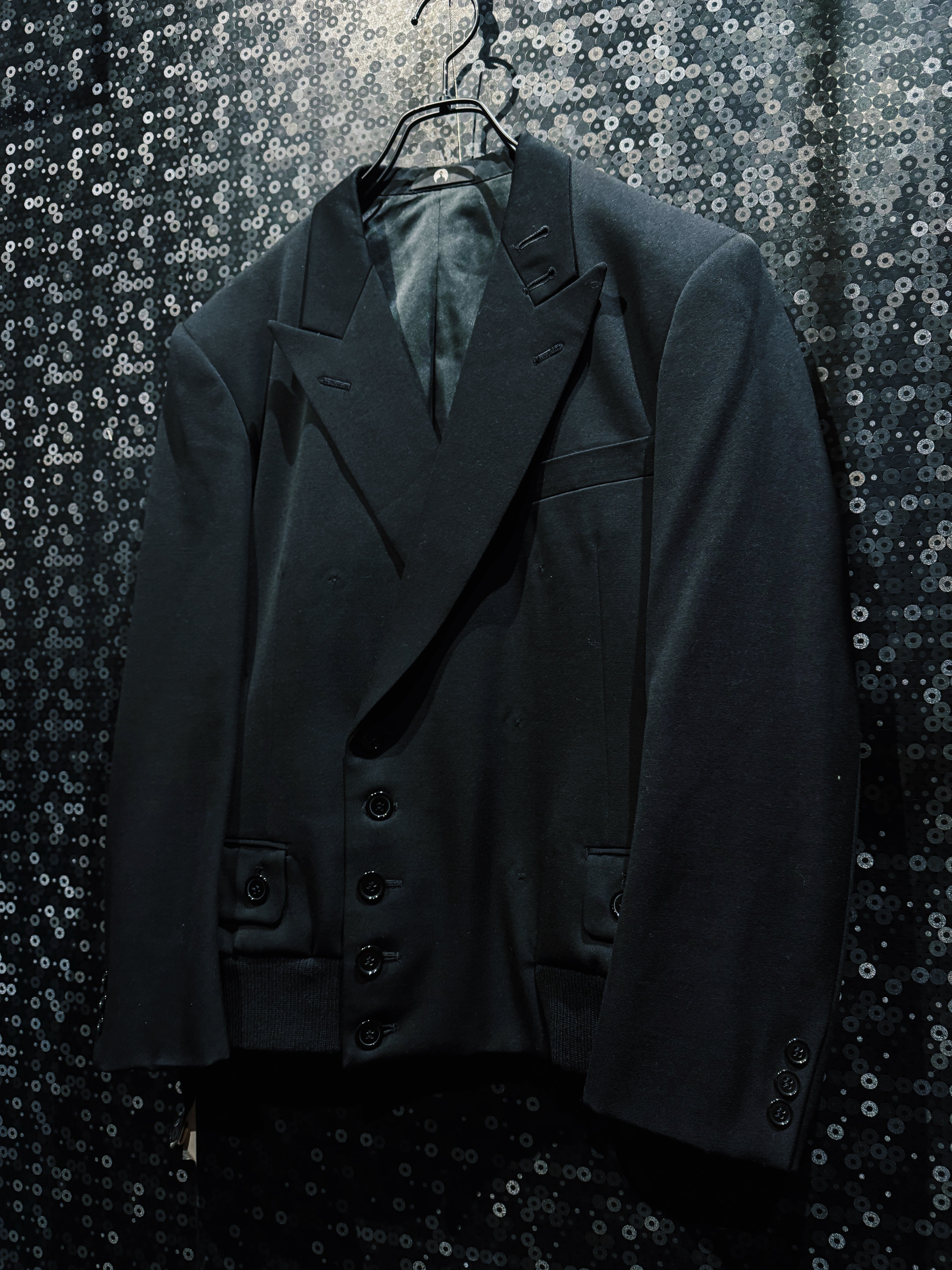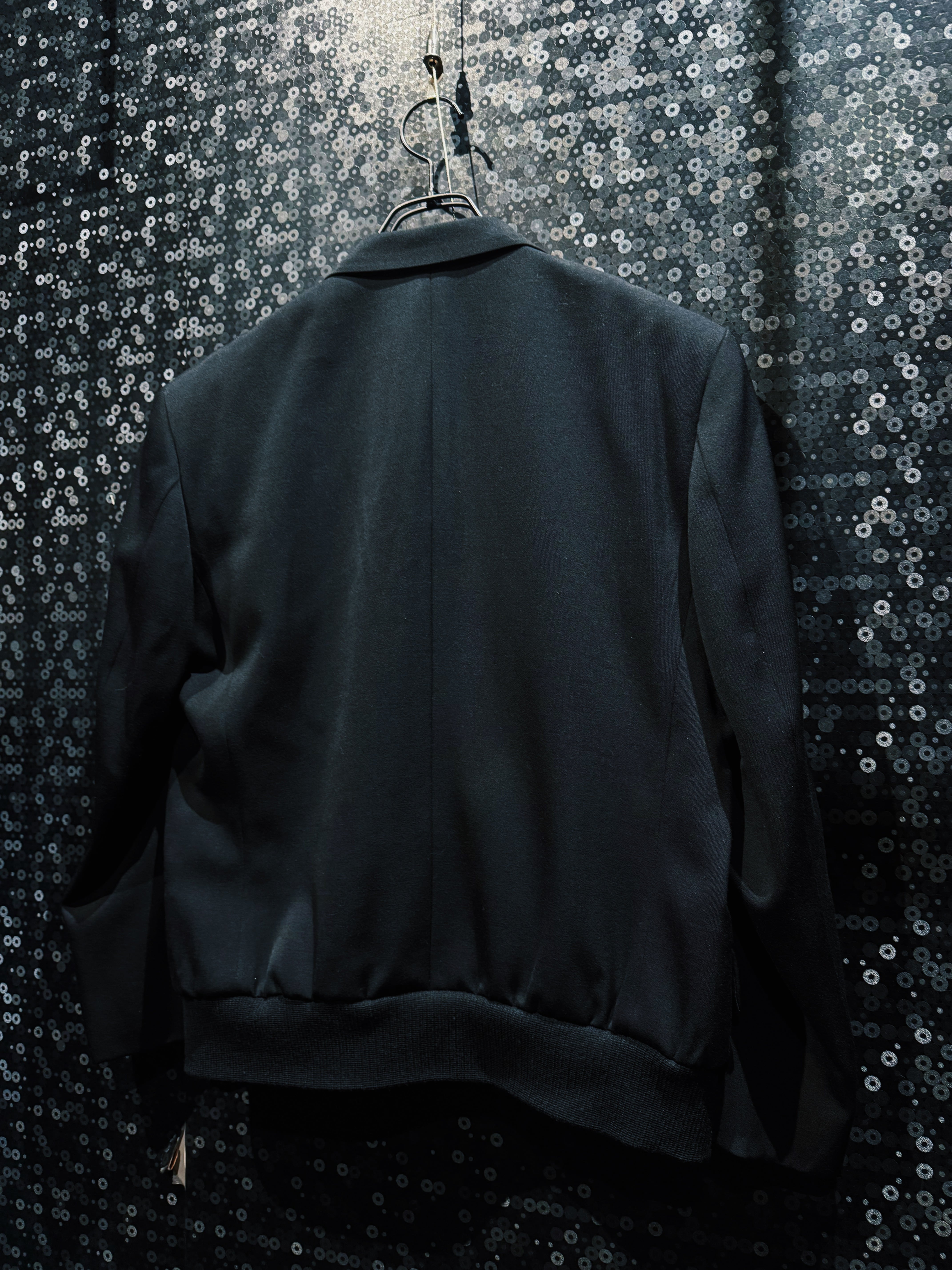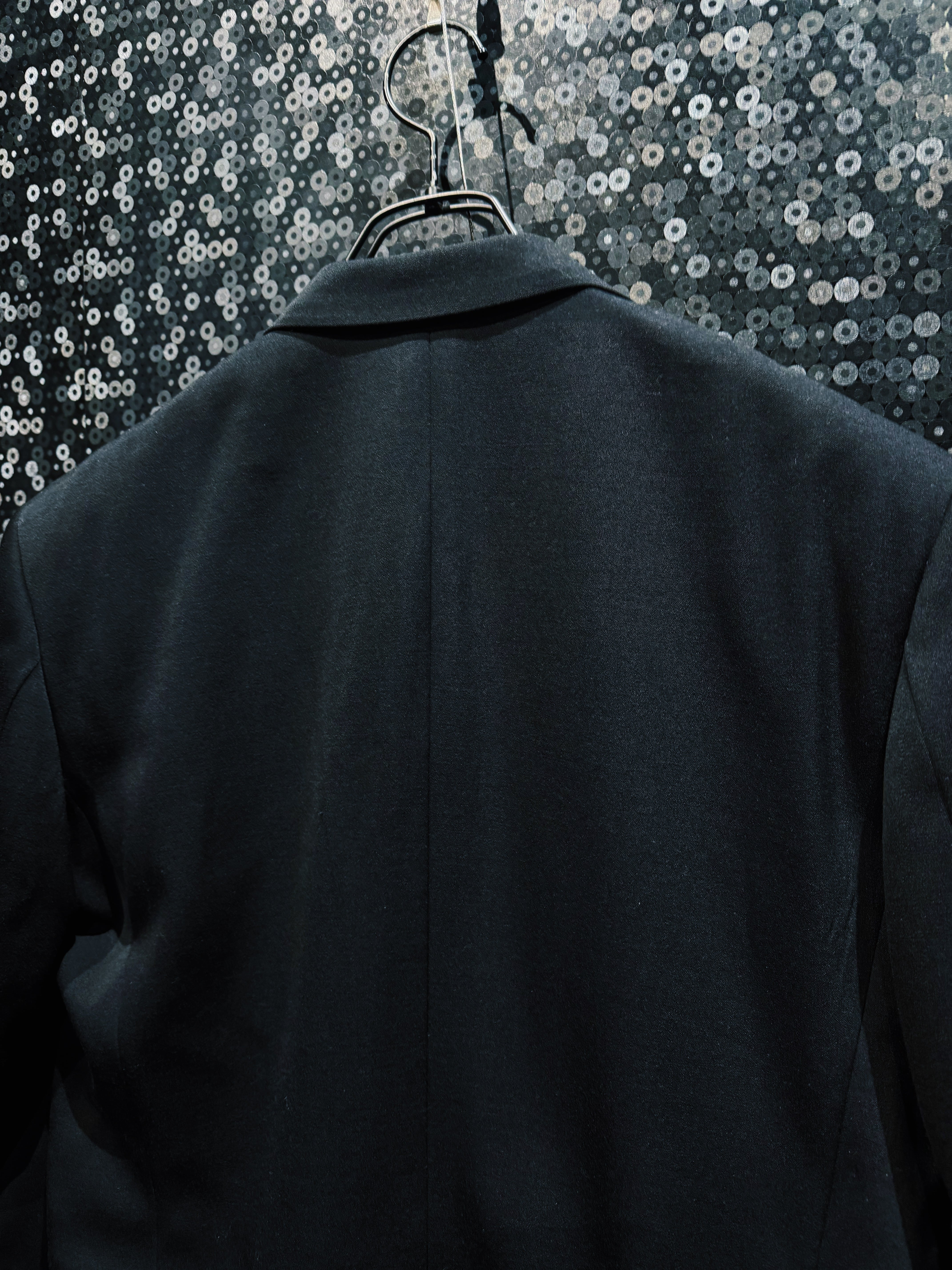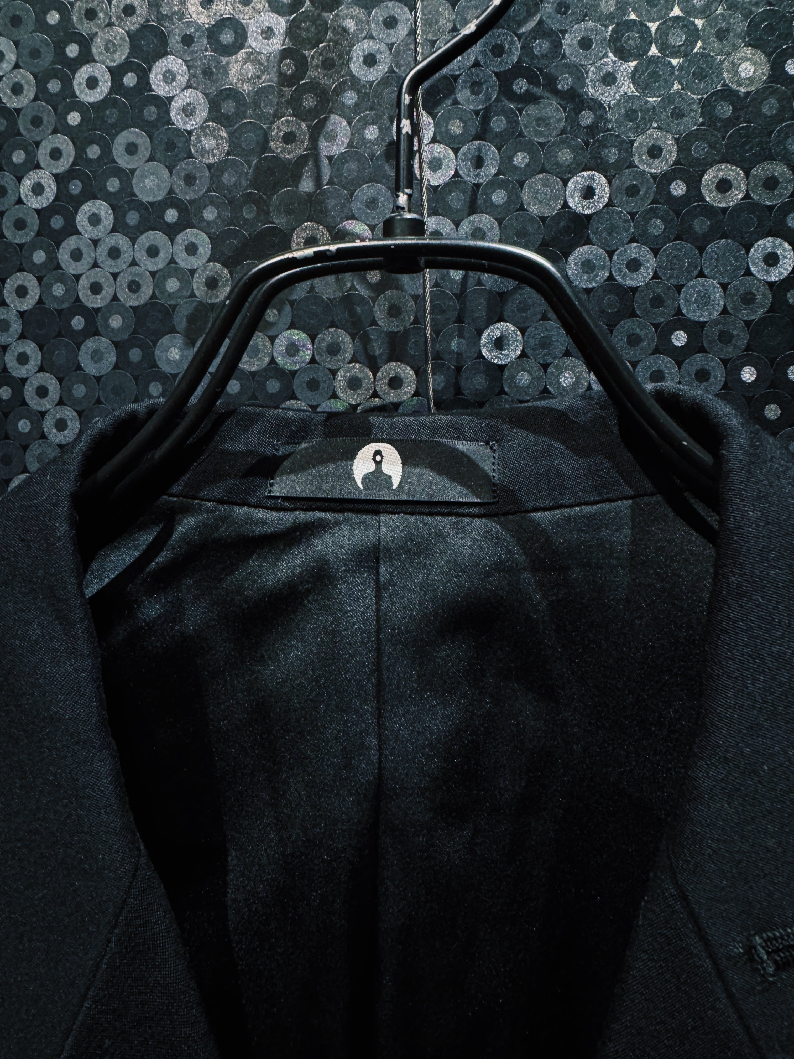 BLANK ICONのコンセプトである「匿名性」「空白」「投影」をそのまま服の構造に落とし込んだオリジナルテーラードジャケット。全てを漆黒で統一したミニマルなデザインながら、シルエットとディテールだけで強烈な存在感を放つ一着になっている。