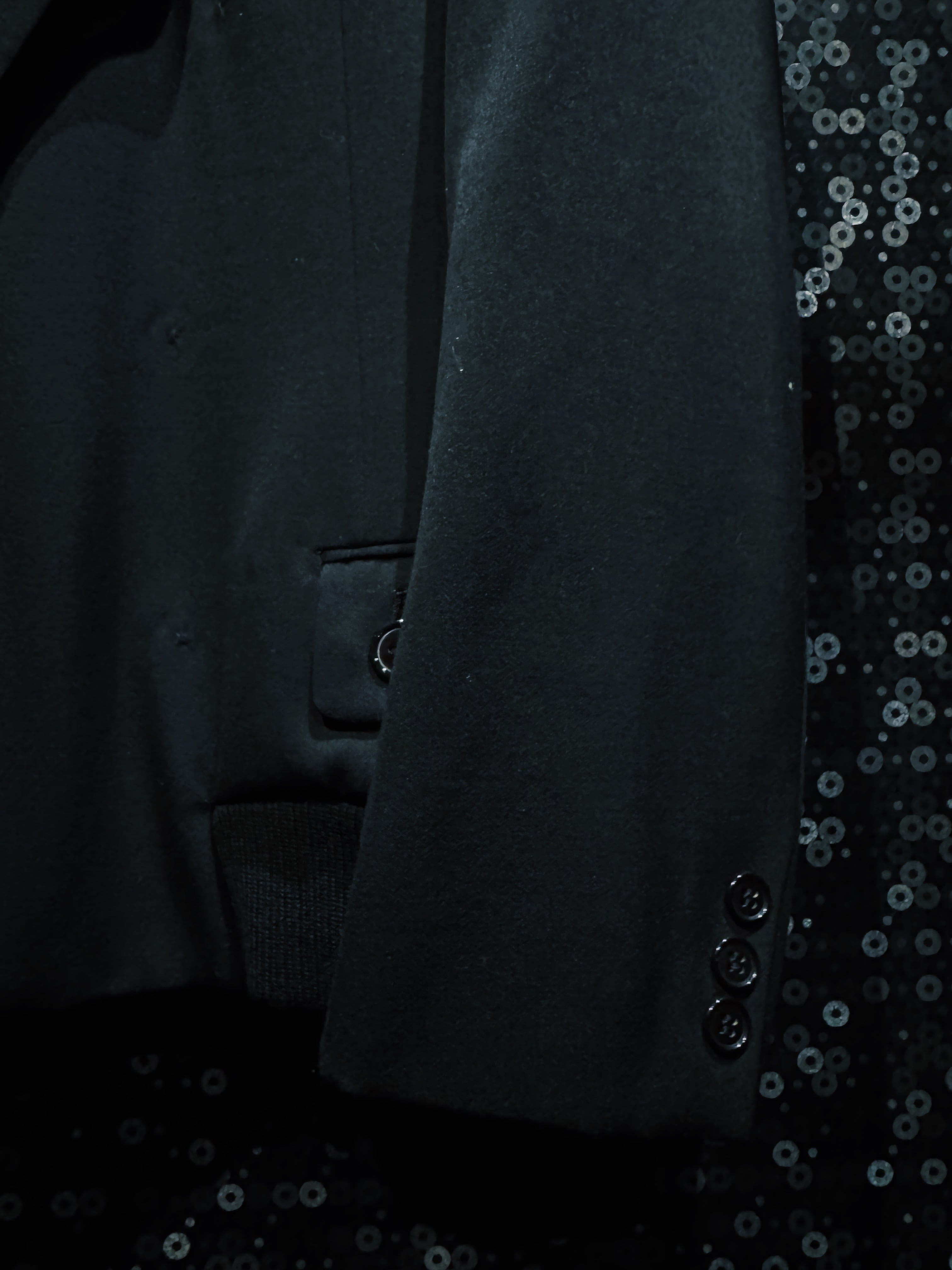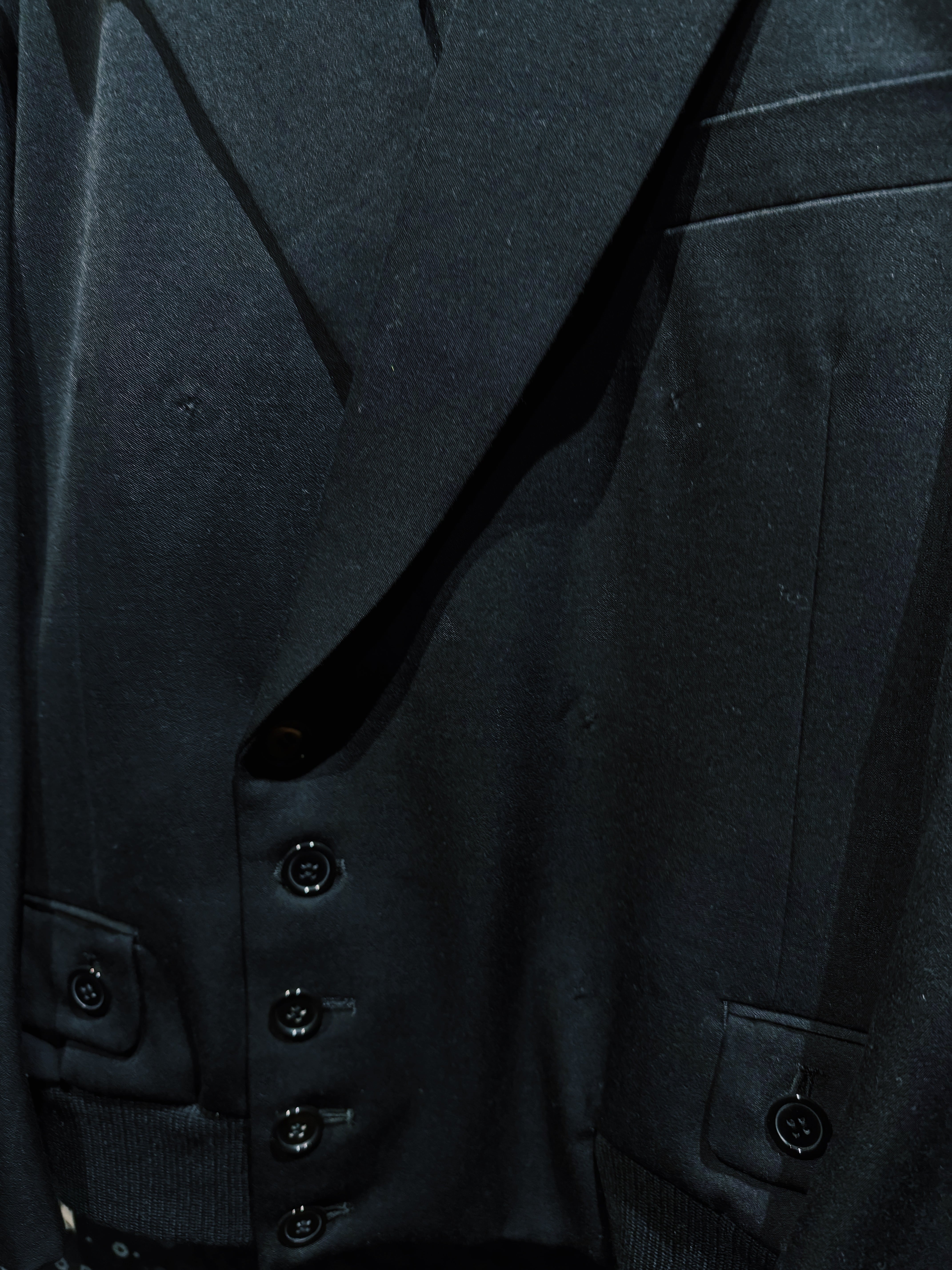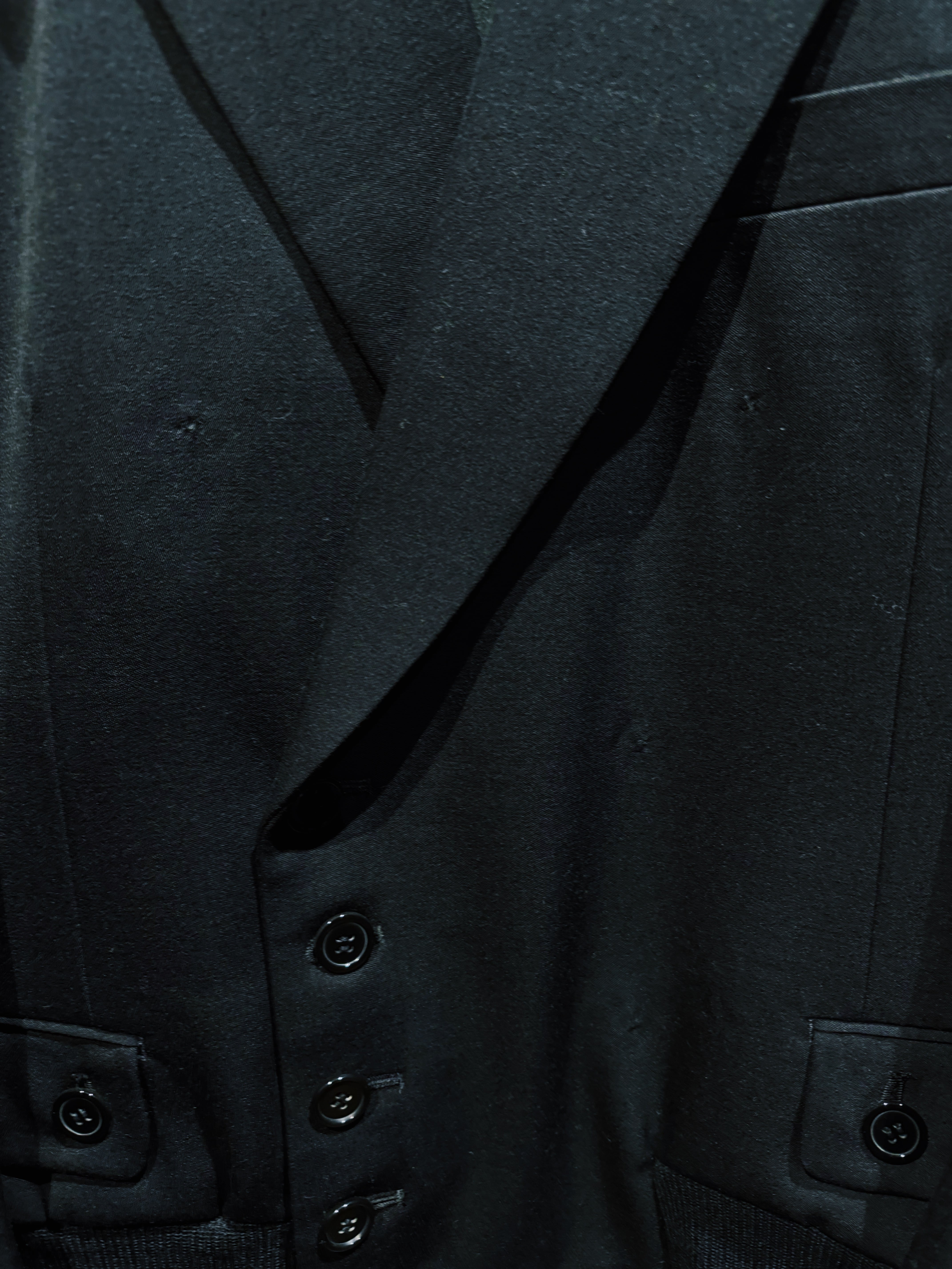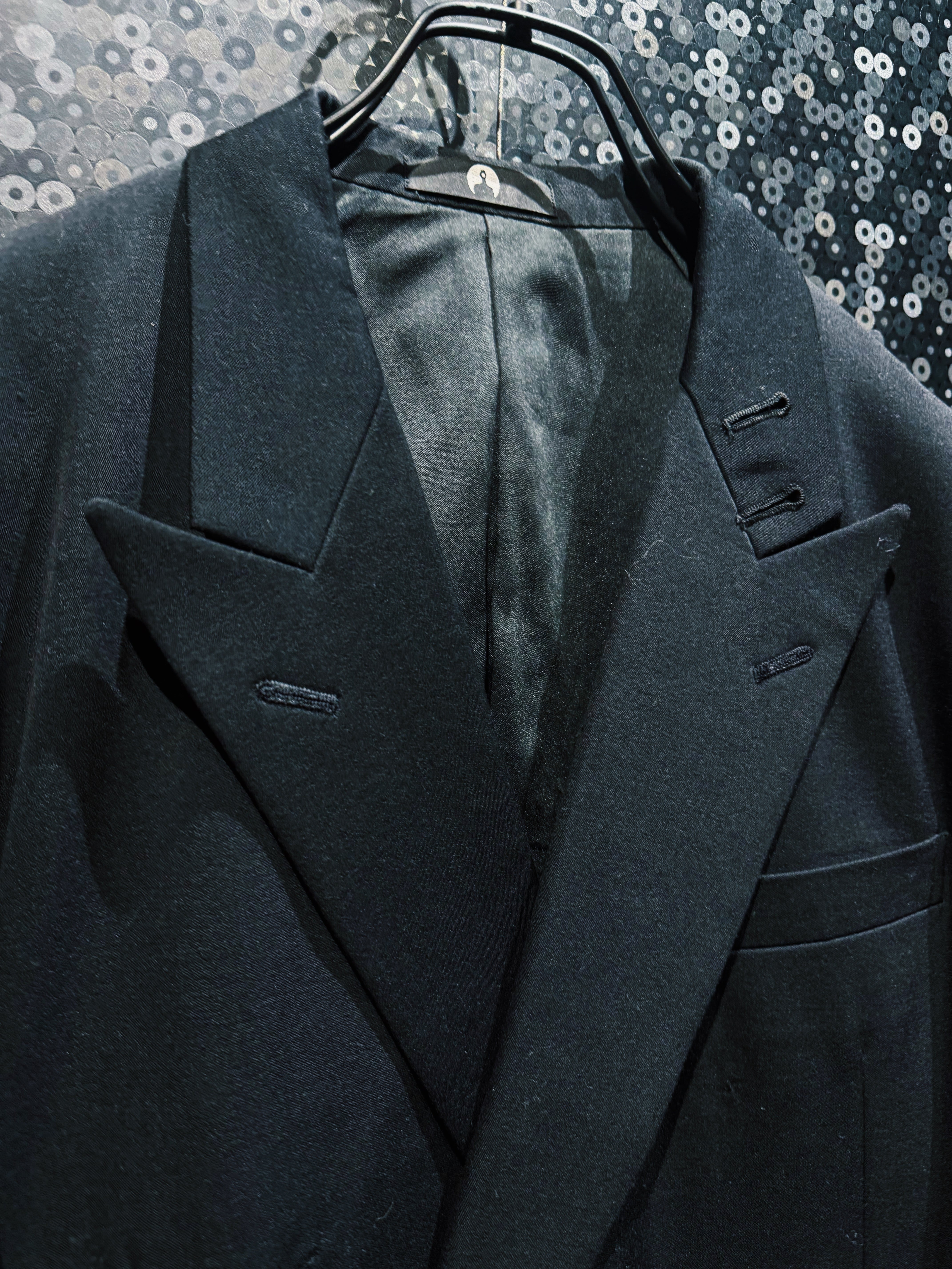 BLANK ICONのコンセプトである「匿名性」「空白」「投影」をそのまま服の構造に落とし込んだオリジナルテーラードジャケット。全てを漆黒で統一したミニマルなデザインながら、シルエットとディテールだけで強烈な存在感を放つ一着になっている。