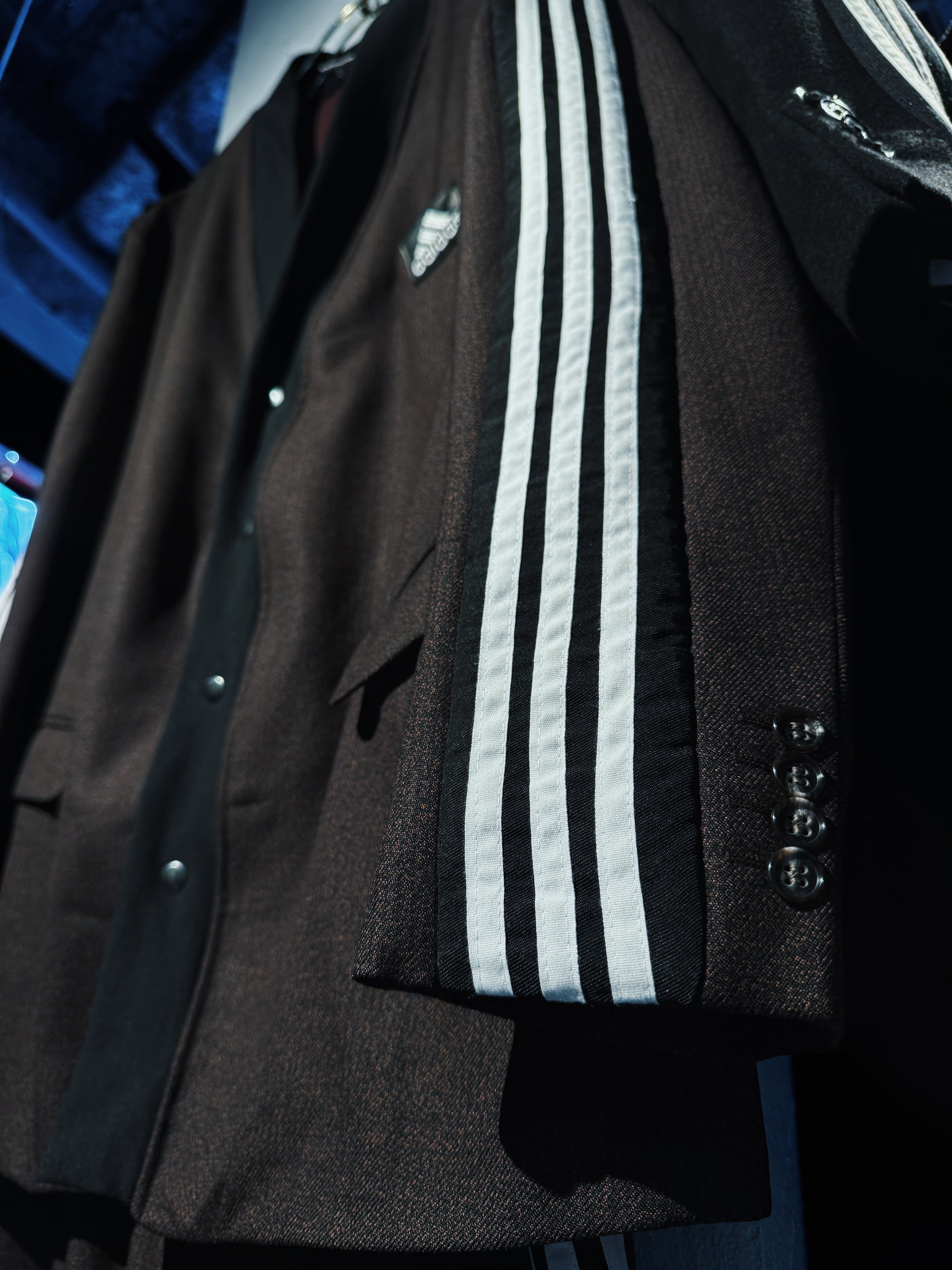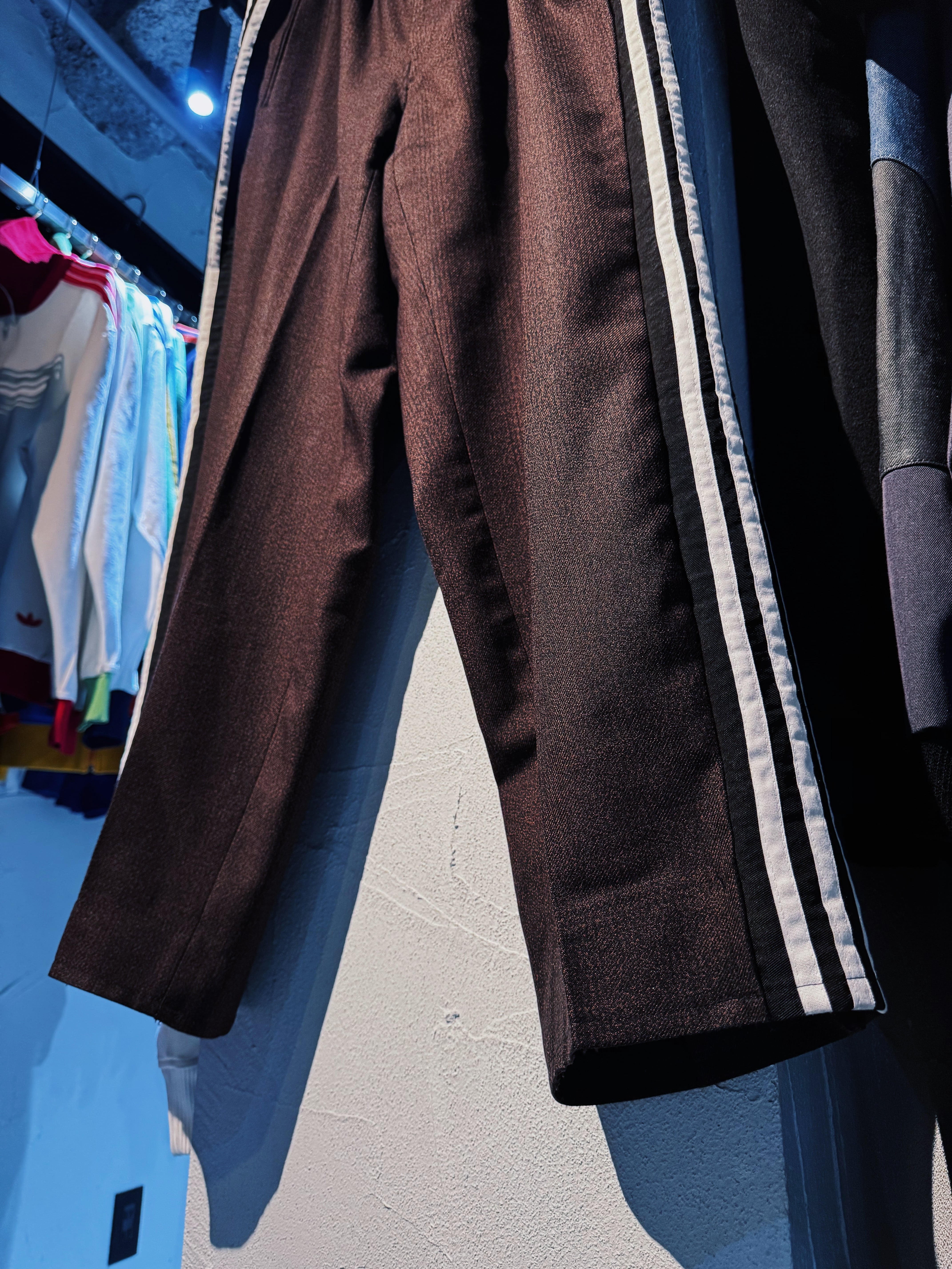 モードでドレッシーな極上のセットアップにシティーポップでハイストリートなadidasのスリーストライプや上質なトラックテキスタイルを"融合"させてハイモード×ハイストリートなアイテムに。