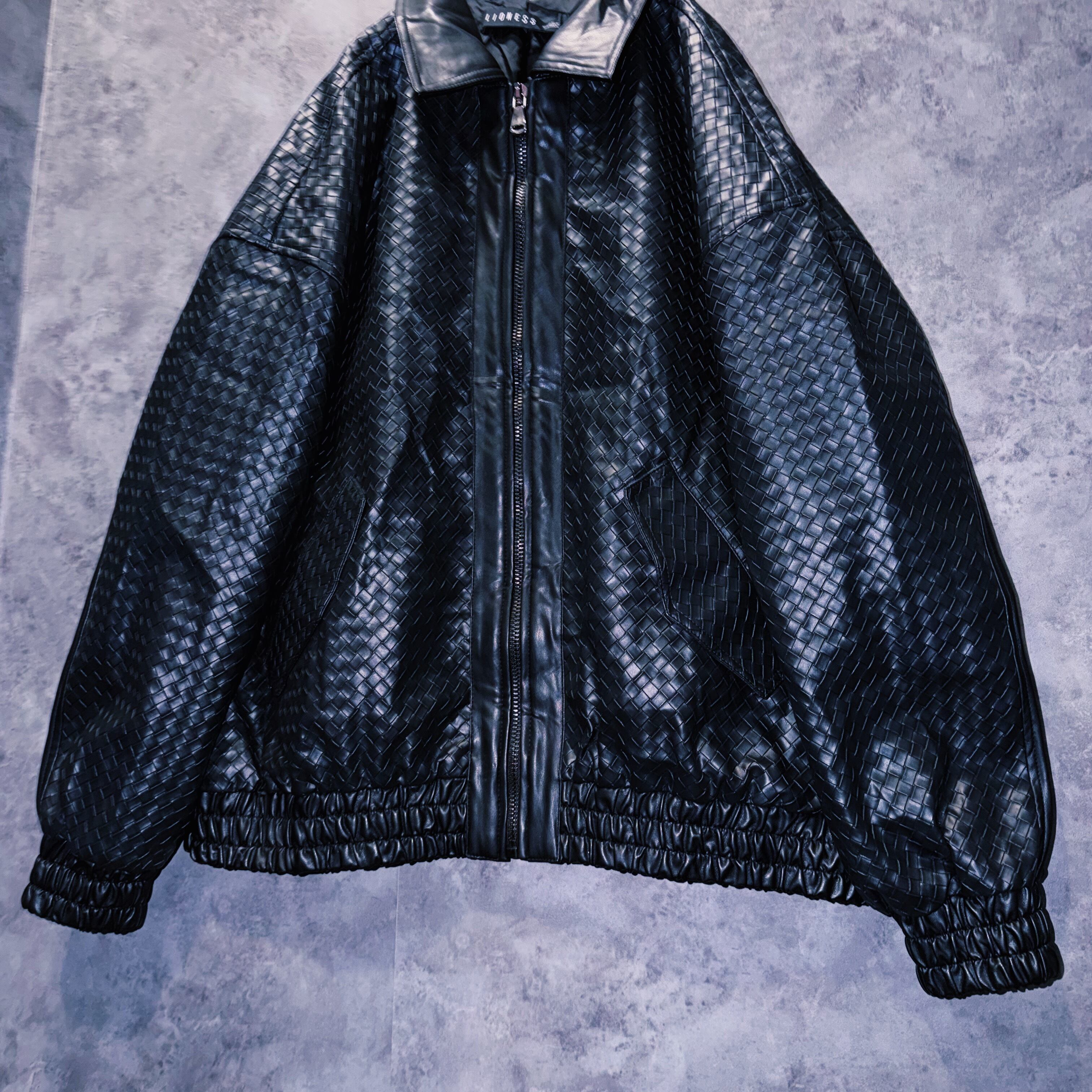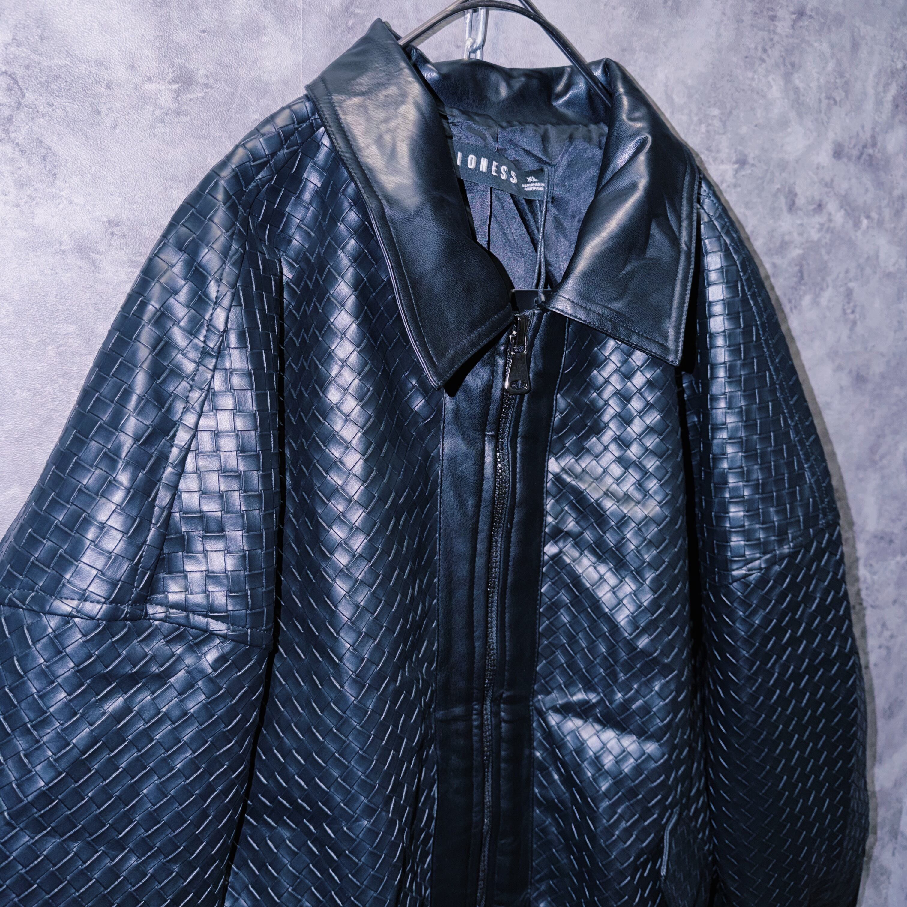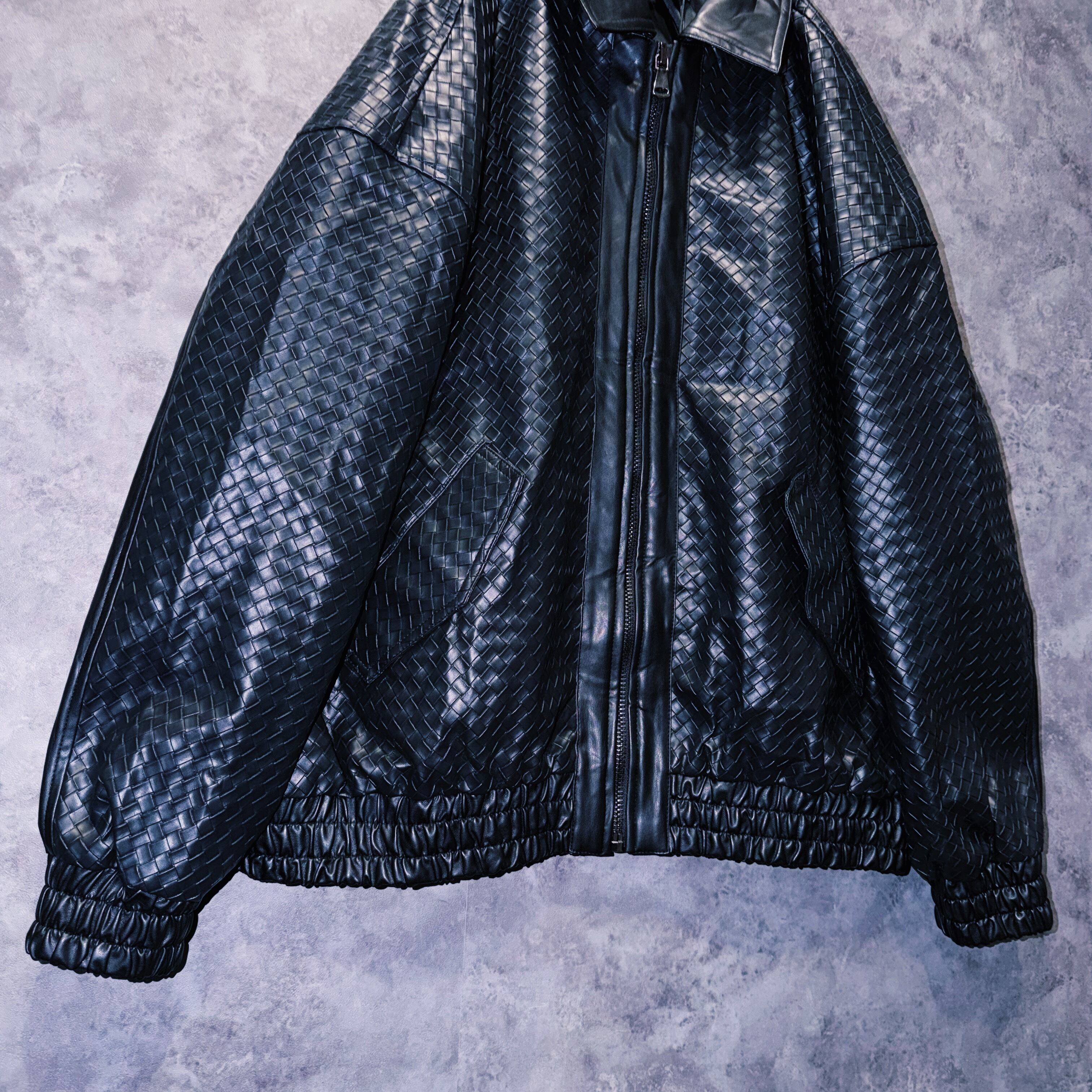 【doppio】90’s vintage black color intrecciato homage design leather jacket