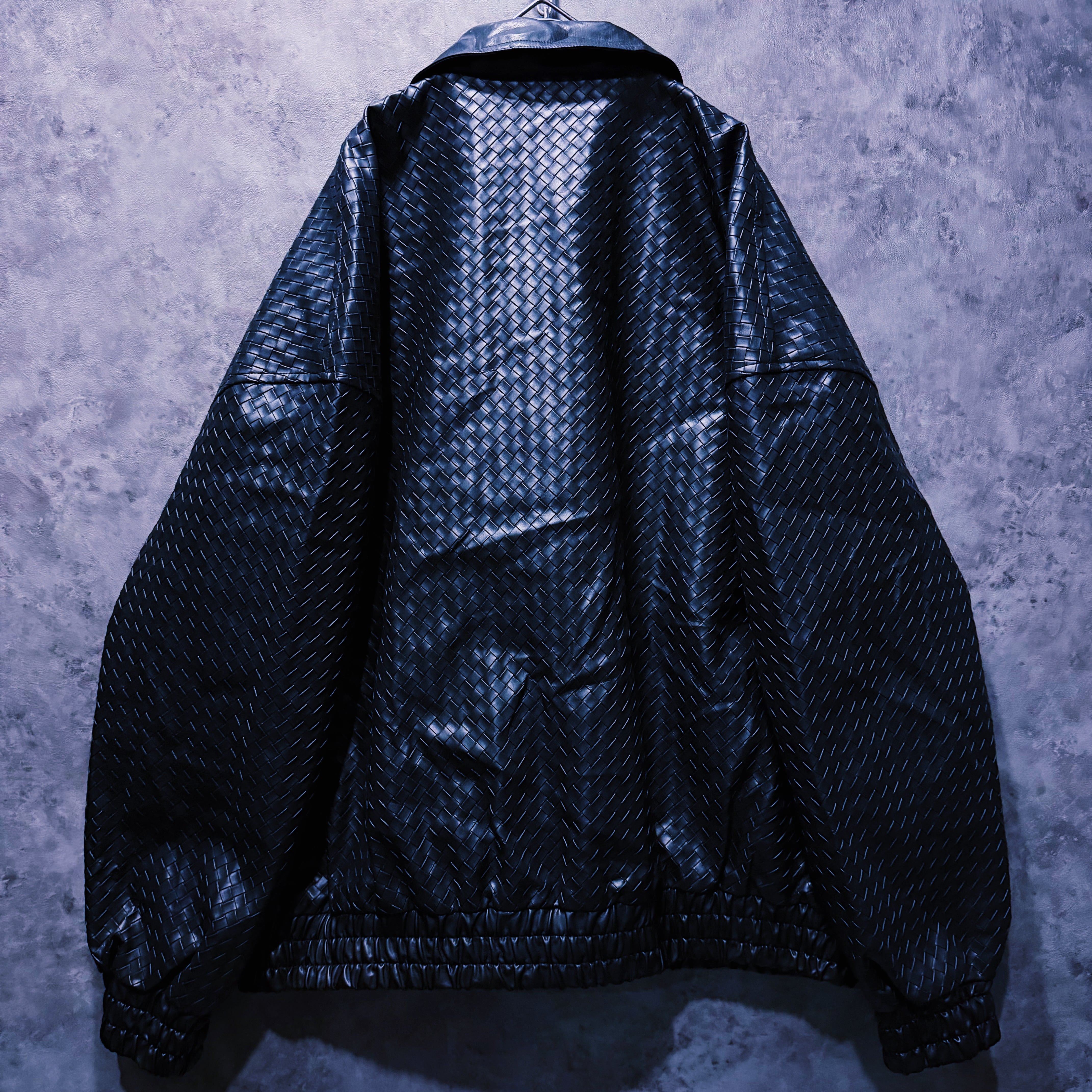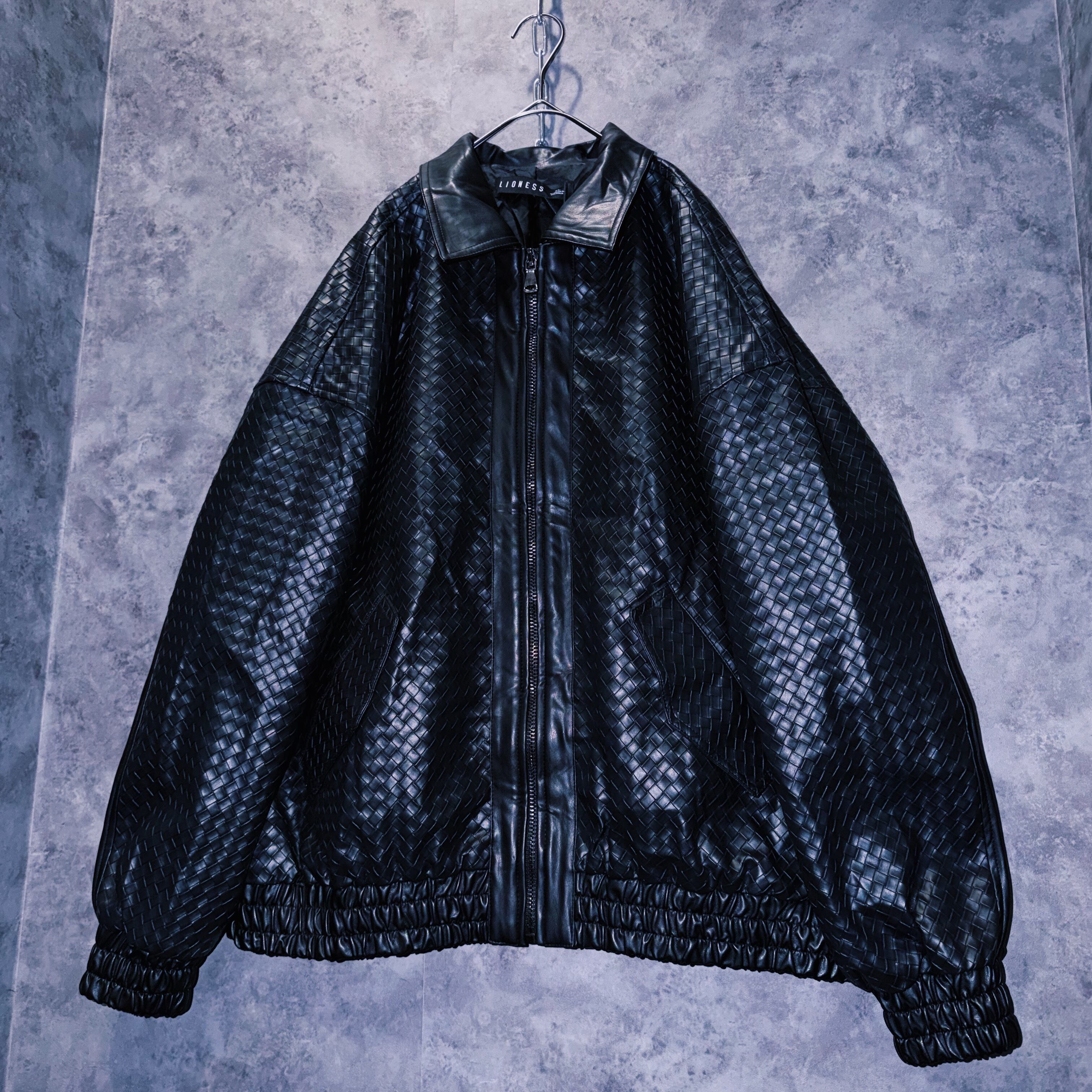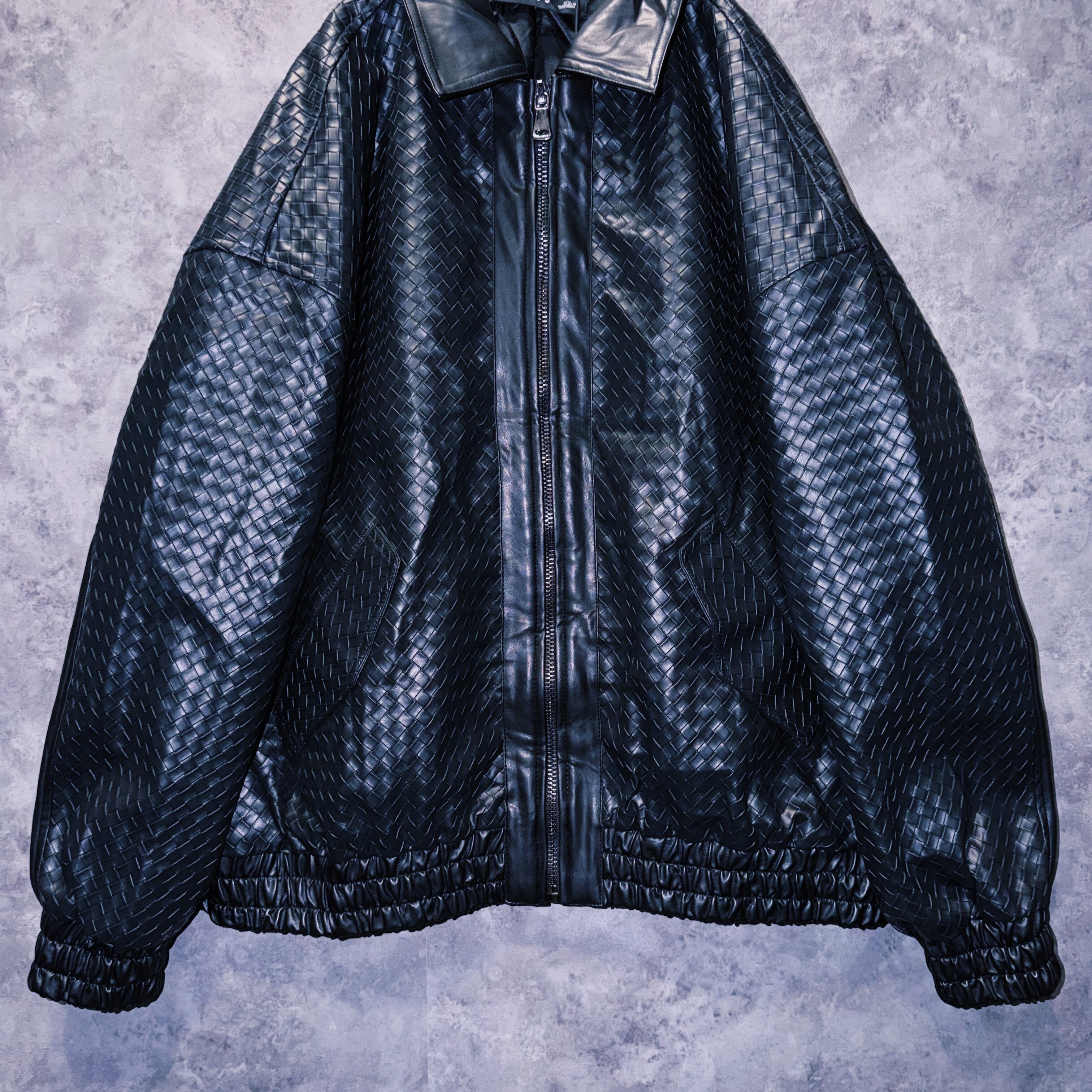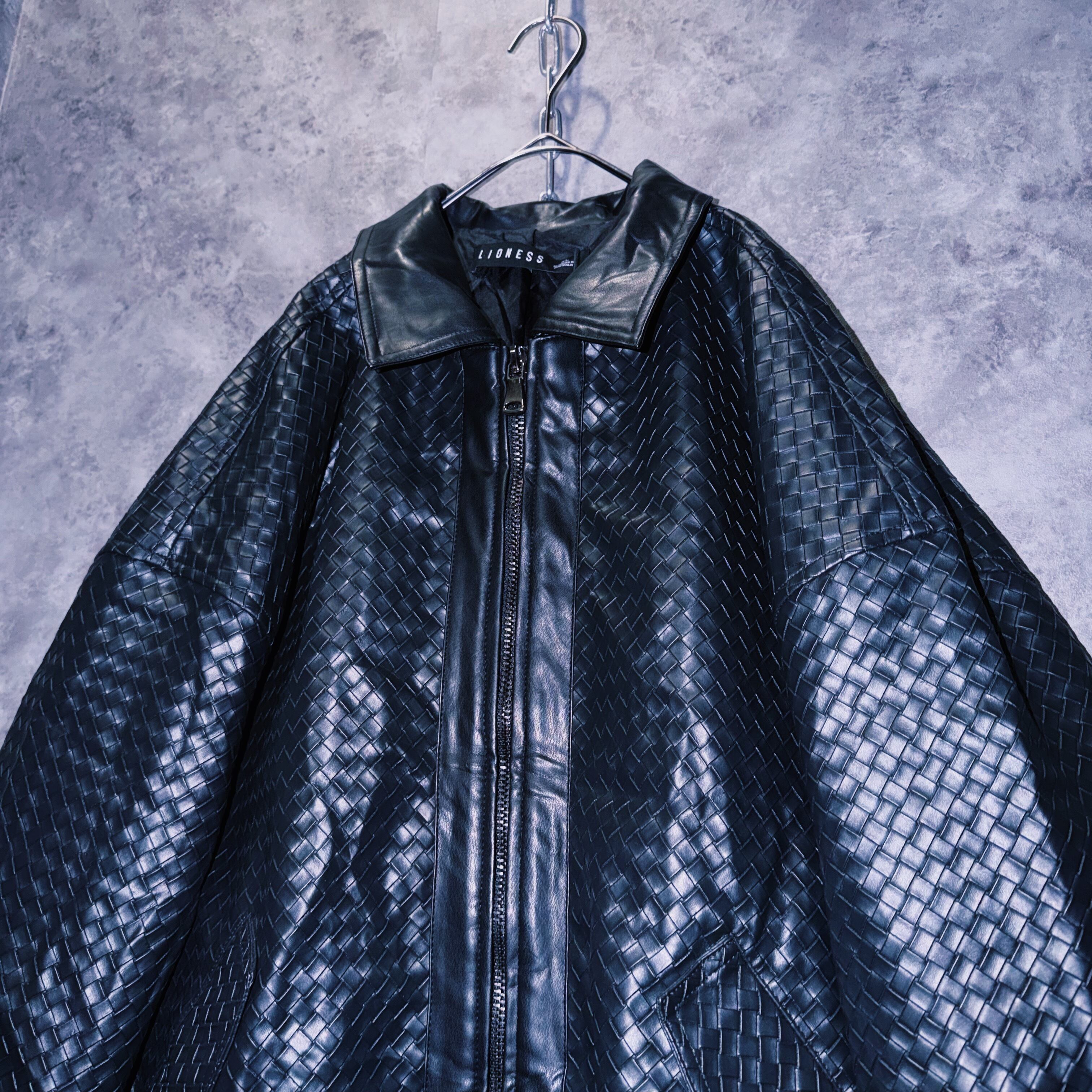 【doppio】90’s vintage black color intrecciato homage design leather jacket