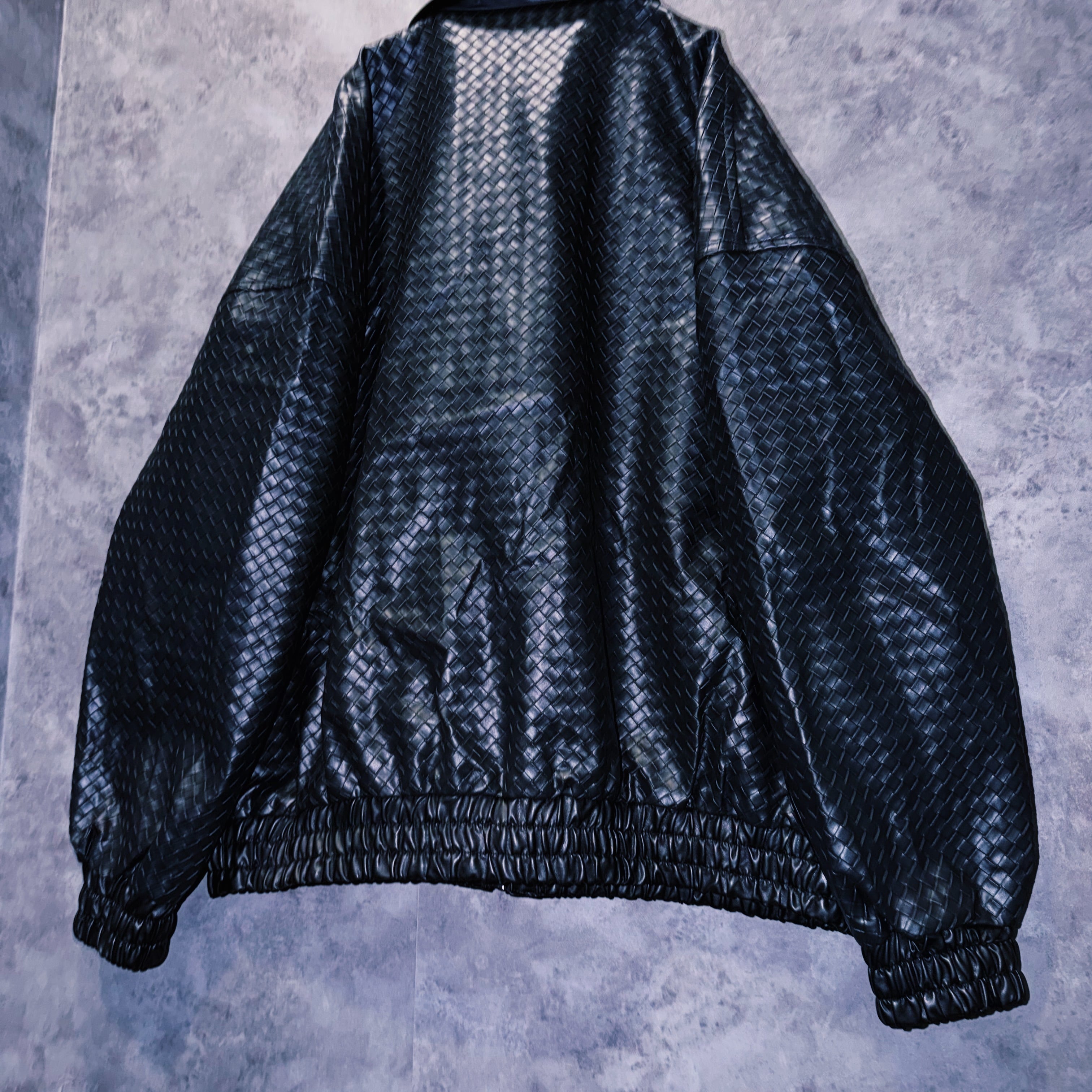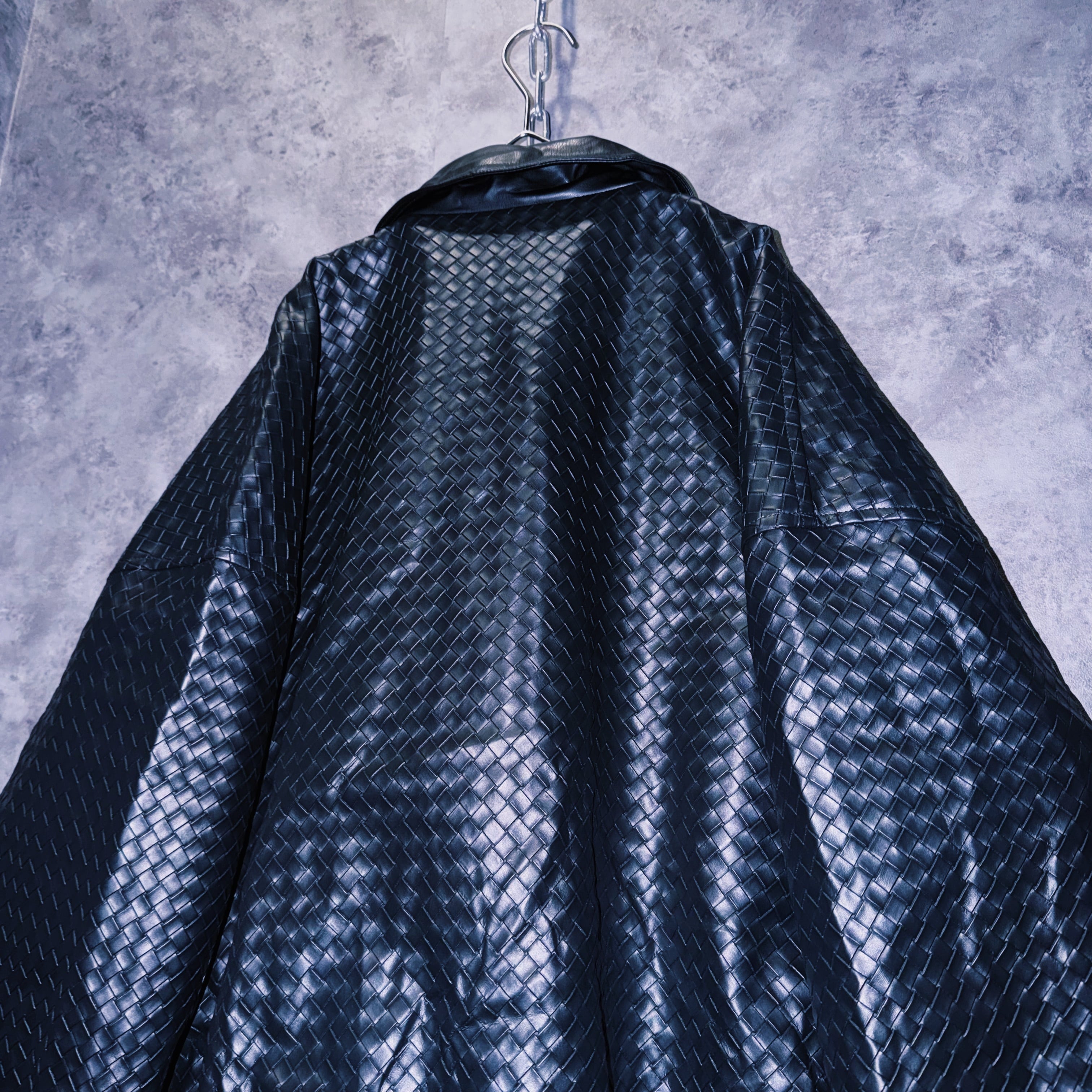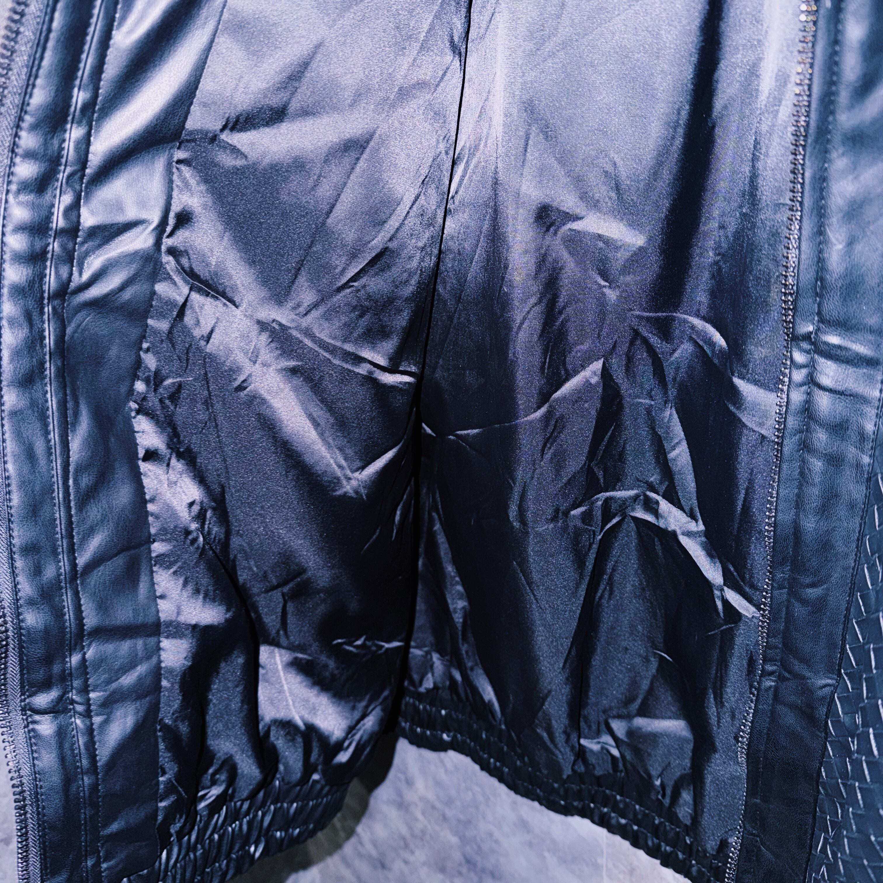 90’s vintage black color intrecciato homage design leather jacket