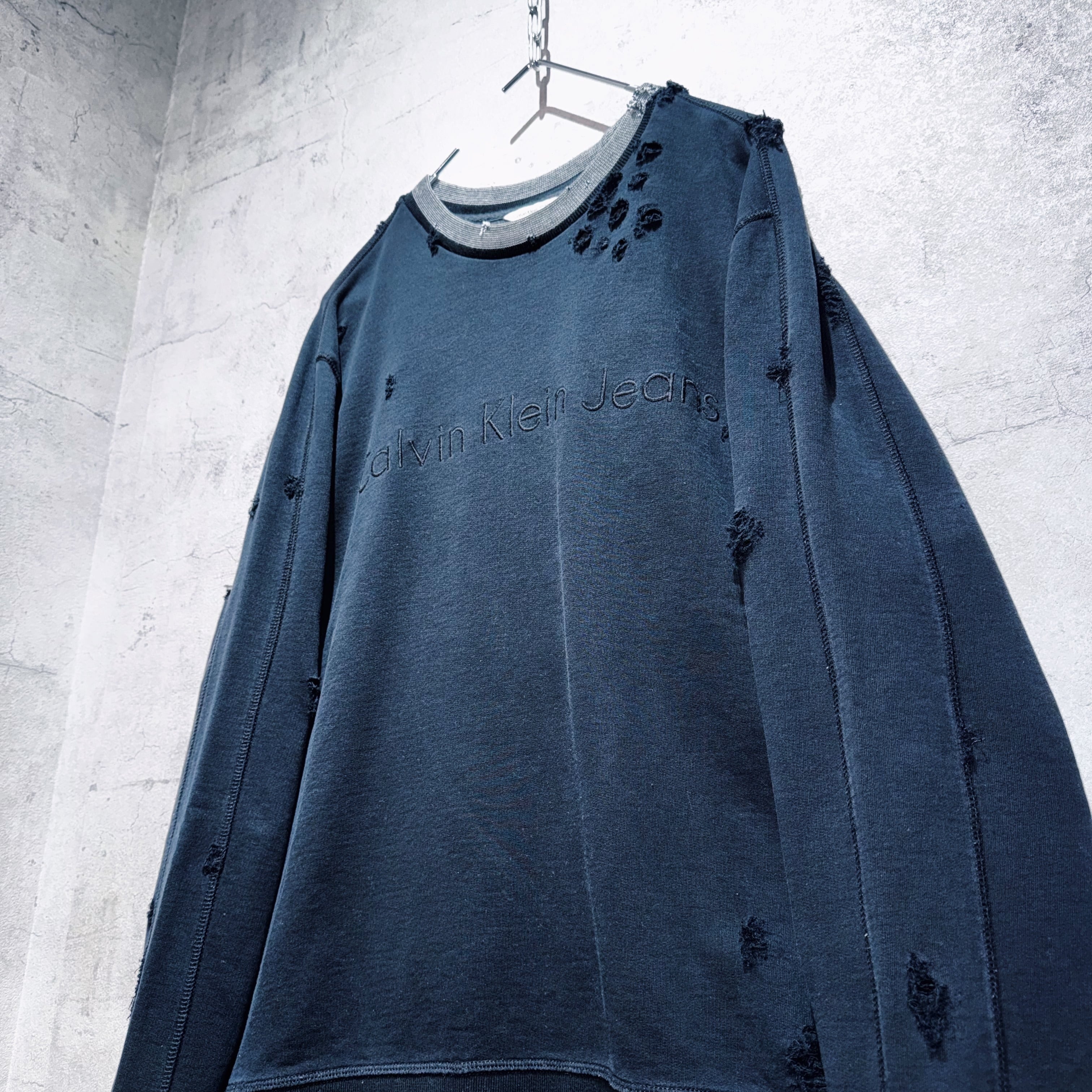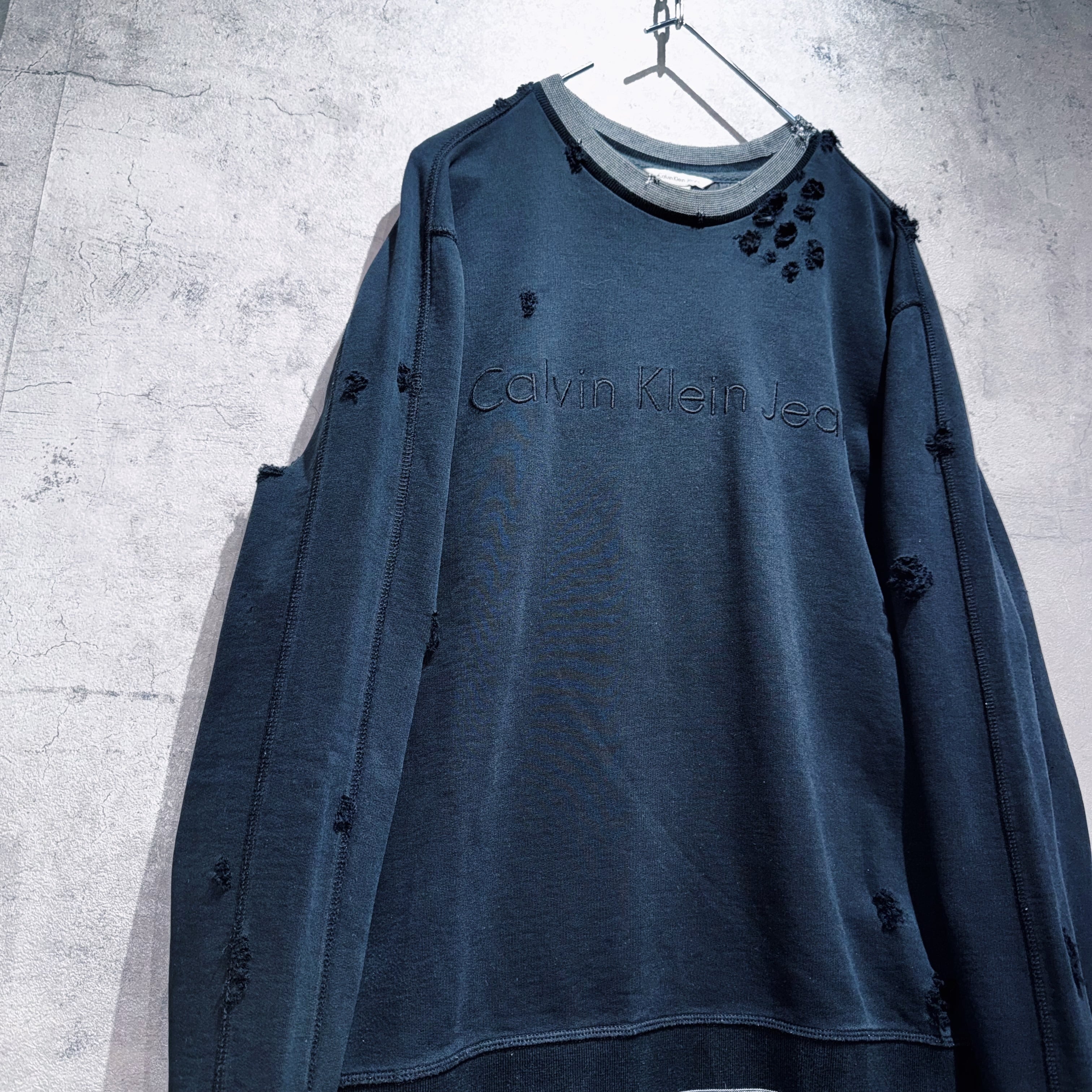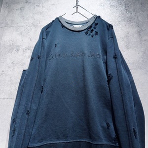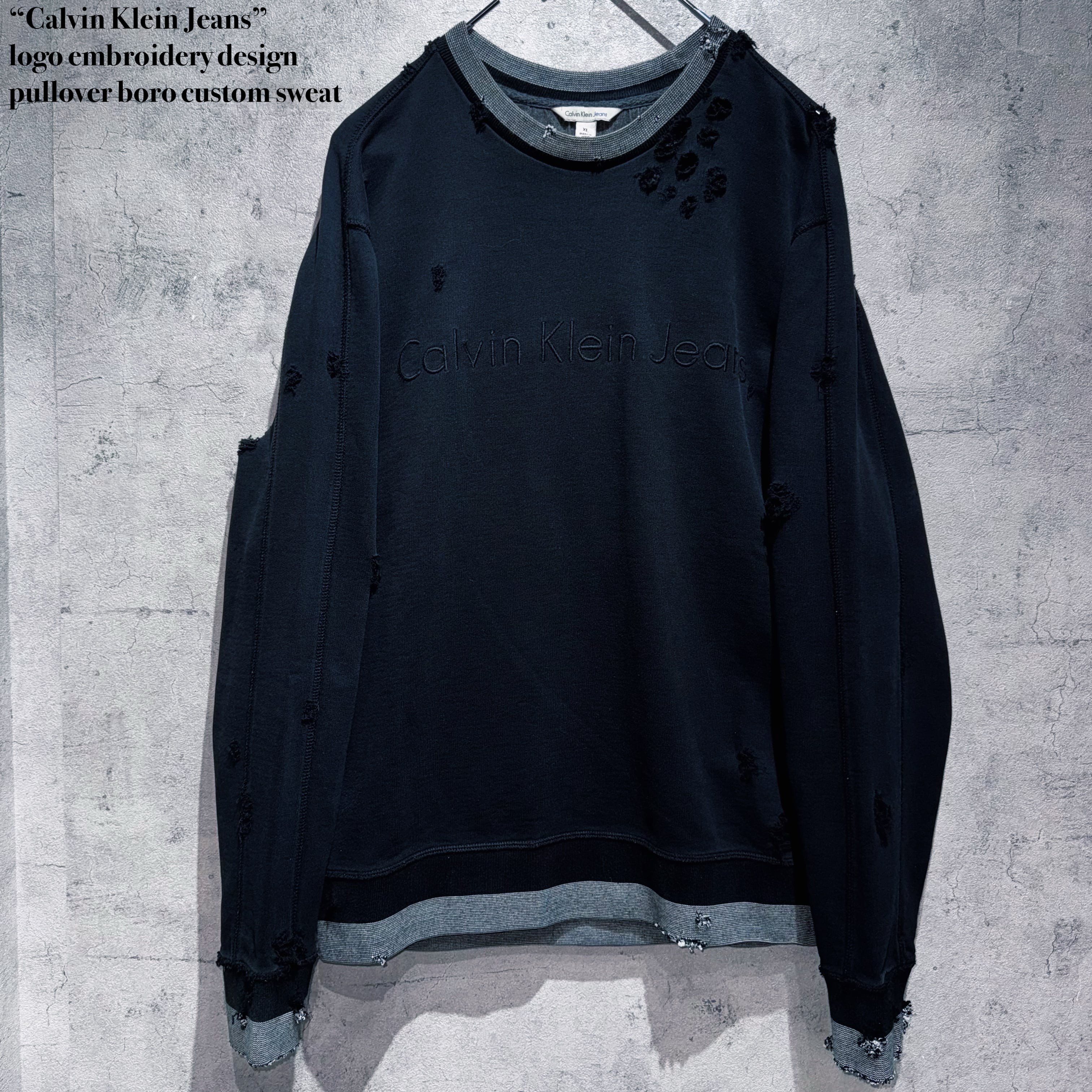 ”カルバンクラインジーンズ”ロゴエンブロイダリーデザインプルオーバーボロカスタムスウェット