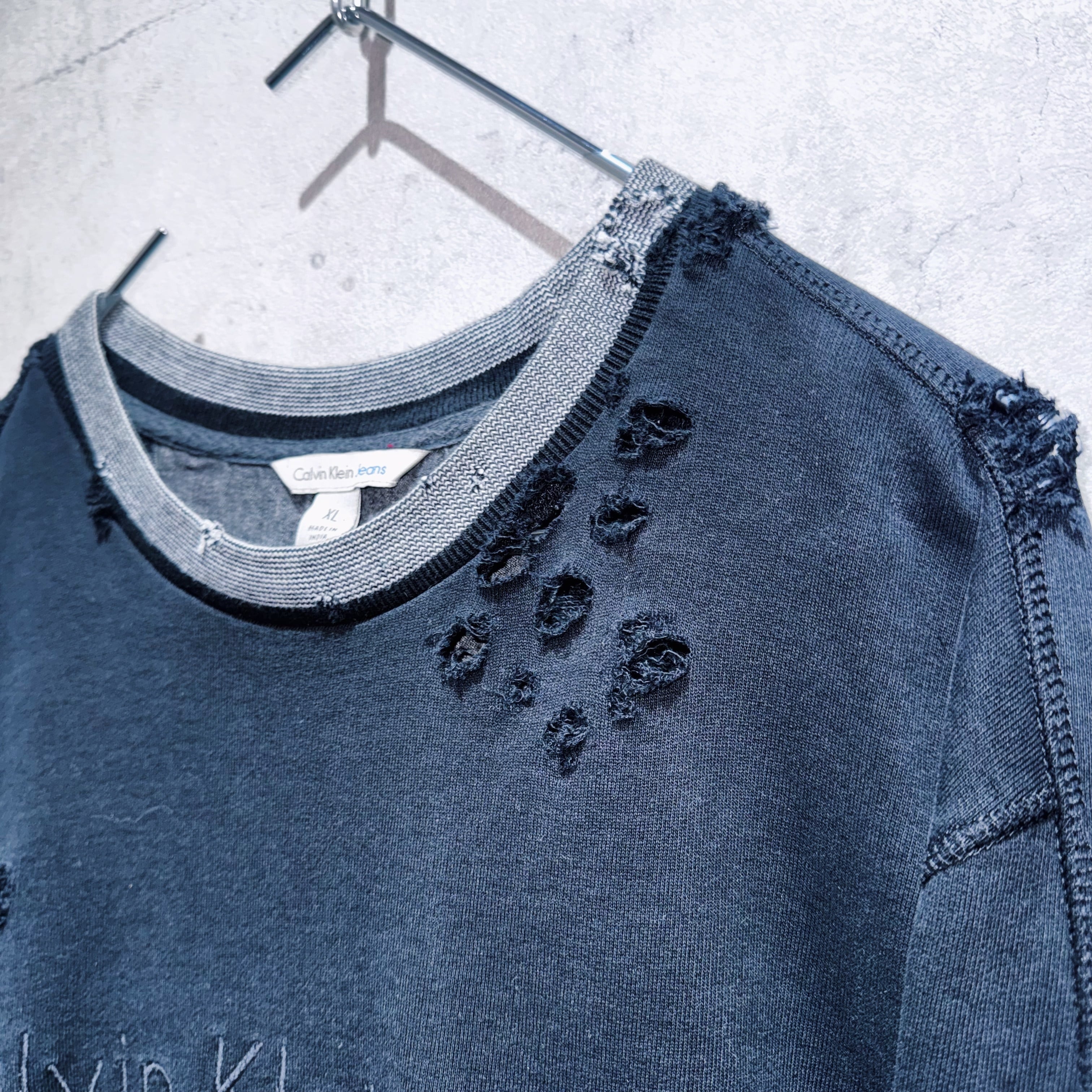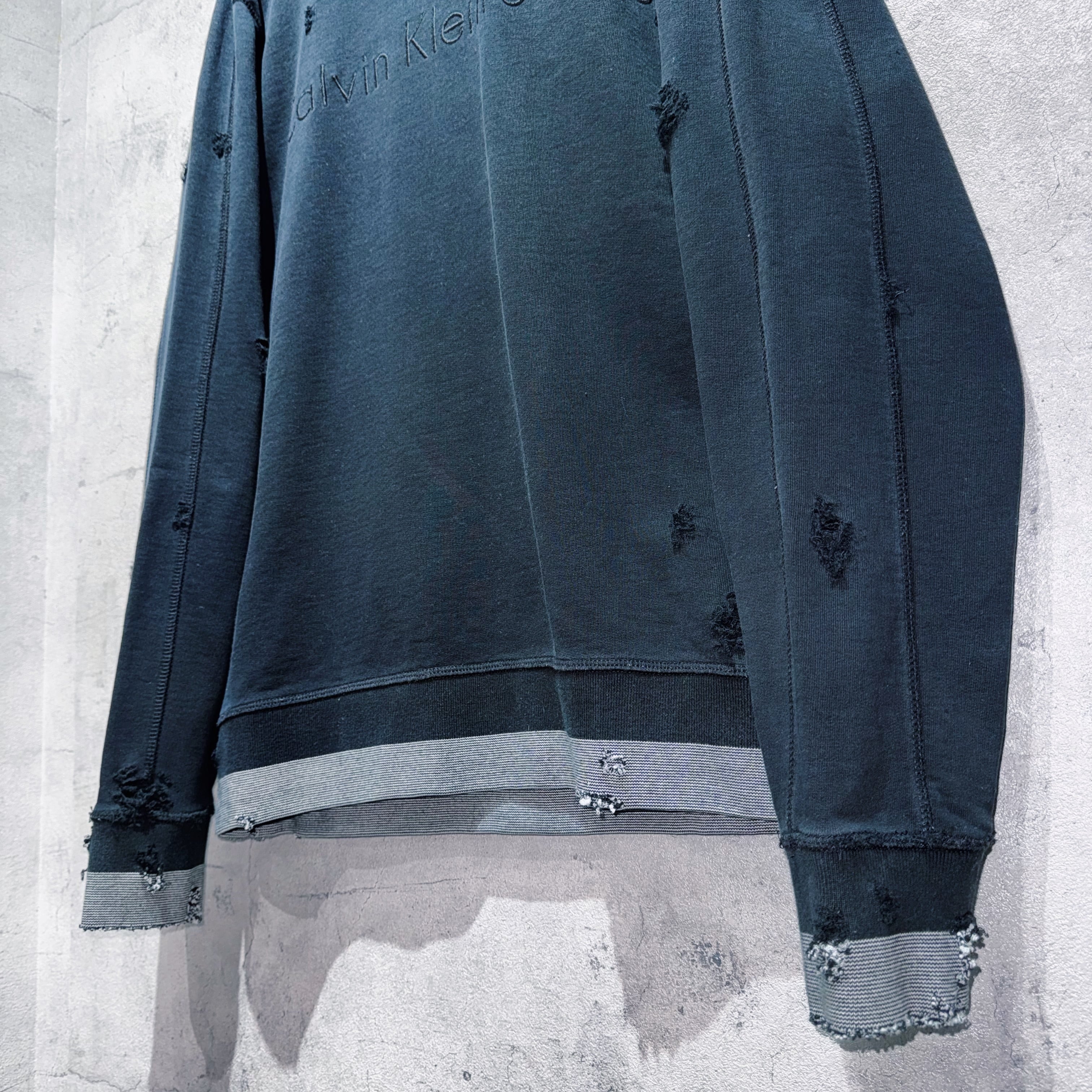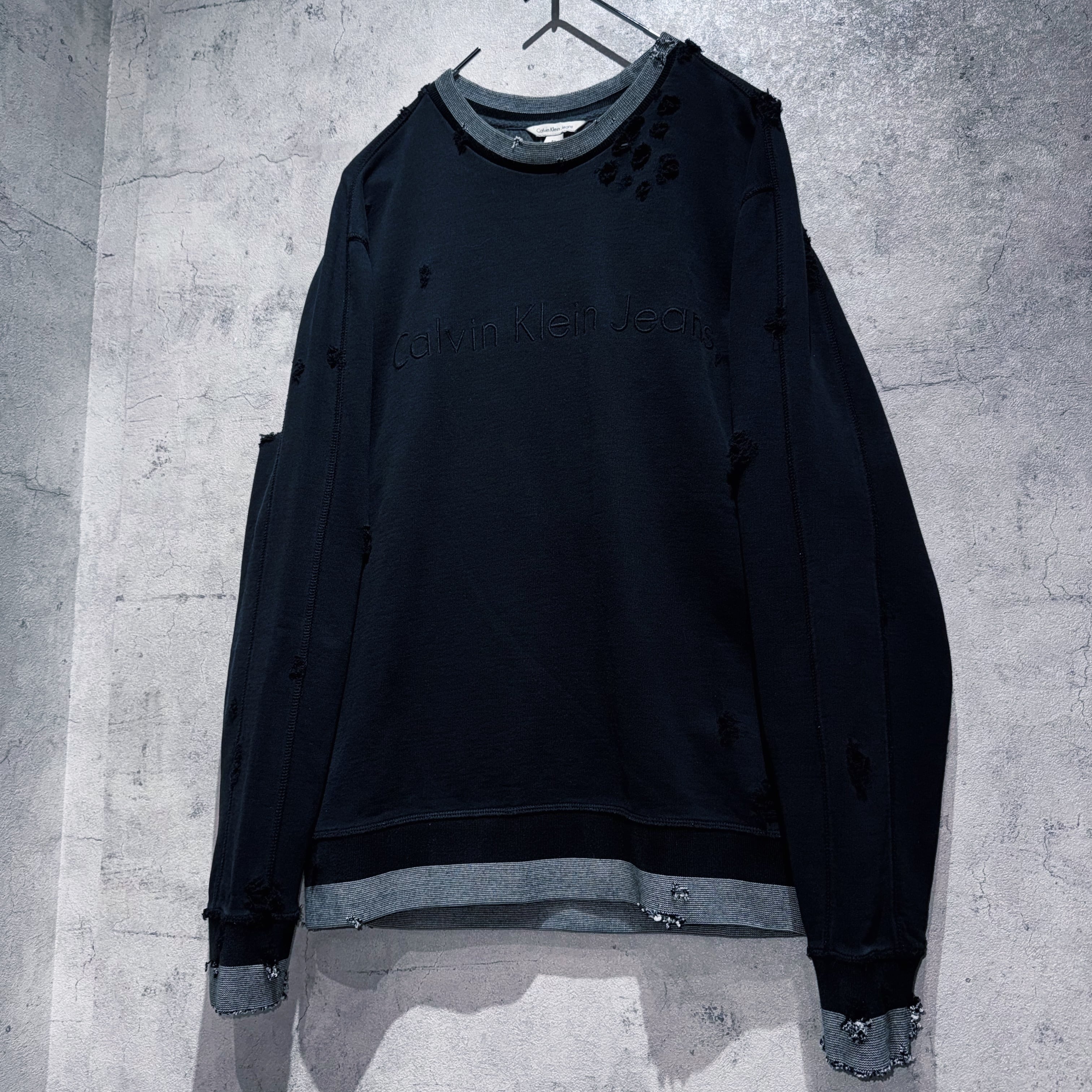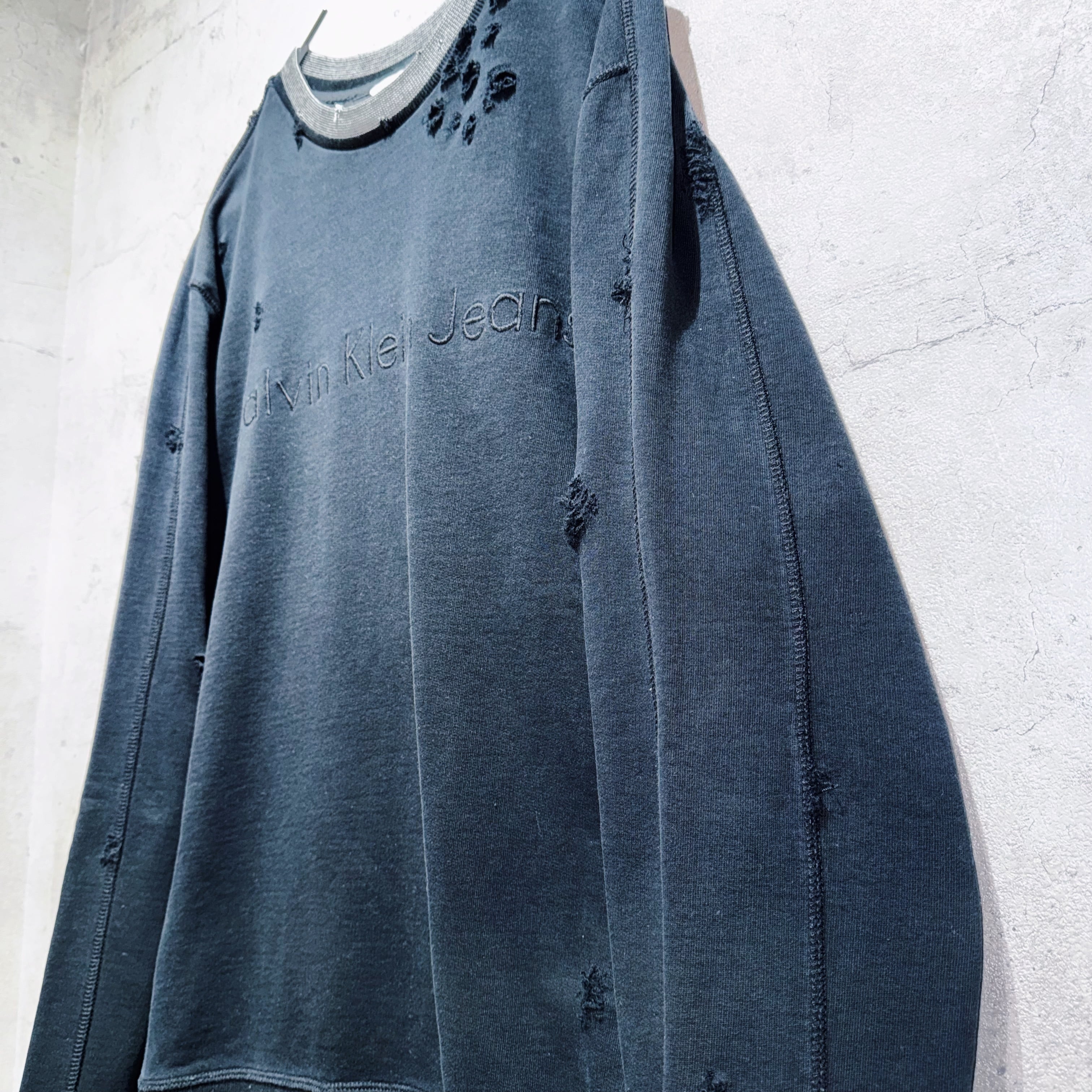 ”カルバンクラインジーンズ”ロゴエンブロイダリーデザインプルオーバーボロカスタムスウェット