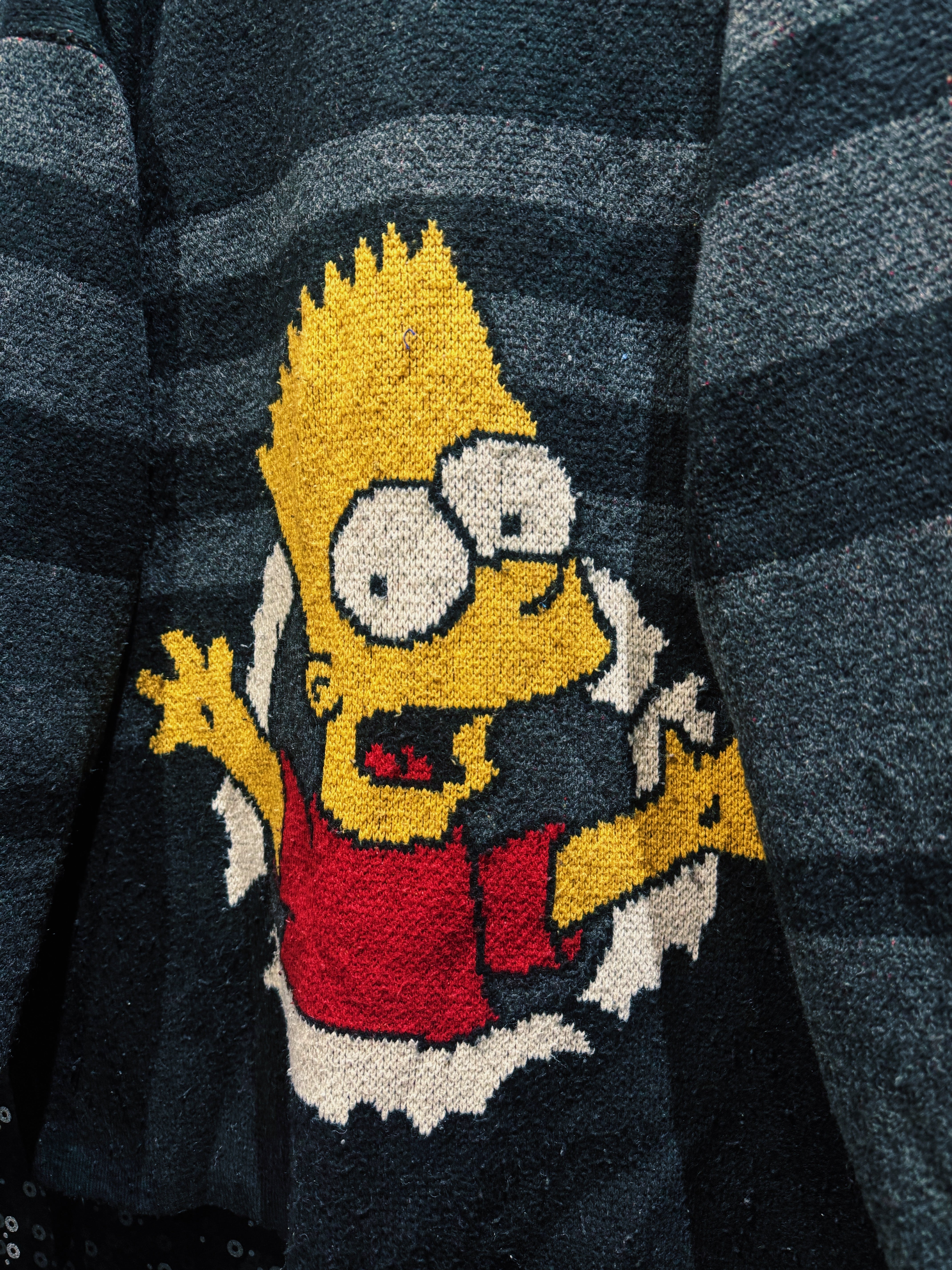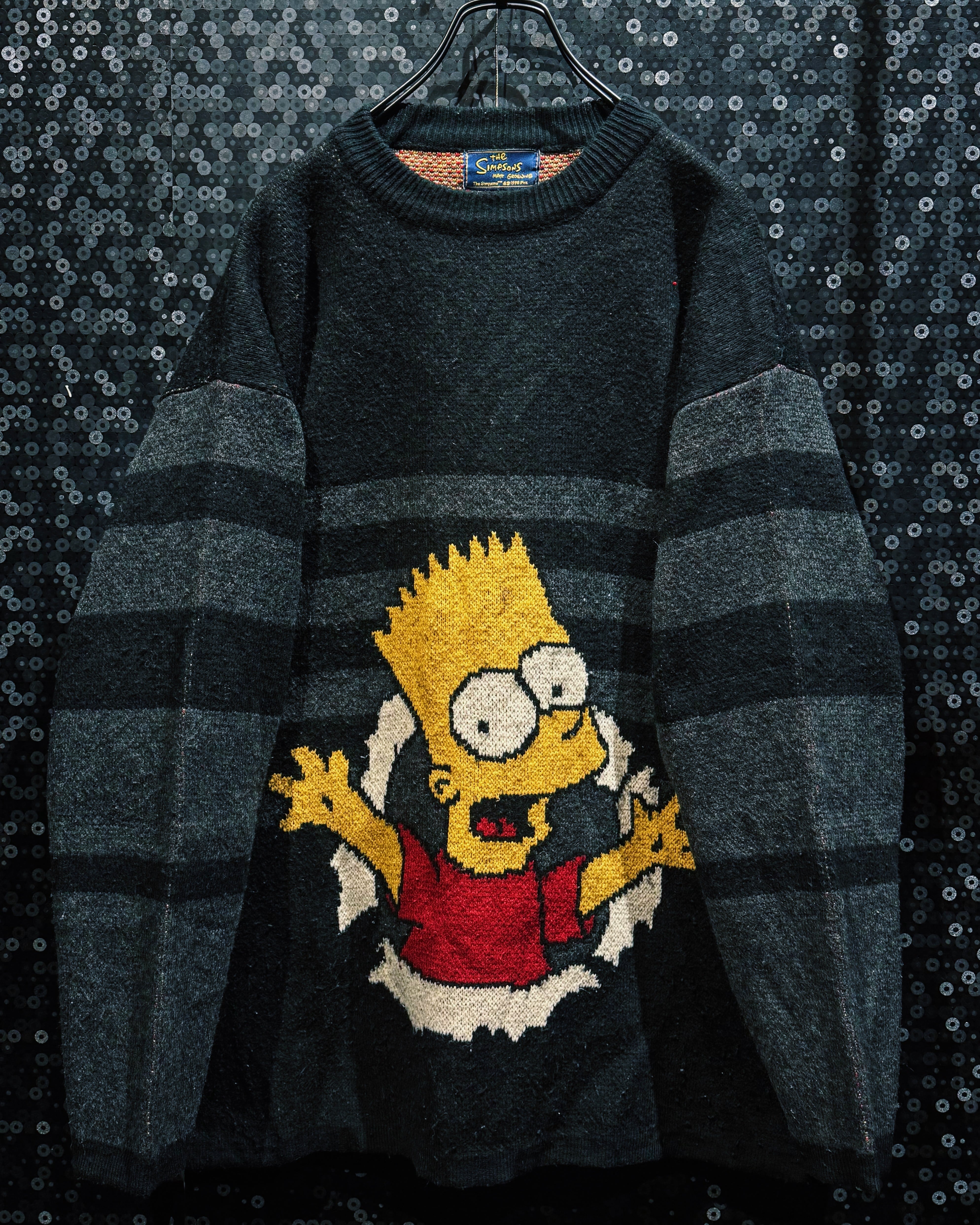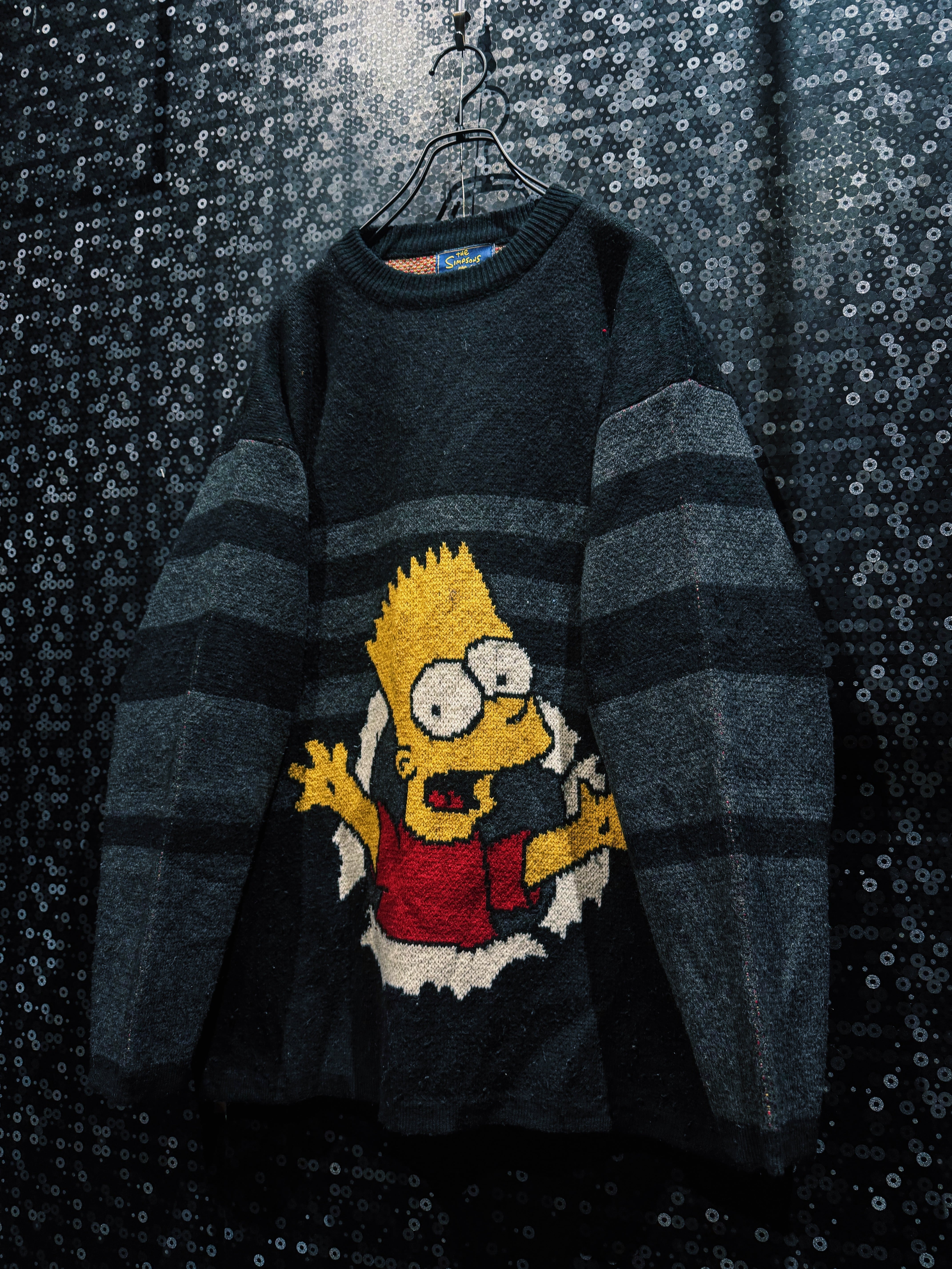 “キャラ物”を超えて“グラフィックピース”として成立してる一着。ストリートにそのままぶち込める、完成度高めの90sシンプソンズニット。