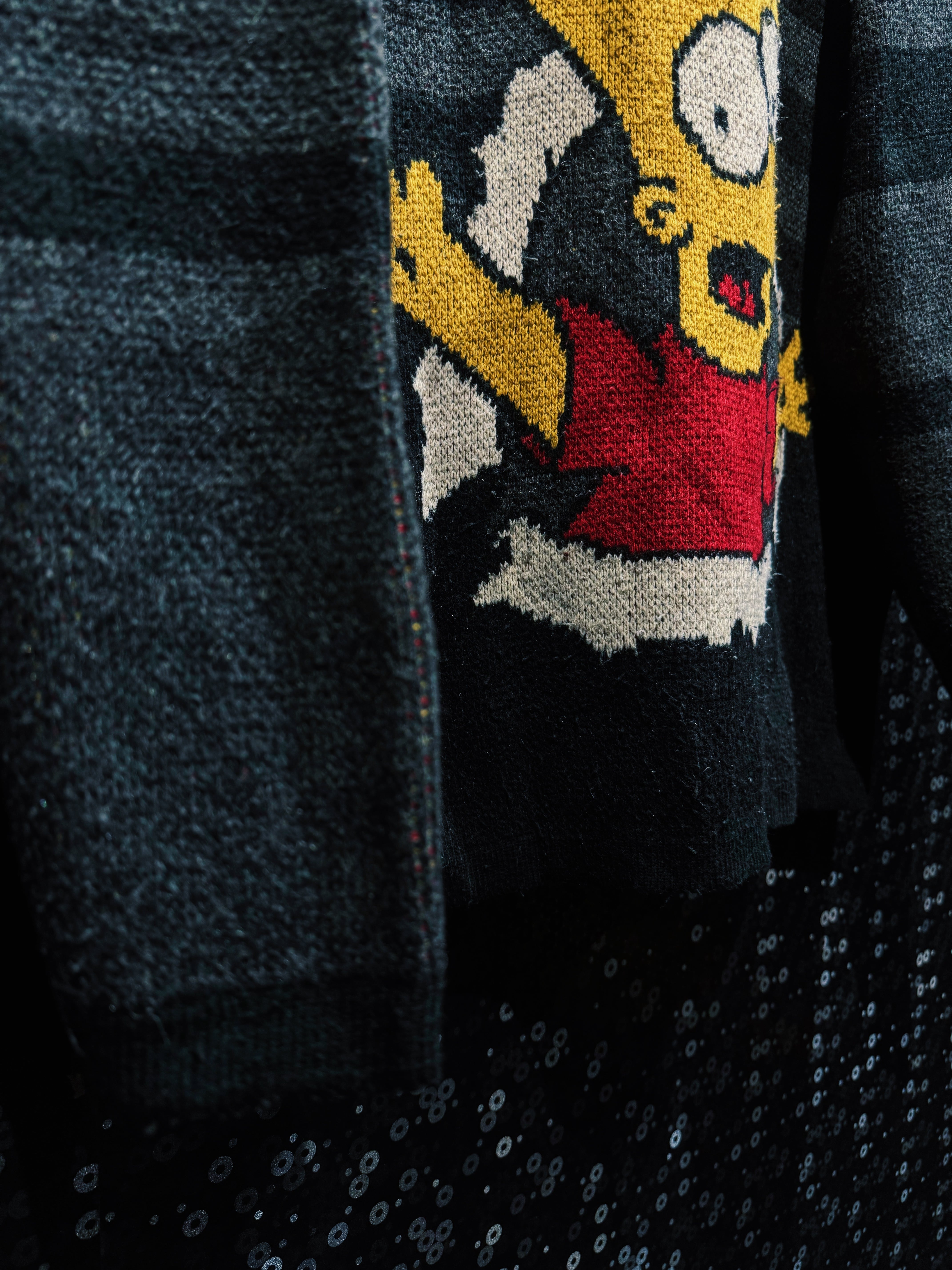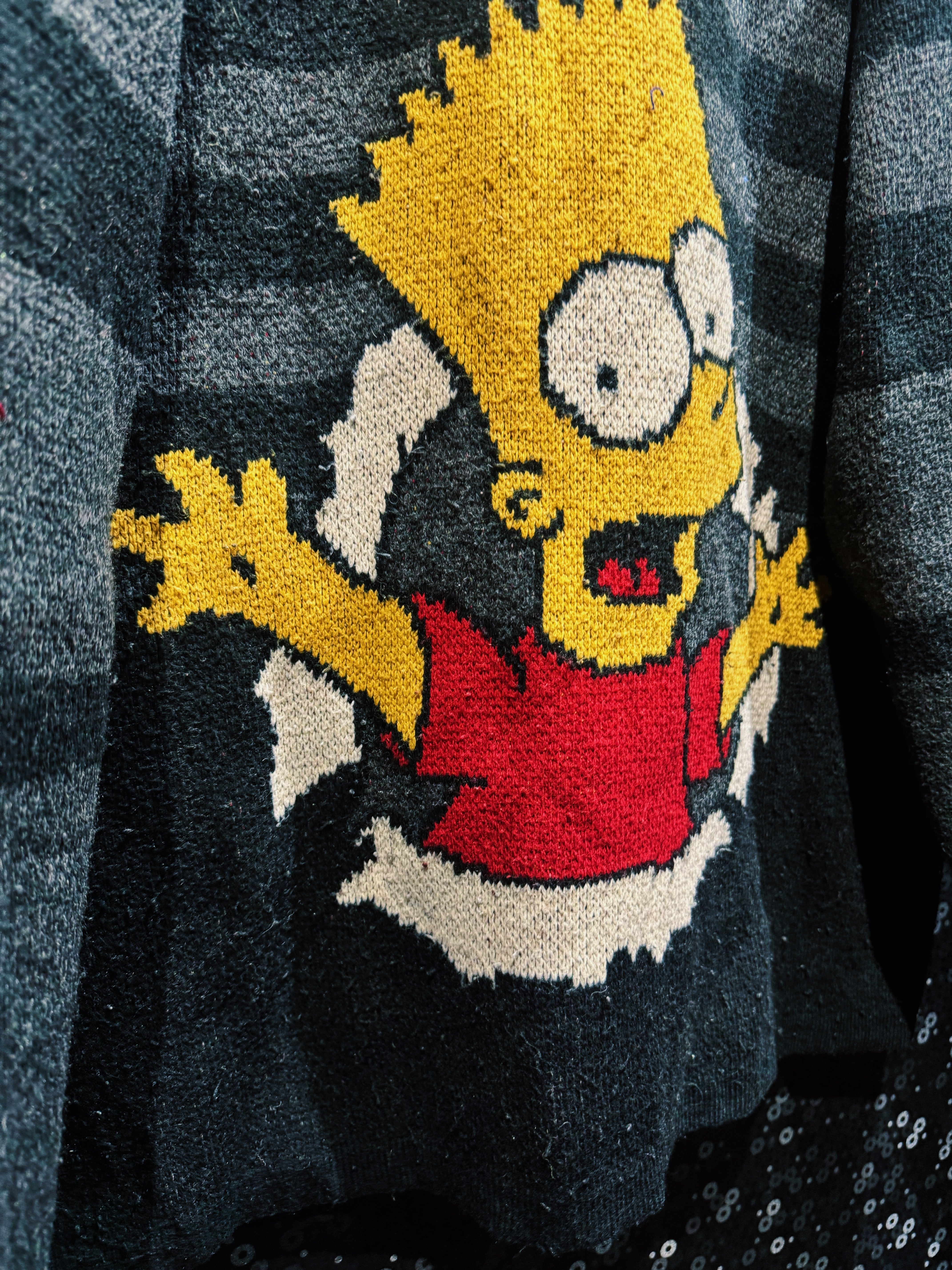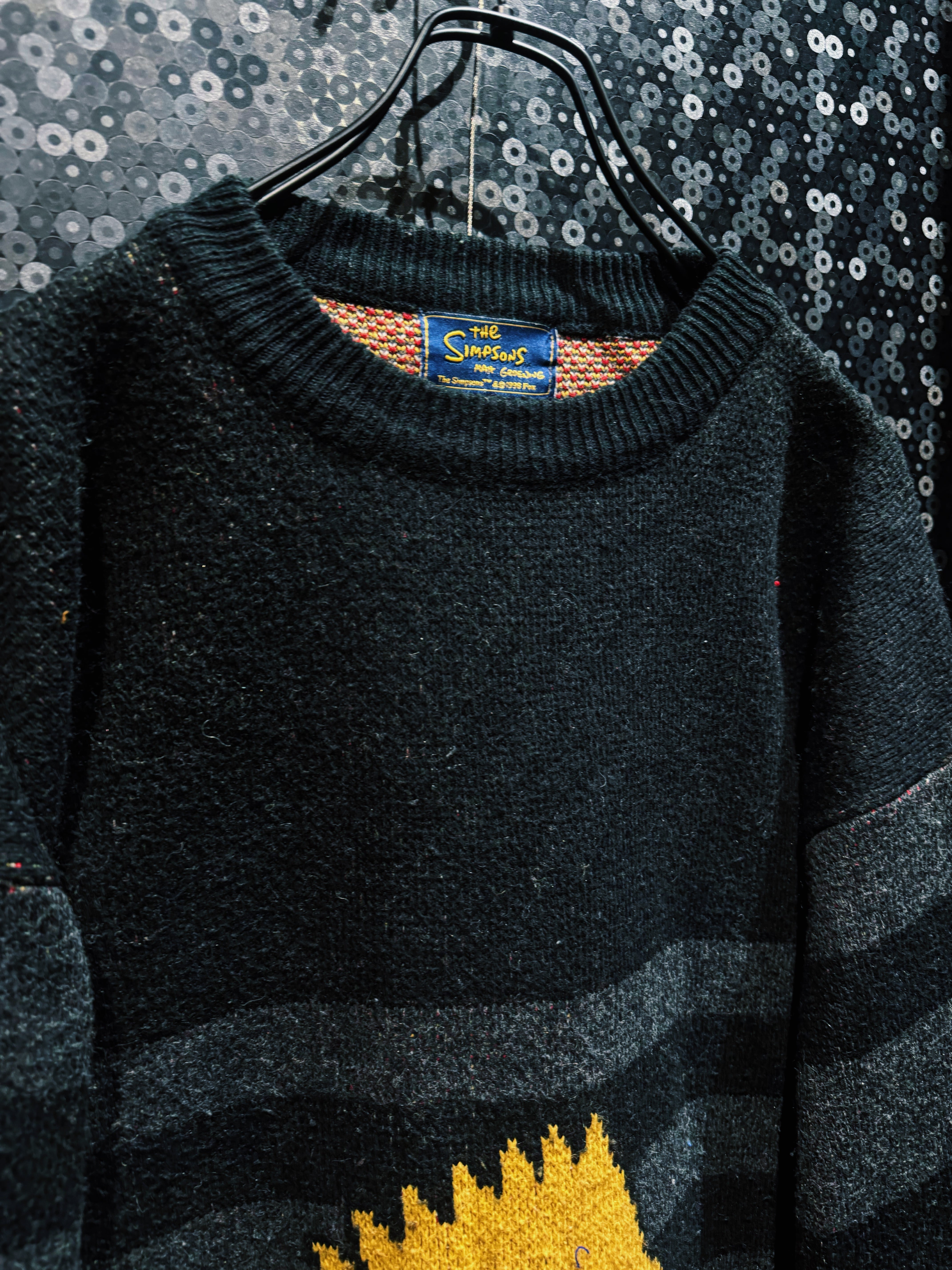 “キャラ物”を超えて“グラフィックピース”として成立してる一着。ストリートにそのままぶち込める、完成度高めの90sシンプソンズニット。