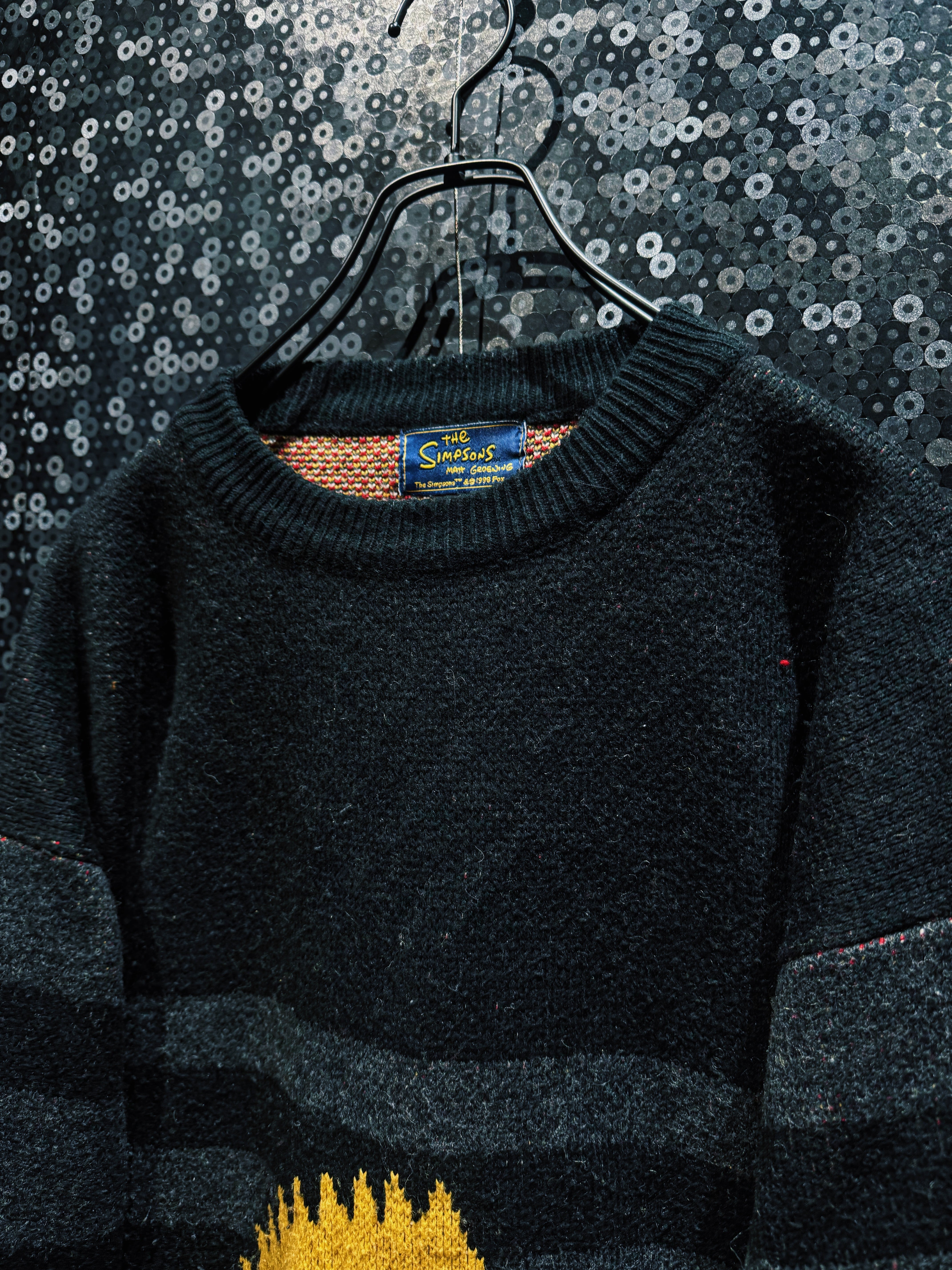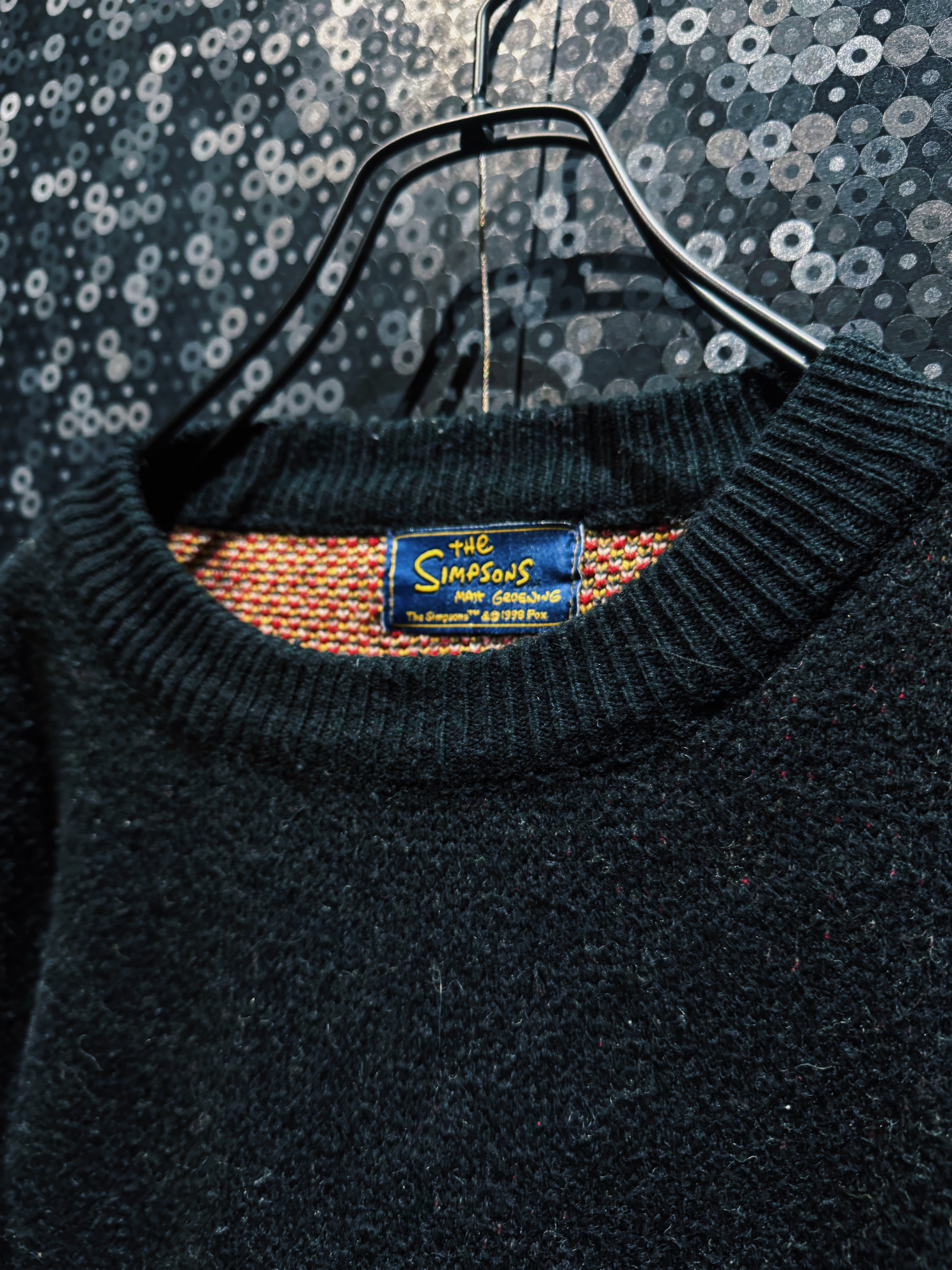 タグは“The Simpsons / Matt Groening / ©1998 FOX”表記のオフィシャルライセンス。年代的にも90s後半ど真ん中で、当時のキャラクターニットカルチャーをしっかり体現している個体。