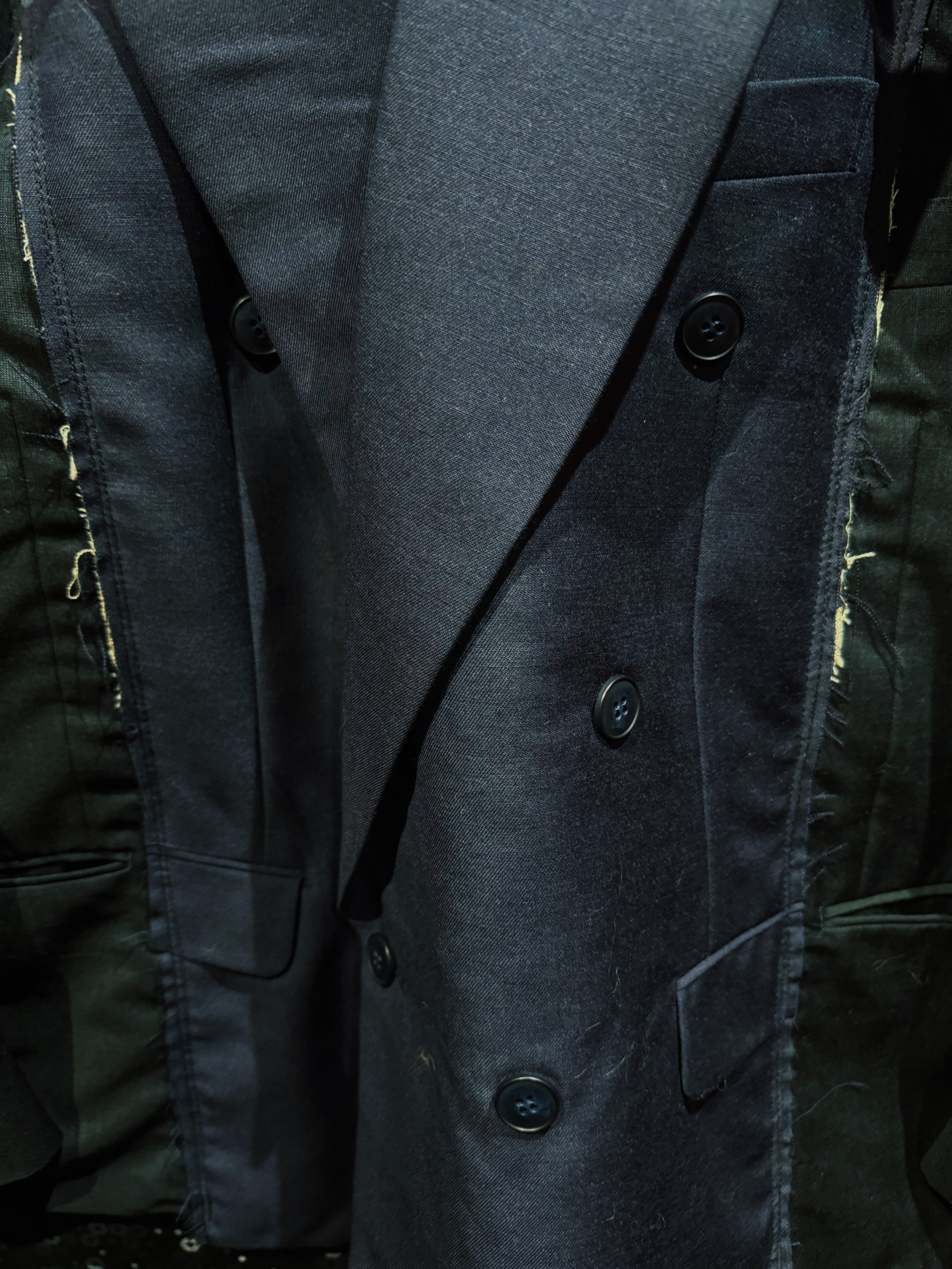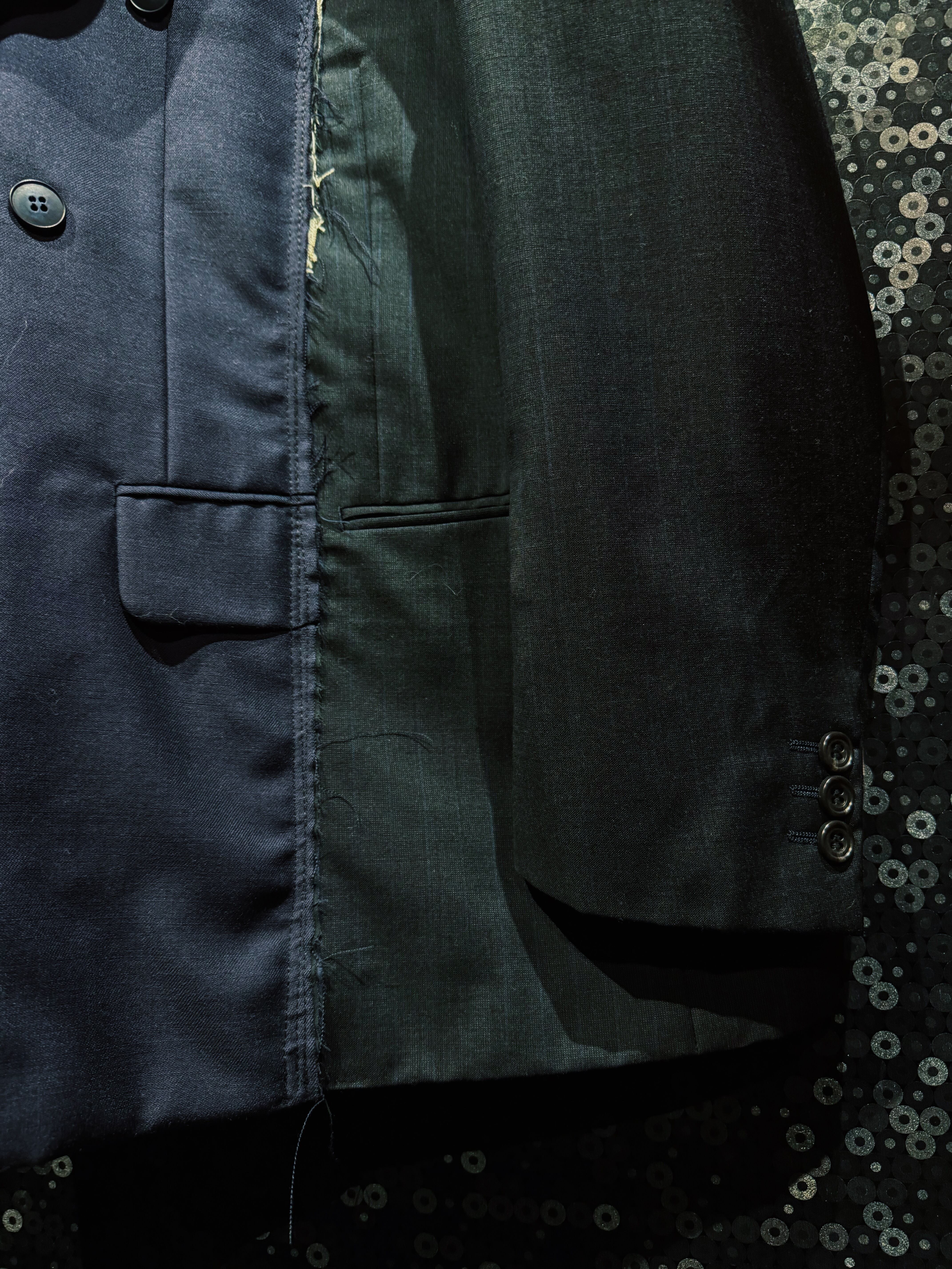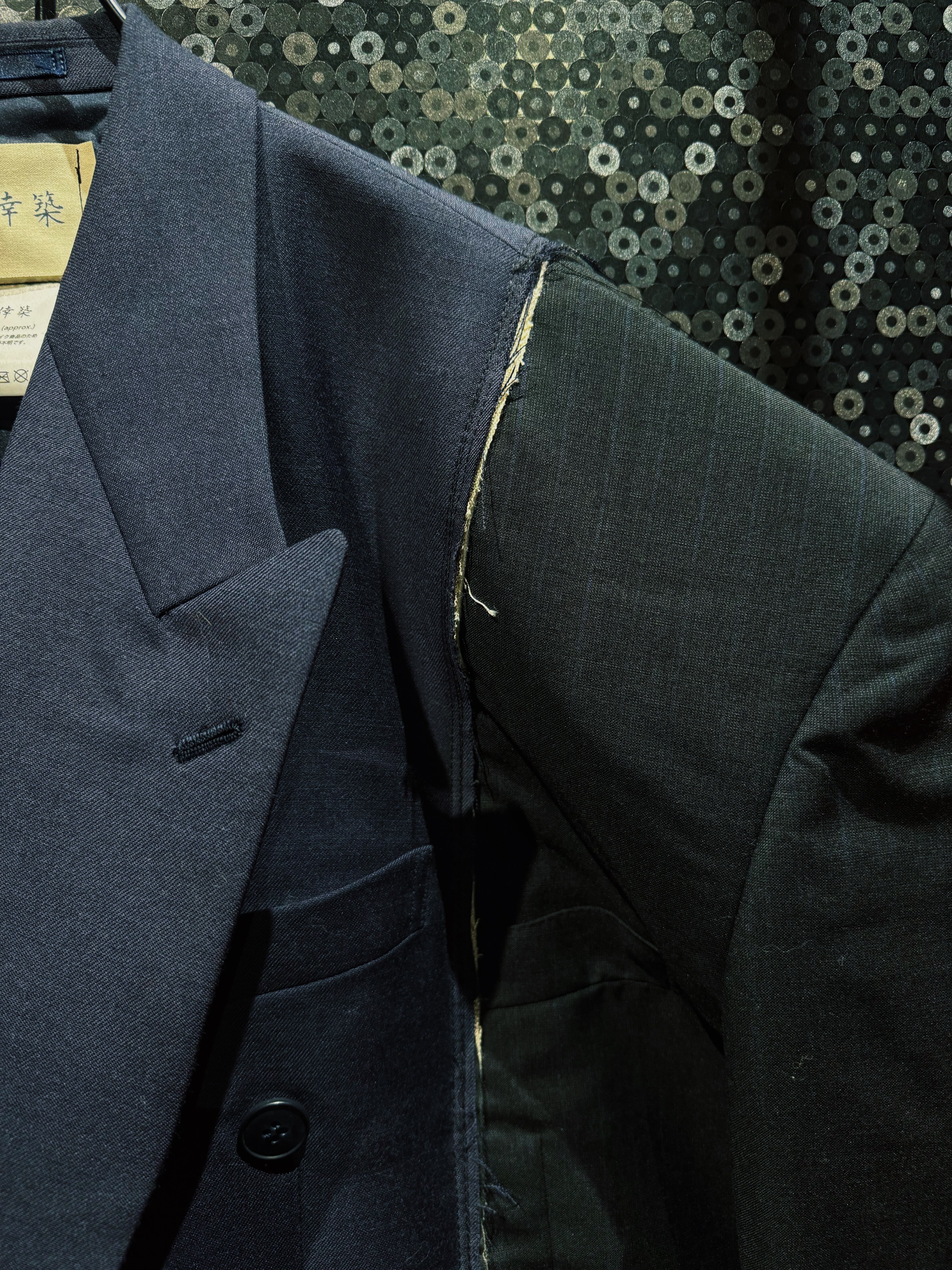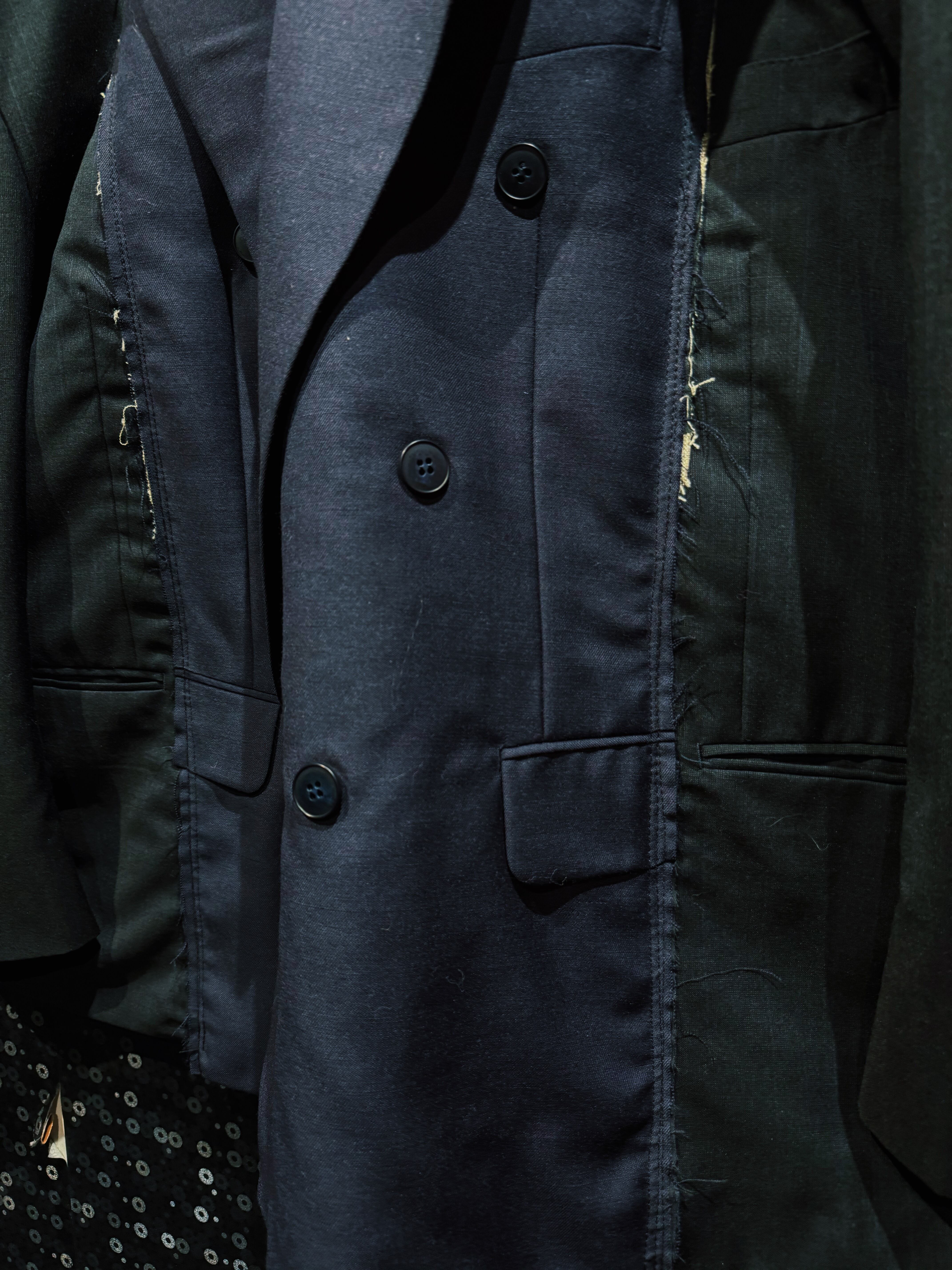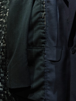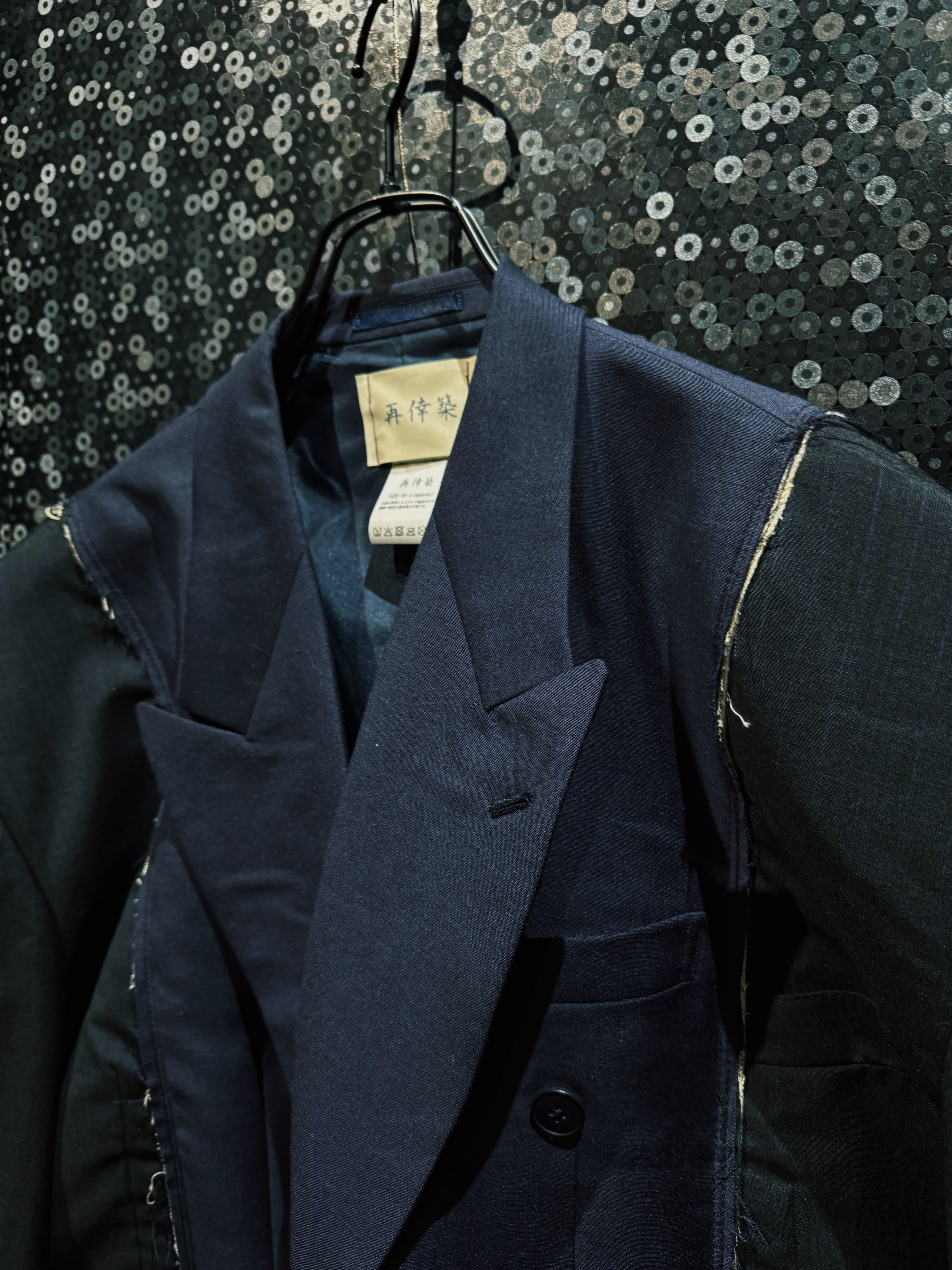 クラシックなテーラードをベースにしながら、完全に別物へと昇華された一着。着るだけで“違和感”を纏える、まさに一点物の存在。
