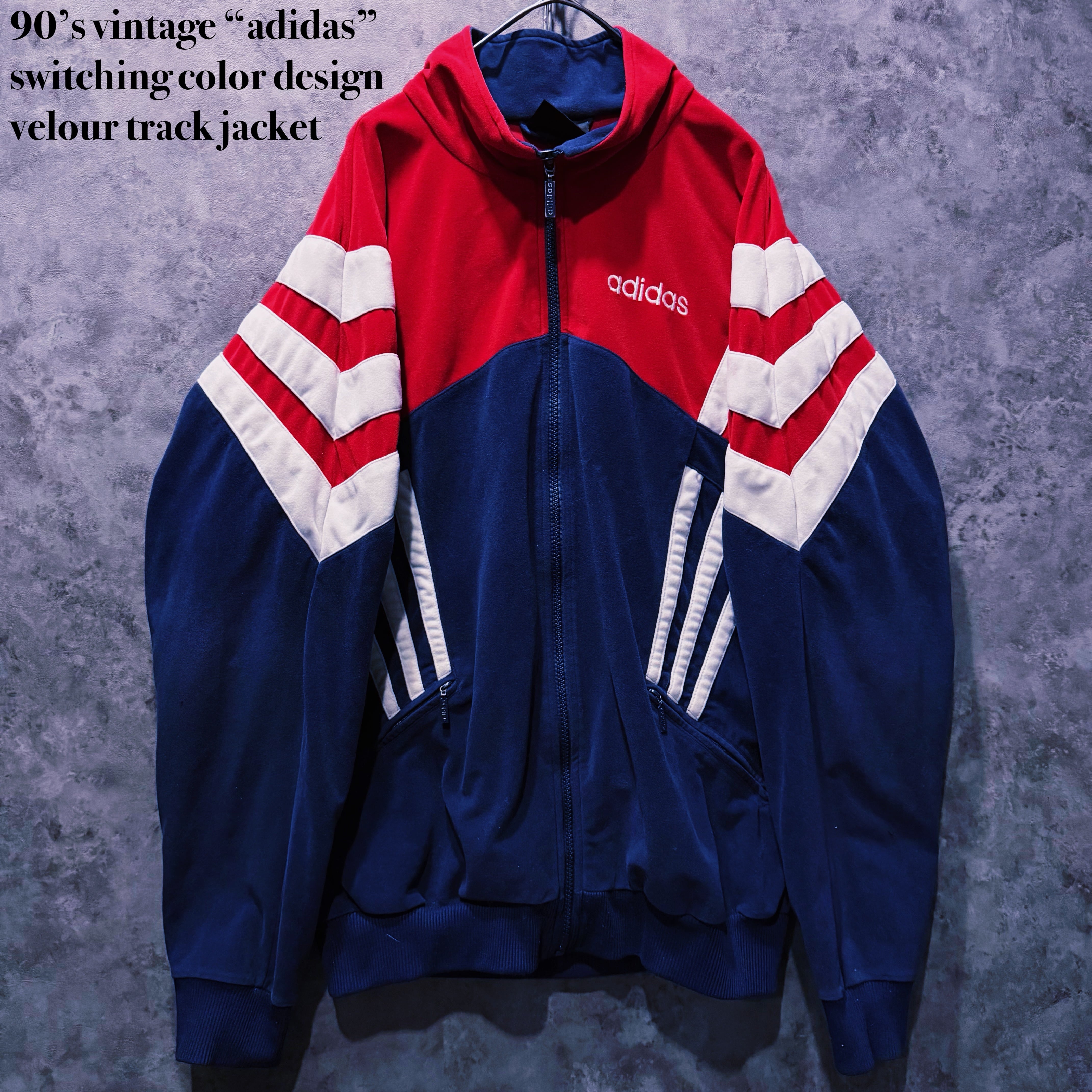 90’s ヴィンテージ“adidas”スイッチングカラーデザインベロアトラックジャケット