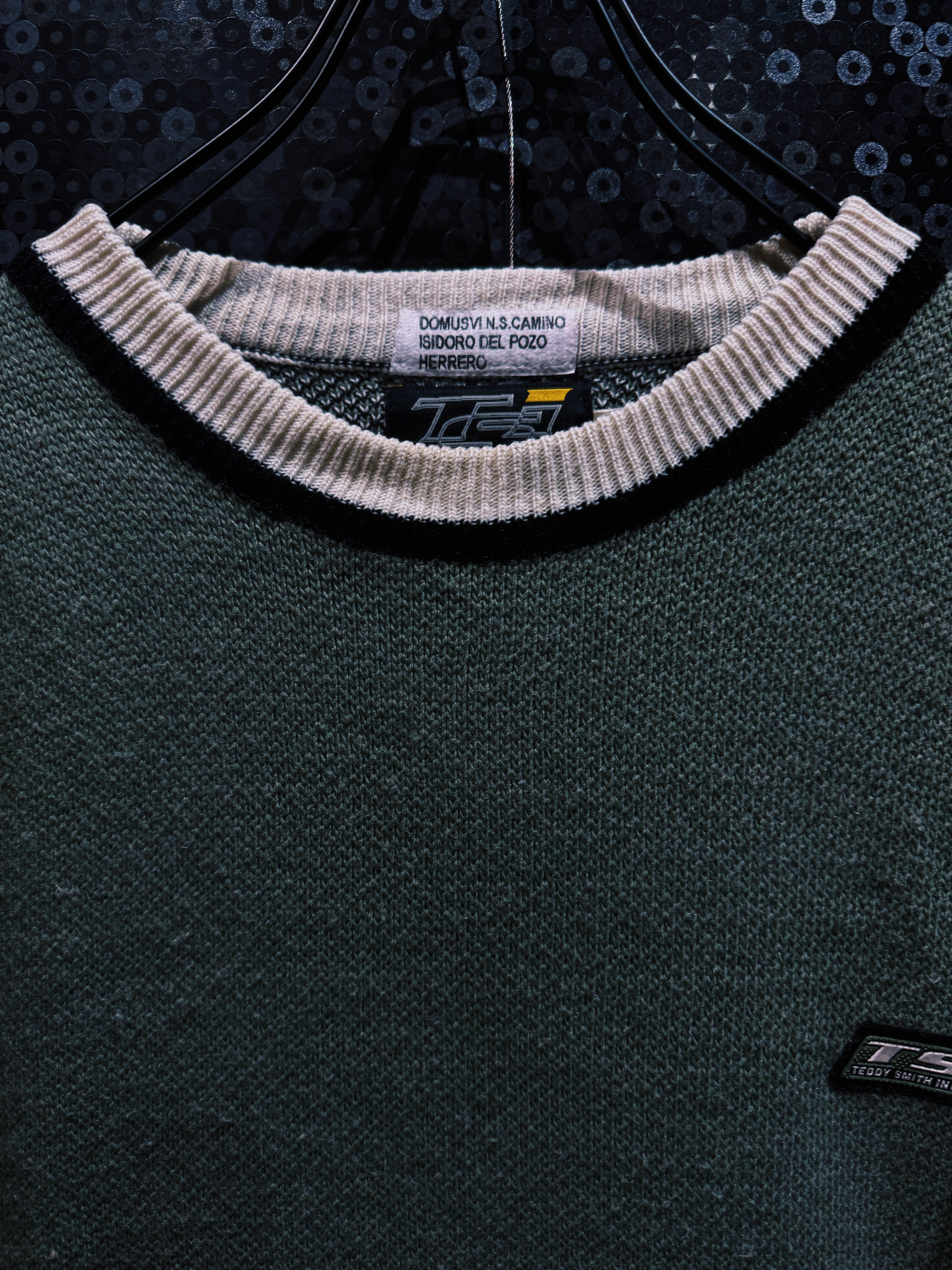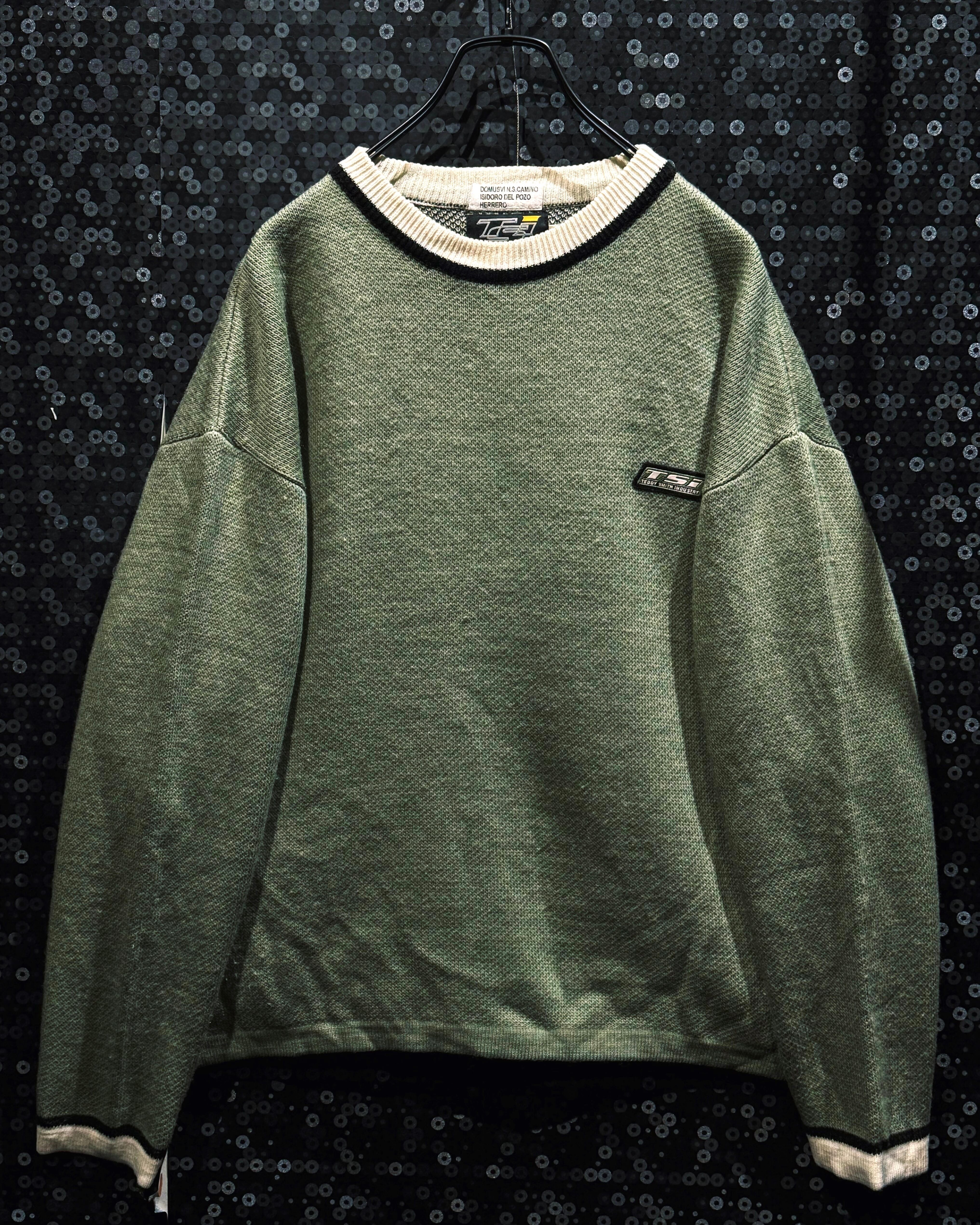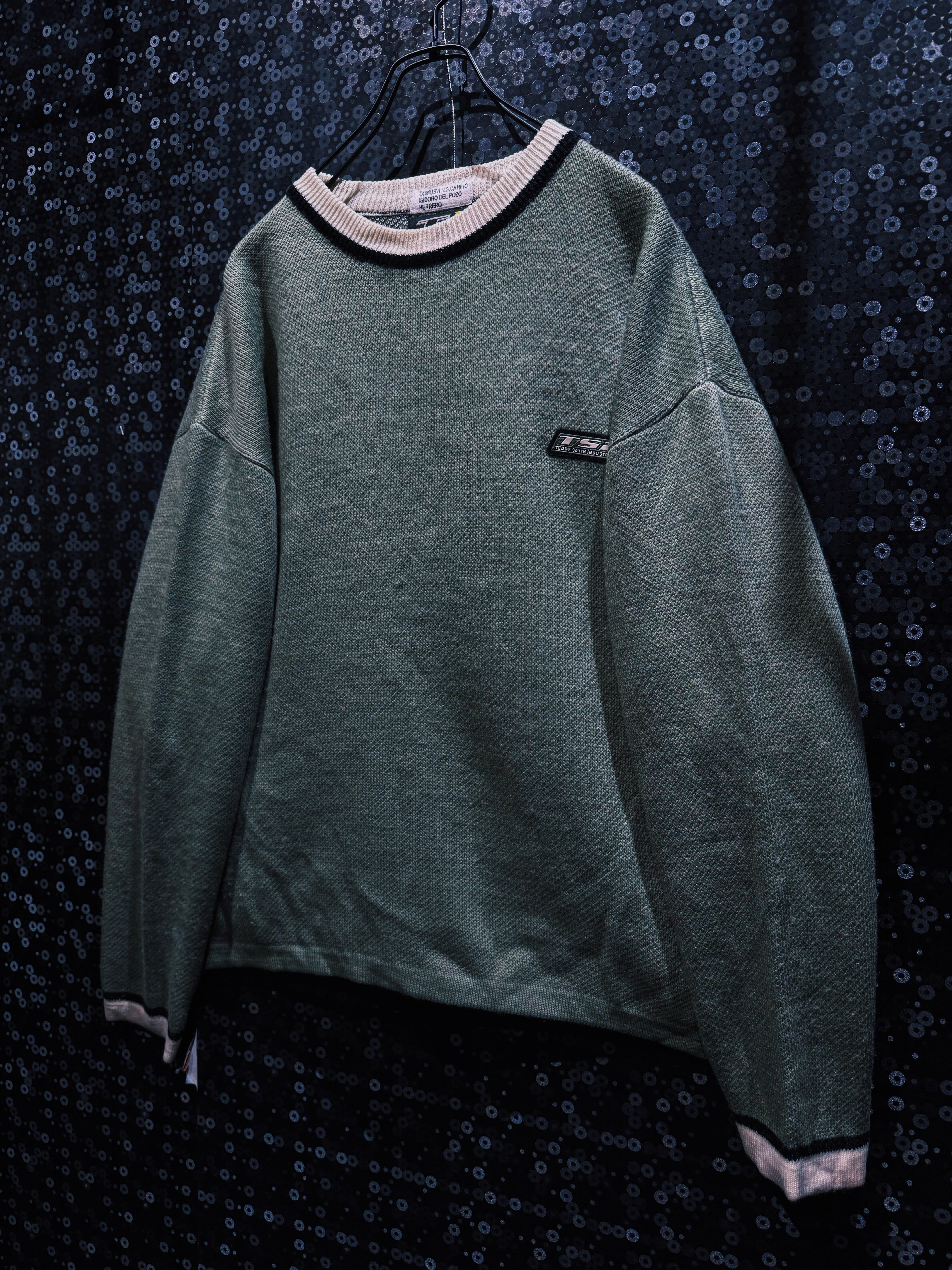 タグには“Teddy Smith Industry”表記、ヨーロッパ系ブランドらしいクリーンな空気感が特徴。全体的にクセが少なく、どんなスタイルにも溶け込む汎用性の高さがありながら、ディテールで差をつけてくる一枚。シンプルで終わらない、大人なストリートニット。