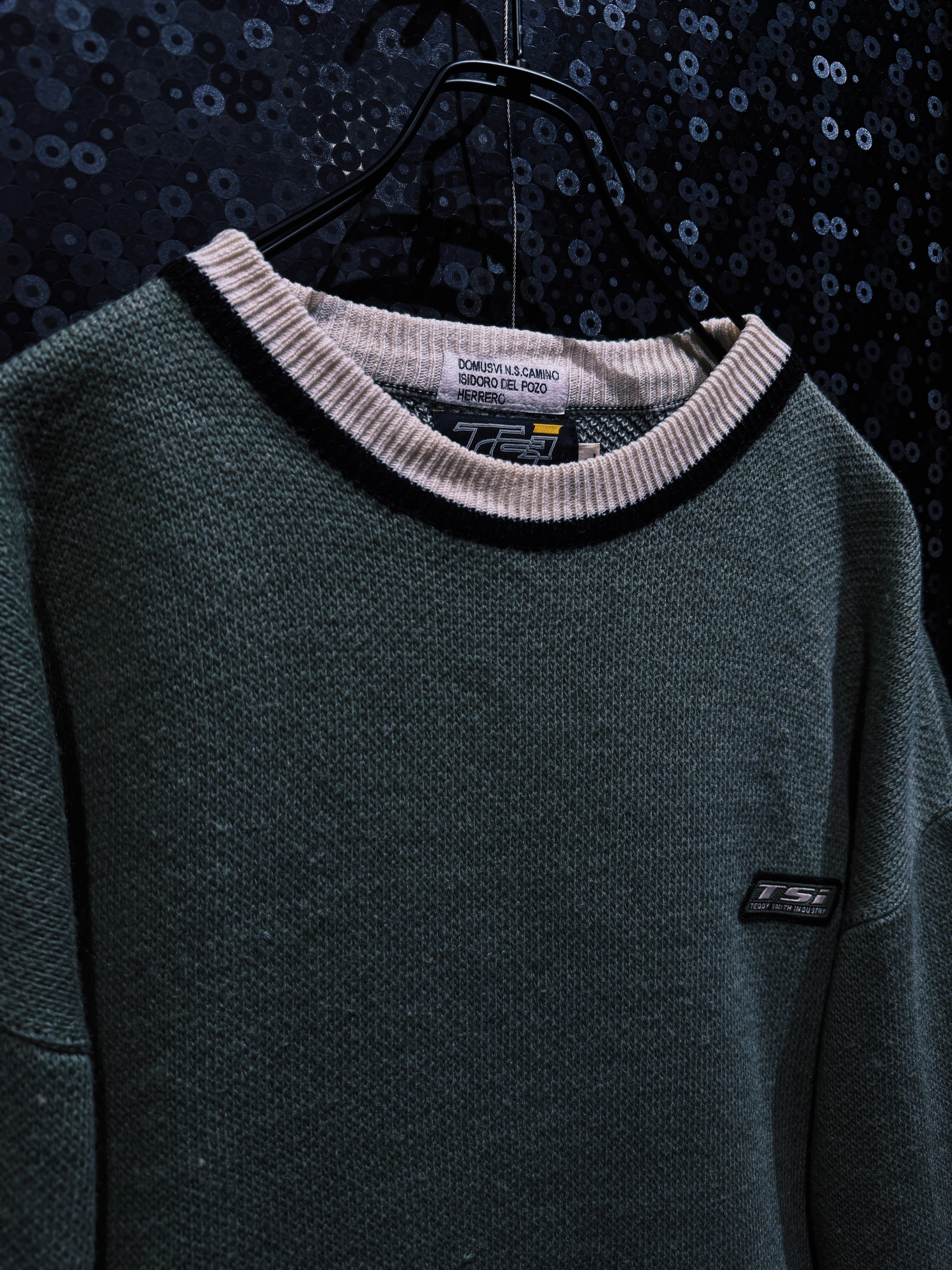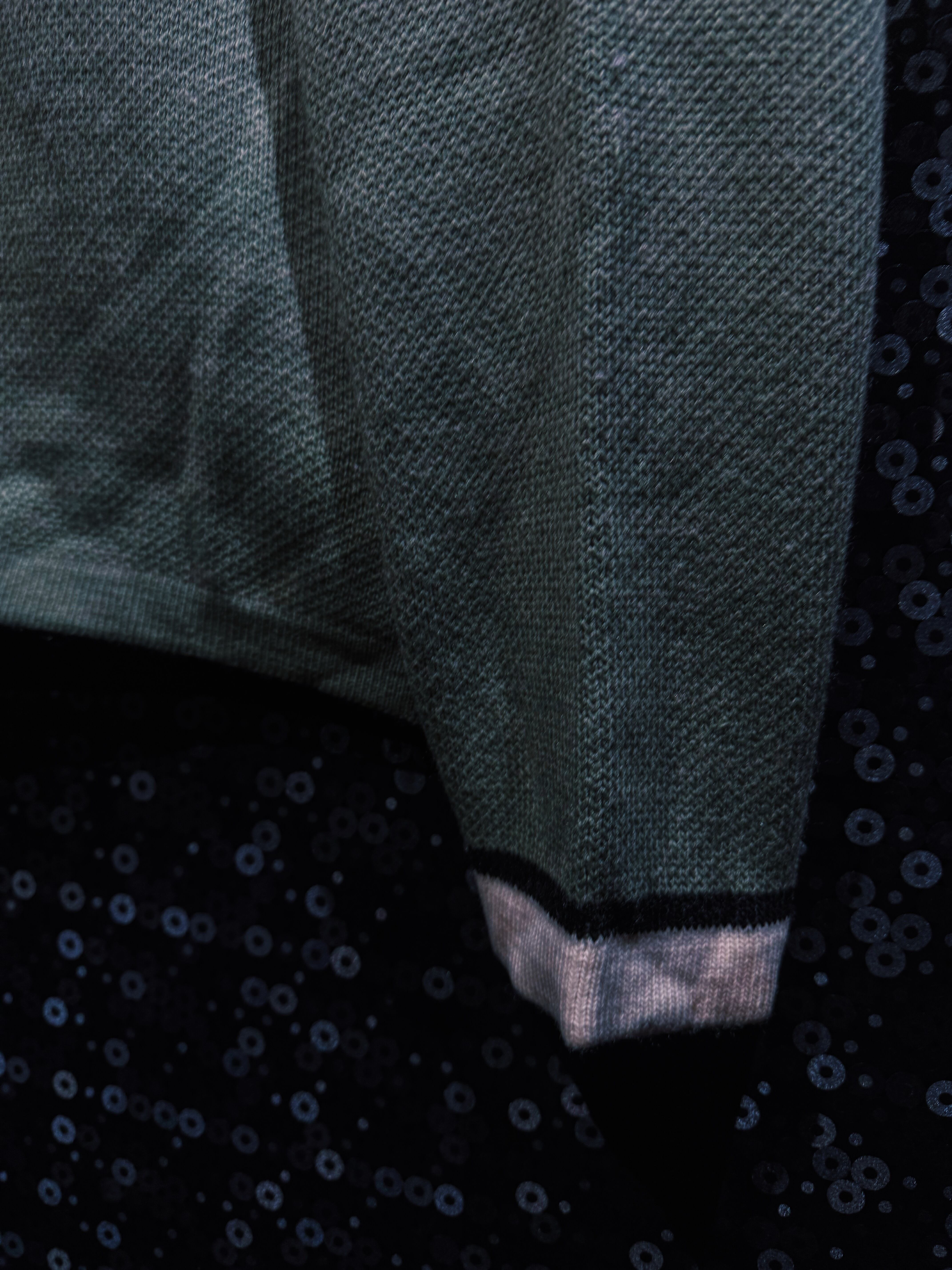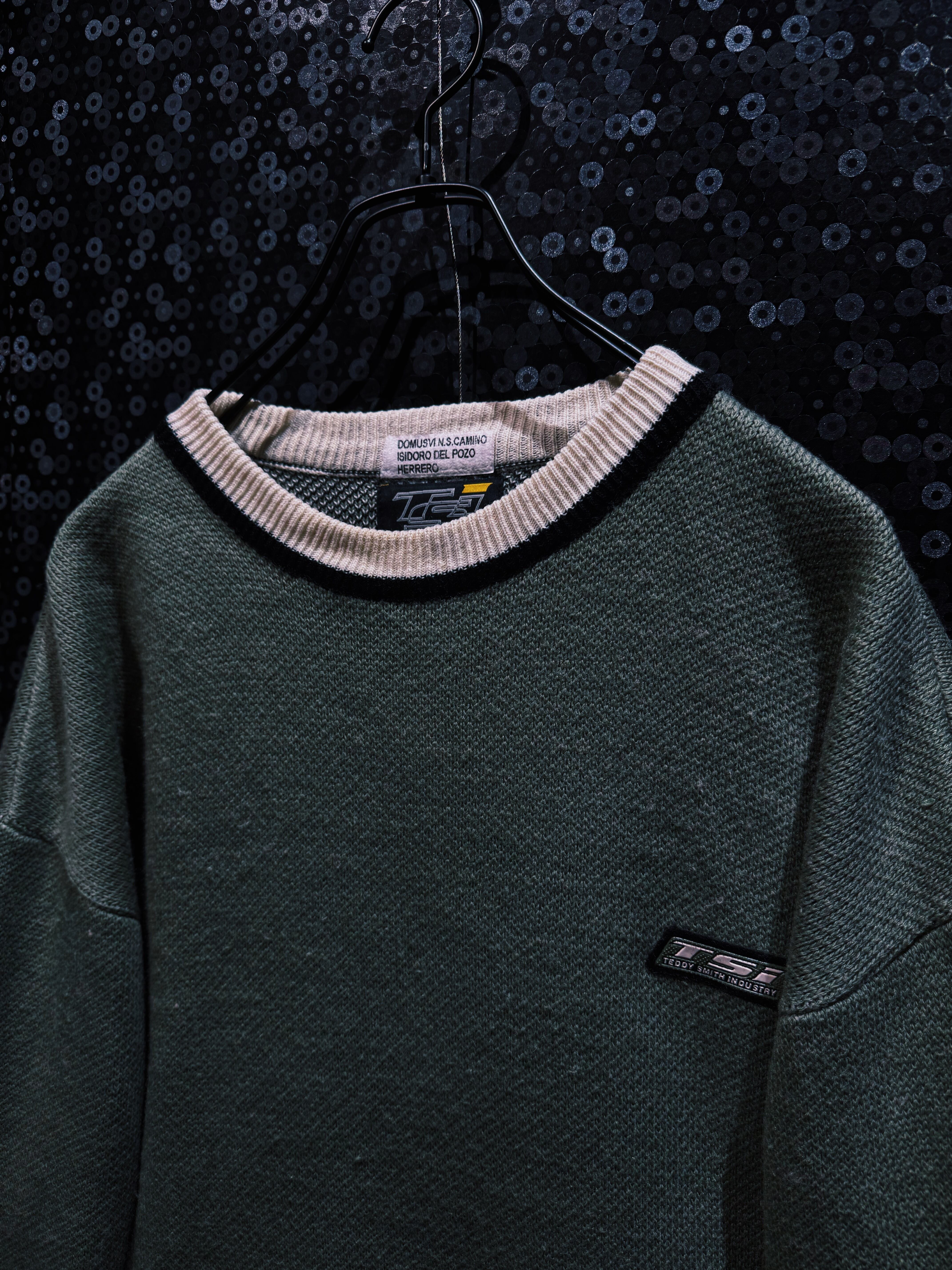 タグには“Teddy Smith Industry”表記、ヨーロッパ系ブランドらしいクリーンな空気感が特徴。全体的にクセが少なく、どんなスタイルにも溶け込む汎用性の高さがありながら、ディテールで差をつけてくる一枚。シンプルで終わらない、大人なストリートニット。