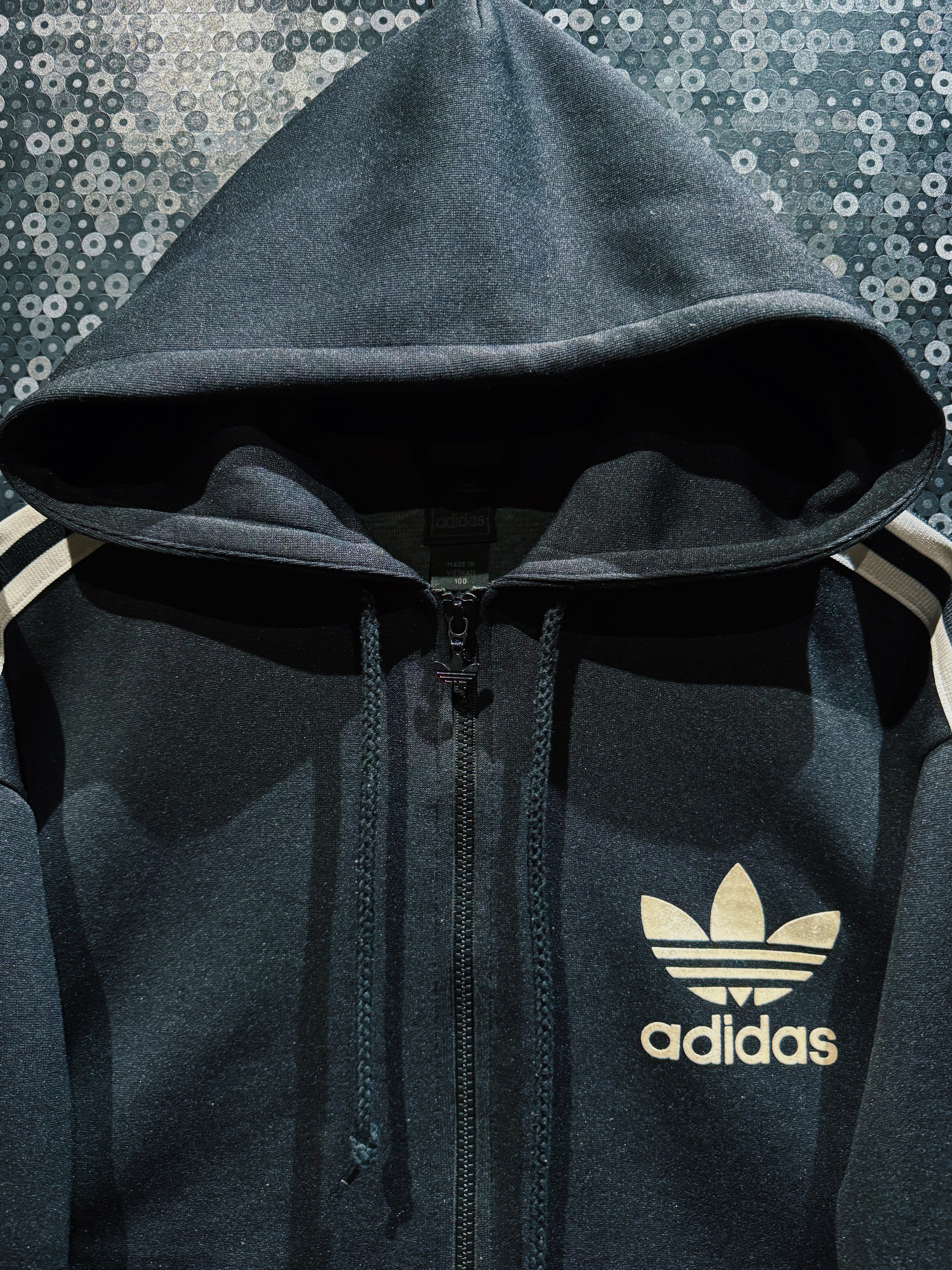 【ÆIEM】“adidas originals” trefoil logo three stripe zip hoodie black