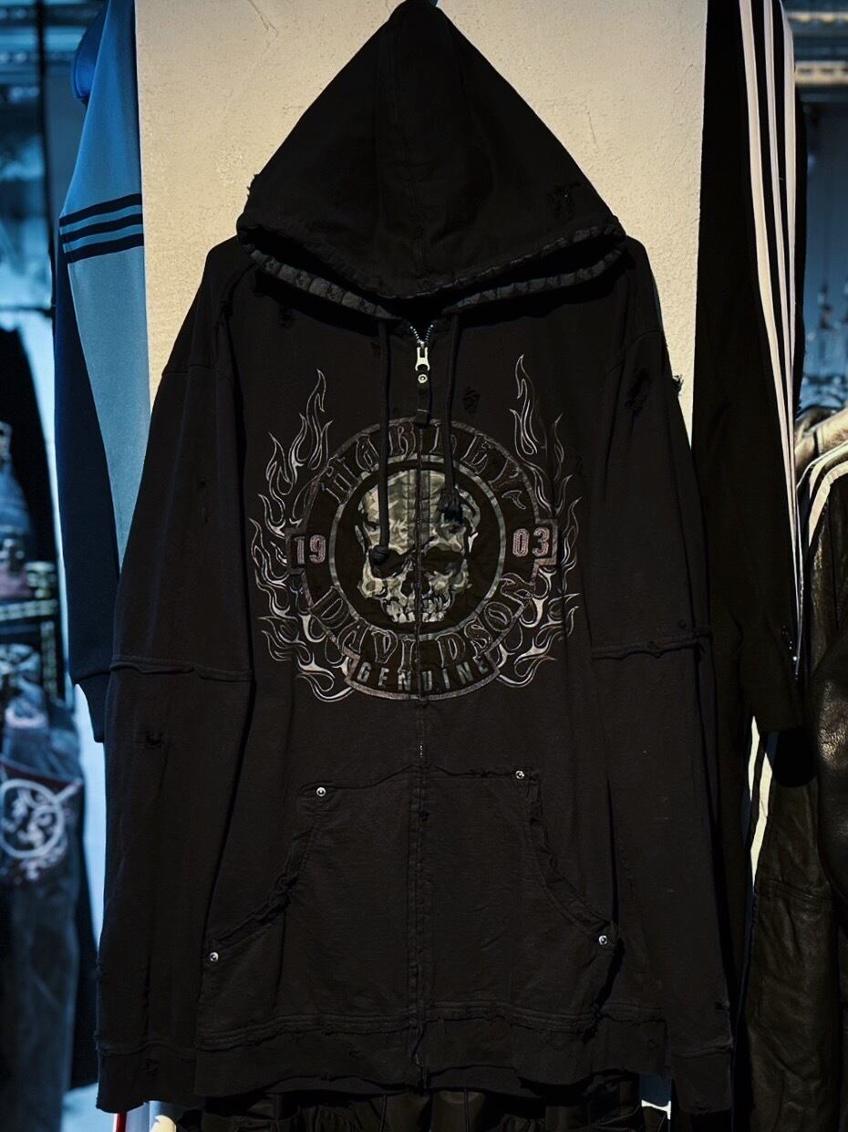 vintage skull graphic design boro custom zip-up hoodie