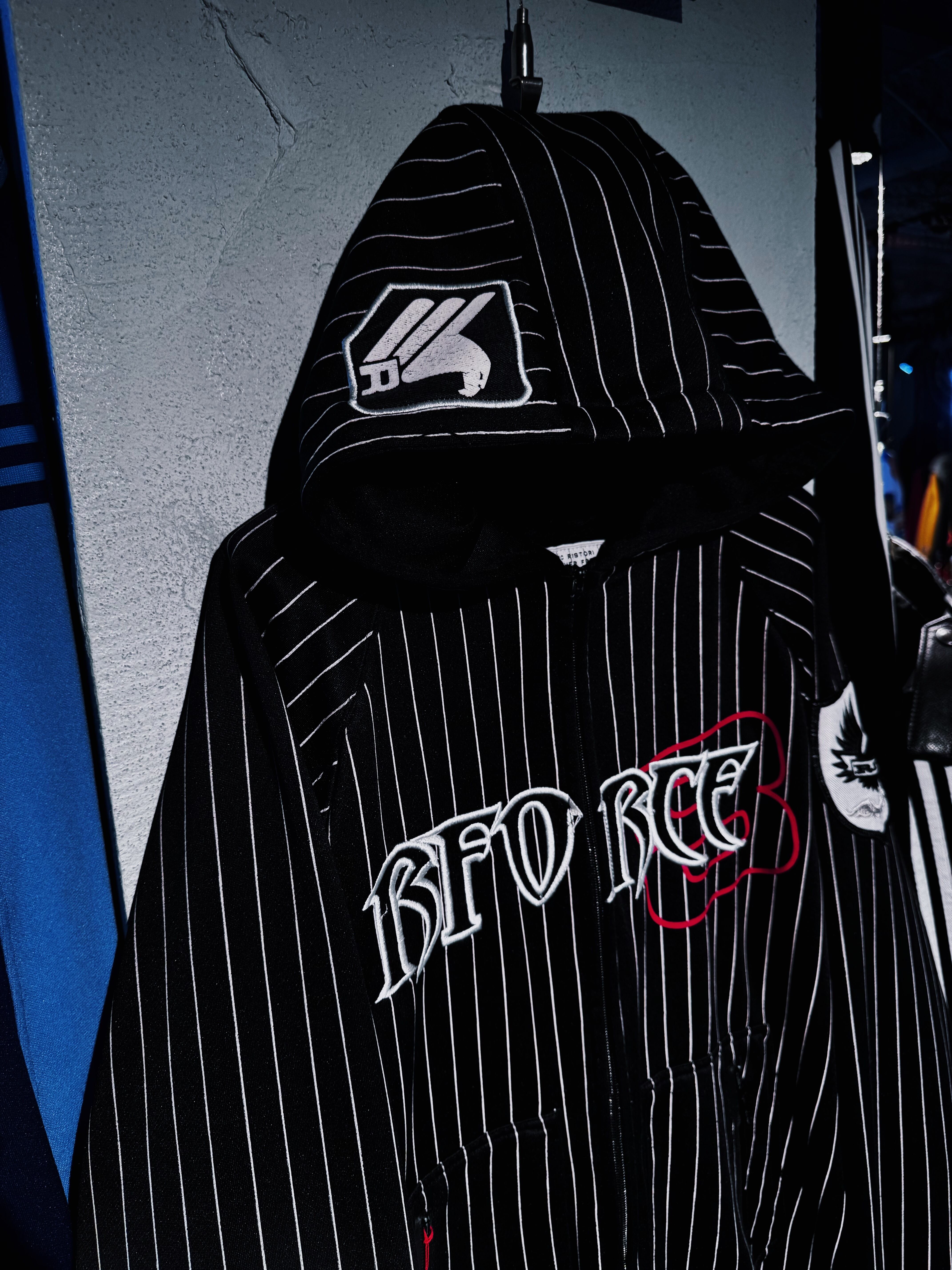 "Rforce 8"forever free design stripe pattern full zip hoodie