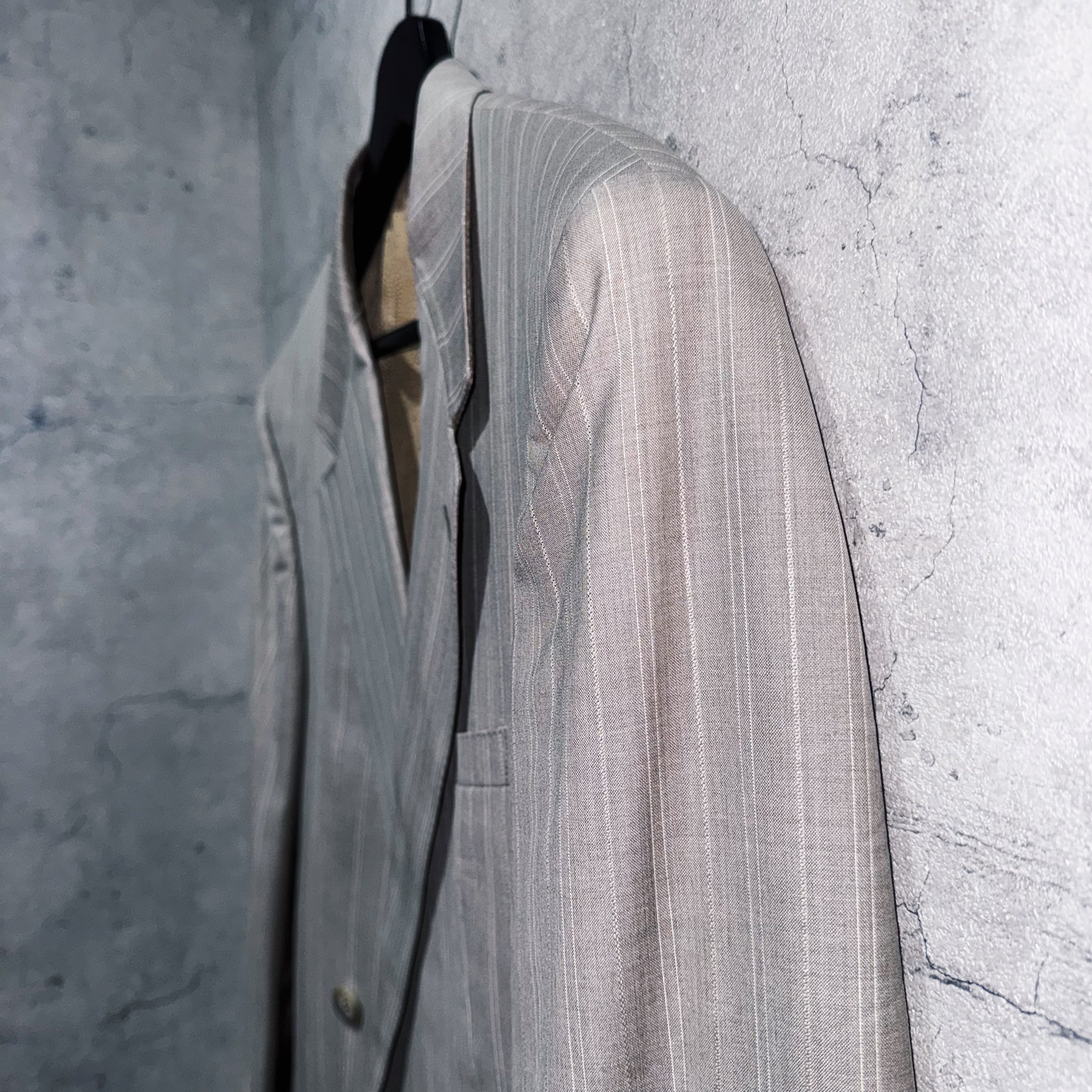 ヴェルサーチらしくジャケットはパワーショルダーでゆとりのあるサイジング、パンツはワイドシルエットと着用に生み出されるソフトシルエットはまさにミラノスタイル。