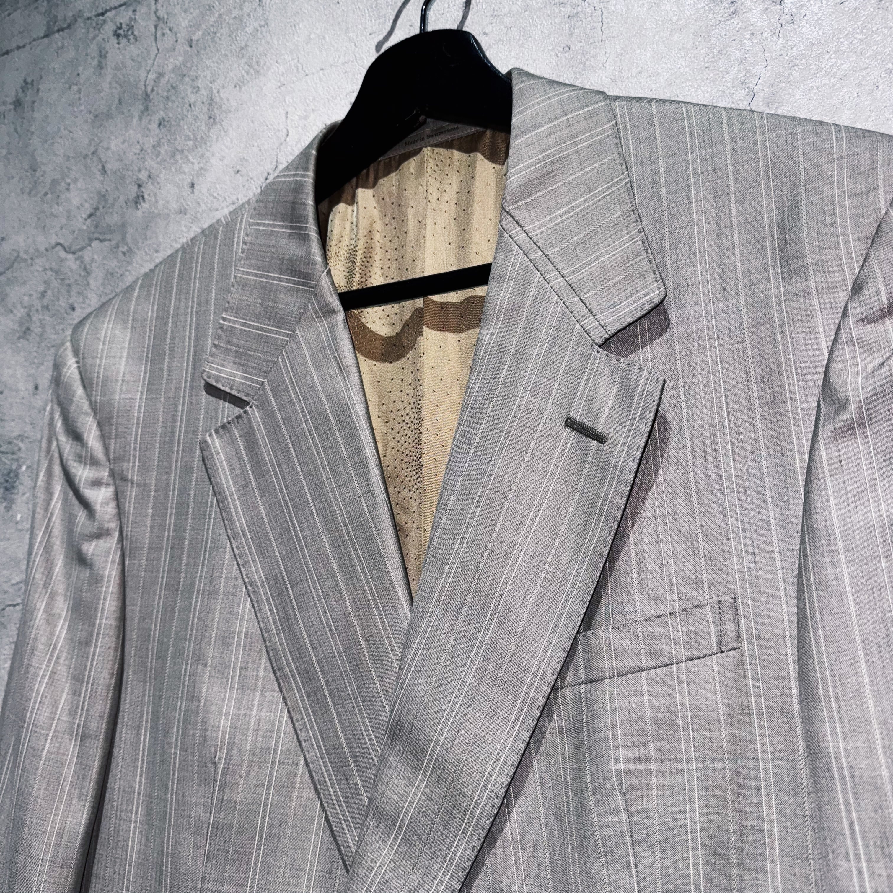そんなブランドから王道なベージュカラーのセットアップ。素材にはウールを採用することで、程よい光沢を放ち圧倒的な高級感を演出。