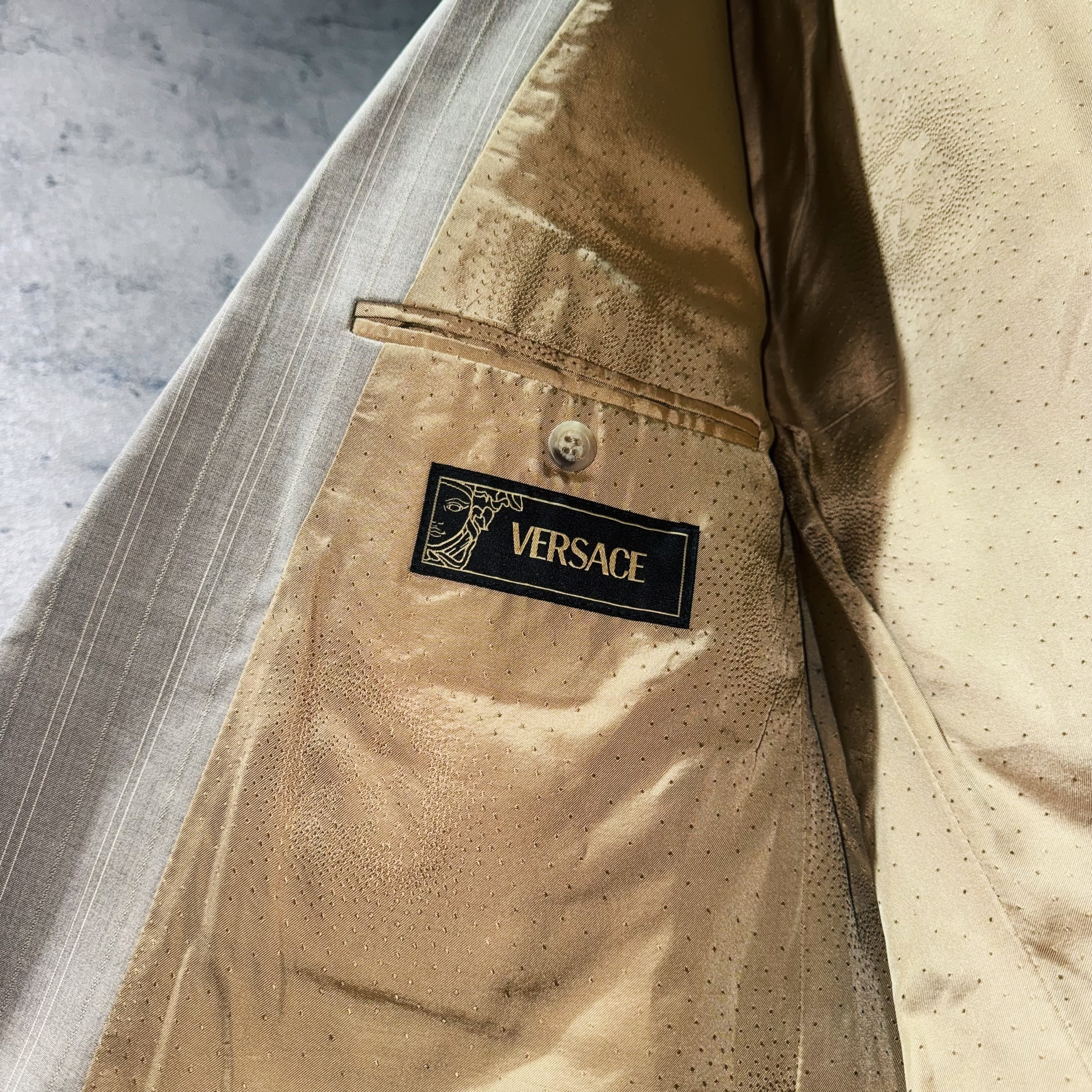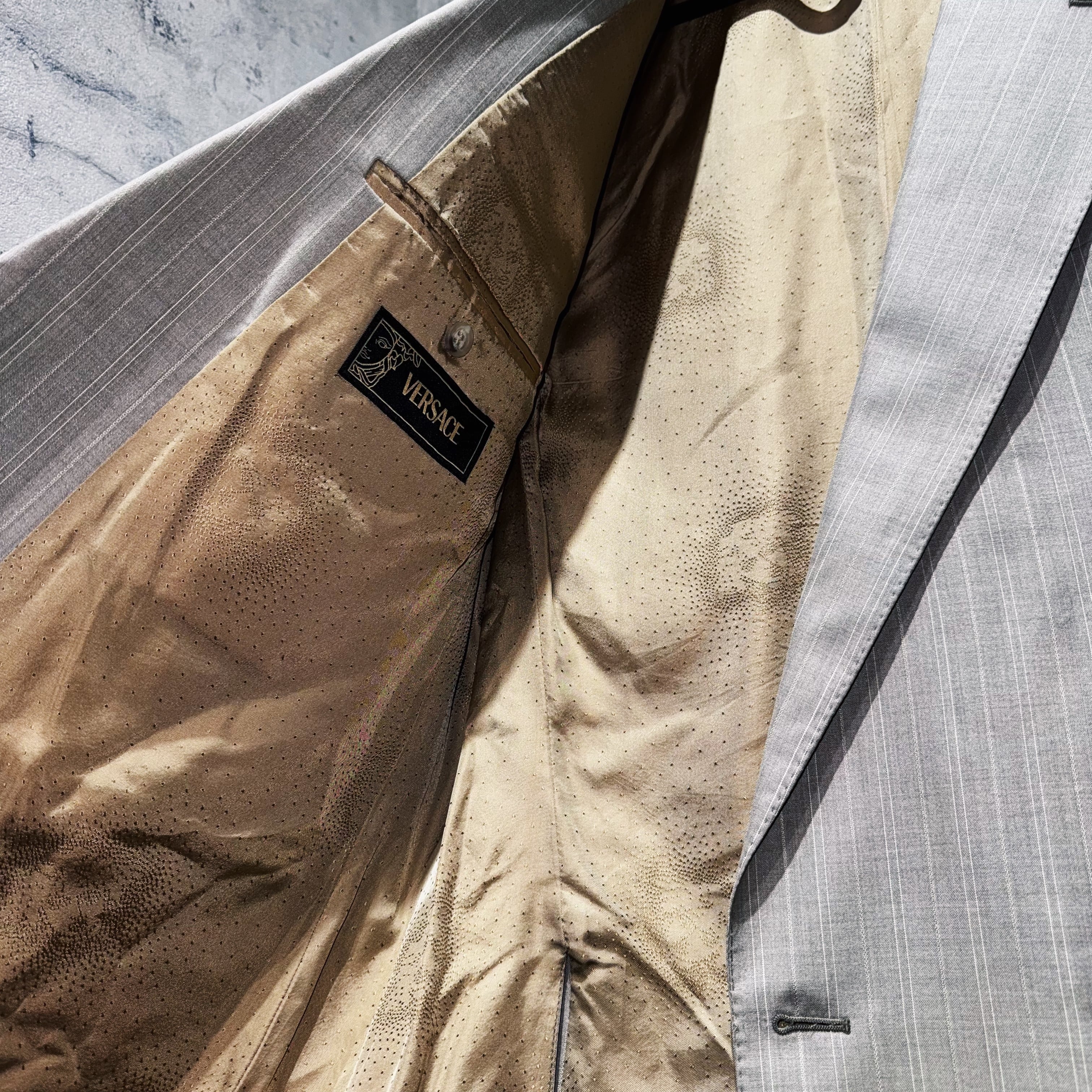 "ヴェルサーチ"メデューサライニングデザインクアトロボタンダブルブレストセットアップ