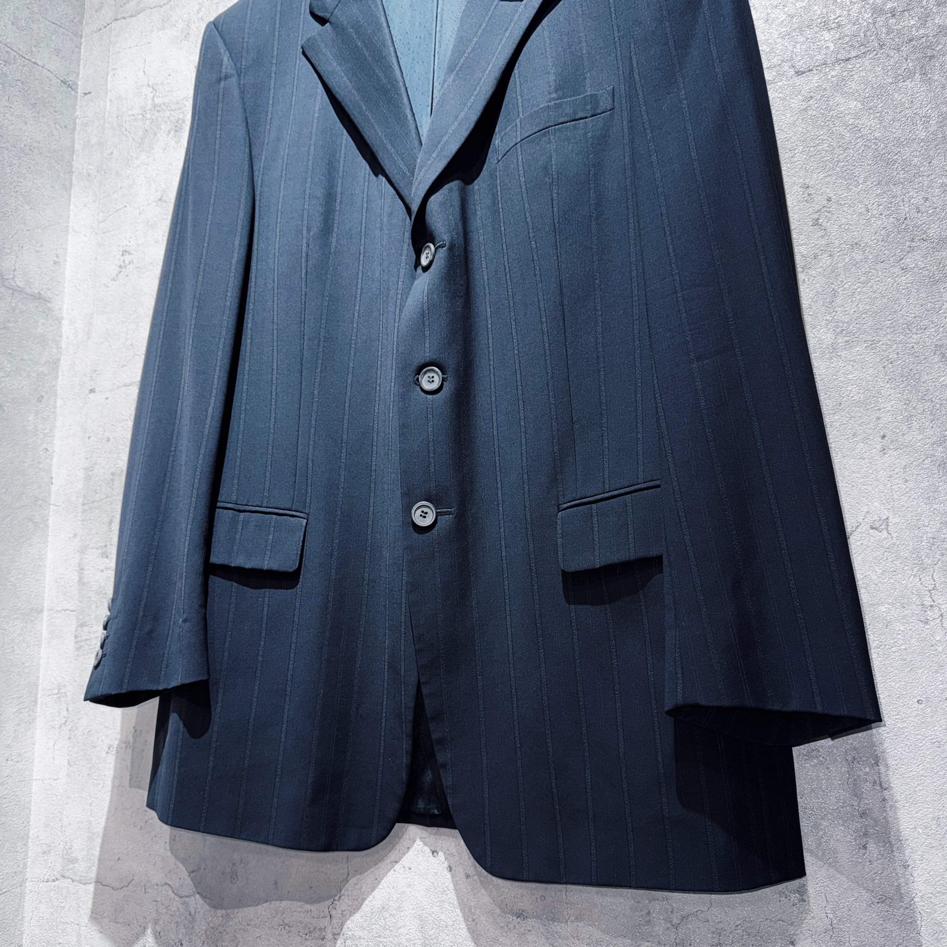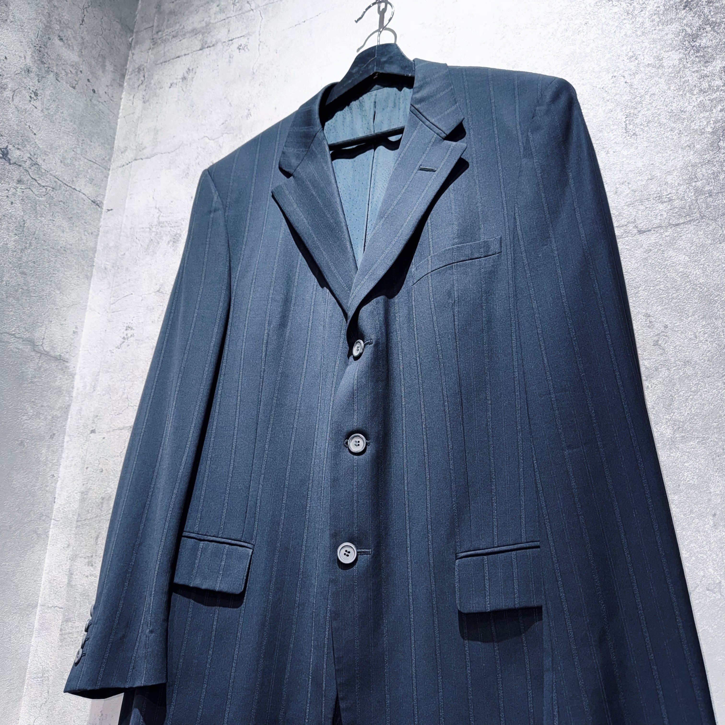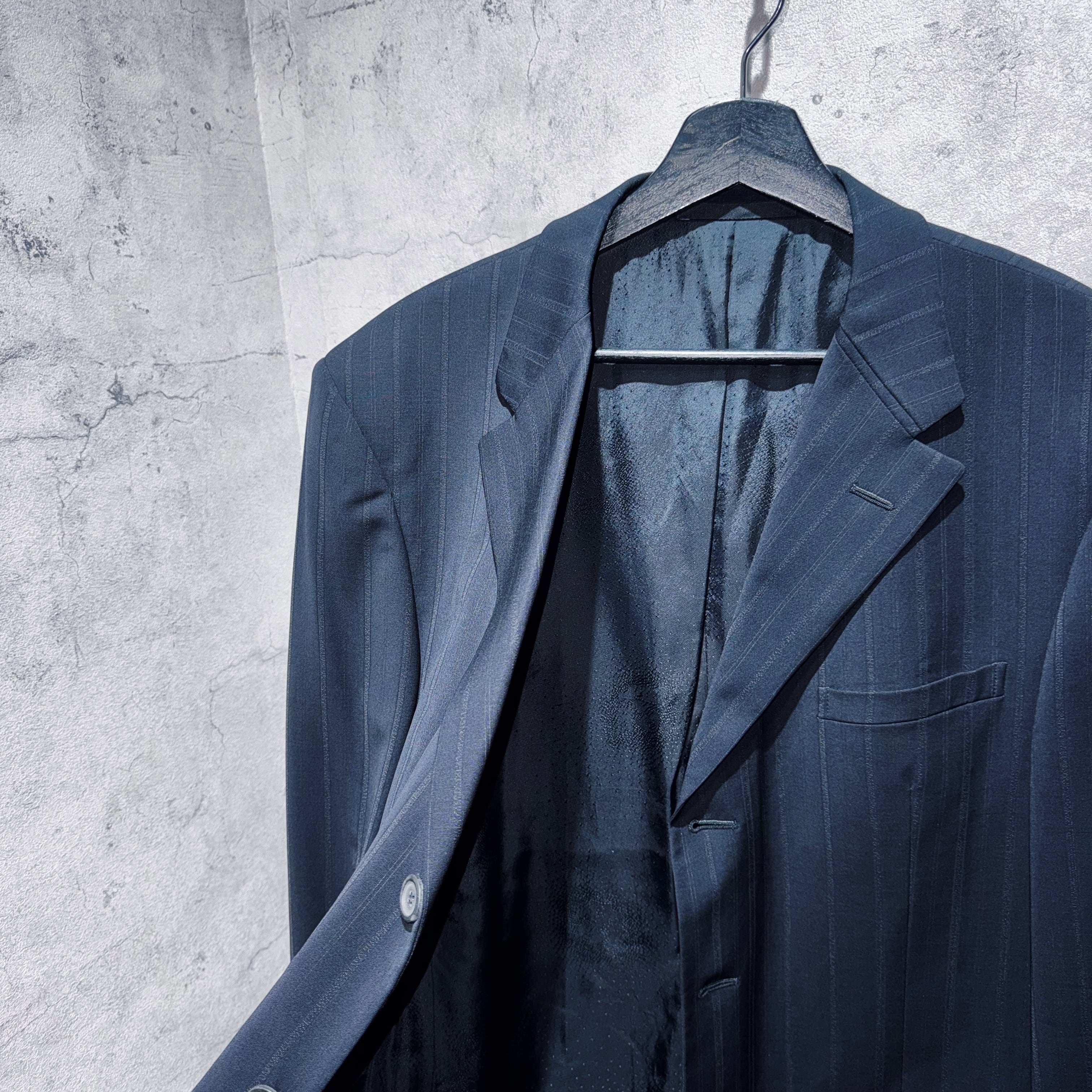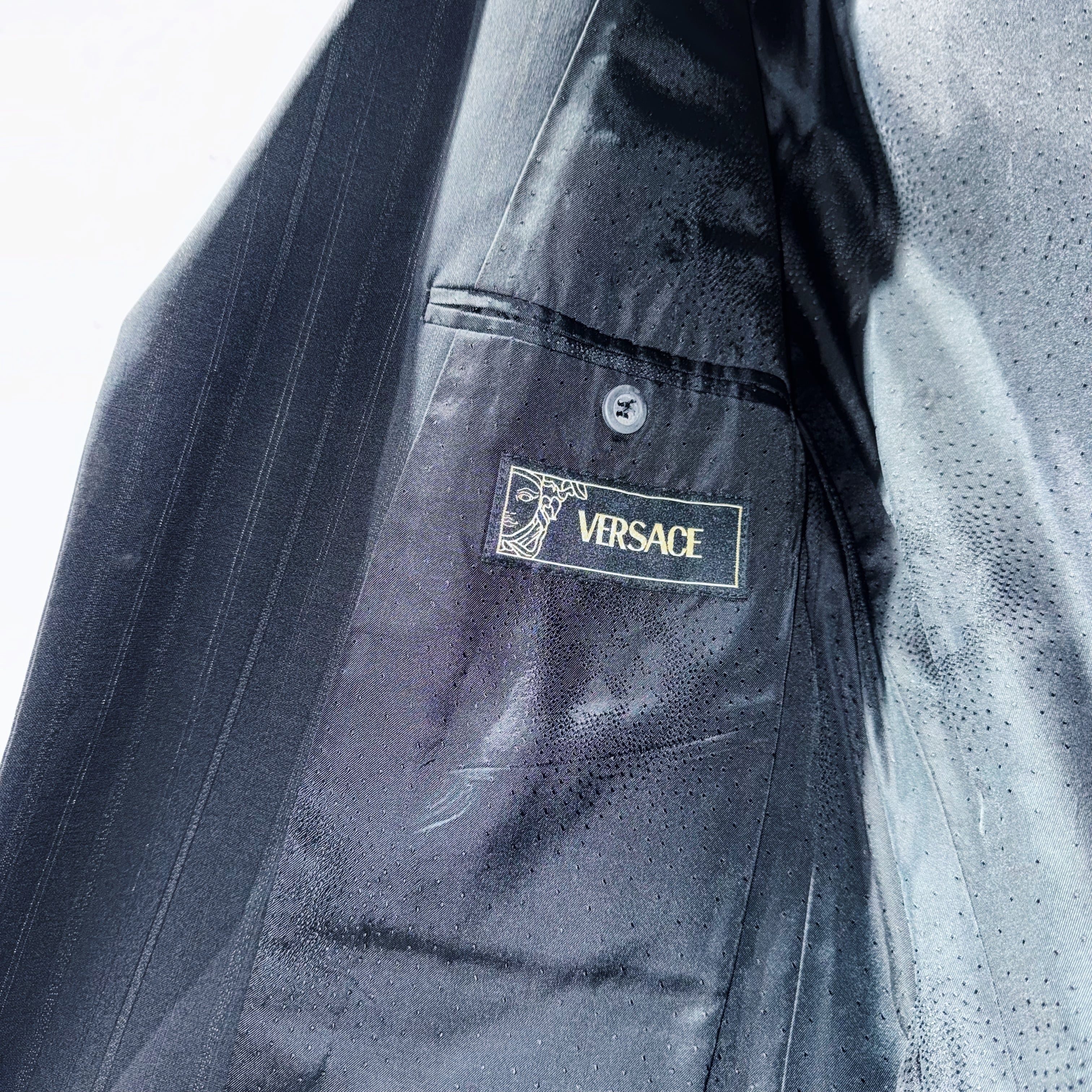 "ジャンニヴェルサーチ"メデューサエンブロイダリーライニングデザインシングルブレストストライプセットアップ