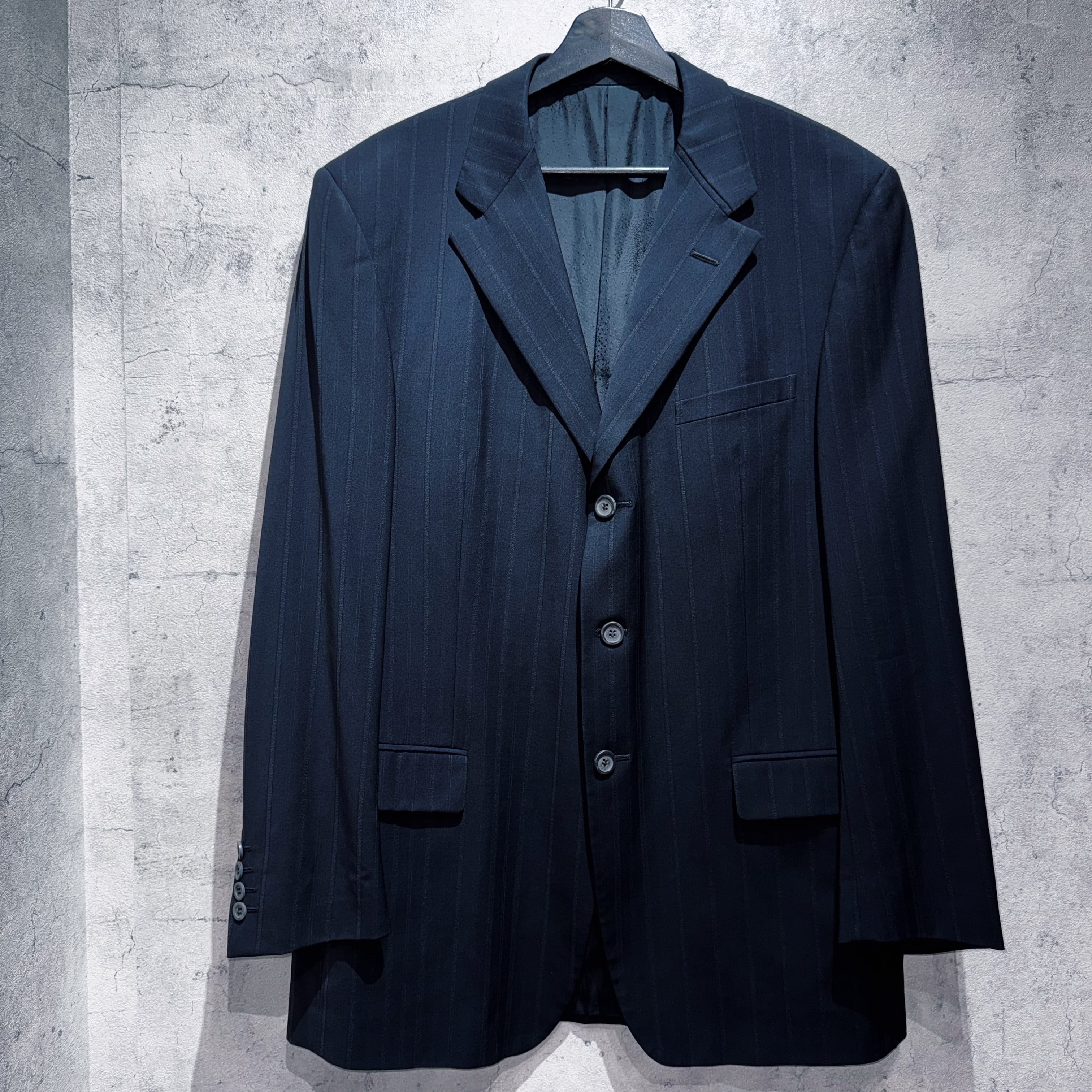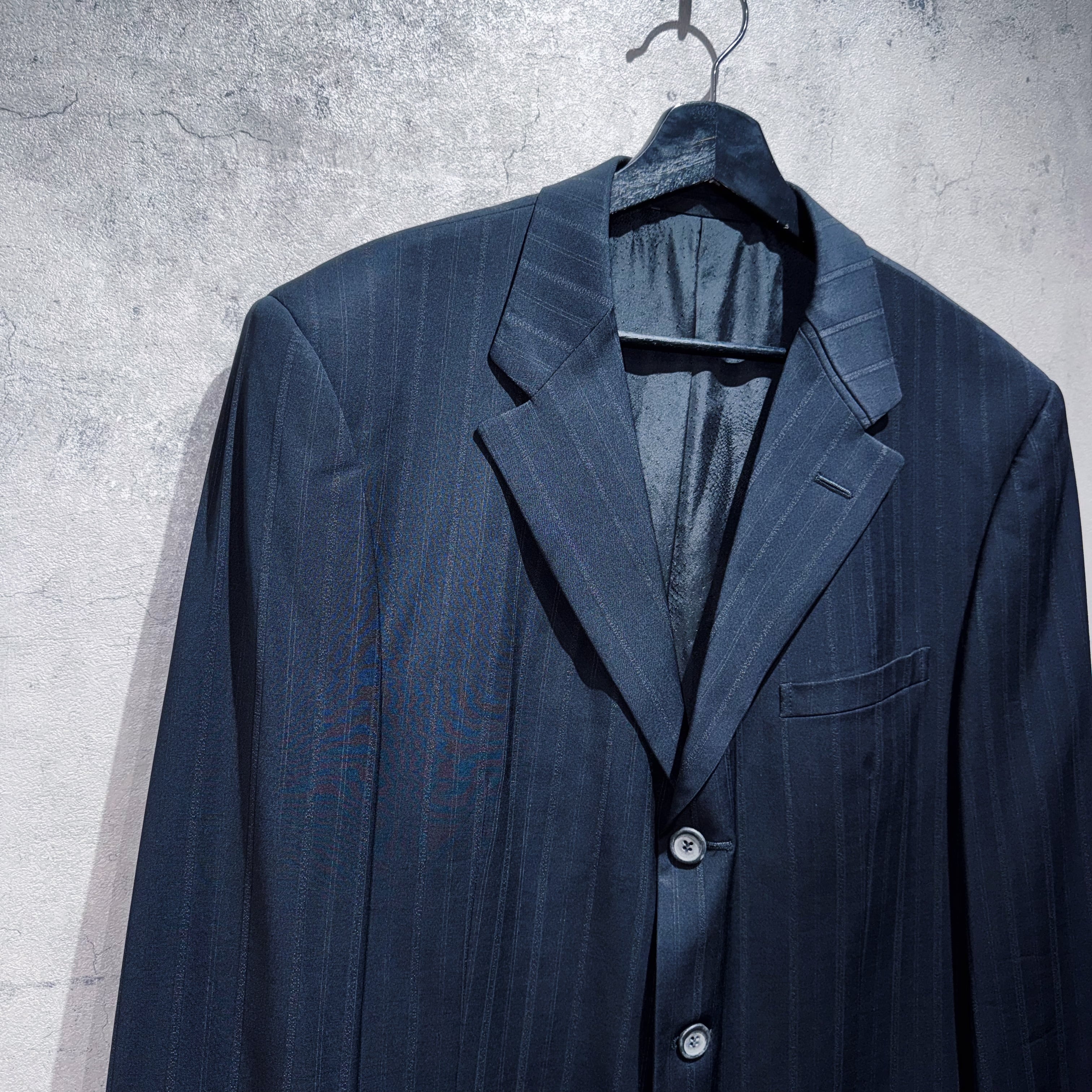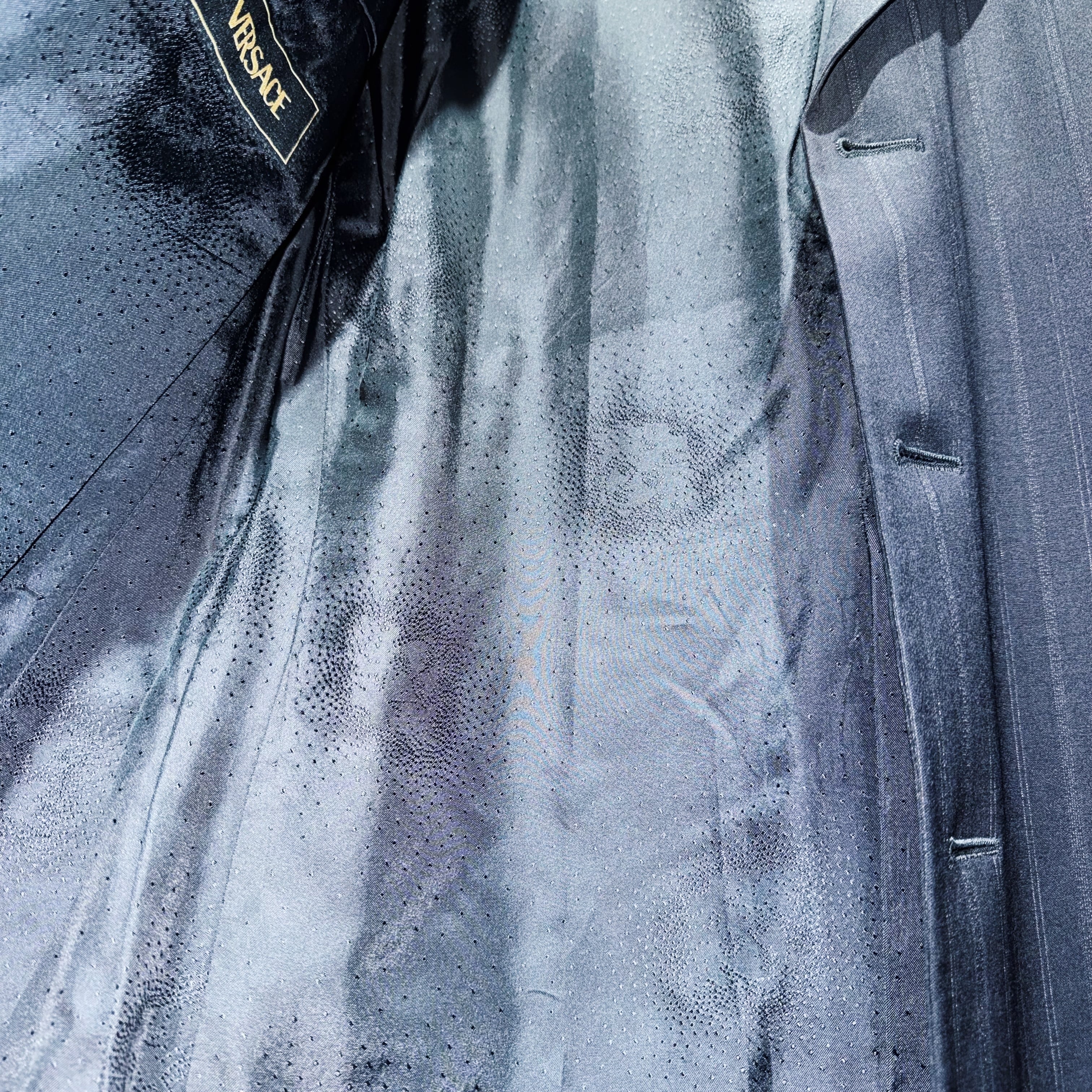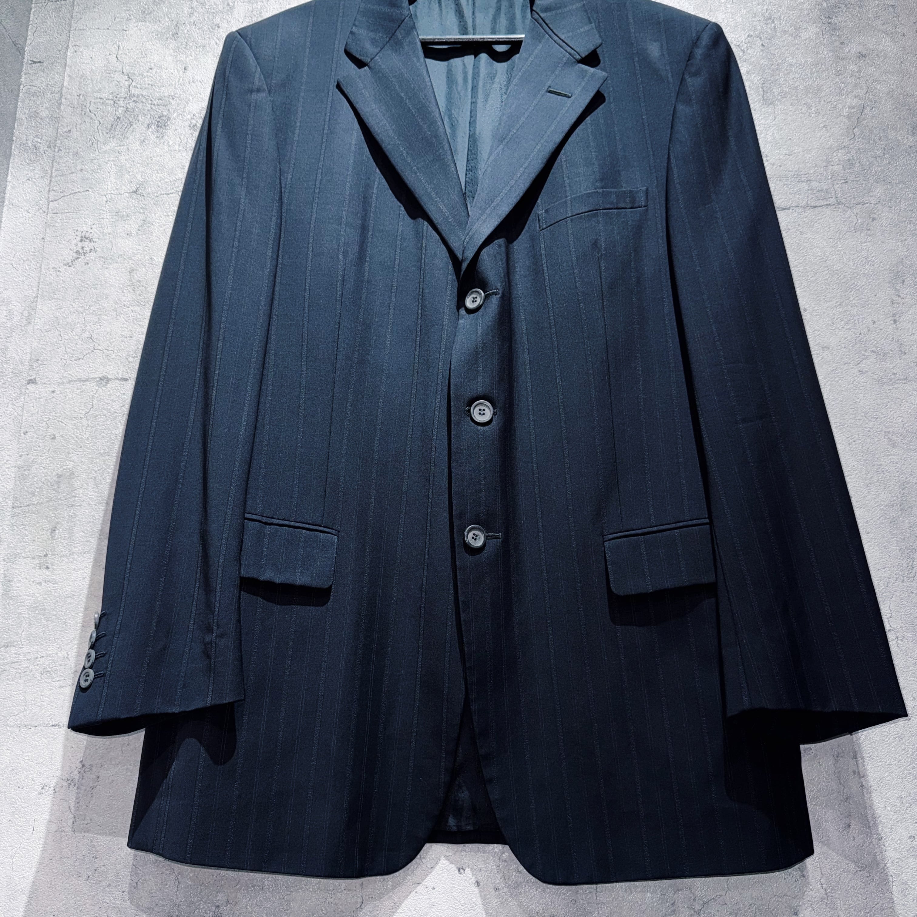 "ジャンニヴェルサーチ"メデューサエンブロイダリーライニングデザインシングルブレストストライプセットアップ