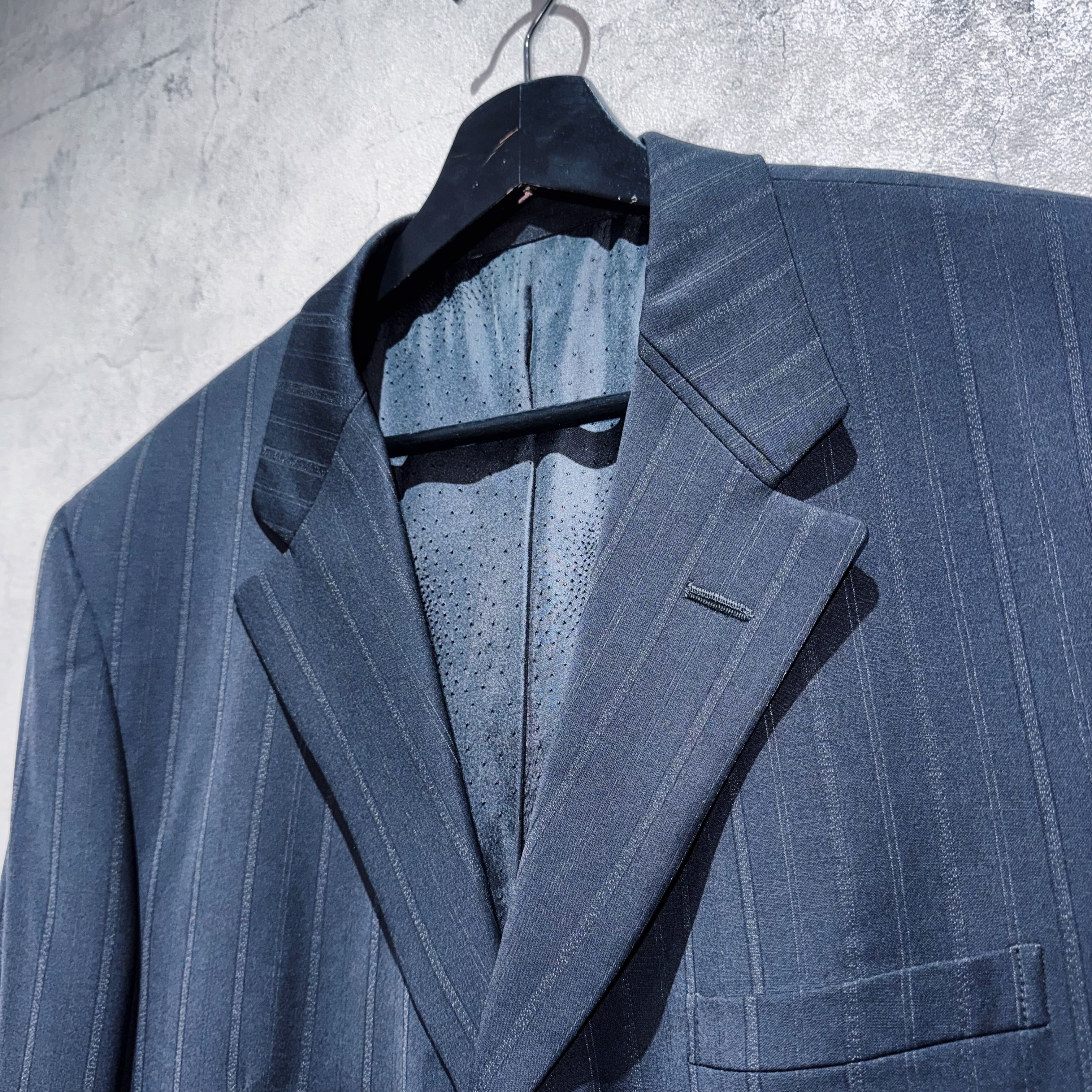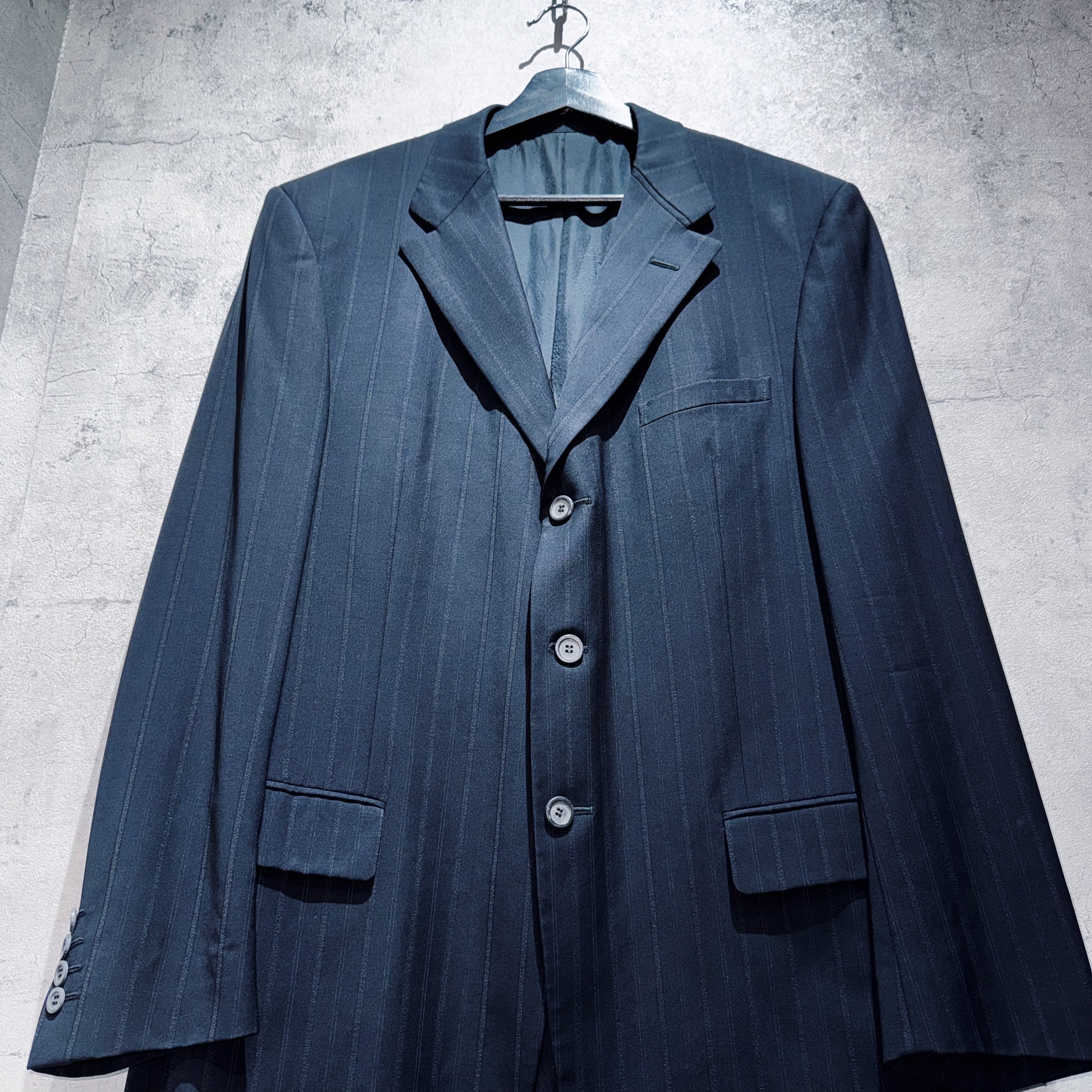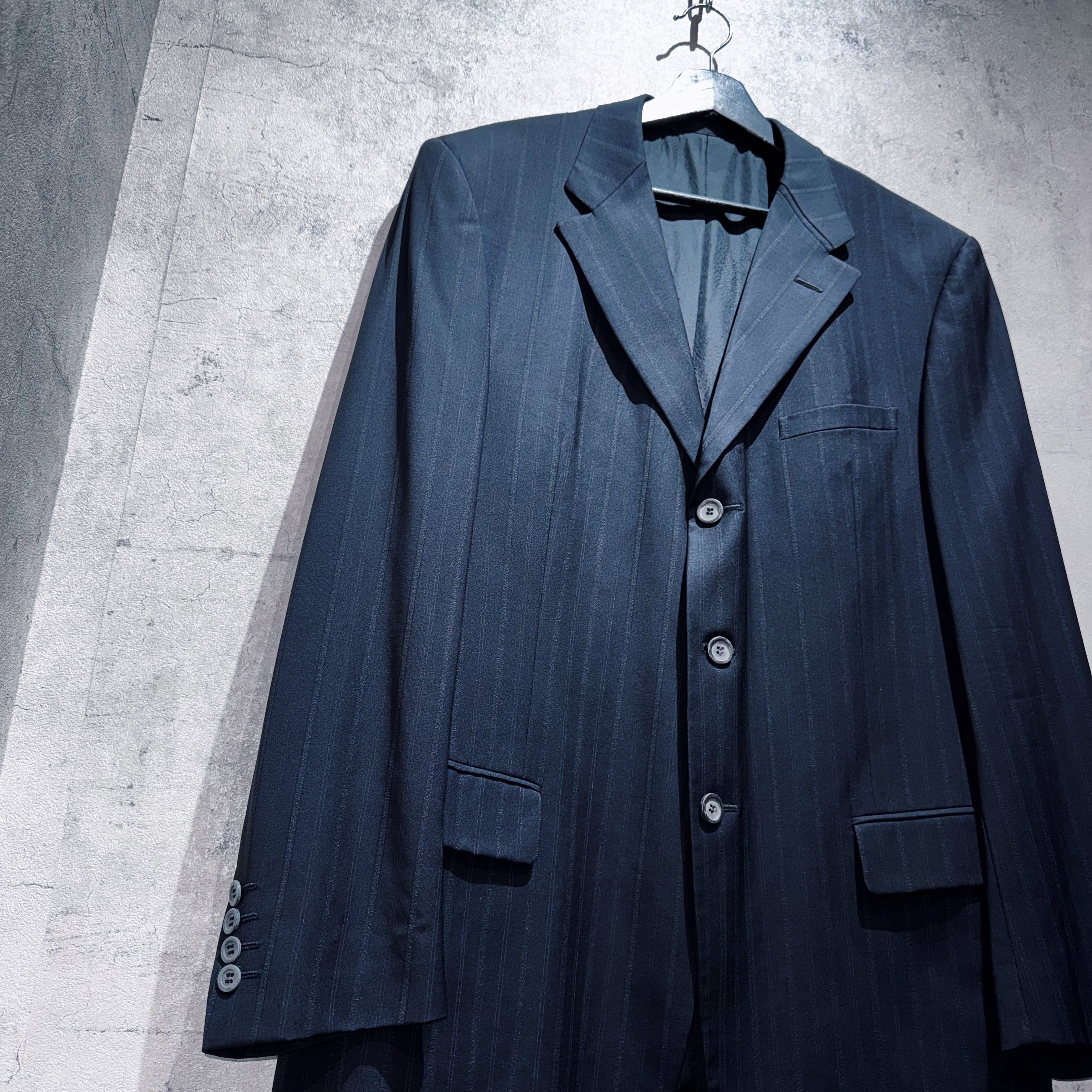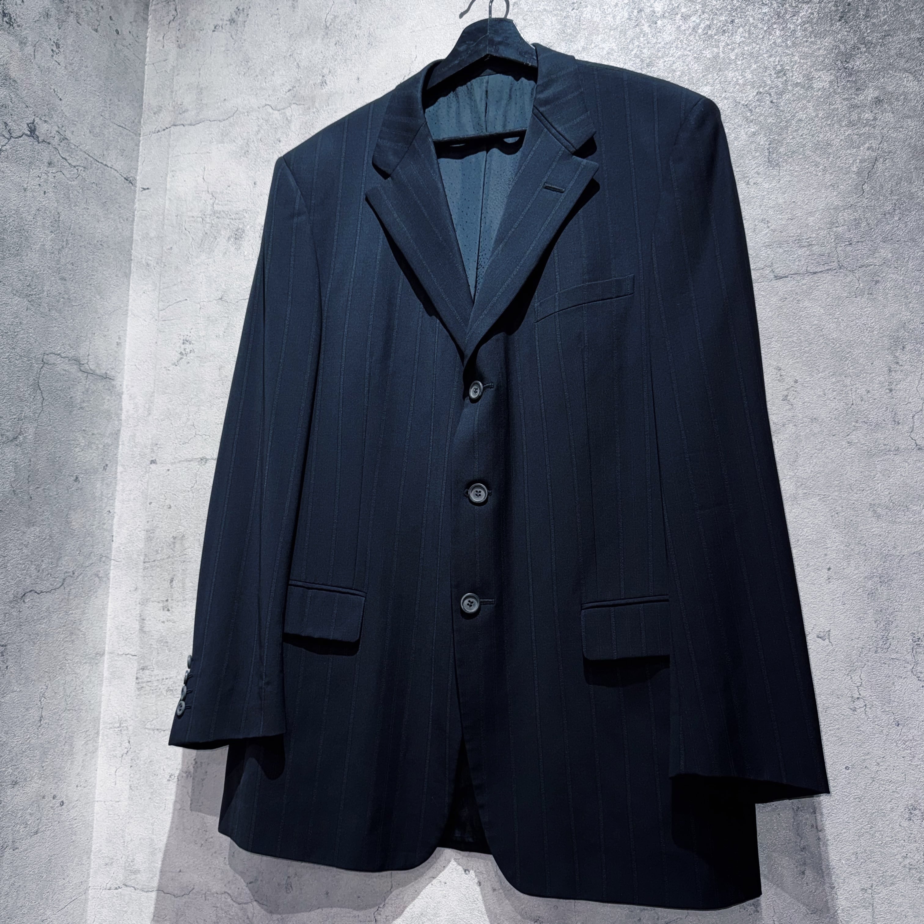 "ジャンニヴェルサーチ"メデューサエンブロイダリーライニングデザインシングルブレストストライプセットアップ