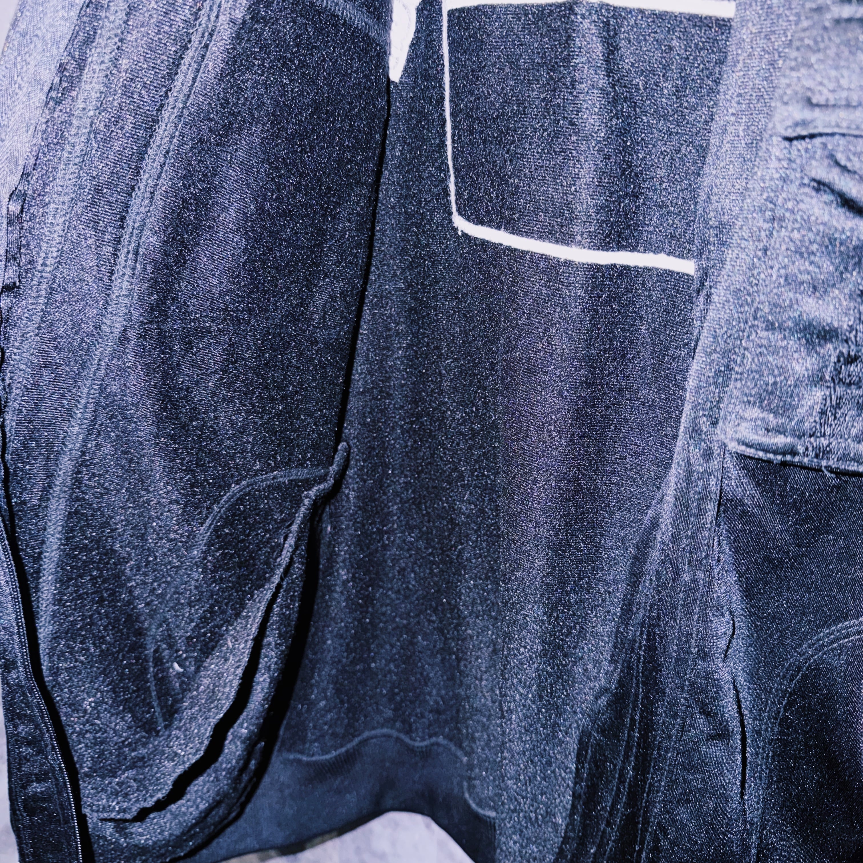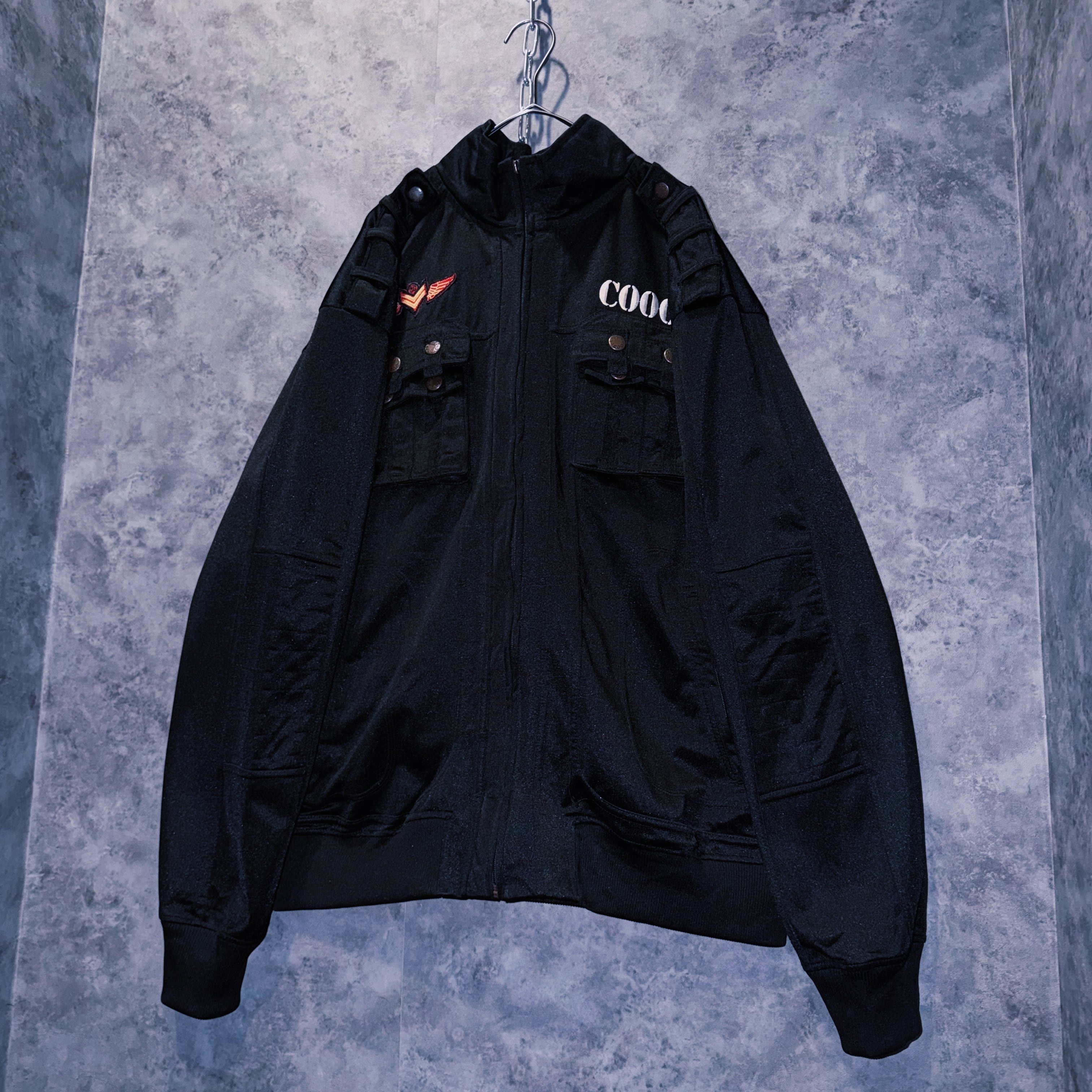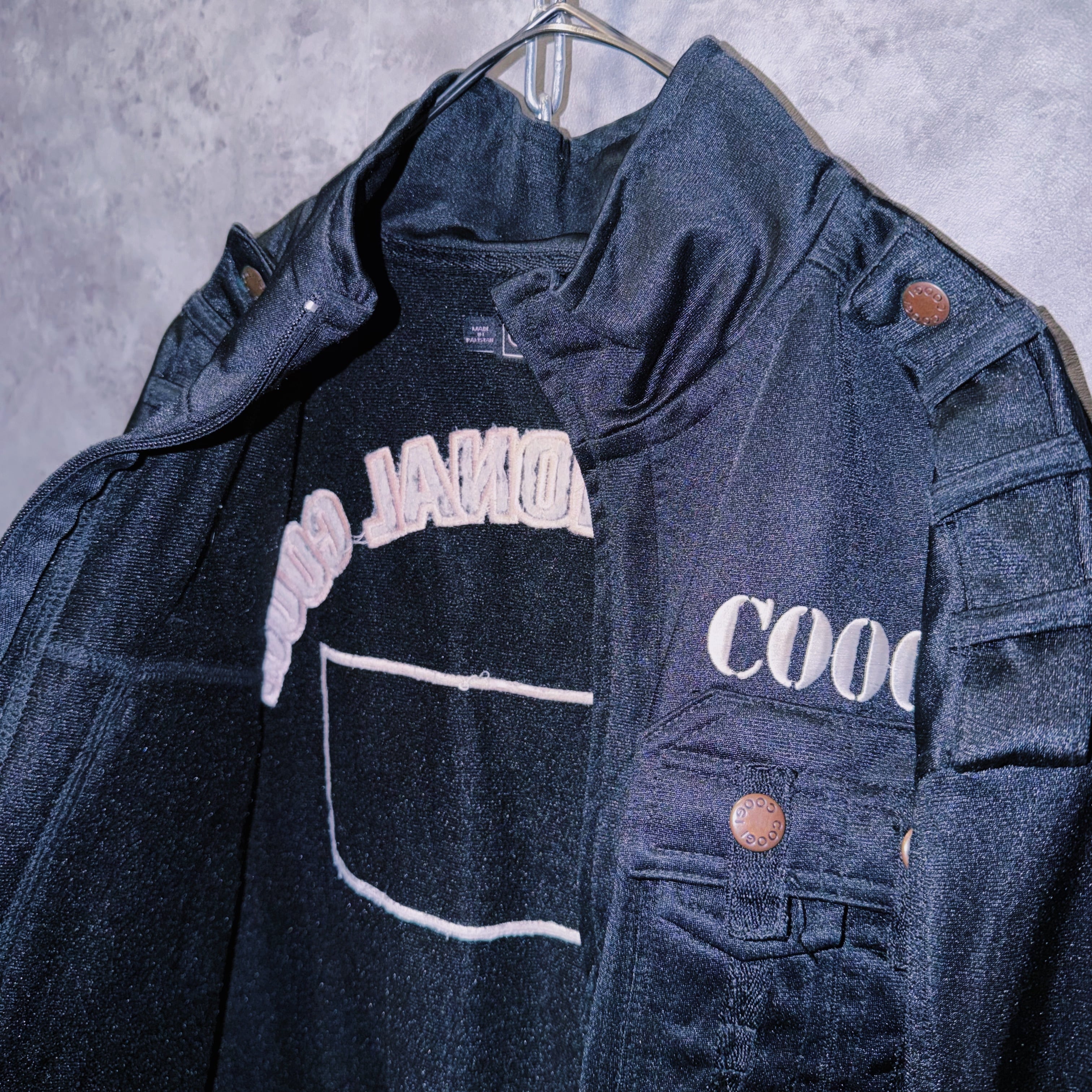 光沢のあるブラックカラーをベースに胸元には堂々と“COOGI”のロゴデザインが刺繍で施されています。肩のディテールやカーゴのようなポケットが施されたことでどこかポリス感の漂う強い印象。