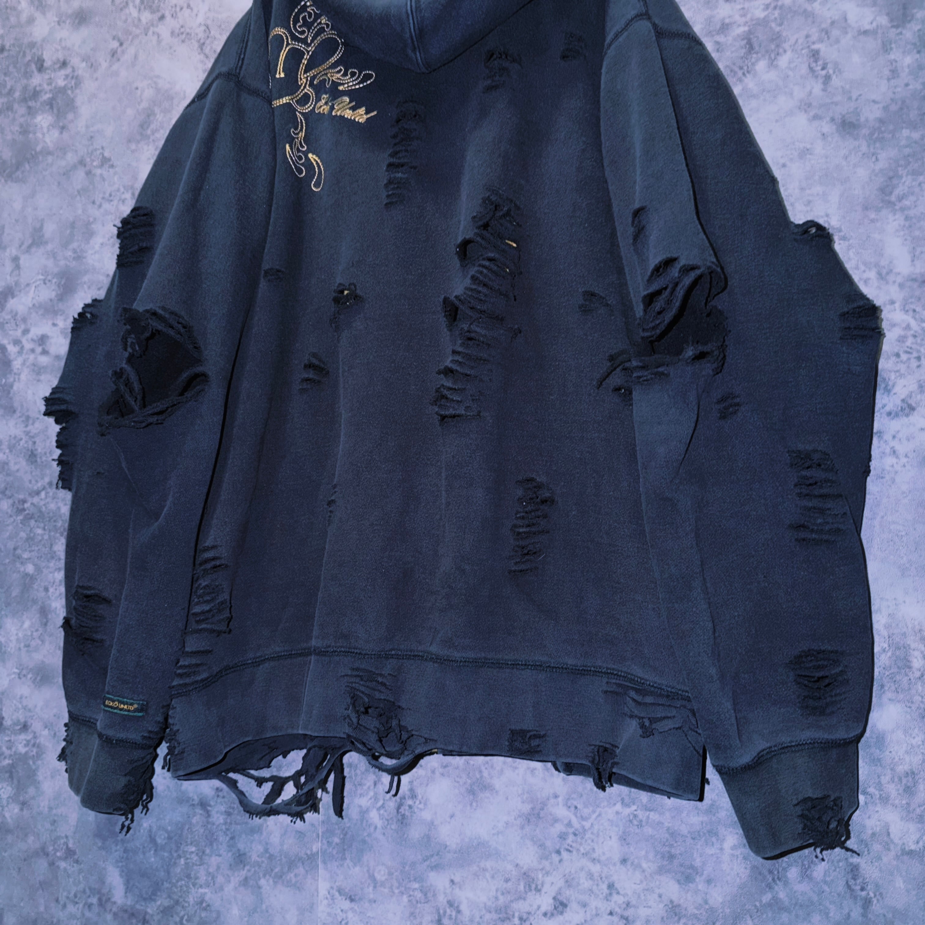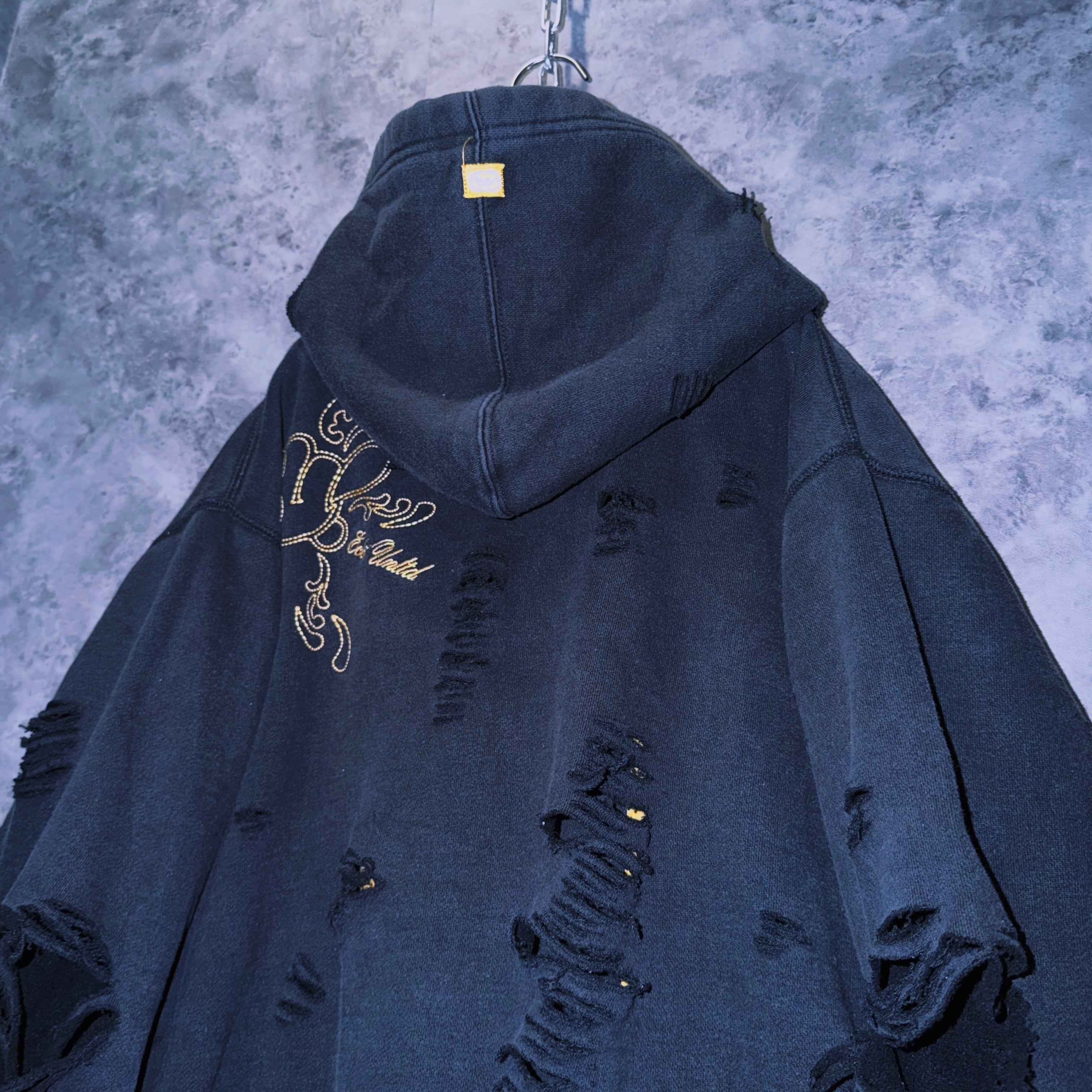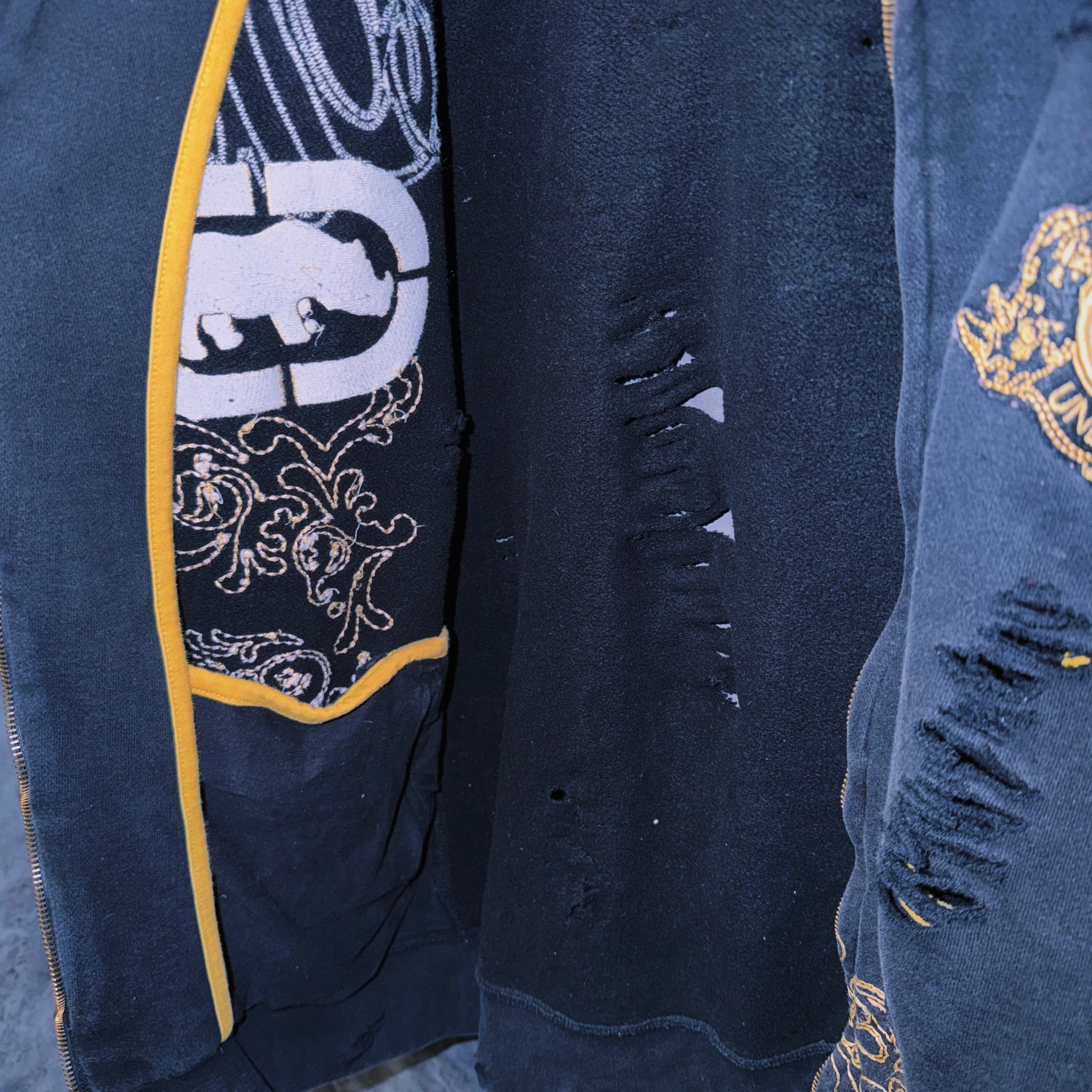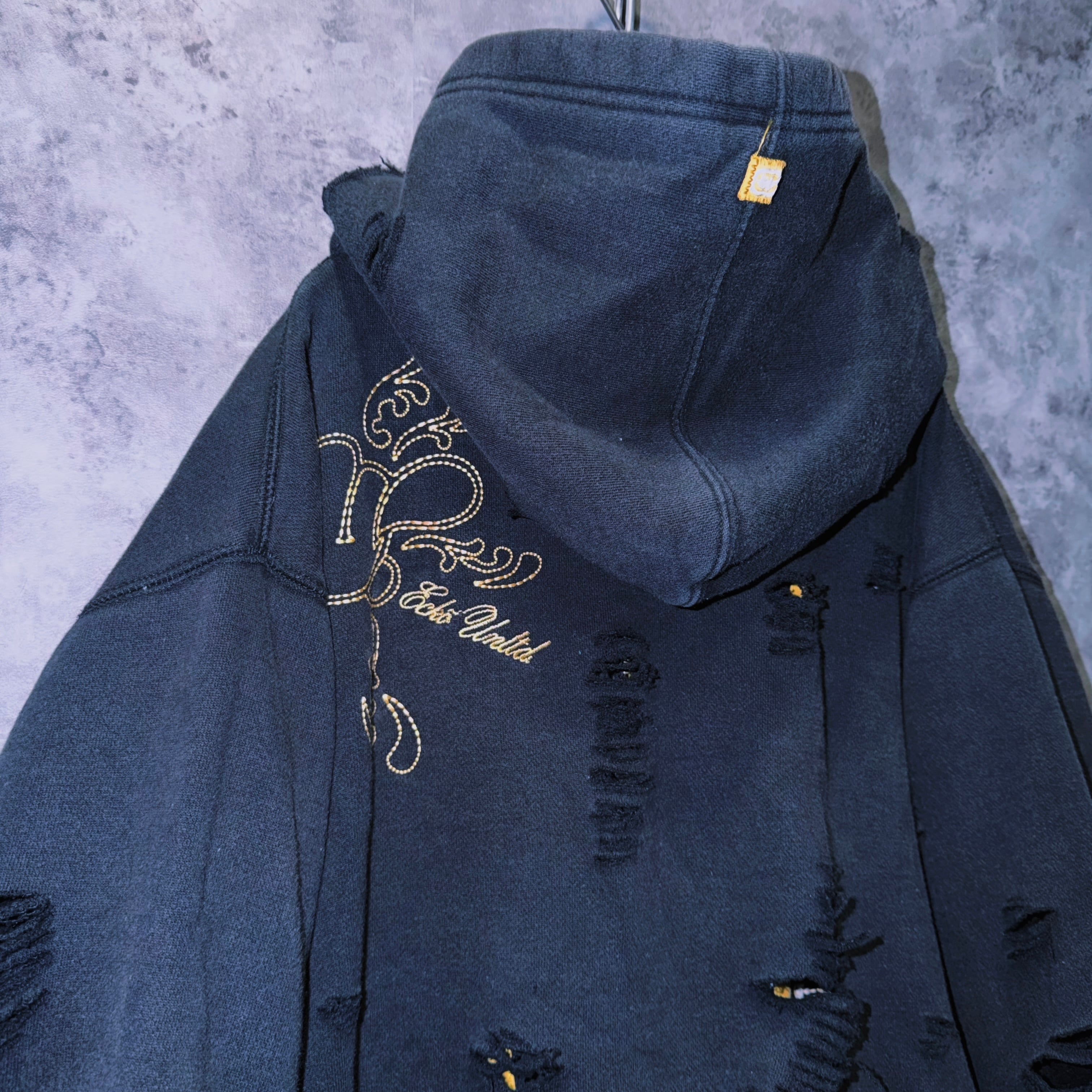 【doppio】vintage “ecko unlimited” embroidery design boro custom zip hoodie