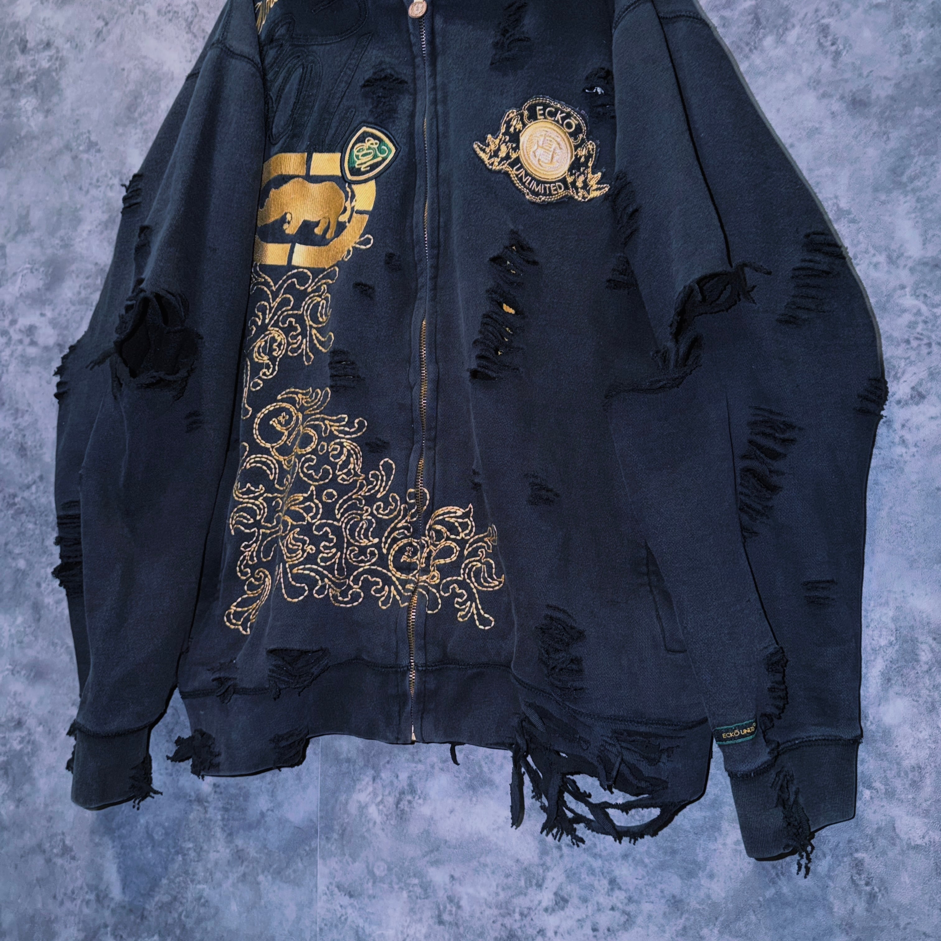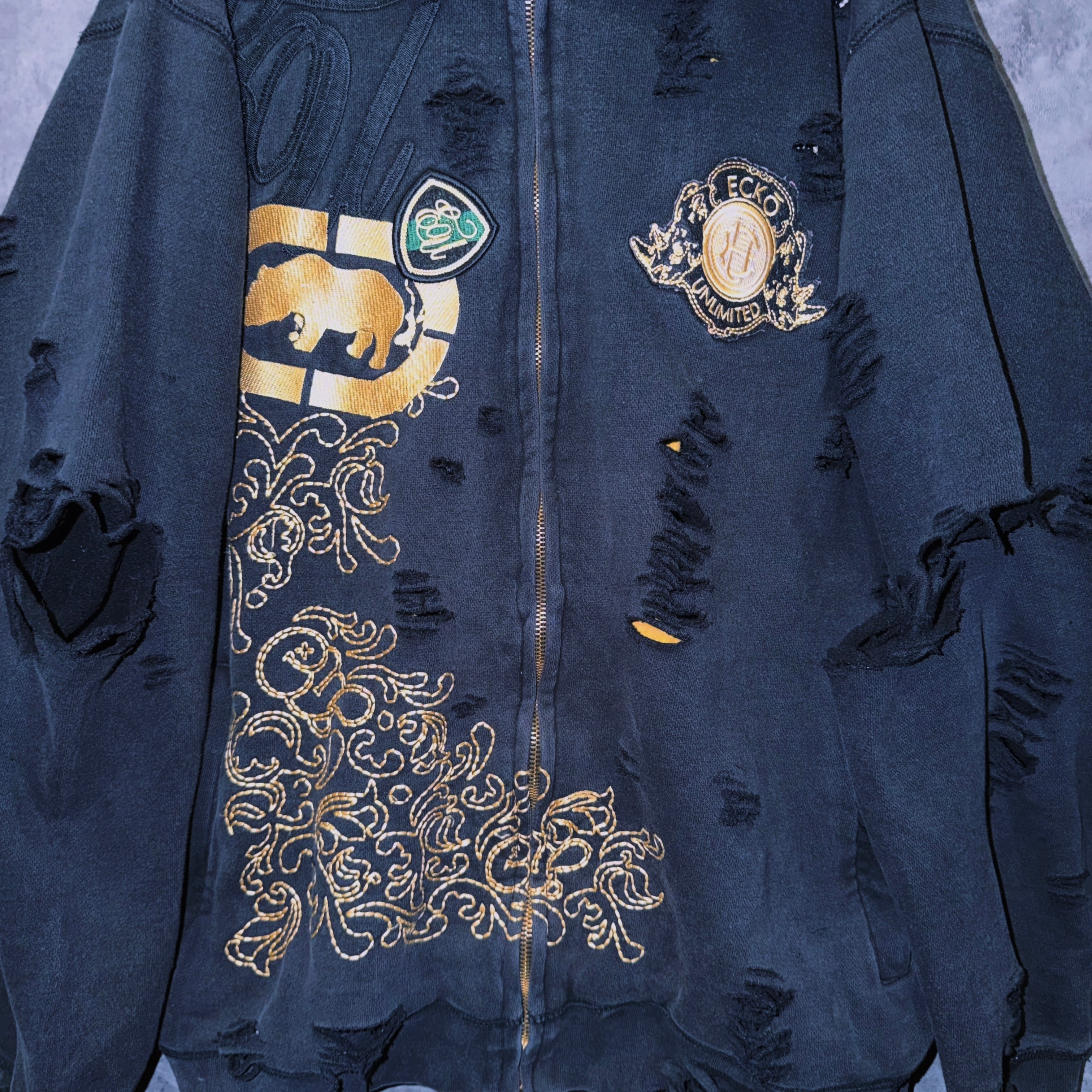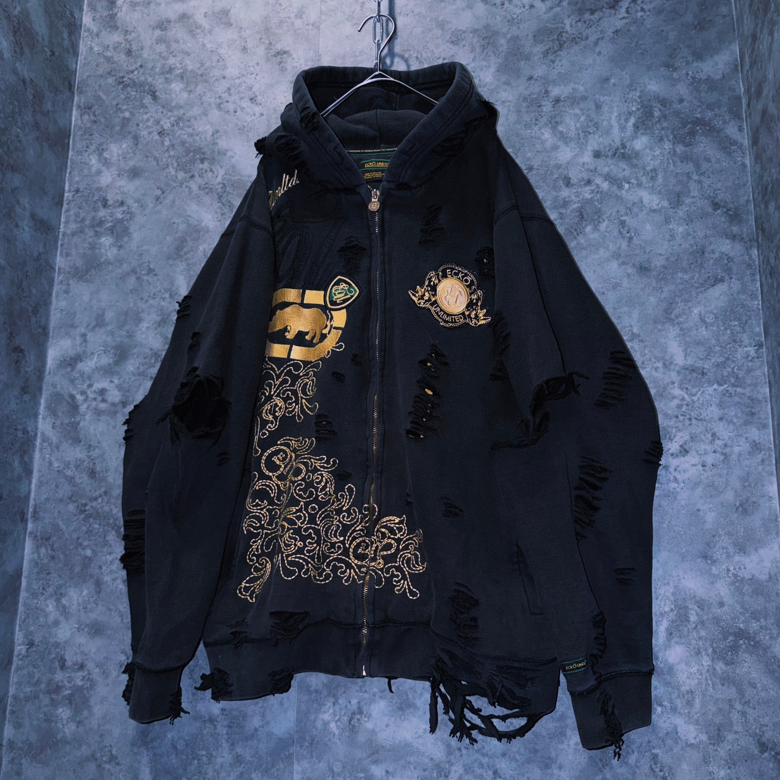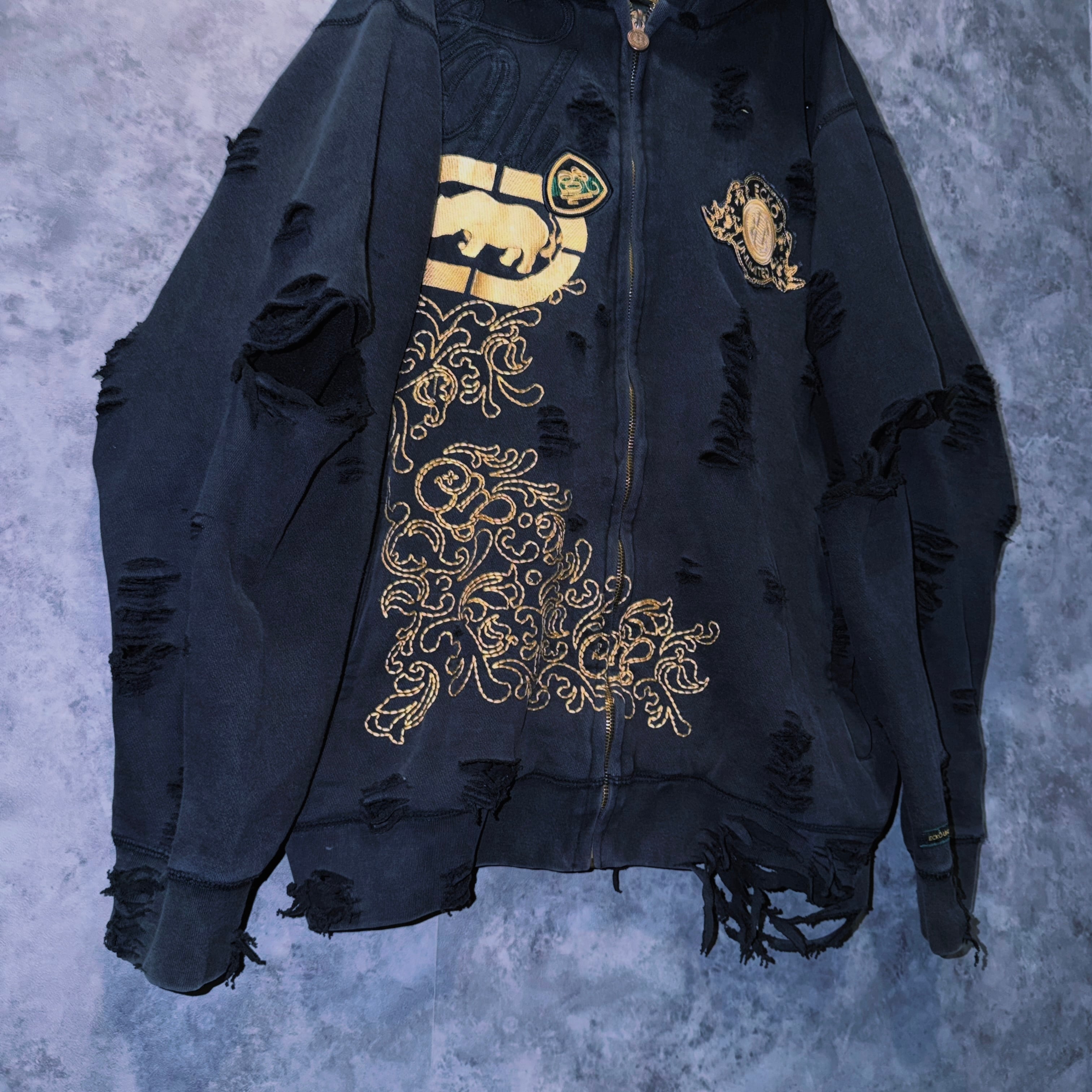 ヴィンテージ“ecko unlimited”エンブロイダリーデザインボロカスタムジップフーディ