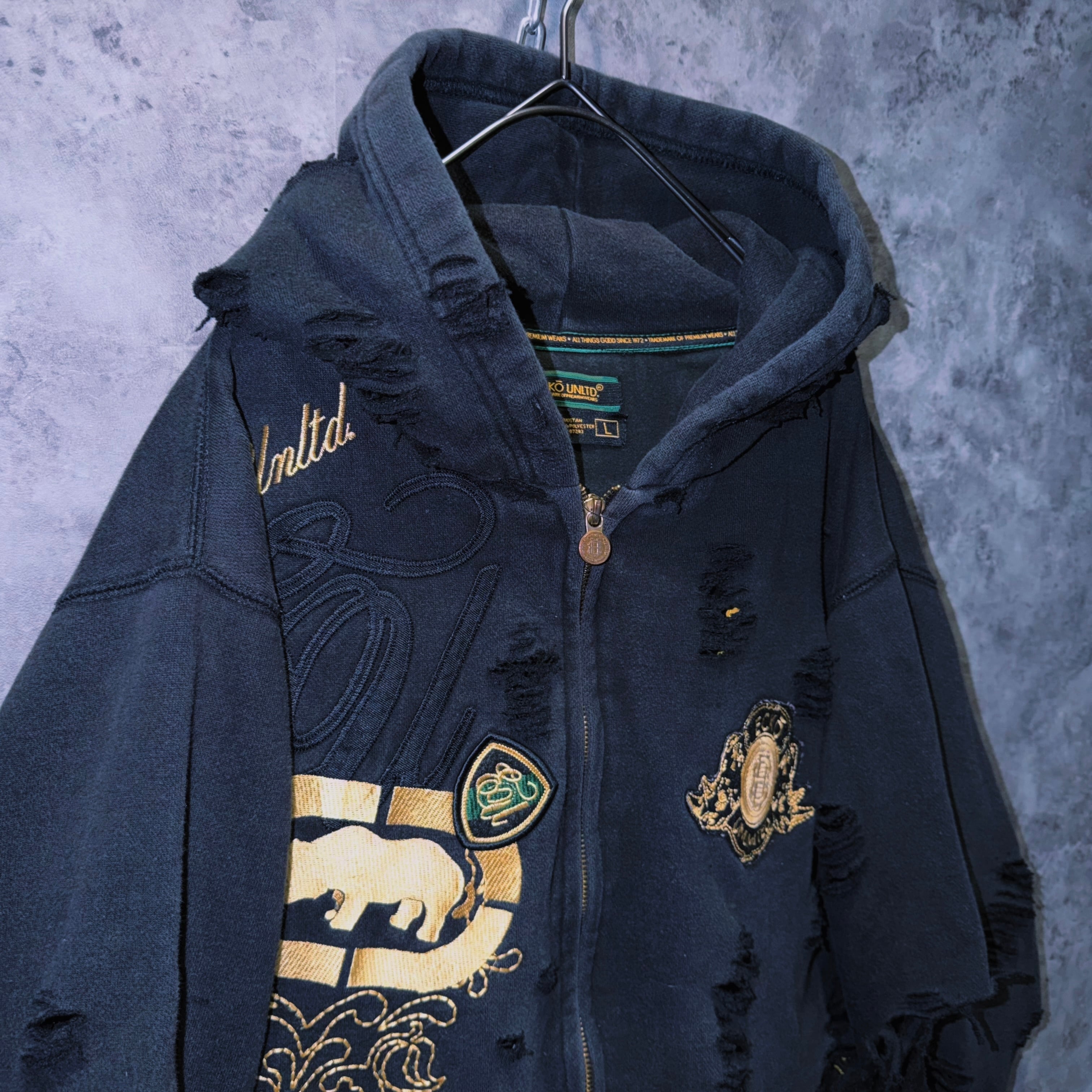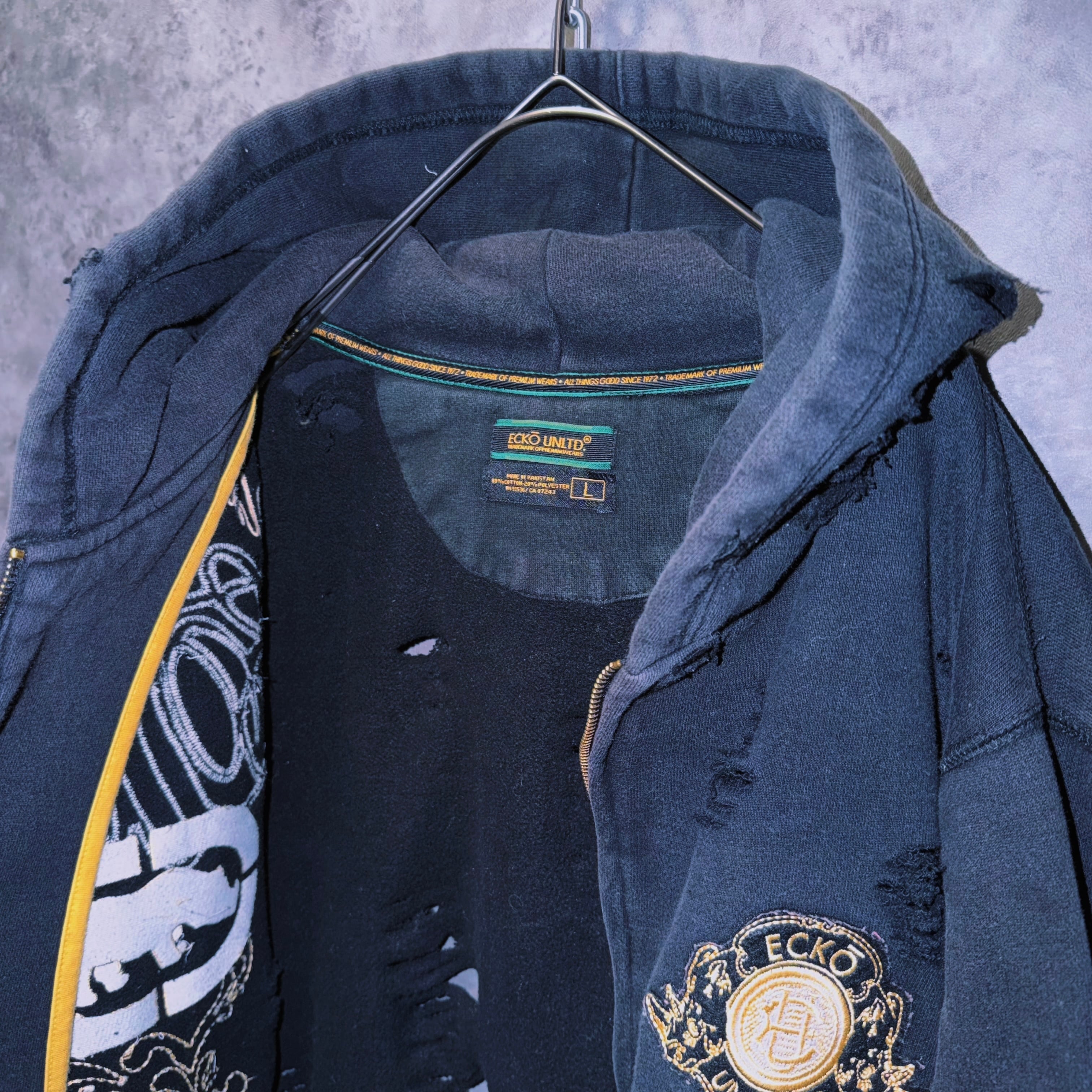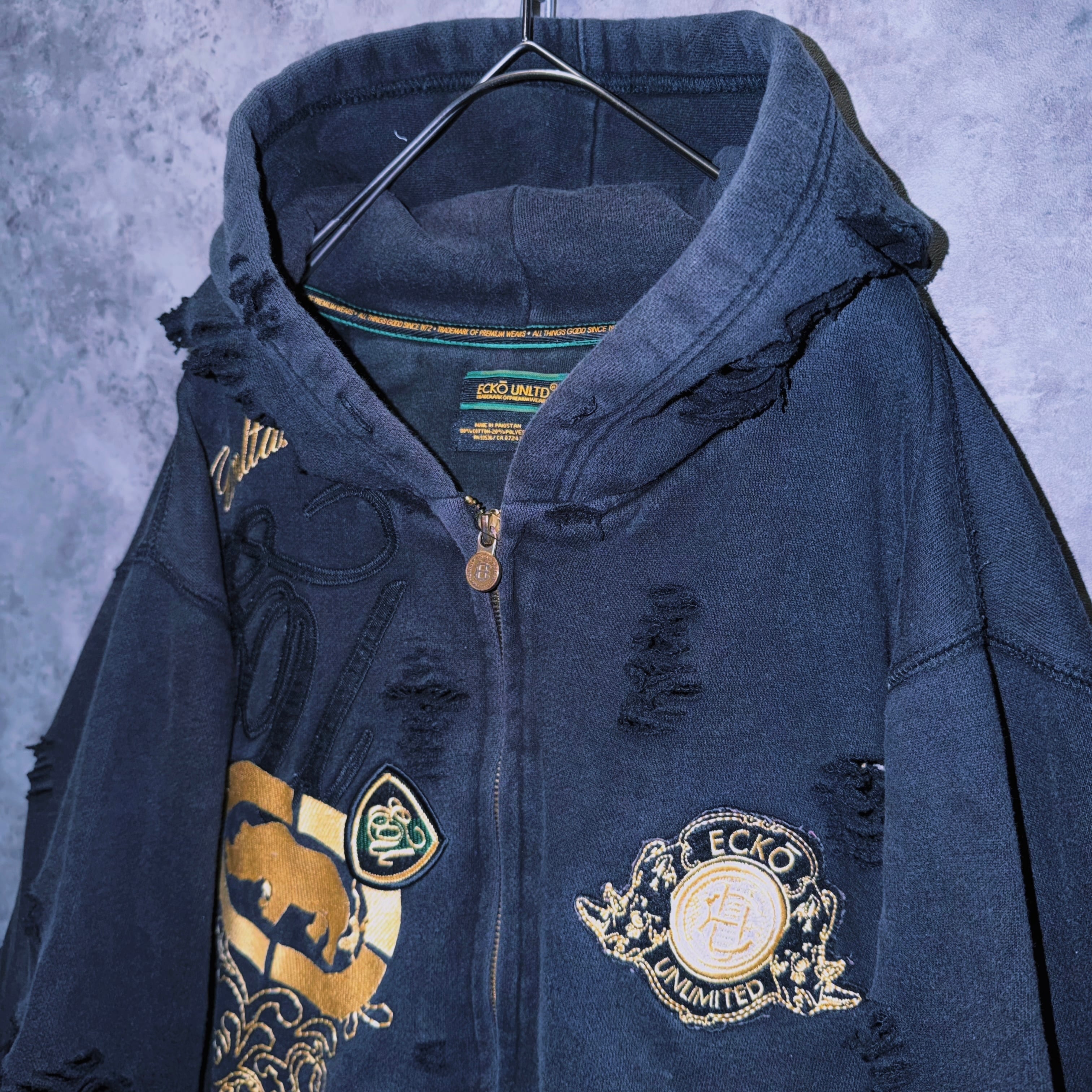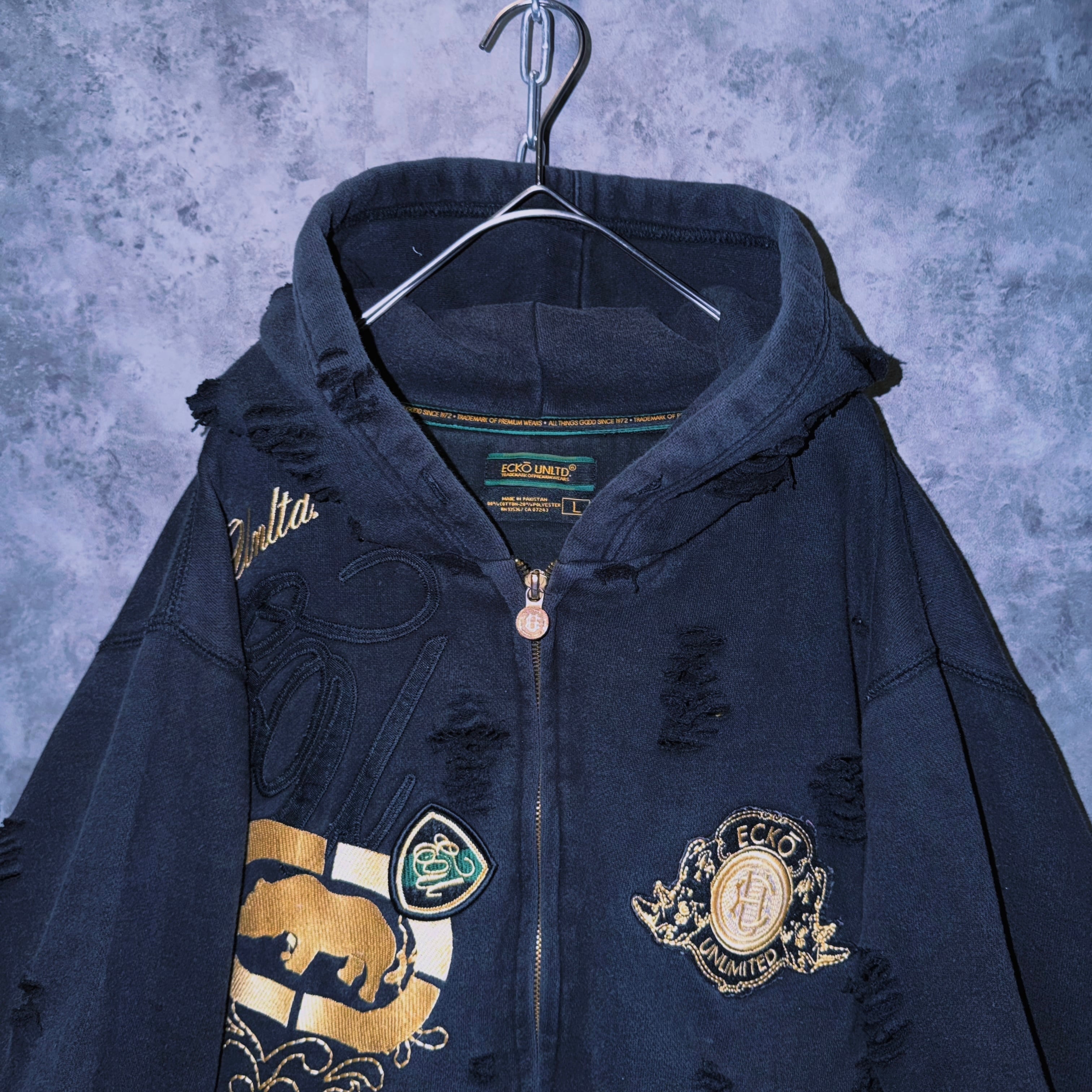 ヴィンテージ“ecko unlimited”エンブロイダリーデザインボロカスタムジップフーディ